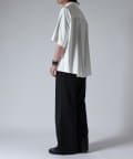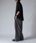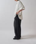 着用した際に横から見るとAラインのシルエットになっており、素材感と相まってモードな雰囲気をさらに演出しております。