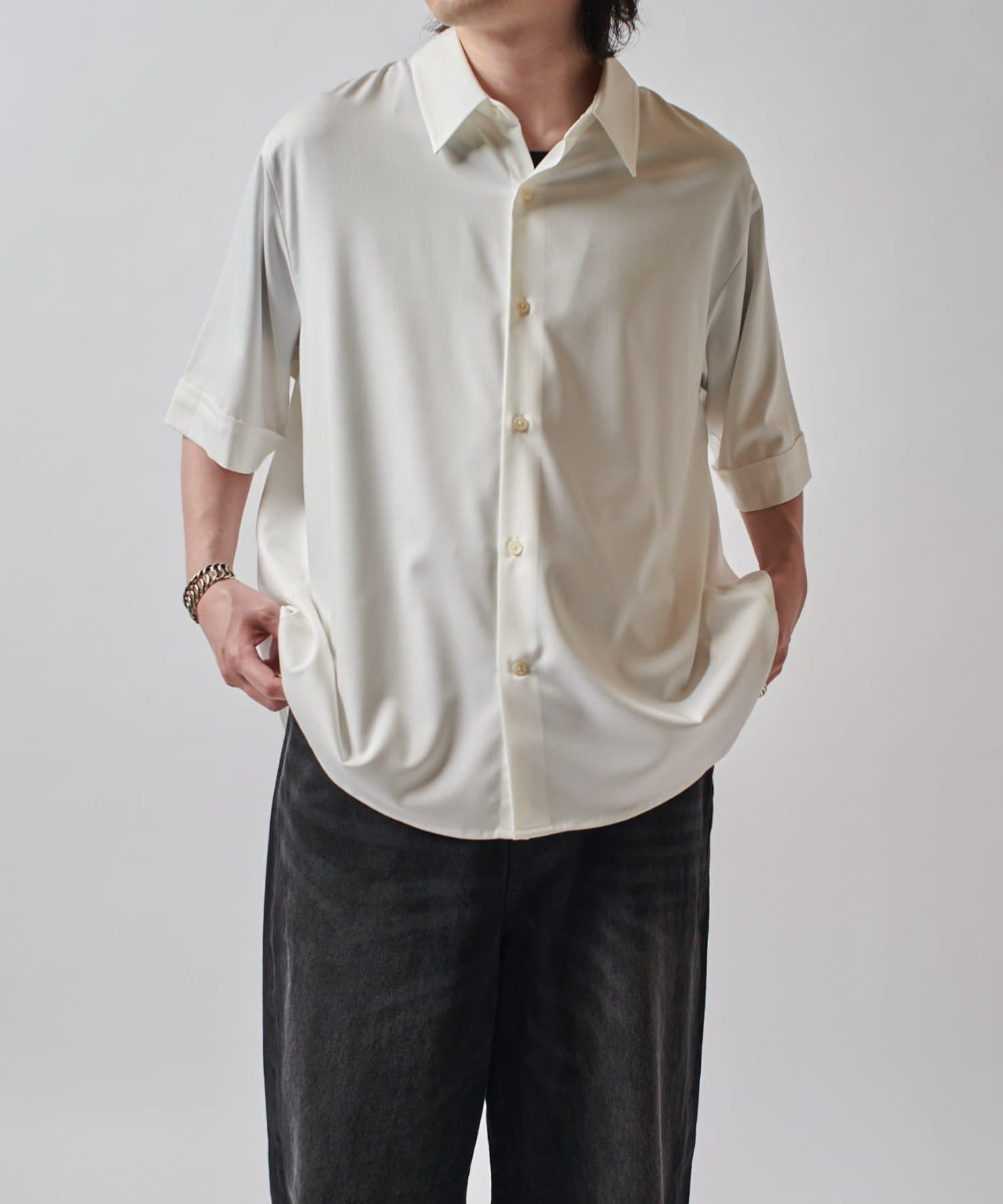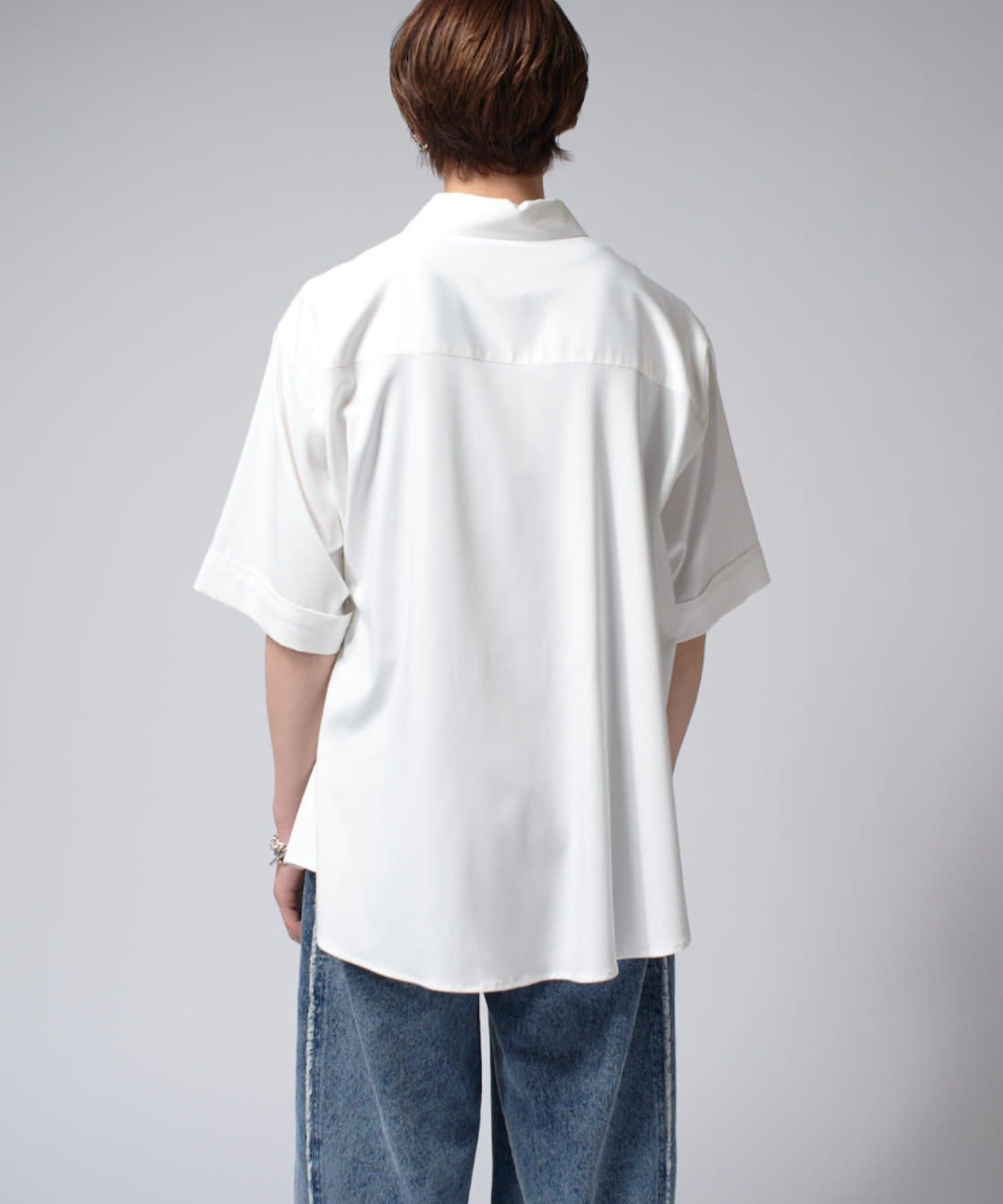 通常のシャツよりも身幅が広く、後ろ身頃がふわっと膨らんだシルエットのシャツ。