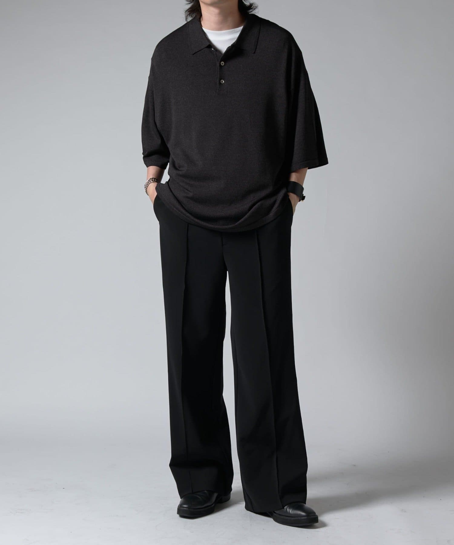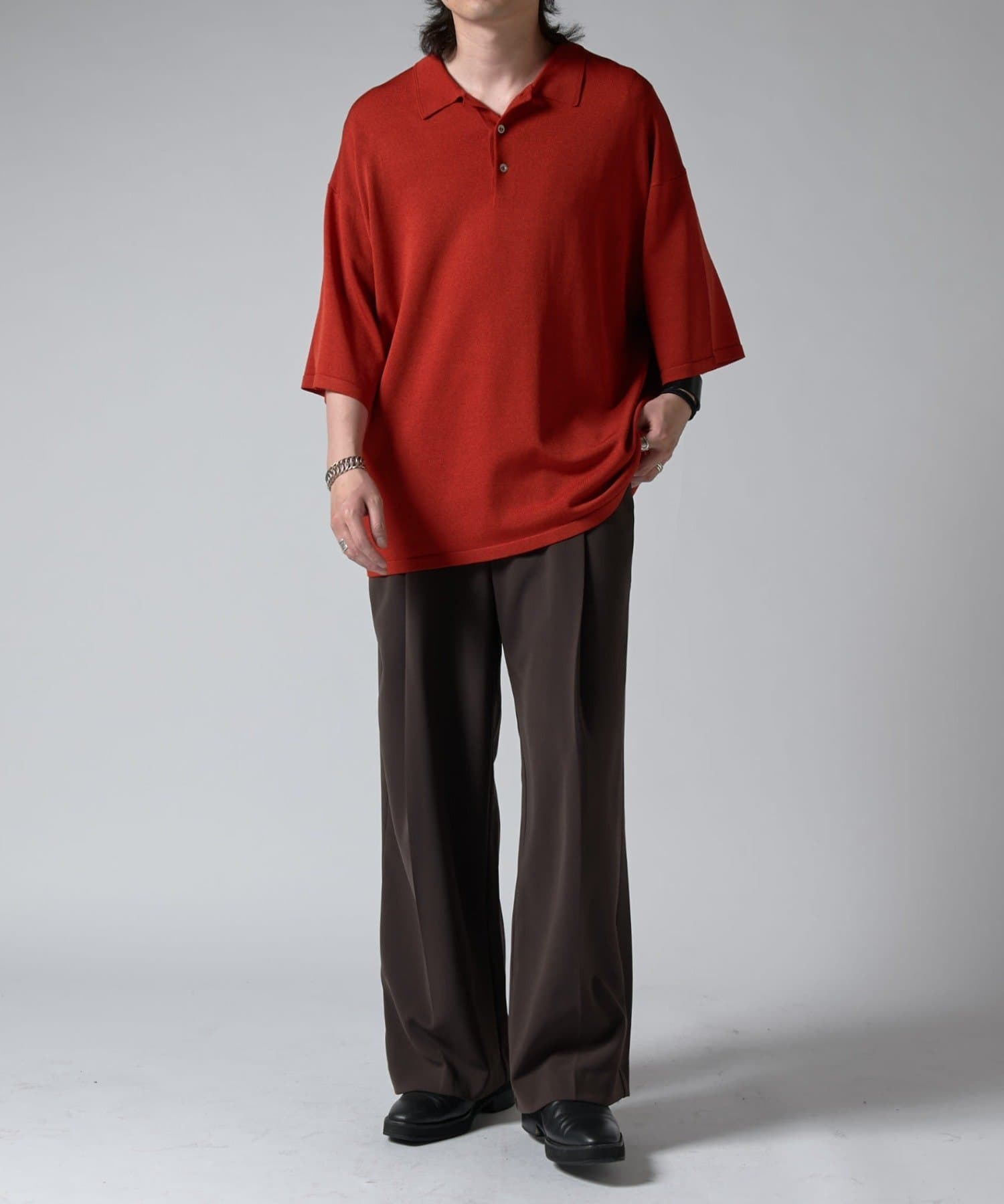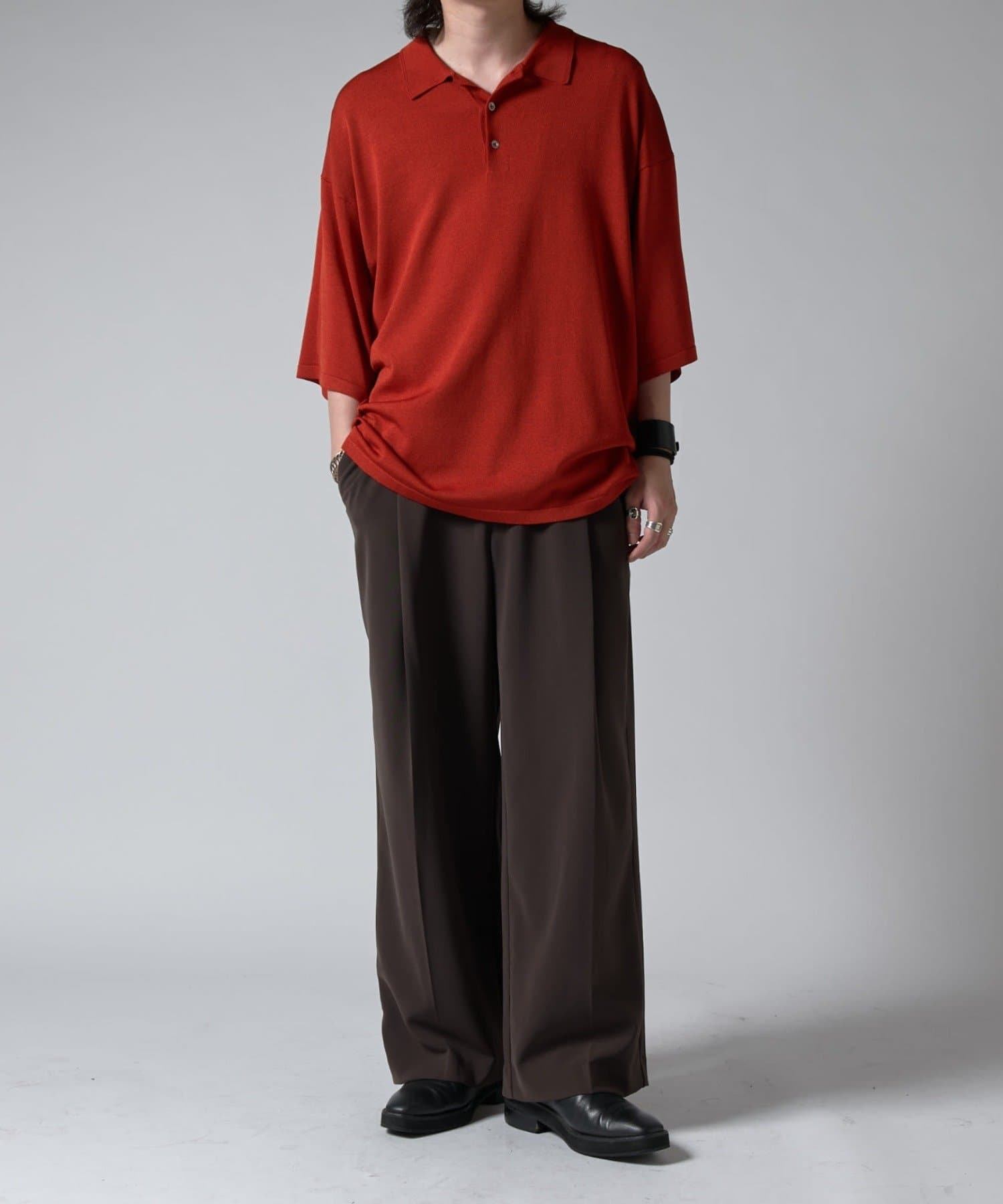 ラフでクリーンな印象のニットポロなので、スラックスにレザーシューズを組み合わせたキレイめカジュアルなスタイルがオススメ。
