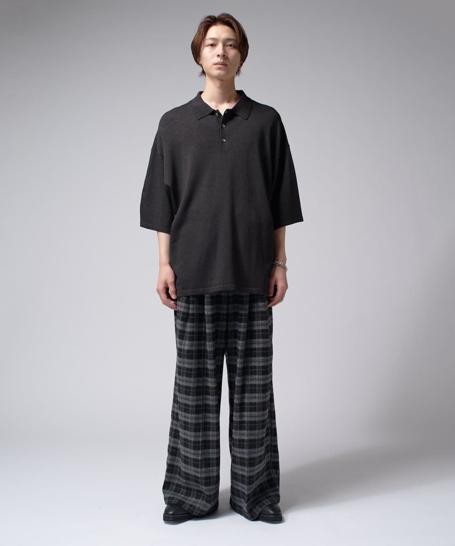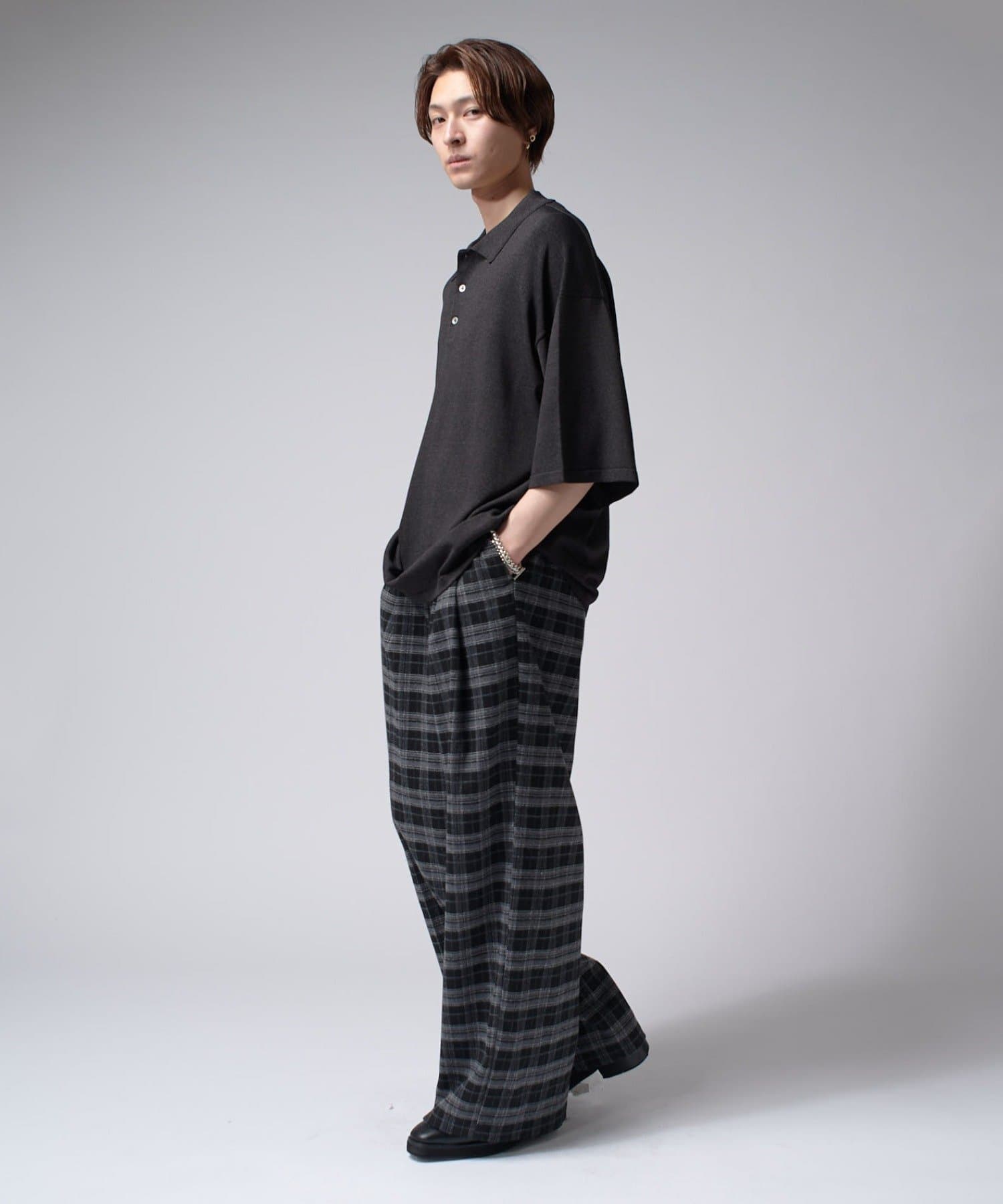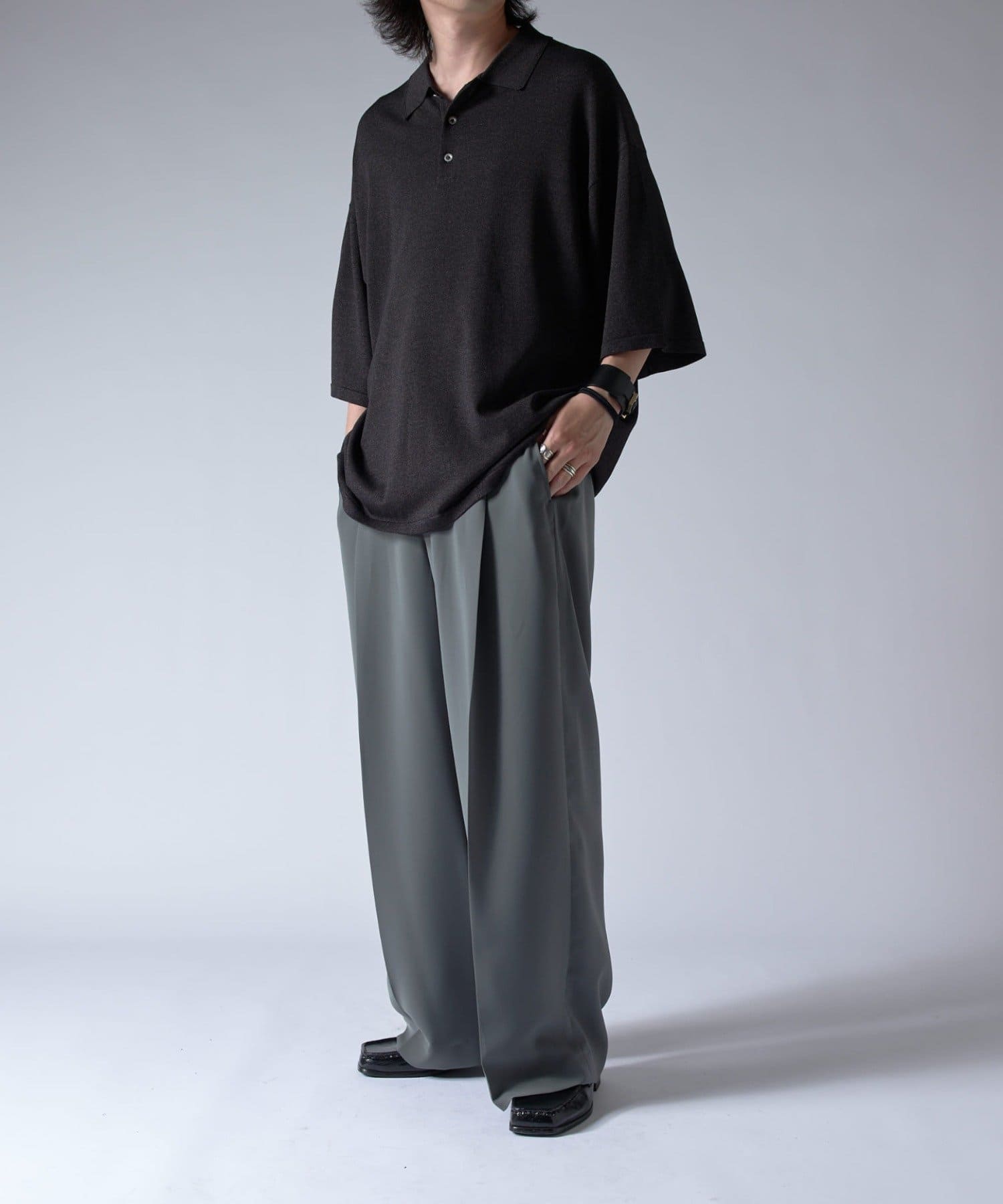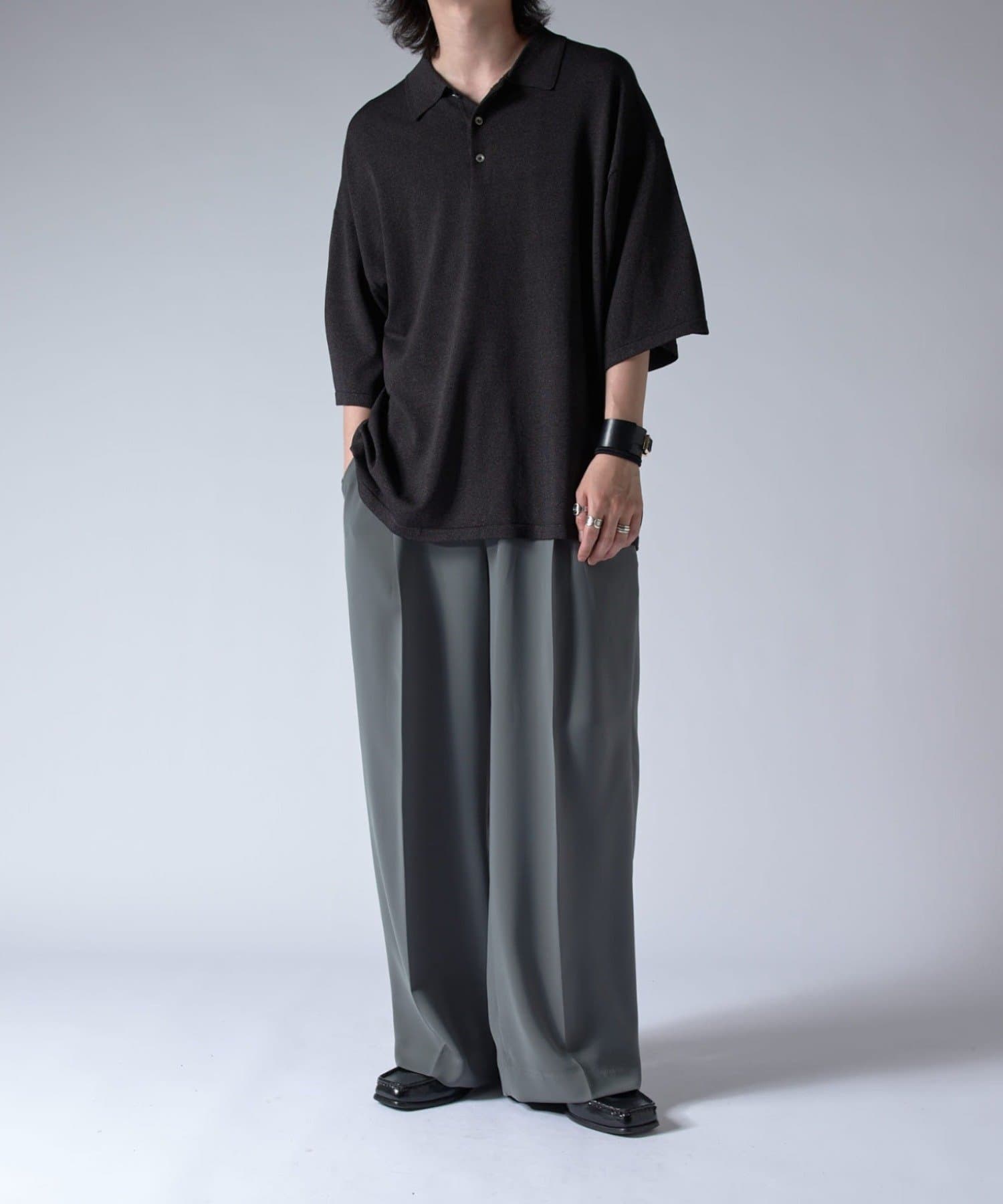 ラフでクリーンな印象のニットポロなので、スラックスにレザーシューズを組み合わせたキレイめカジュアルなスタイルがオススメ。