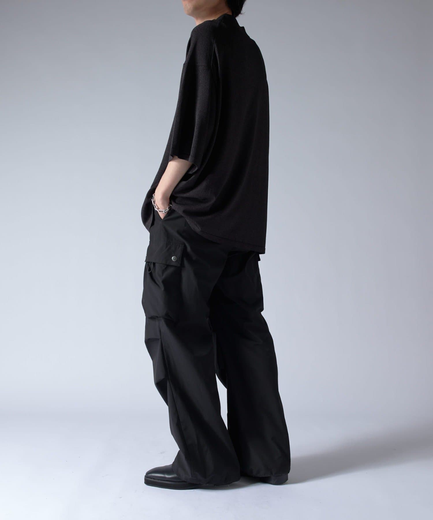 素材にはヴィスコースとポリエステルの混紡素材を使用。ハイゲージで編みたてたニットで、ニットなのにカットソー感覚で着られる優れもの。