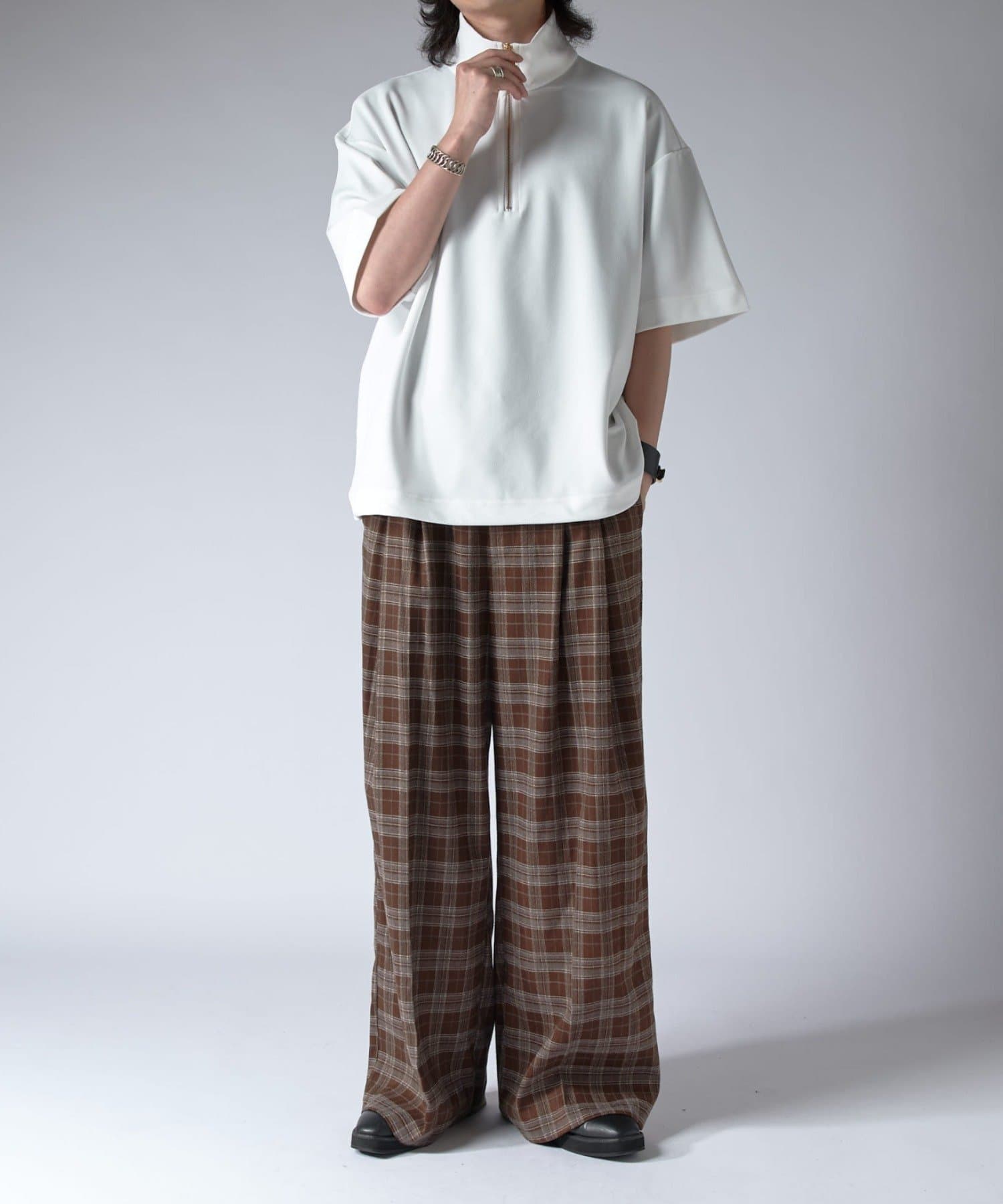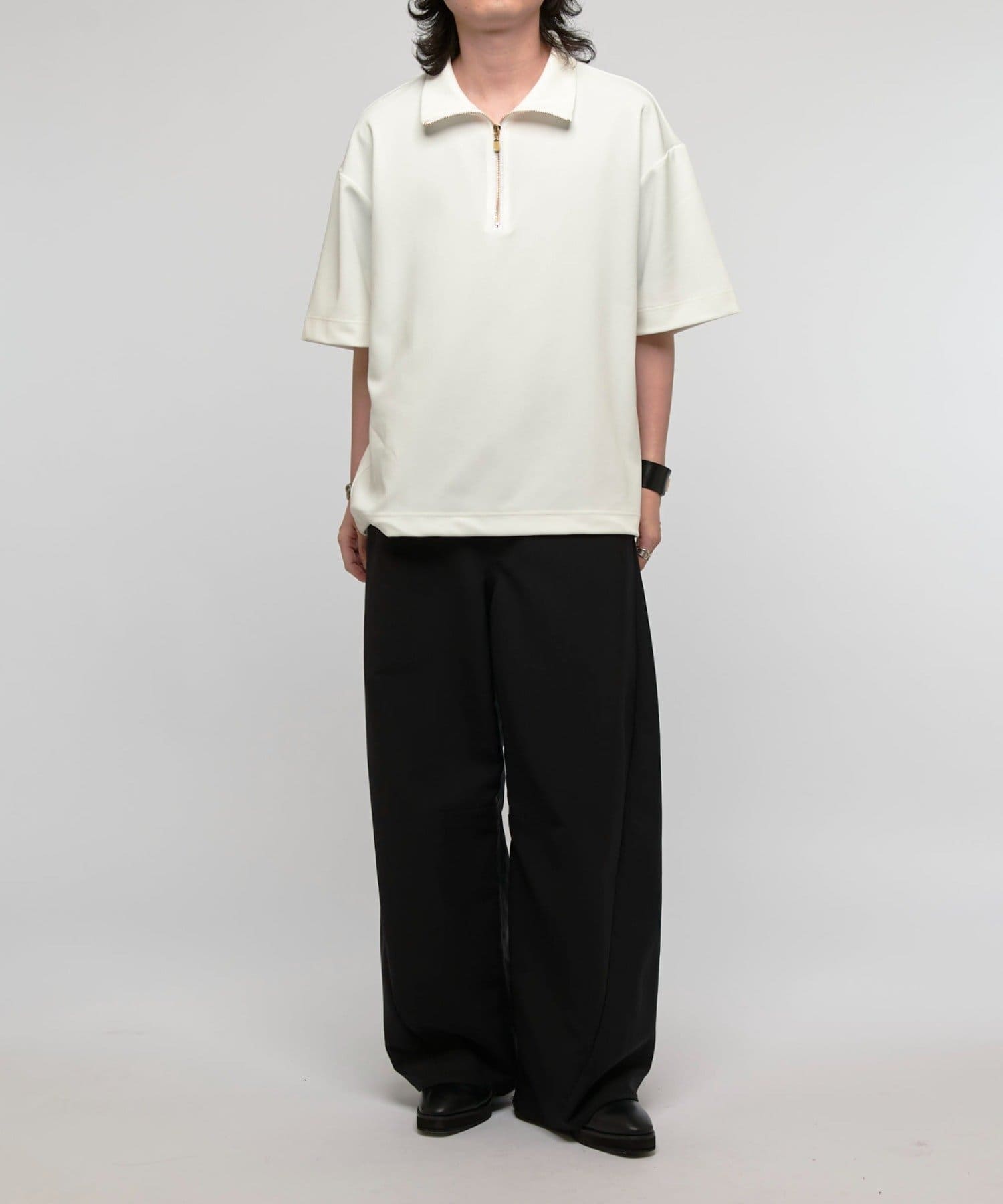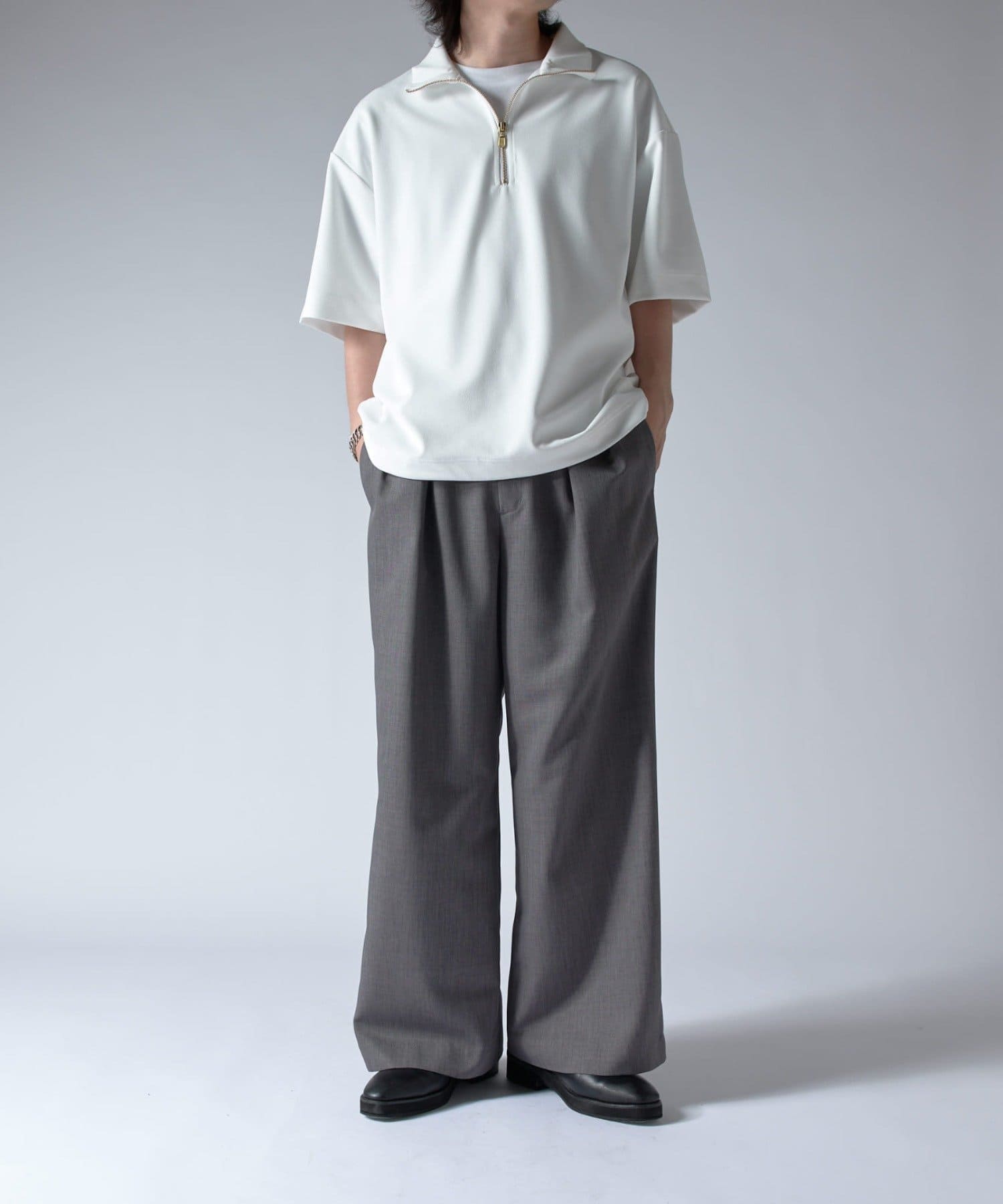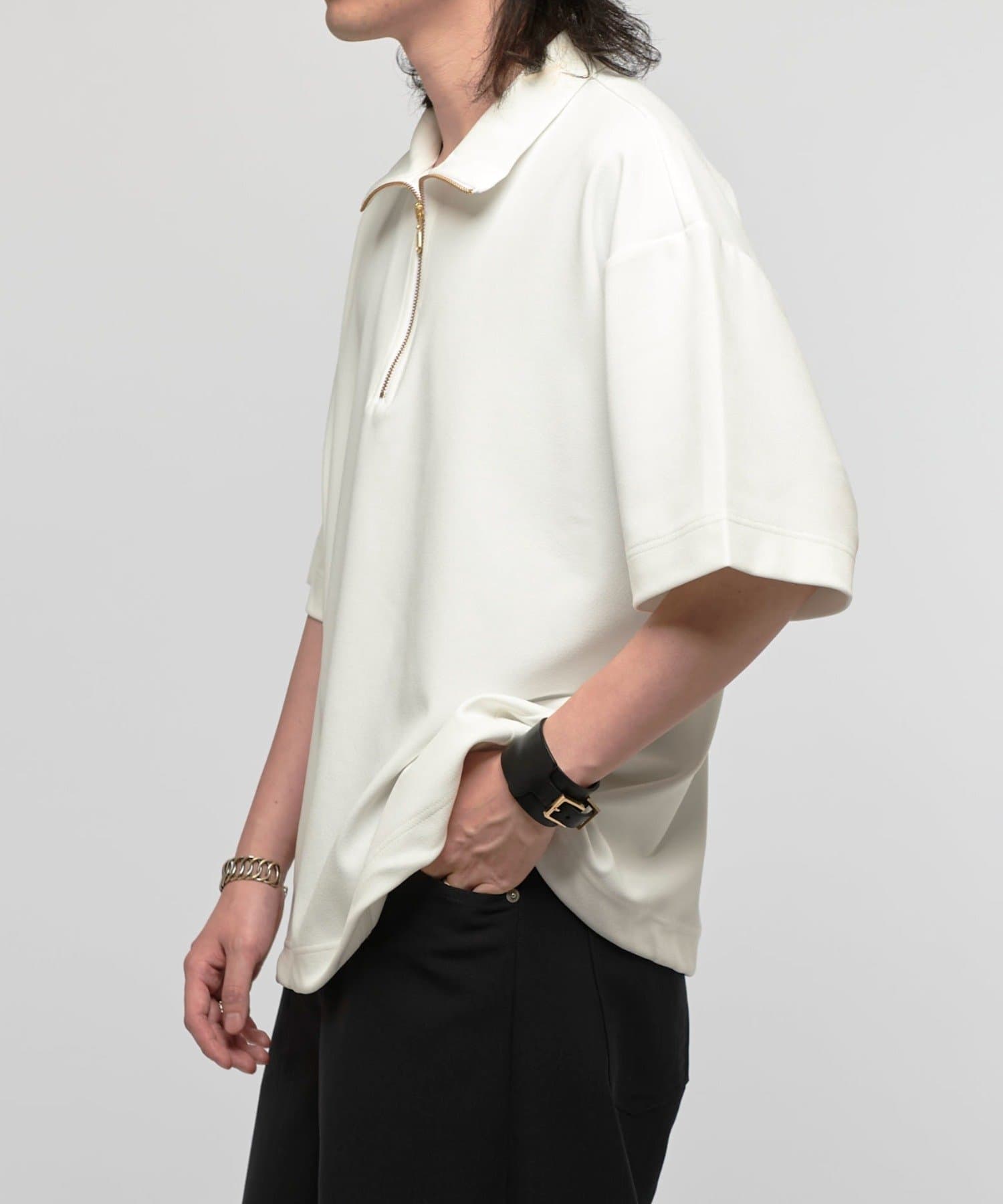 ハーフZIPが特徴的なカットソーなので、一枚で着て頂くのはもちろん、ジャケットやシャツと組み合わせたキレイめなスタイルに合わせて頂くのがオススメ。
