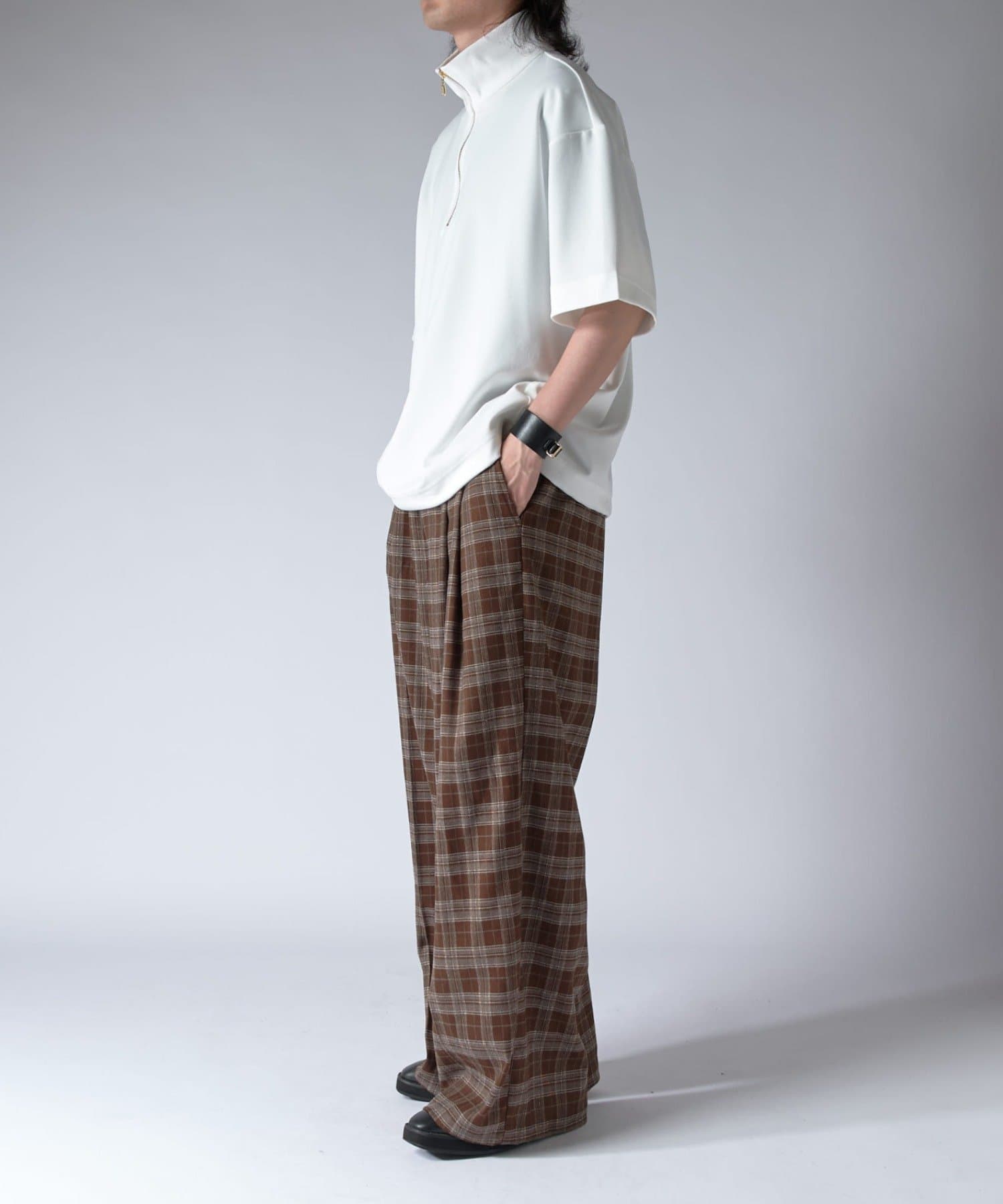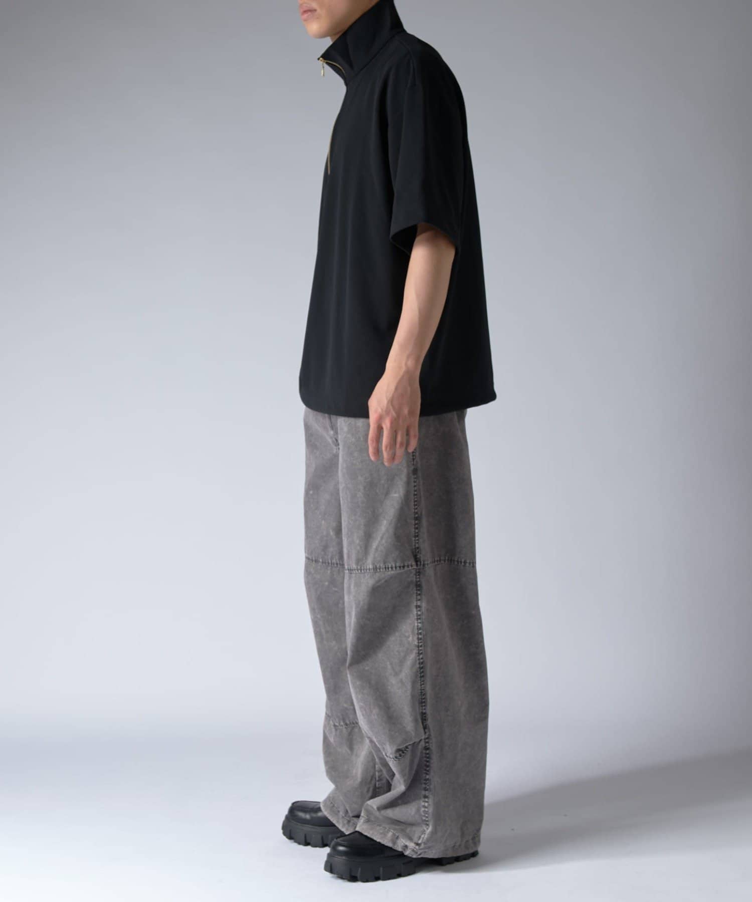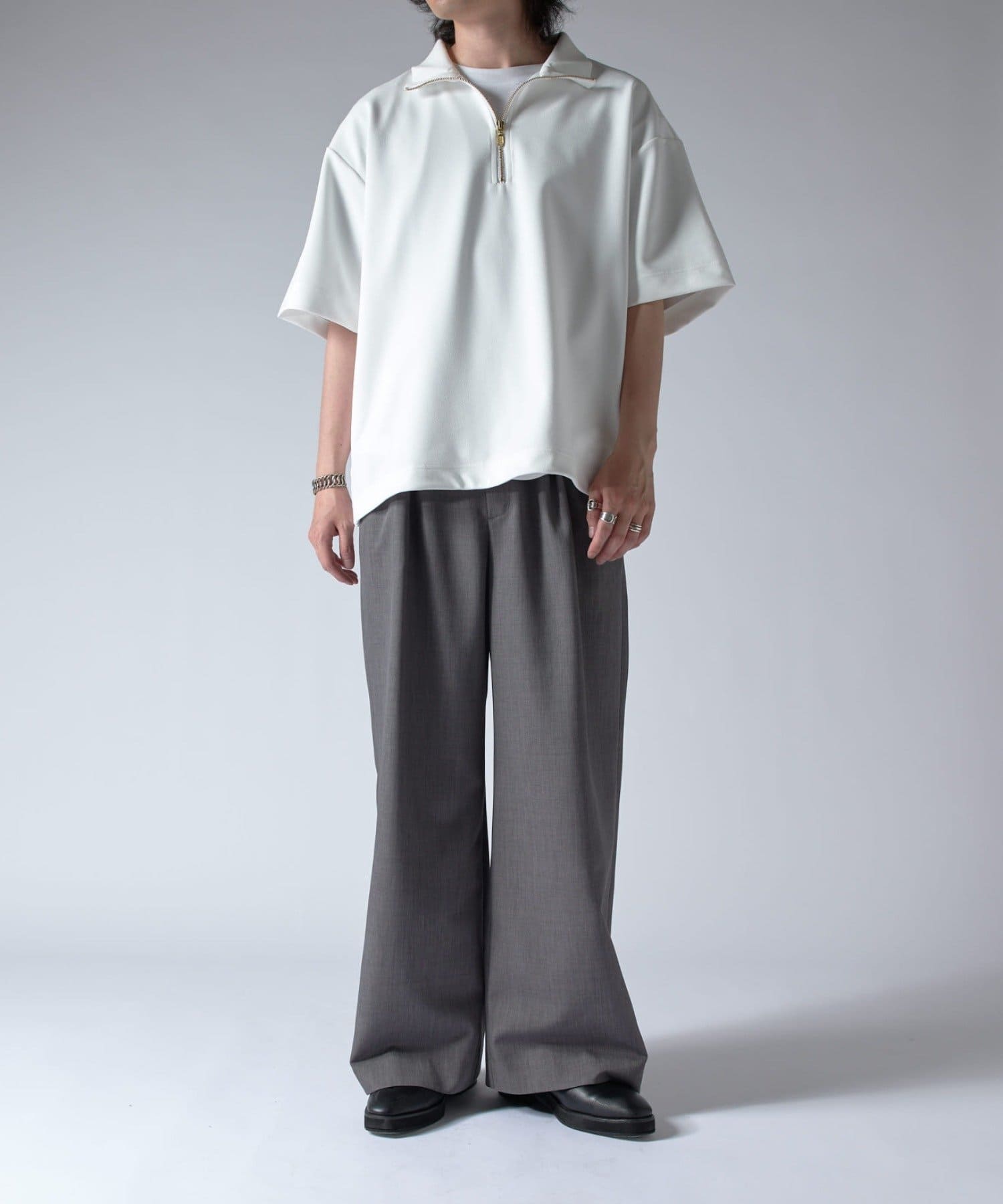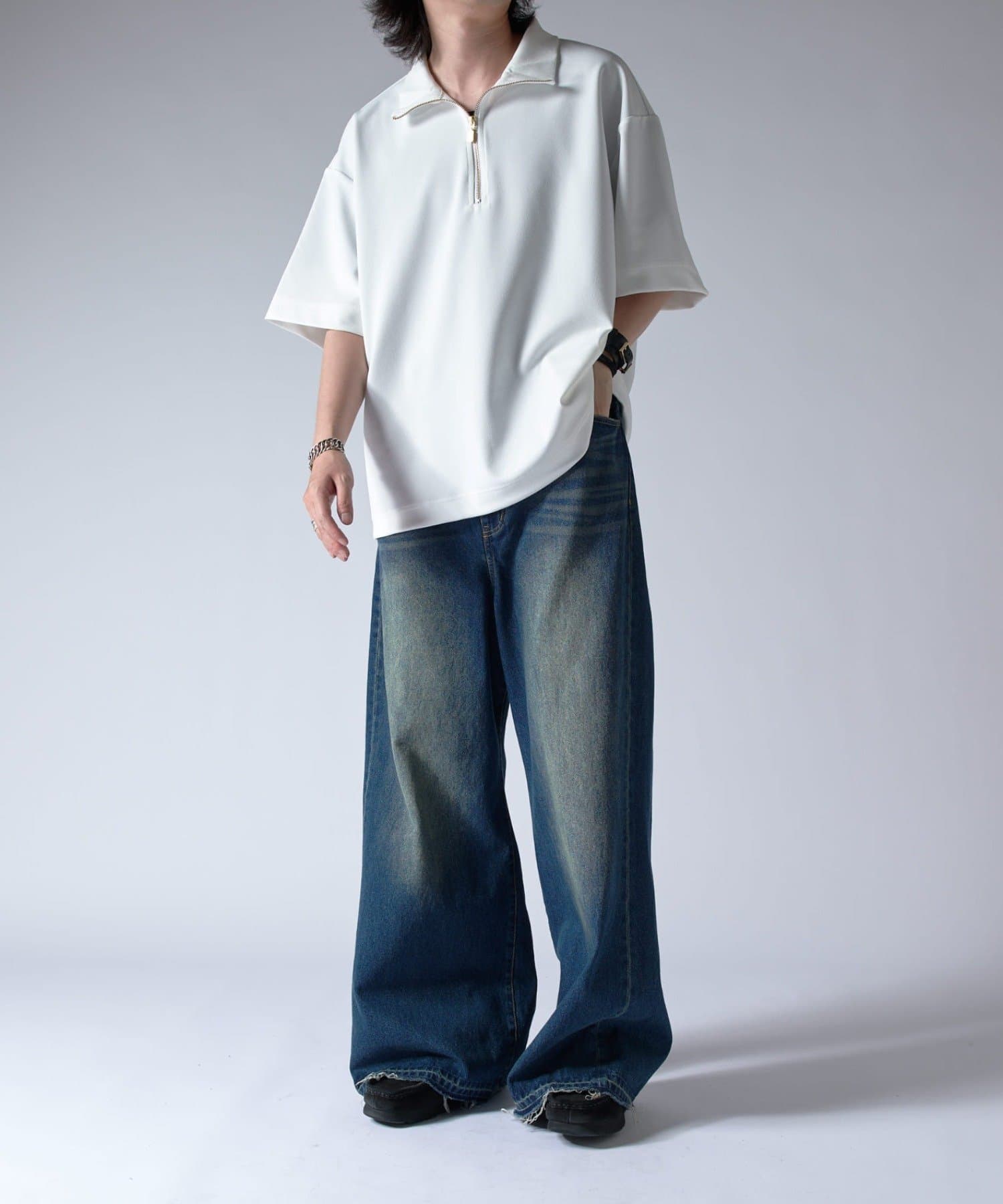 ハーフZIPが特徴的なカットソーなので、一枚で着て頂くのはもちろん、ジャケットやシャツと組み合わせたキレイめなスタイルに合わせて頂くのがオススメ。