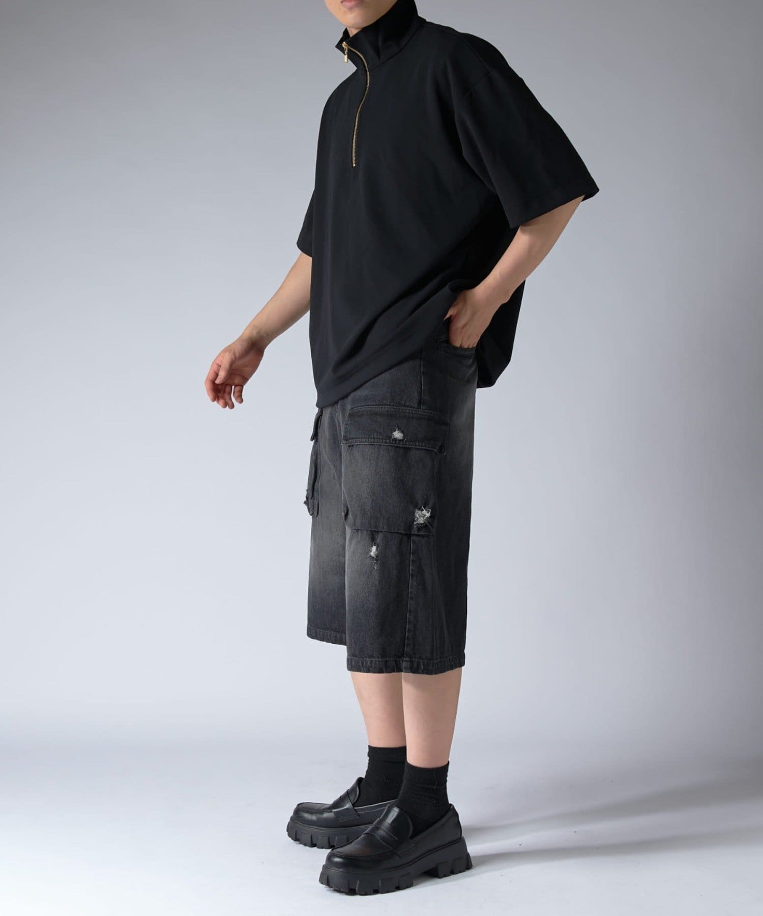 Lui's(ルイス)25SS ジョーゼットハーフZIP s/s カットソー