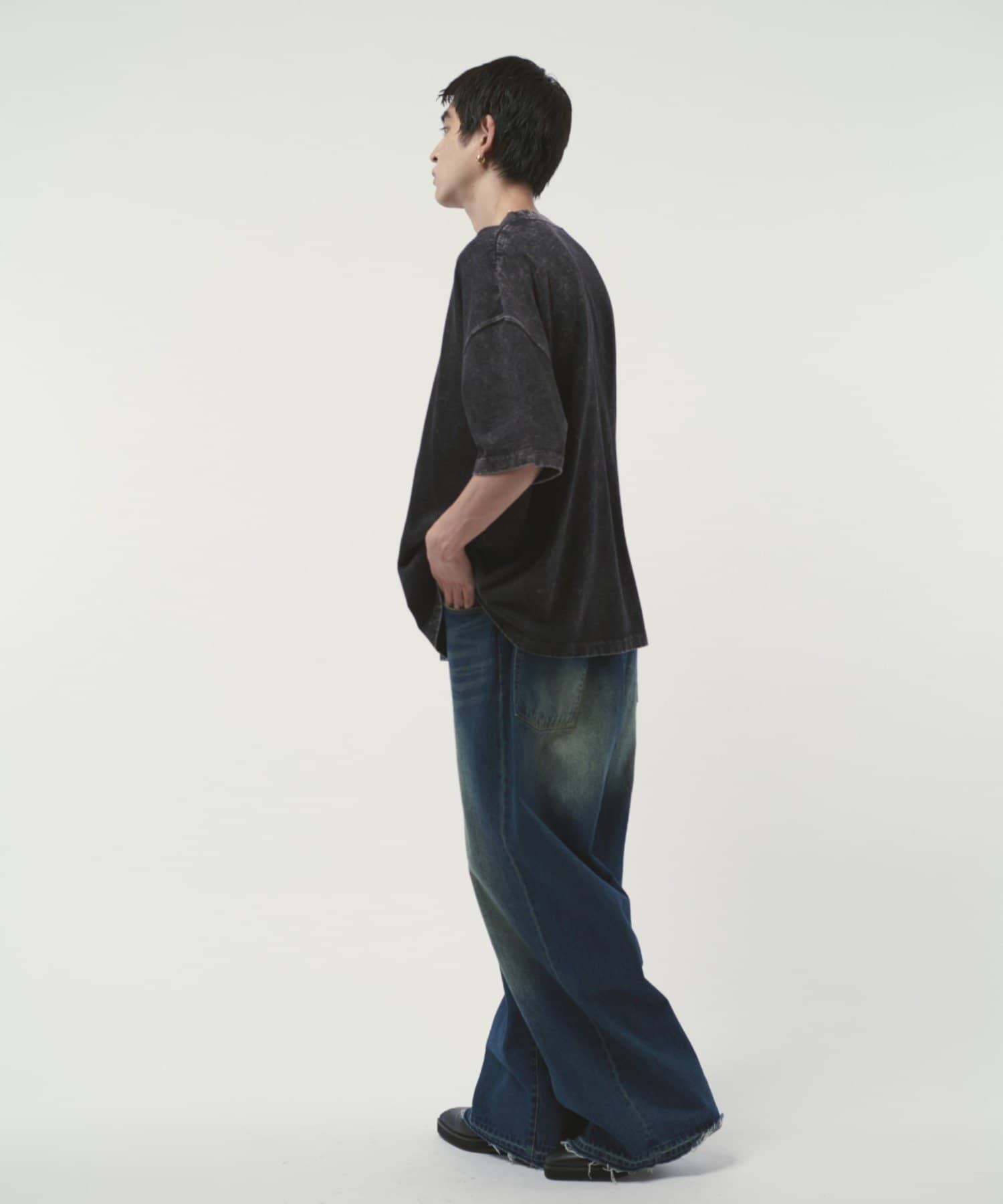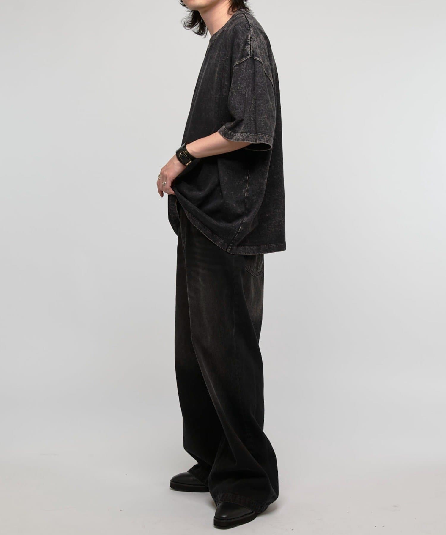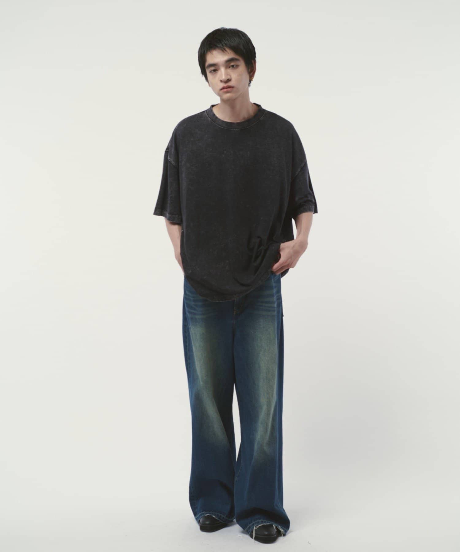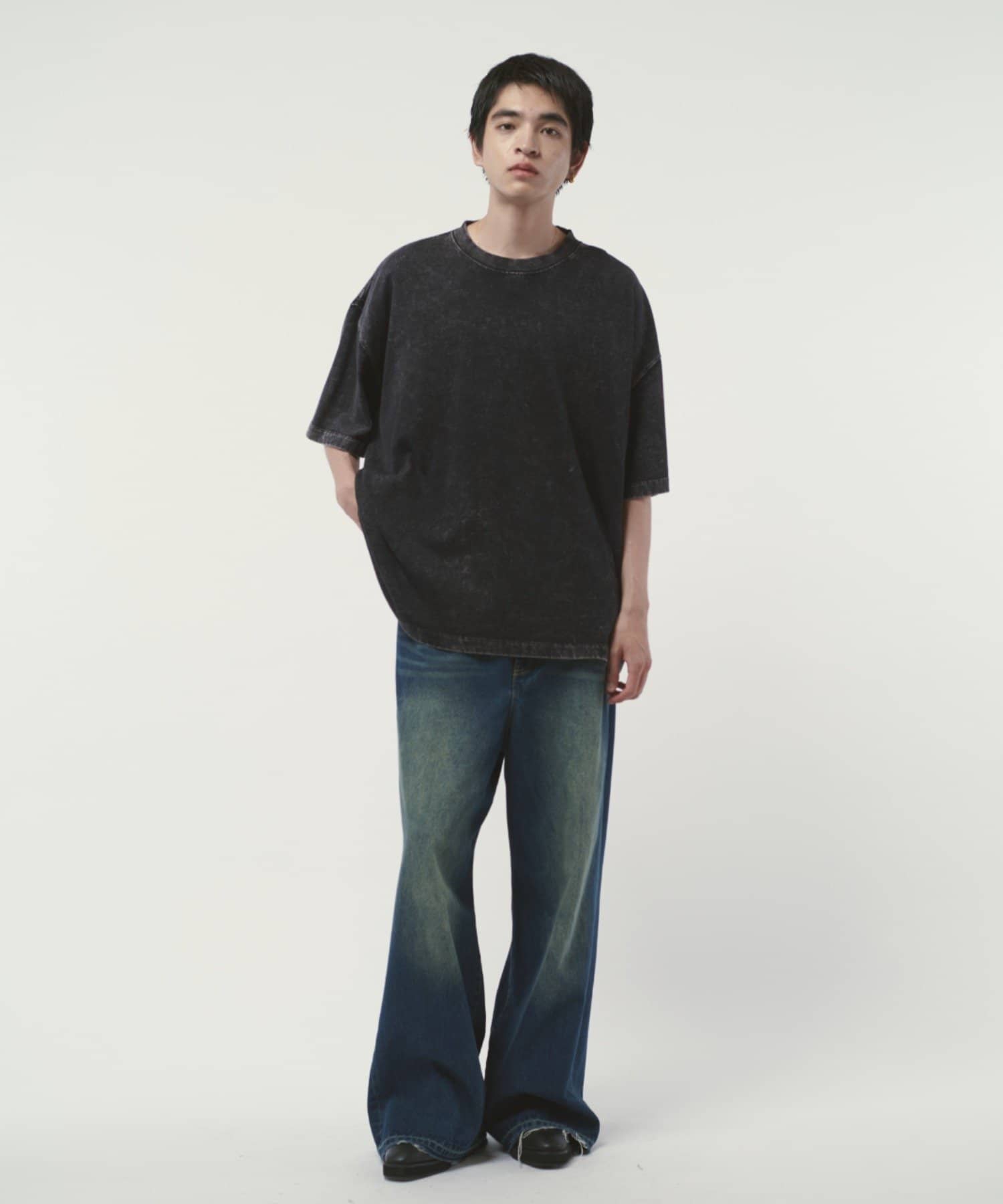 グランジテイストのBIG TEEなので、ワイドデニムやパラシュートパンツと組み合わせたストリートカジュアルスタイルがオススメ。