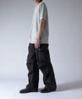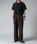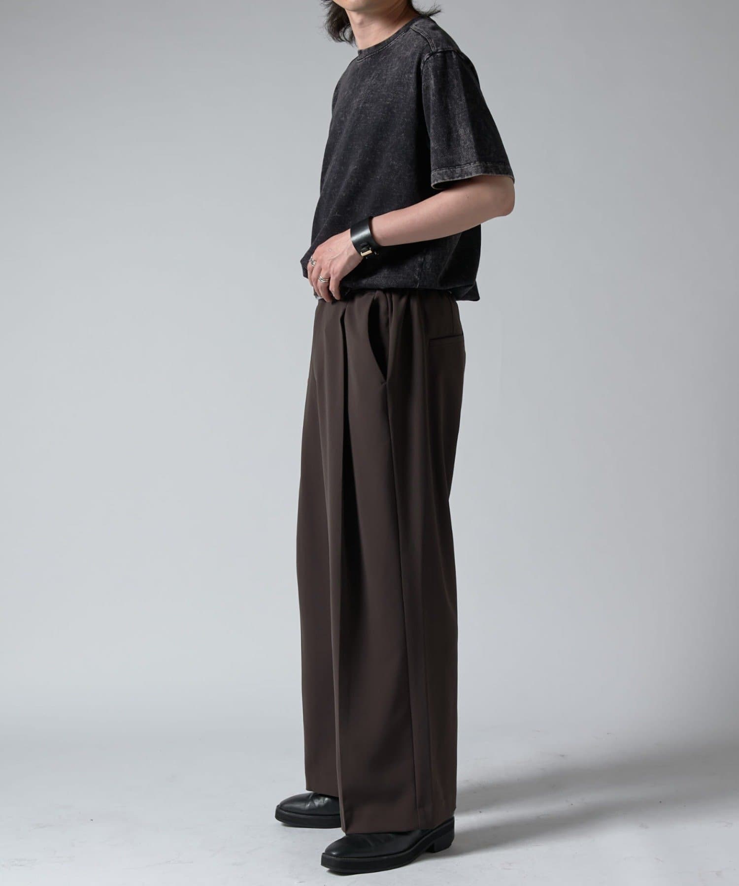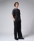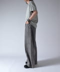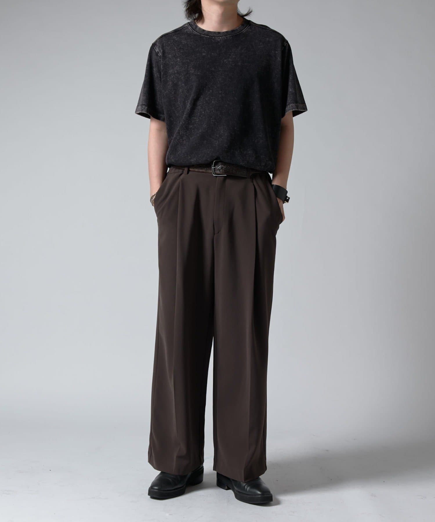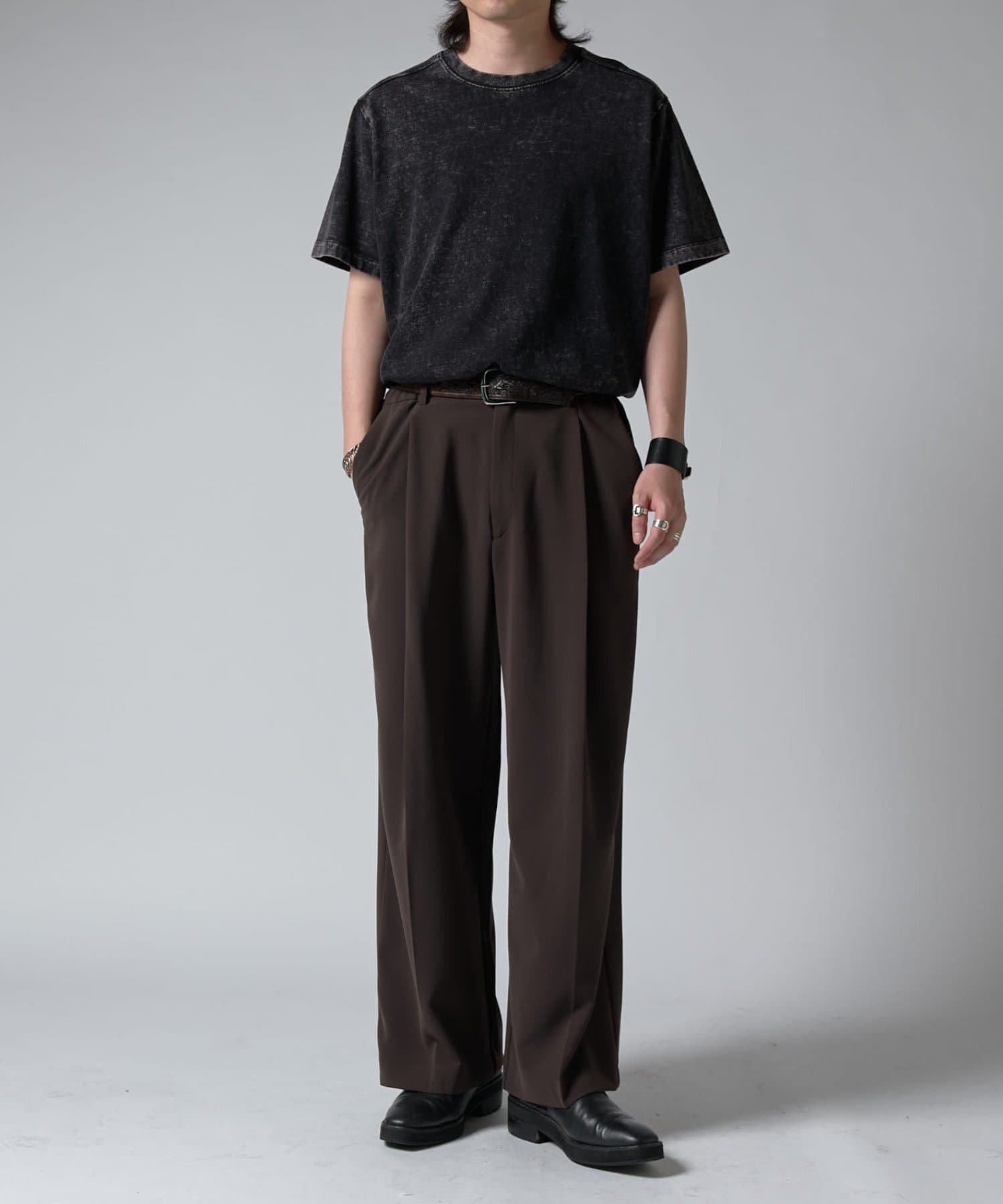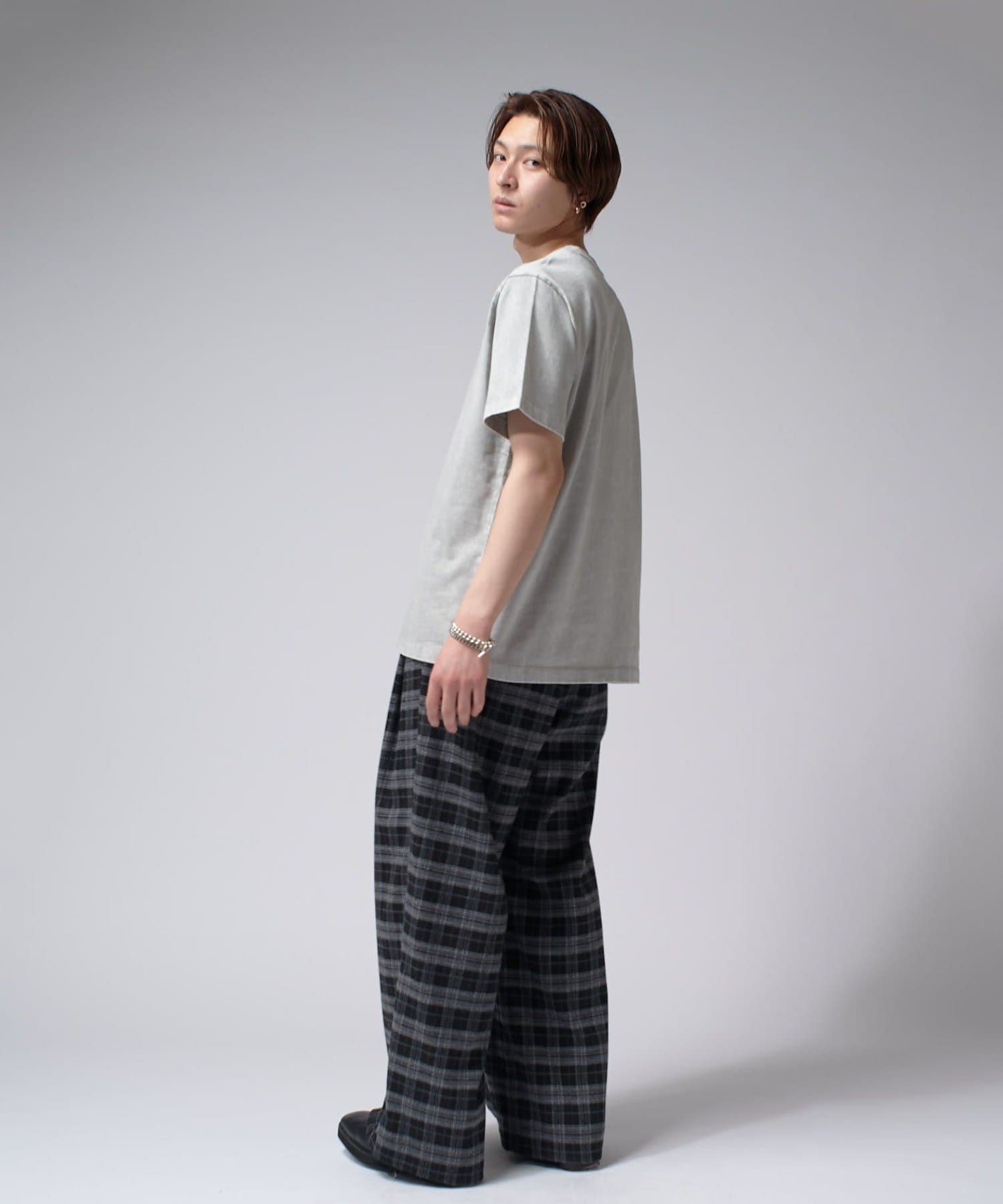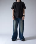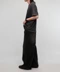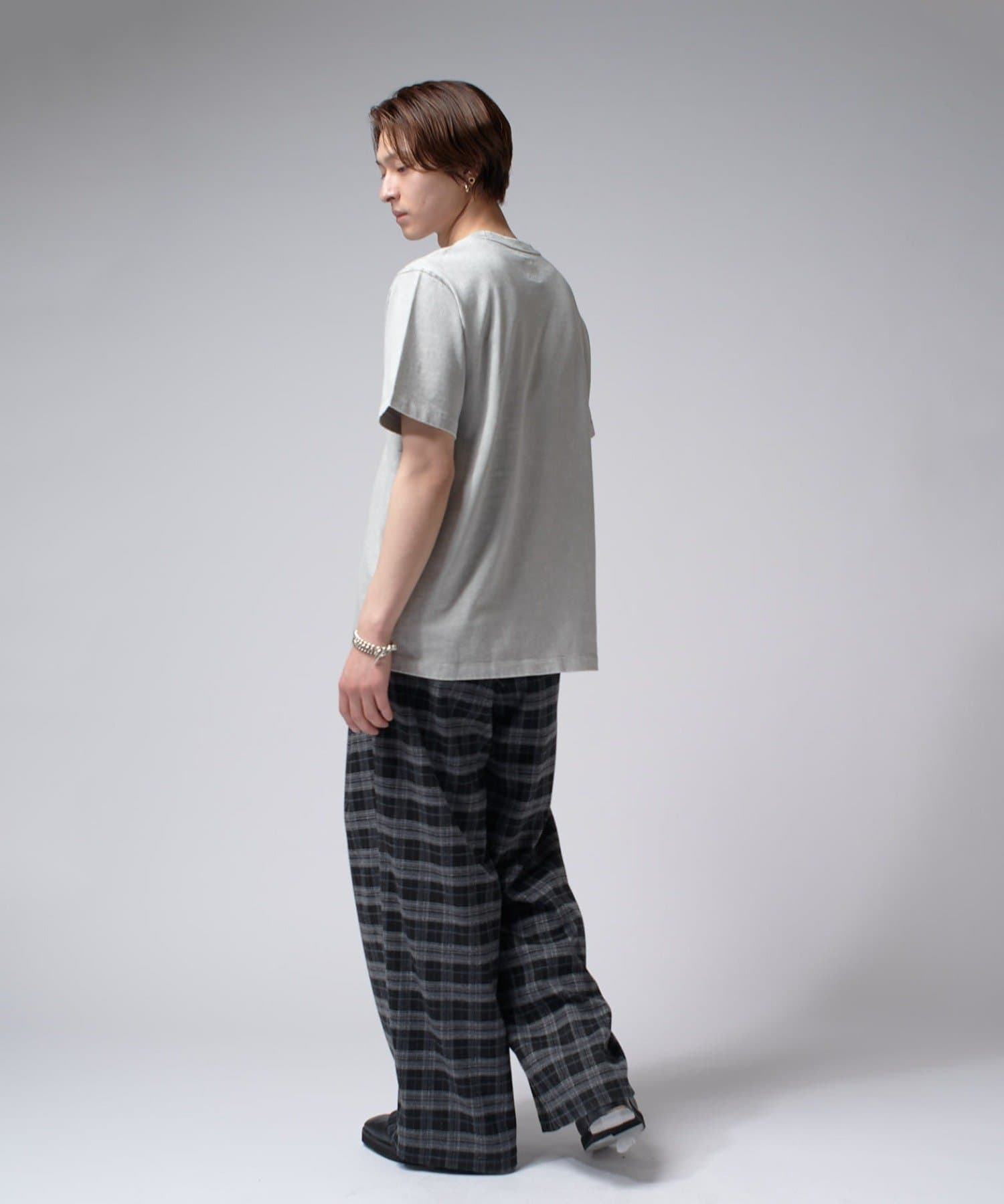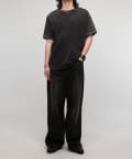 グランジテイストのコンパクトなサイズ感のTシャツなので、ワイドパンツやワイドデニムと組み合わせた、クリーンなカジュアルスタイルがオススメ。