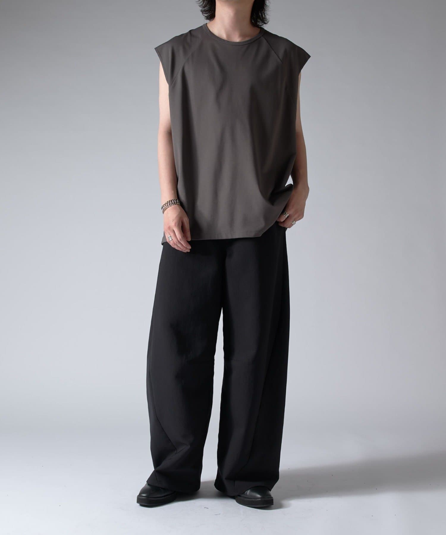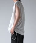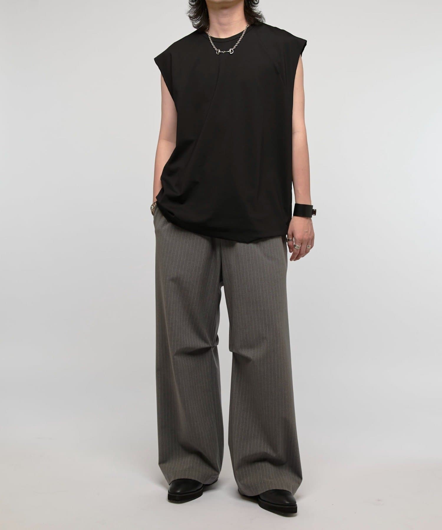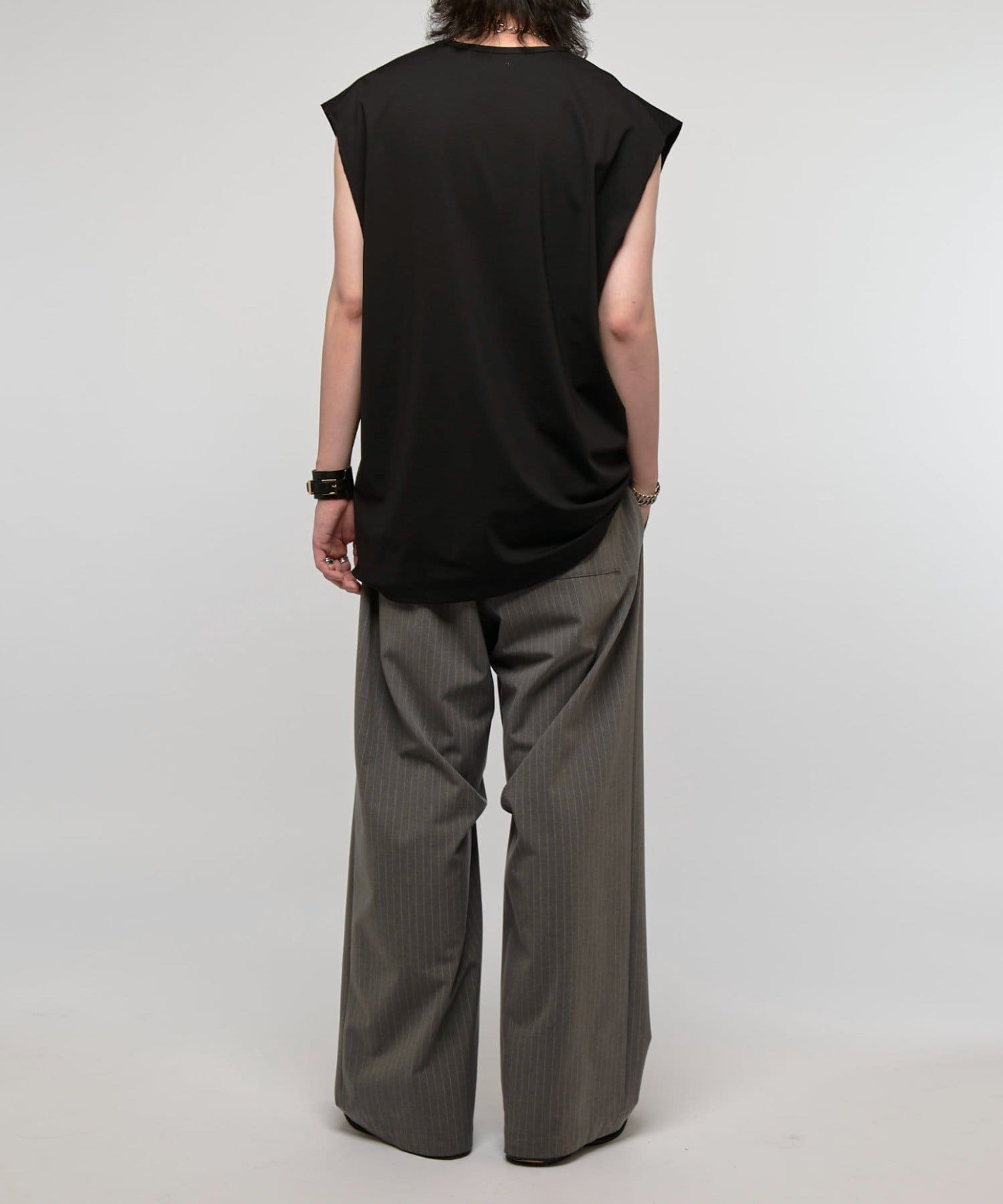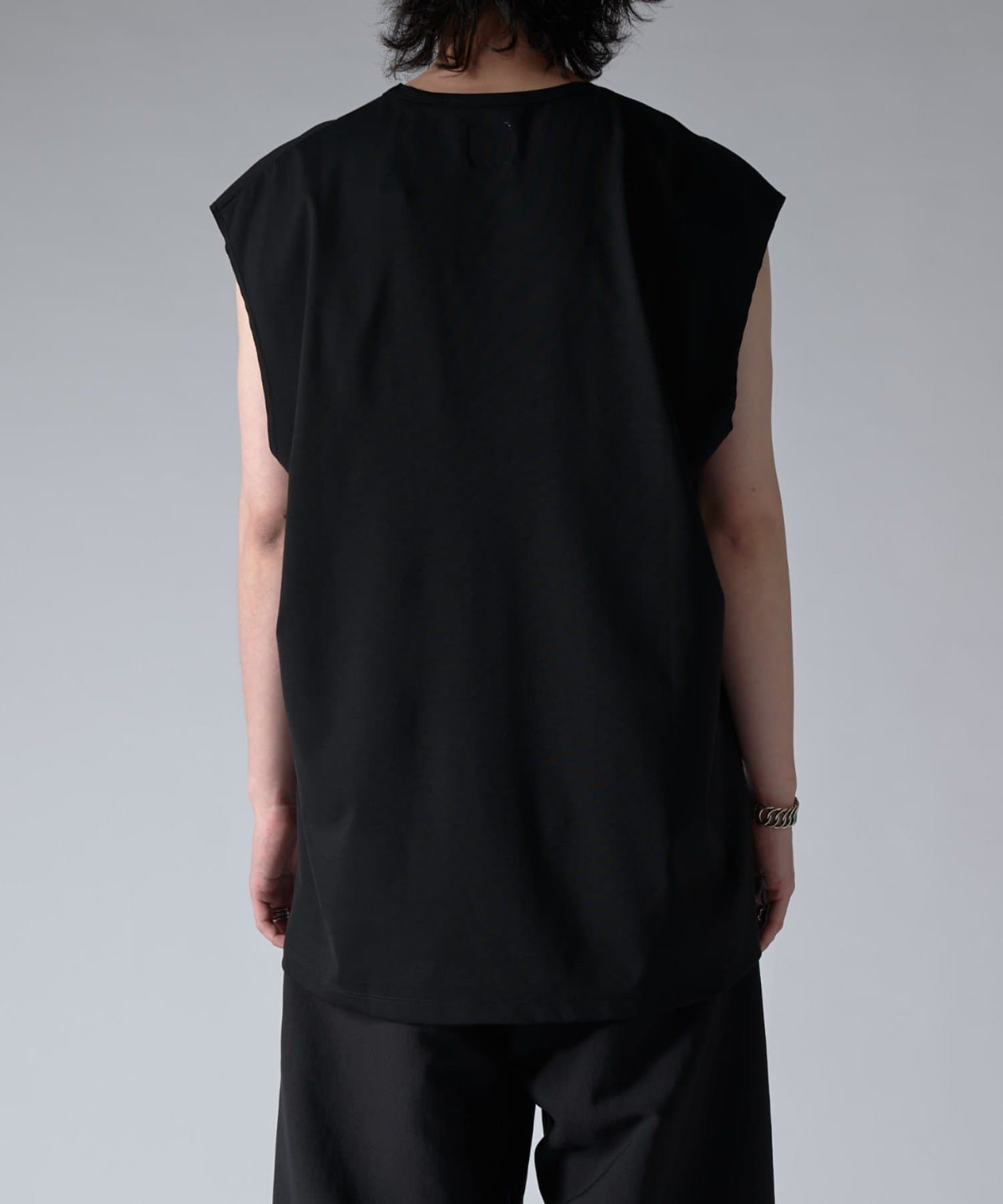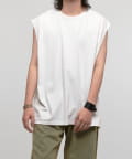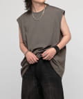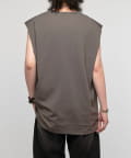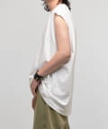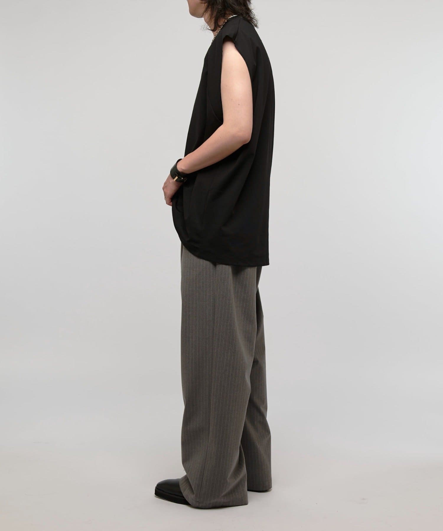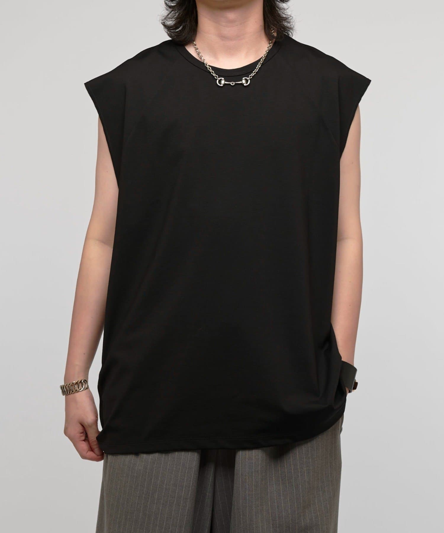 片線が落ちるドロップショルダー仕様で、袖を無くしたノースリーブ仕様のカットソー。