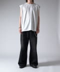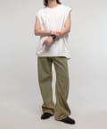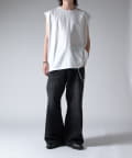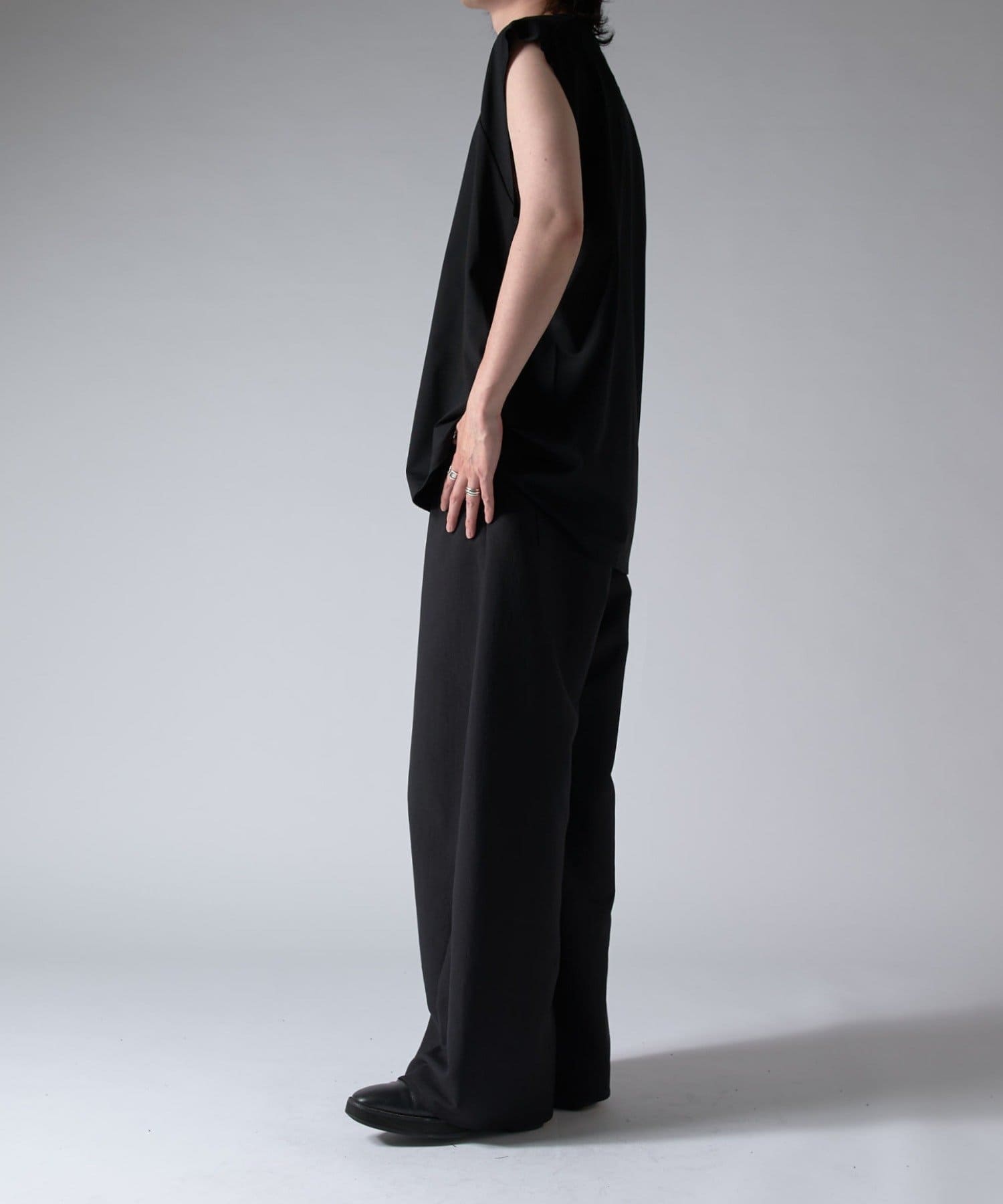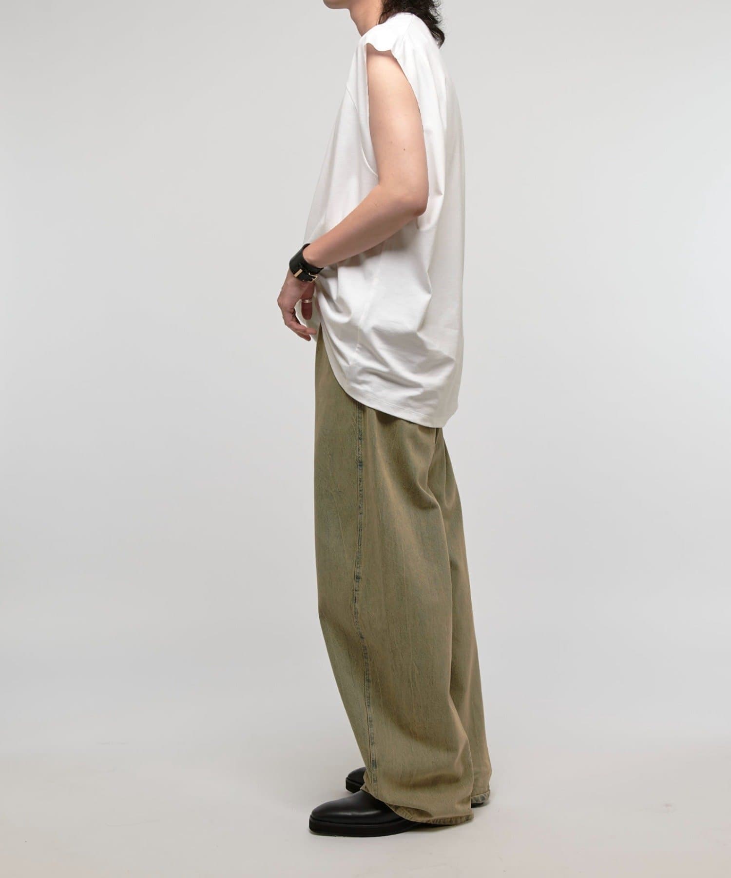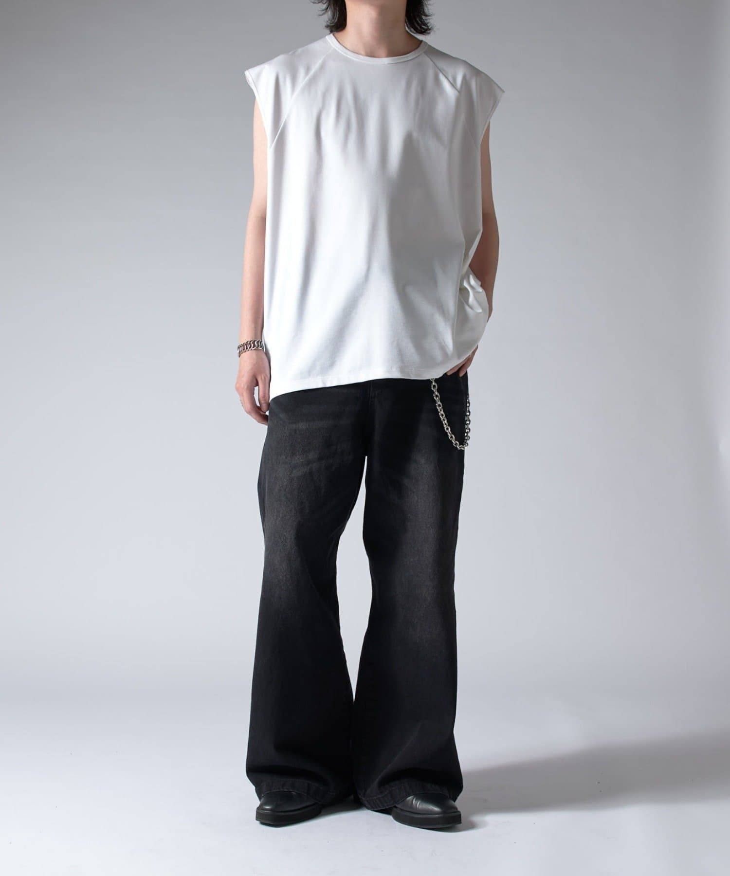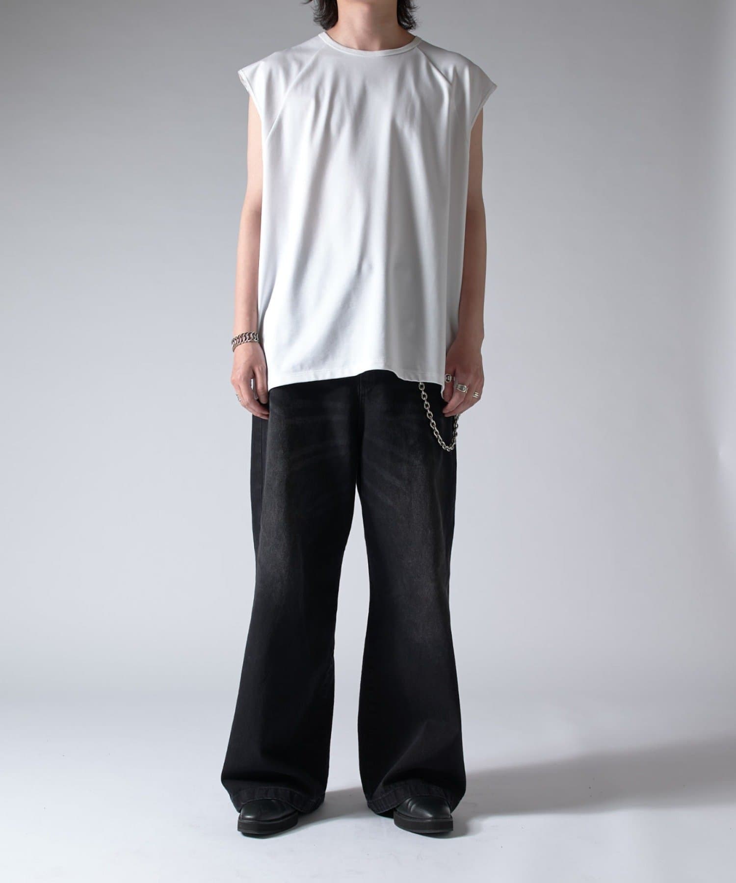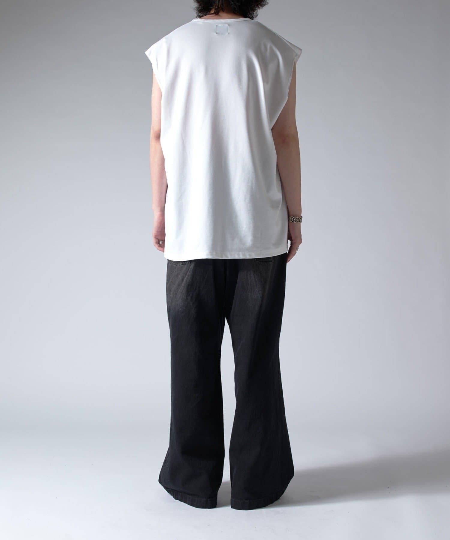 片線が落ちるドロップショルダー仕様で、袖を無くしたノースリーブ仕様のカットソー。