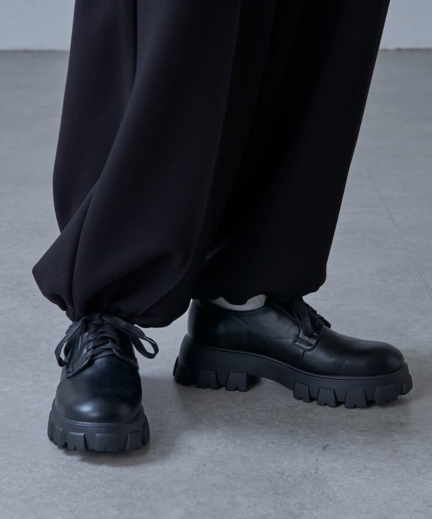 ボリュームソールのダービーシューズ。ぼてっとしたシルエットが特徴的。