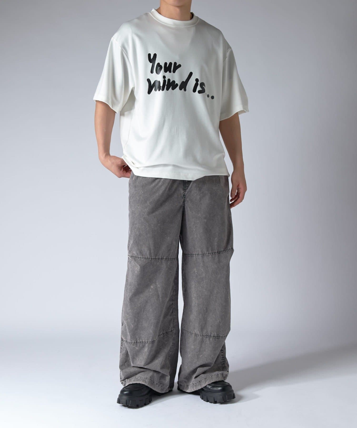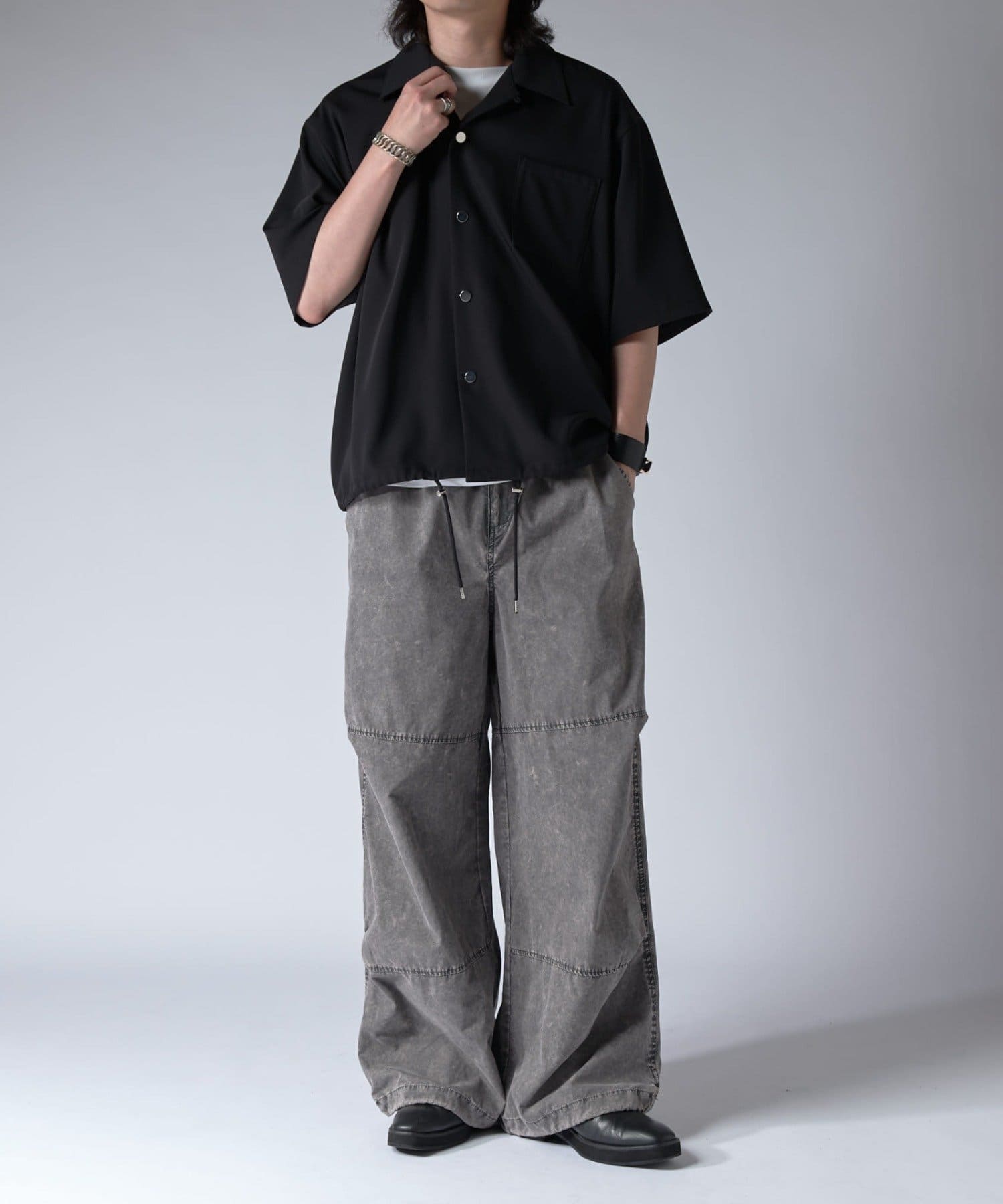 ストレートのシルエットですが、裾にはドローコードがあり、