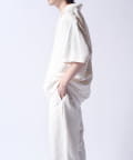 また同素材で展開しておりますイージーパンツと組み合わせた、上品でラフなセットアップスタイルもオススメです。