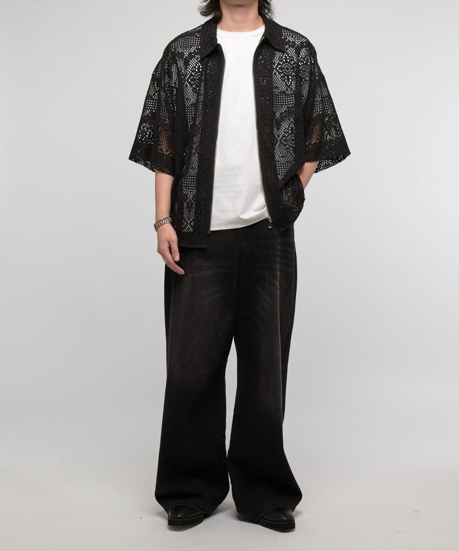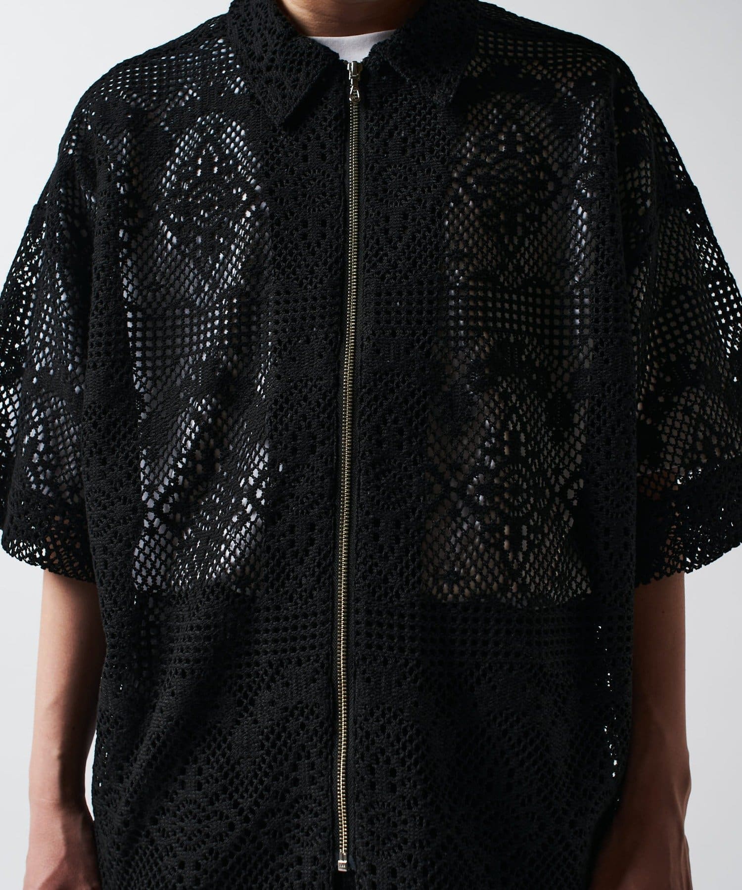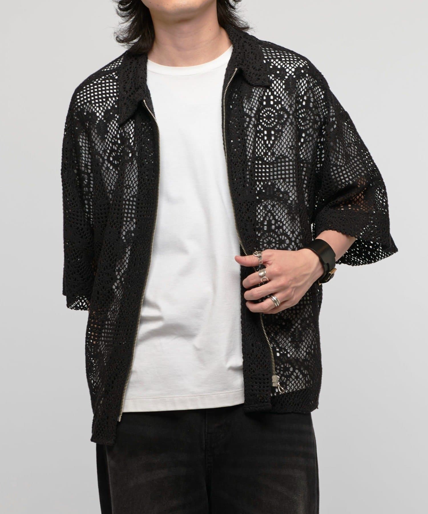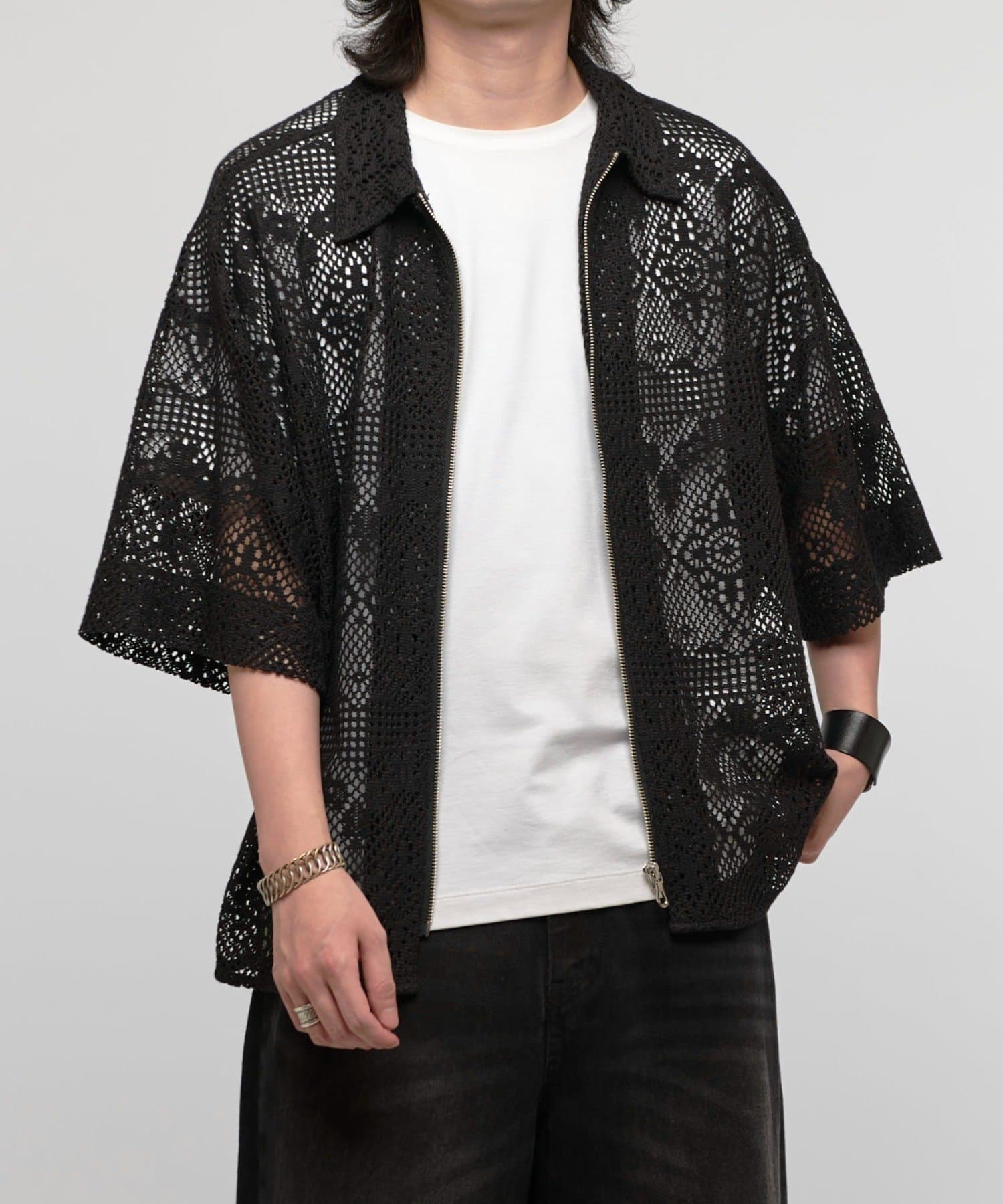 クロシェ編み半袖ZIPシャツ