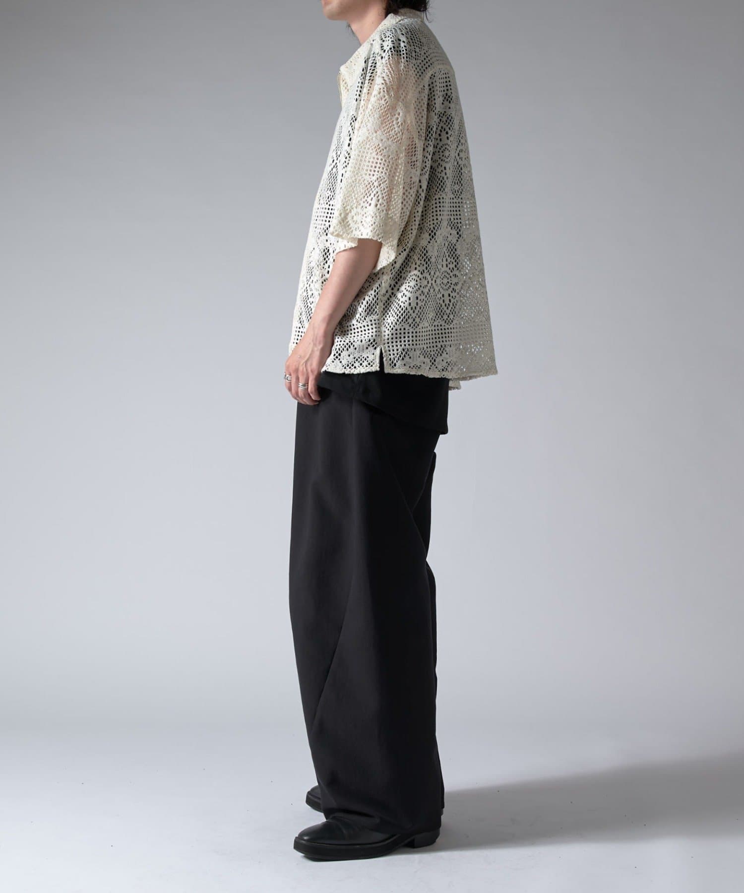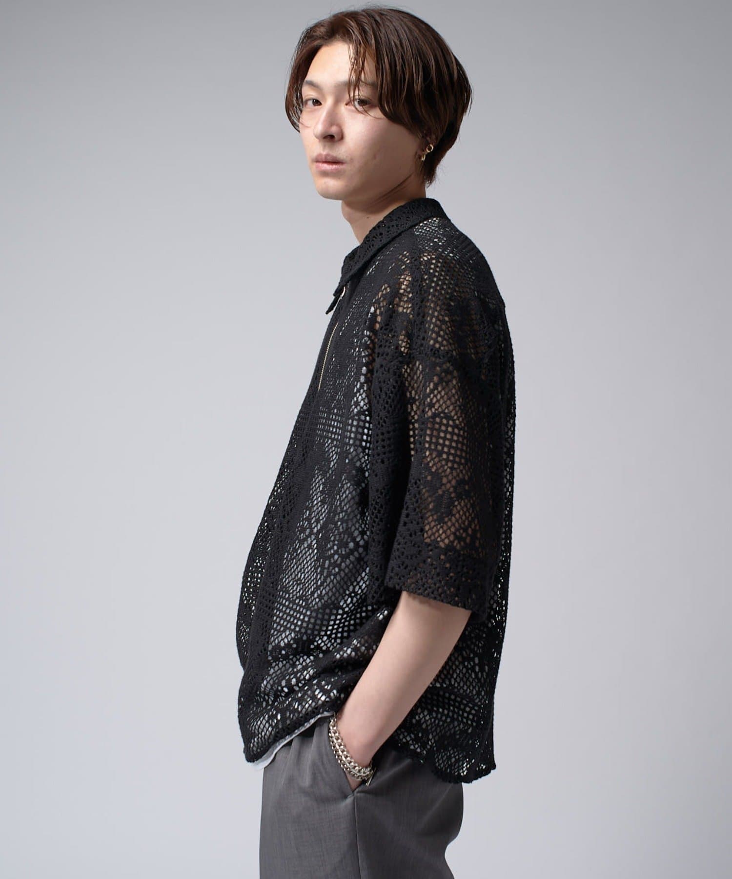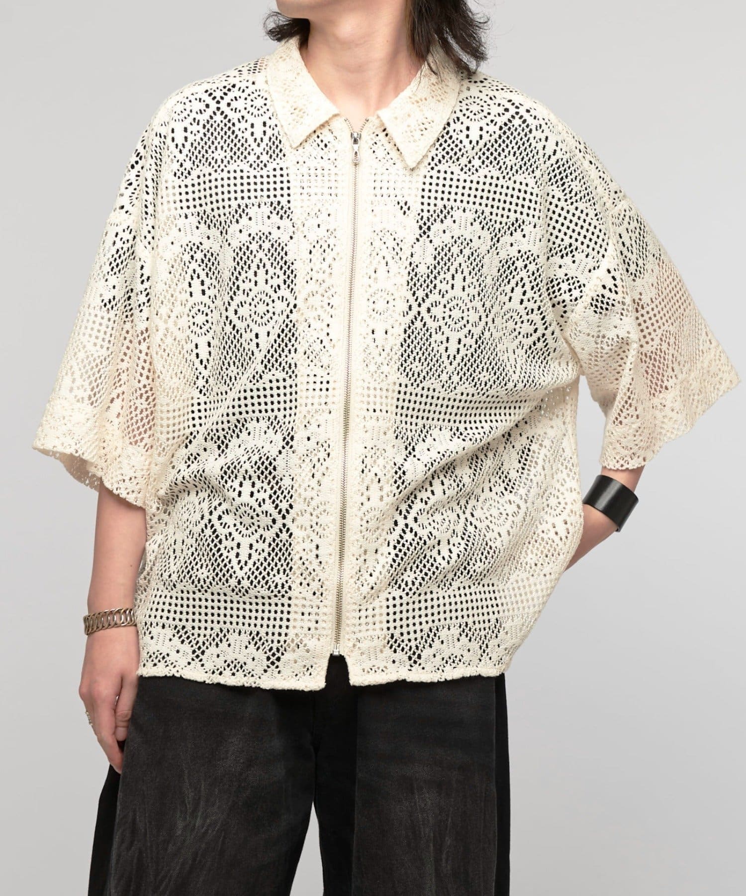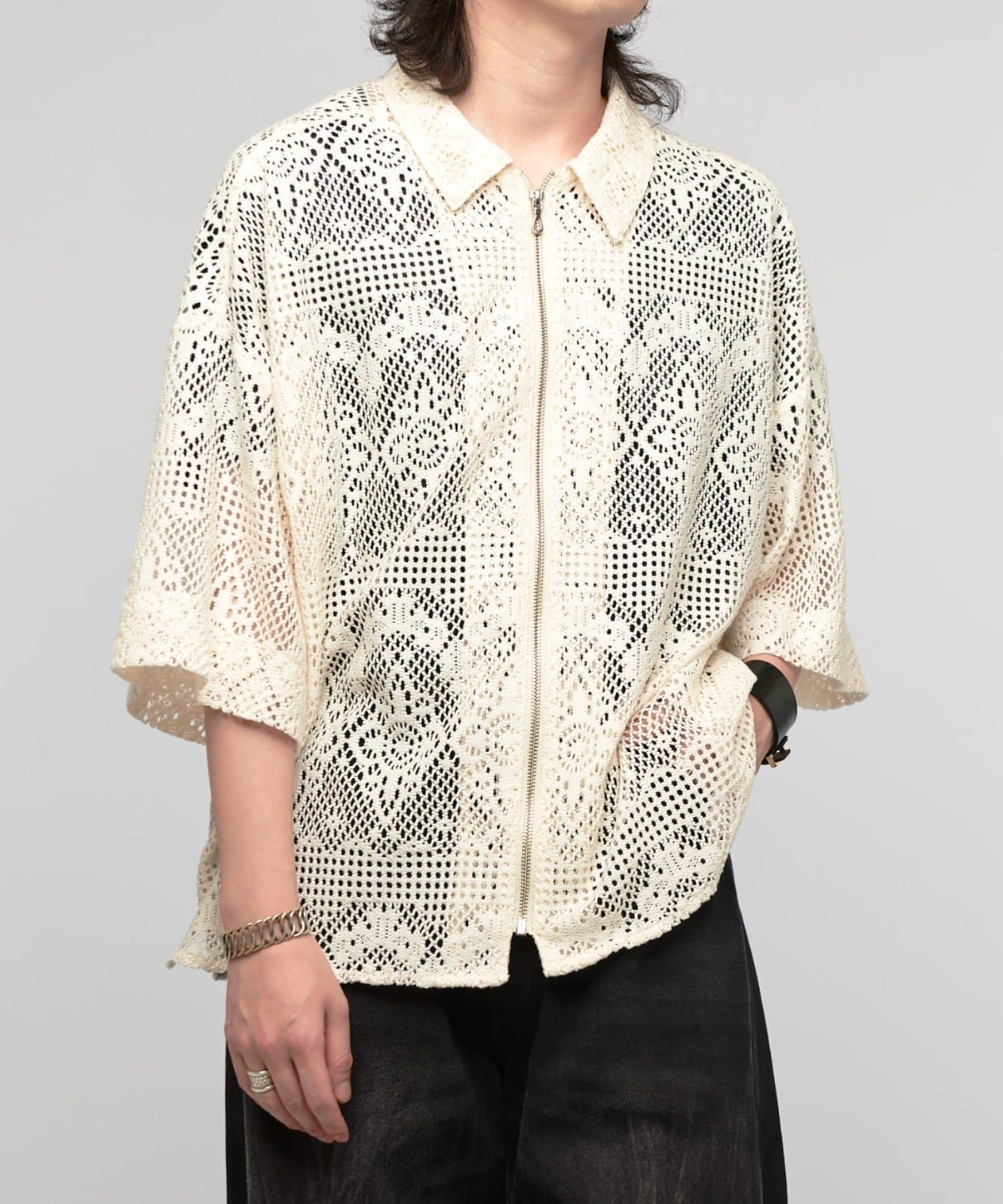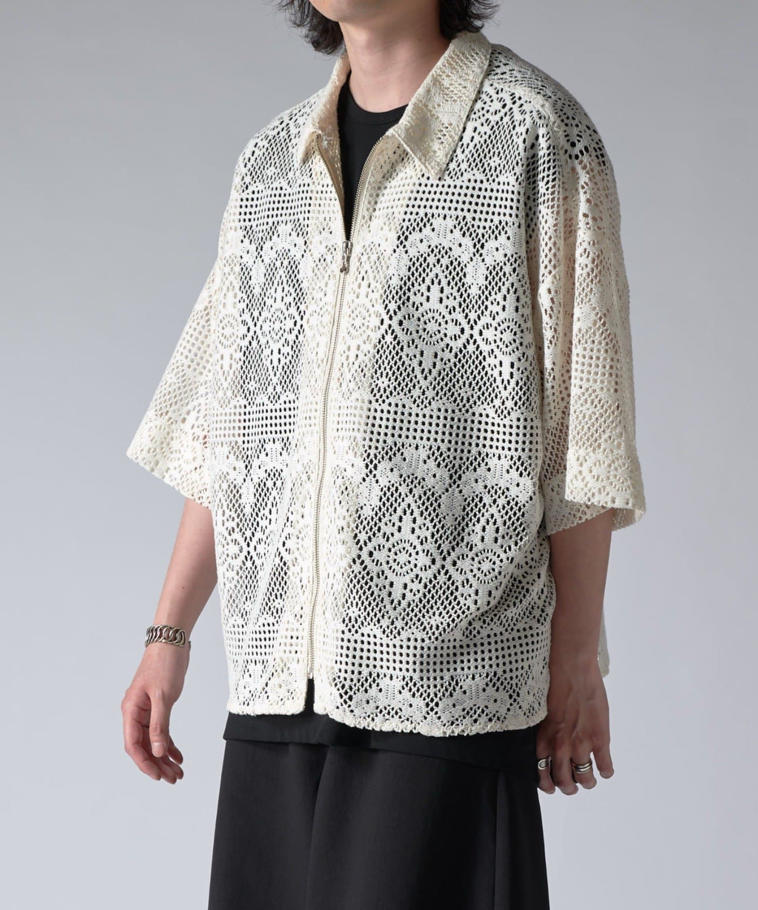 クロシェ編み半袖ZIPシャツ