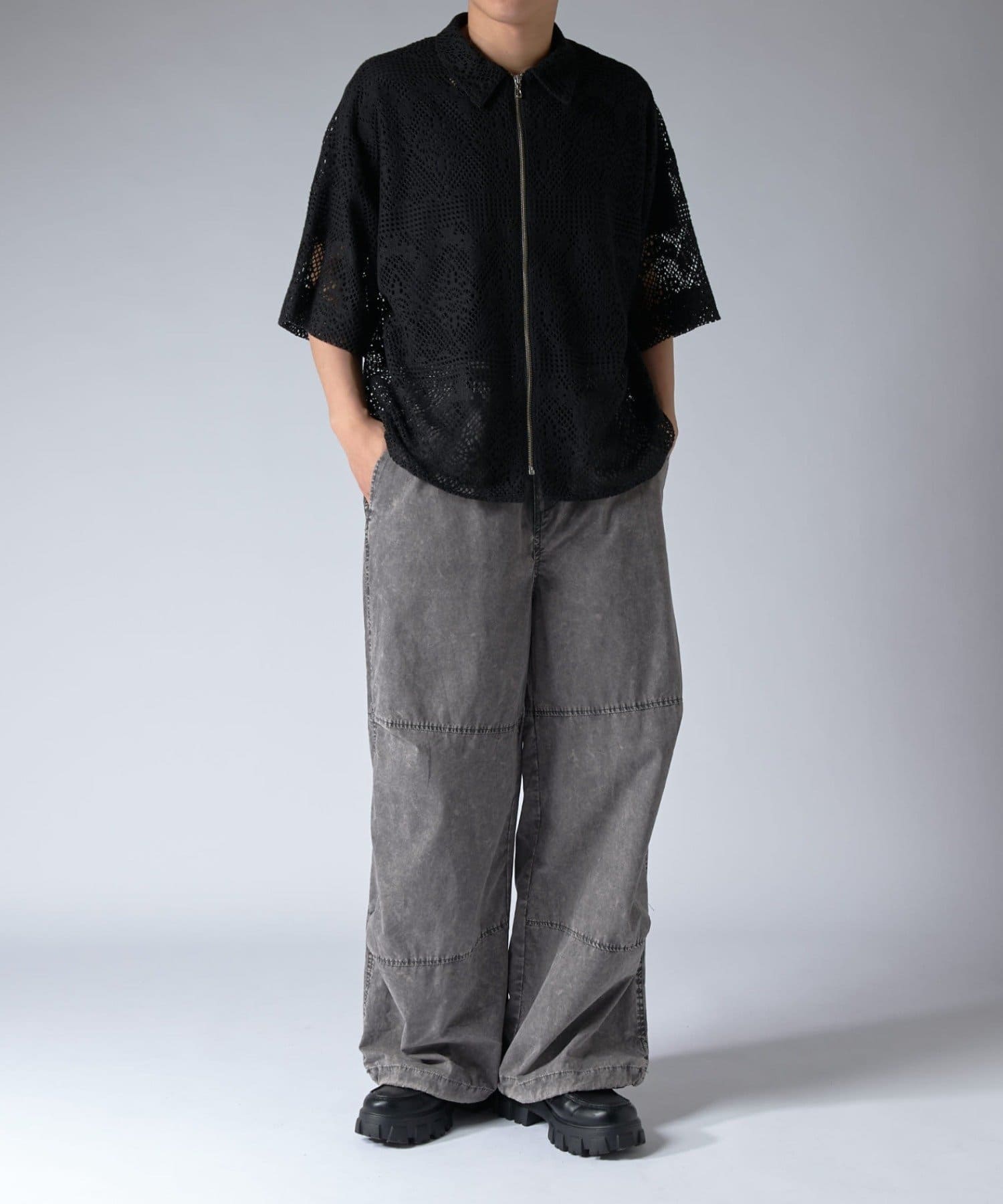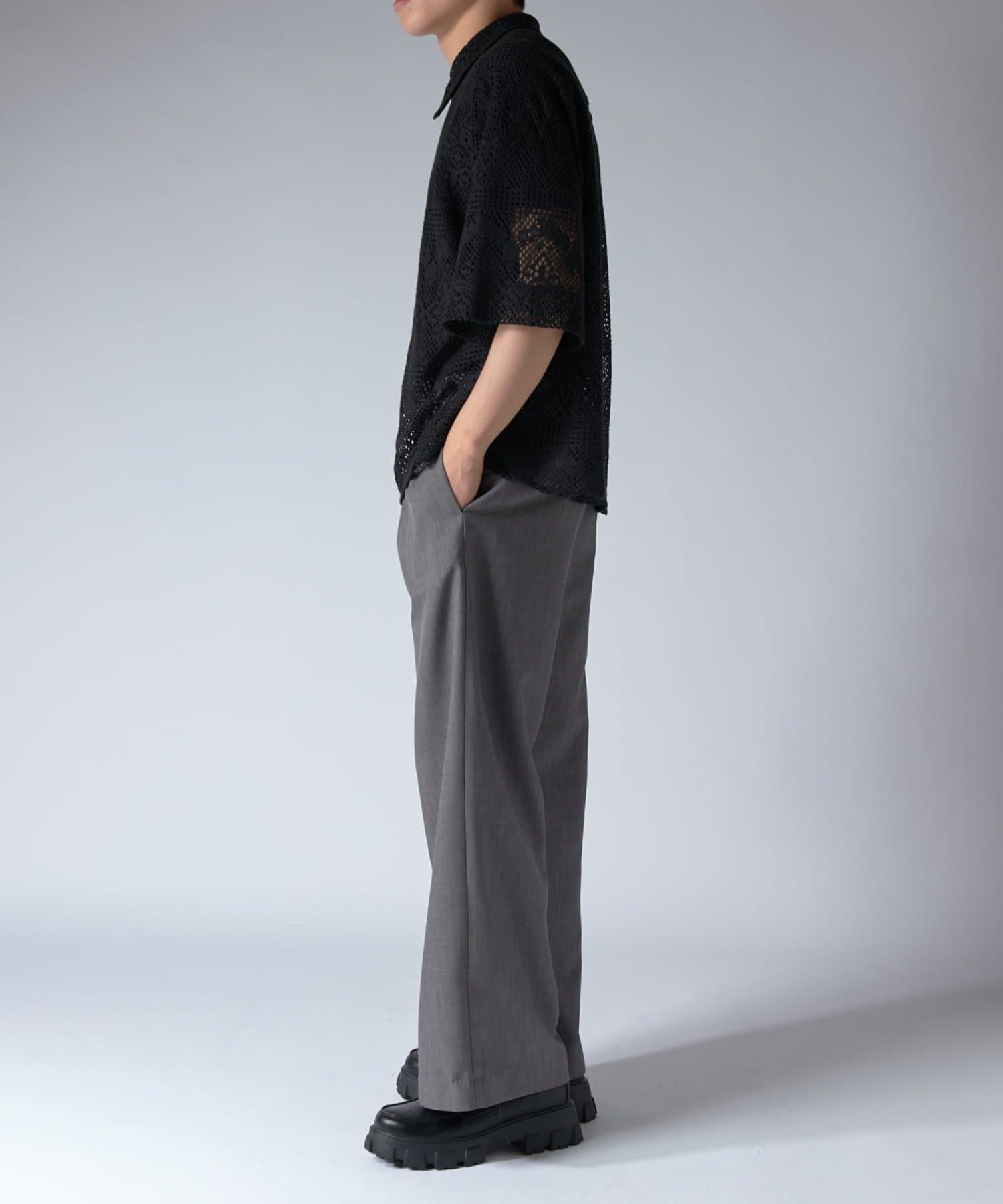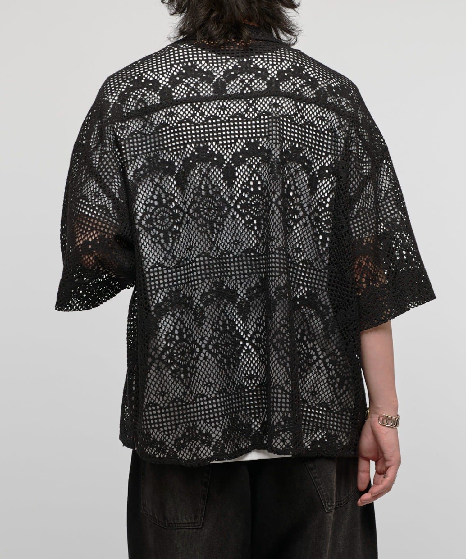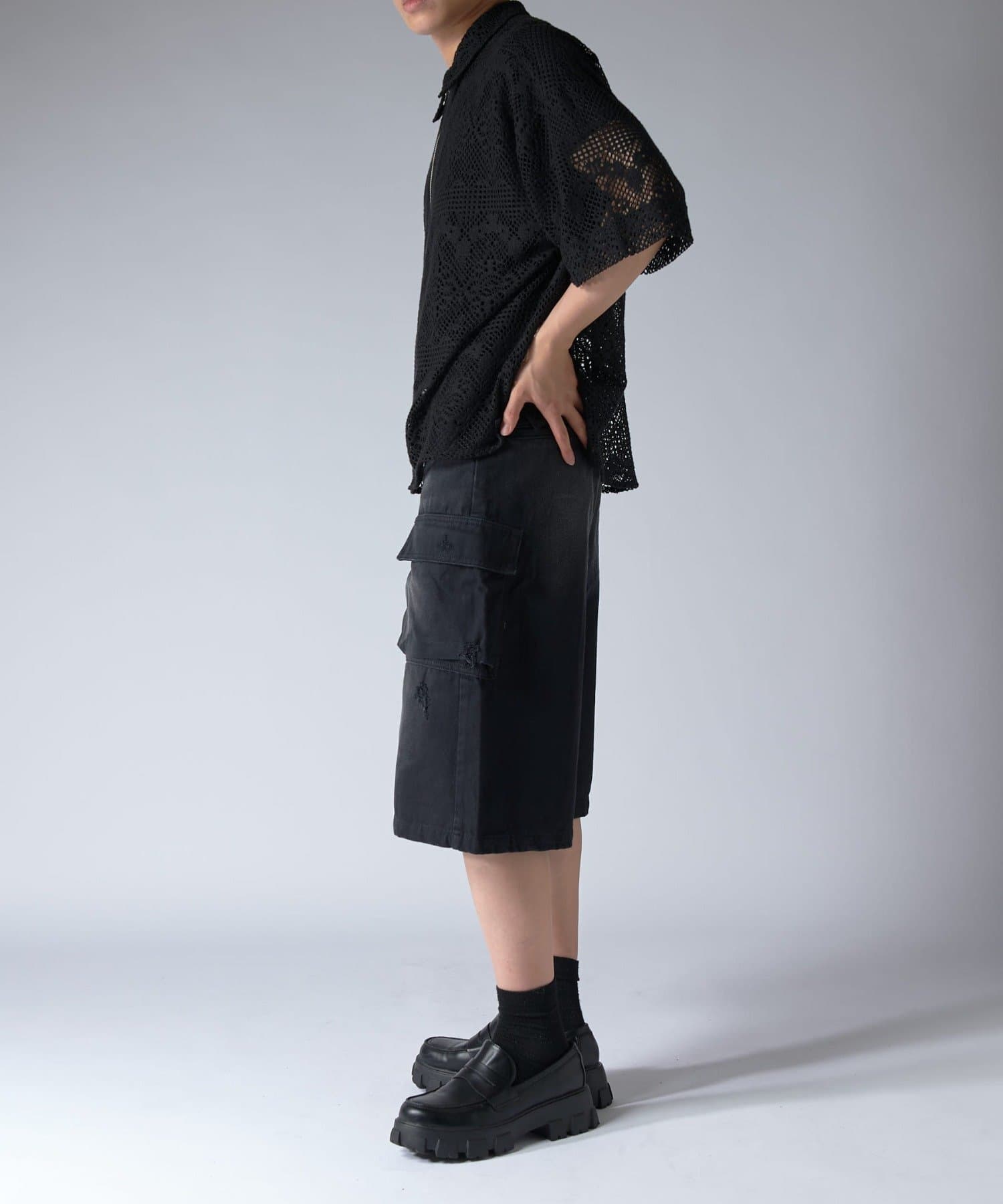 クロシェ編み半袖ZIPシャツ