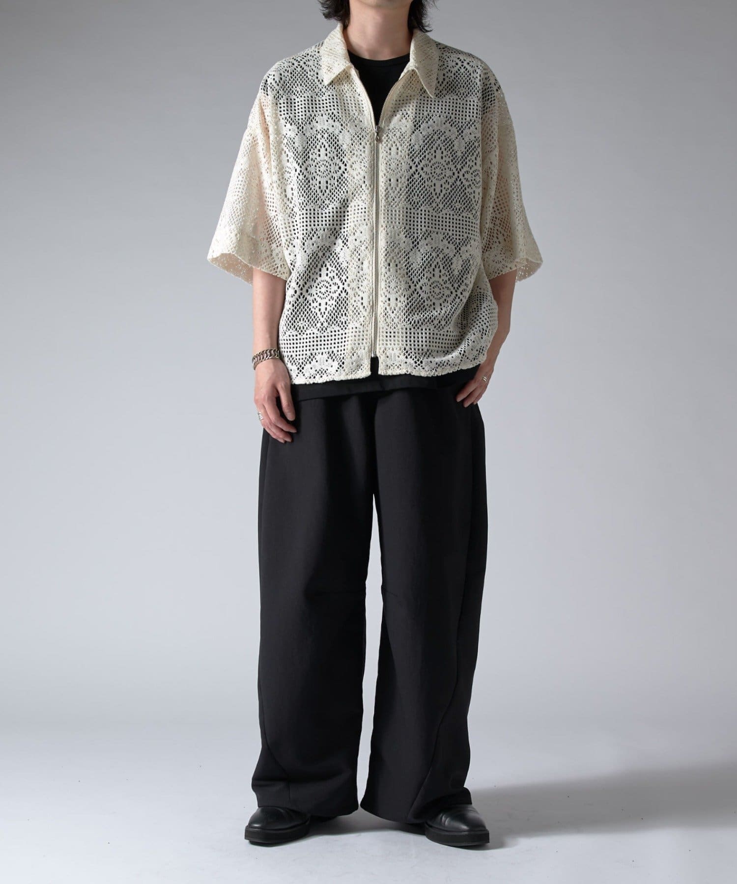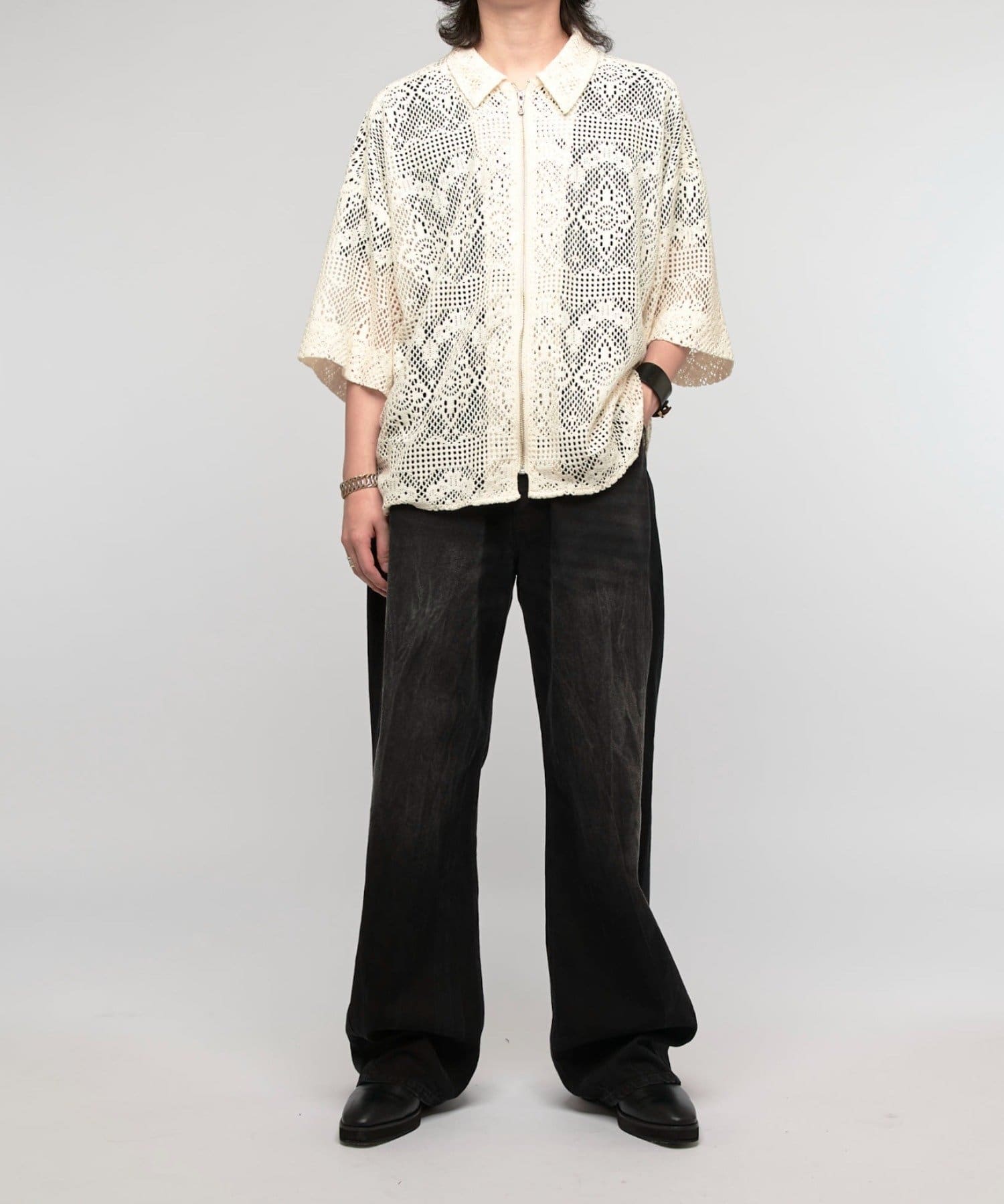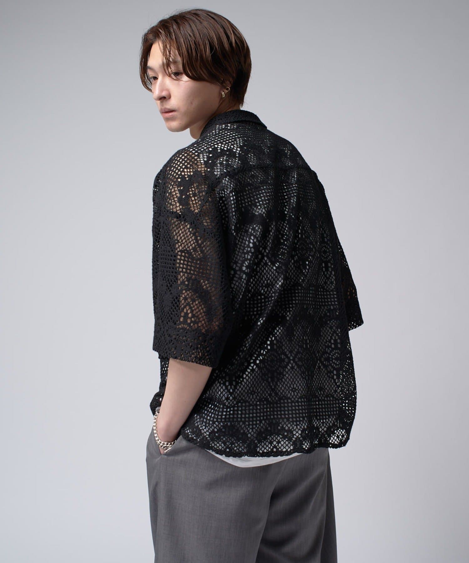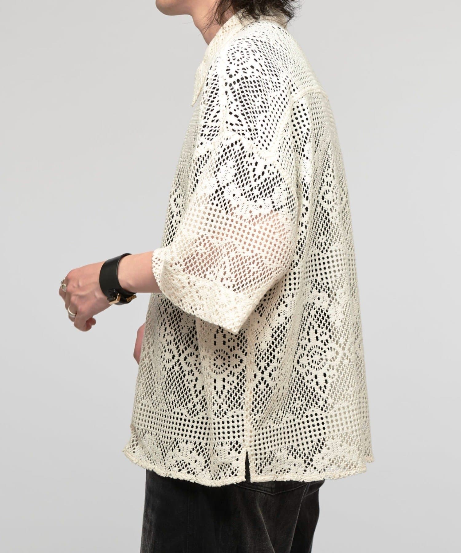 Lui's(ルイス)25SS クロシェ編み半袖ZIPシャツ