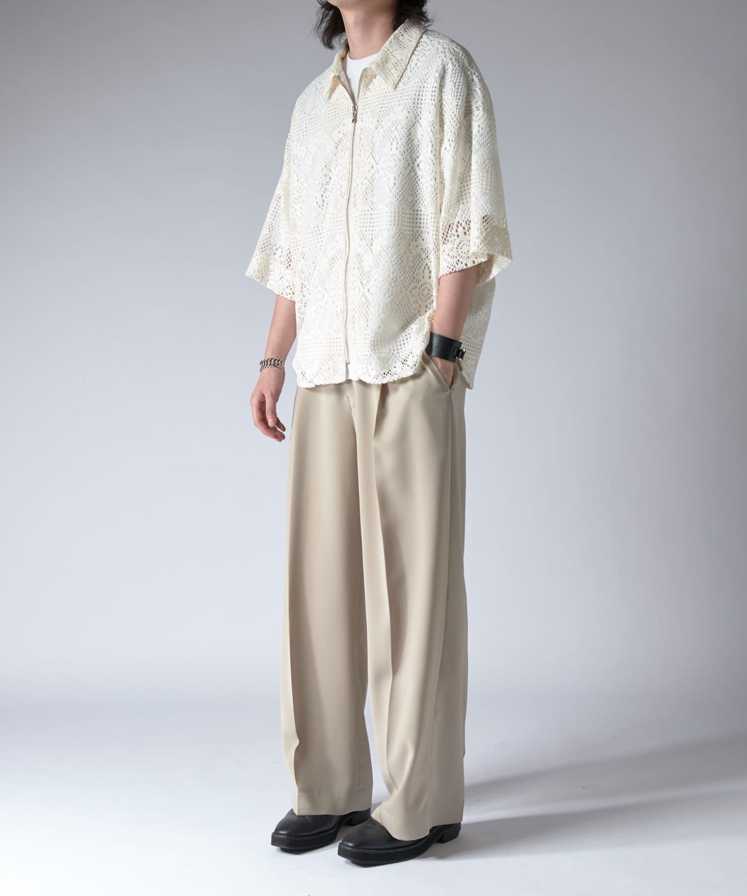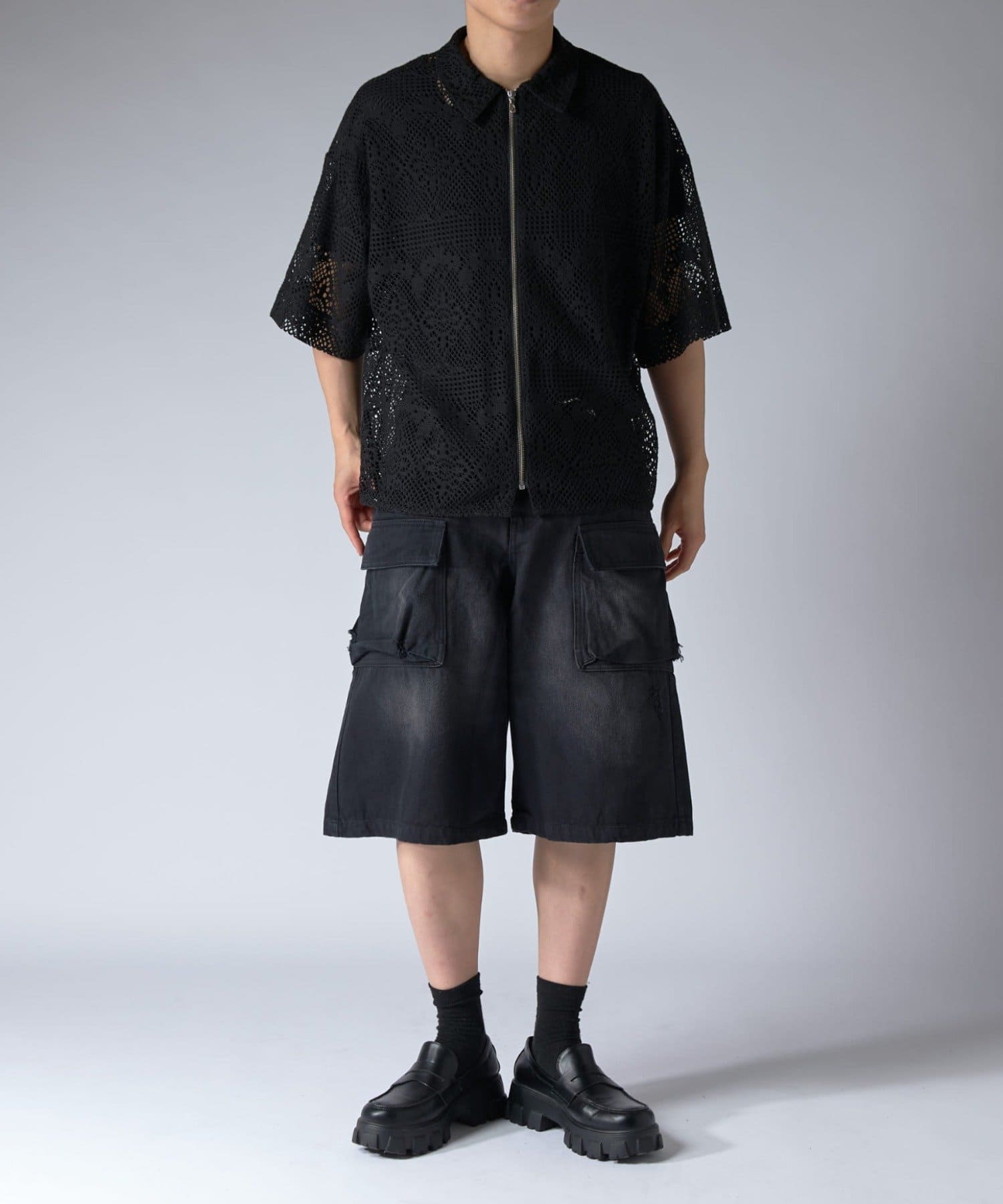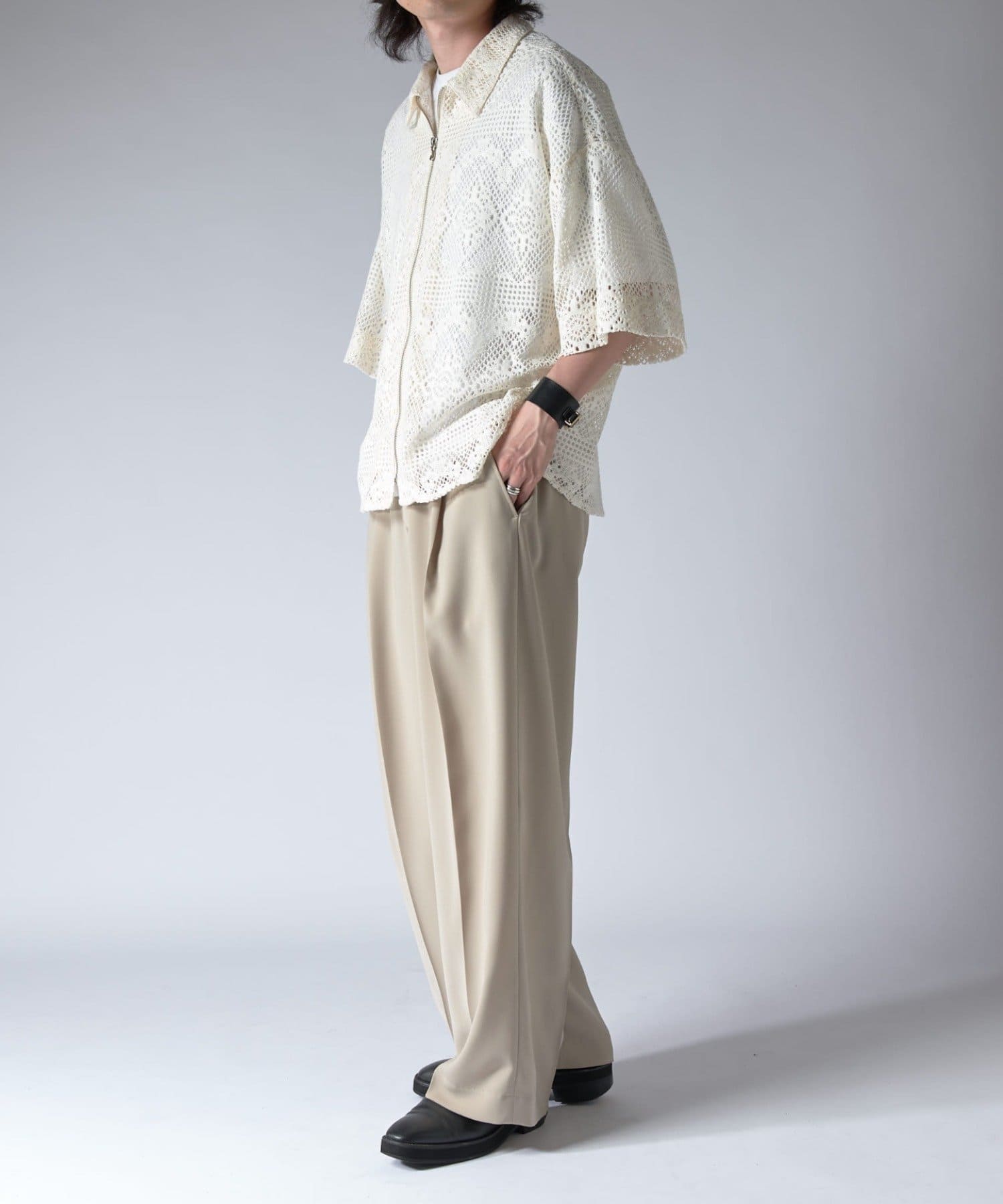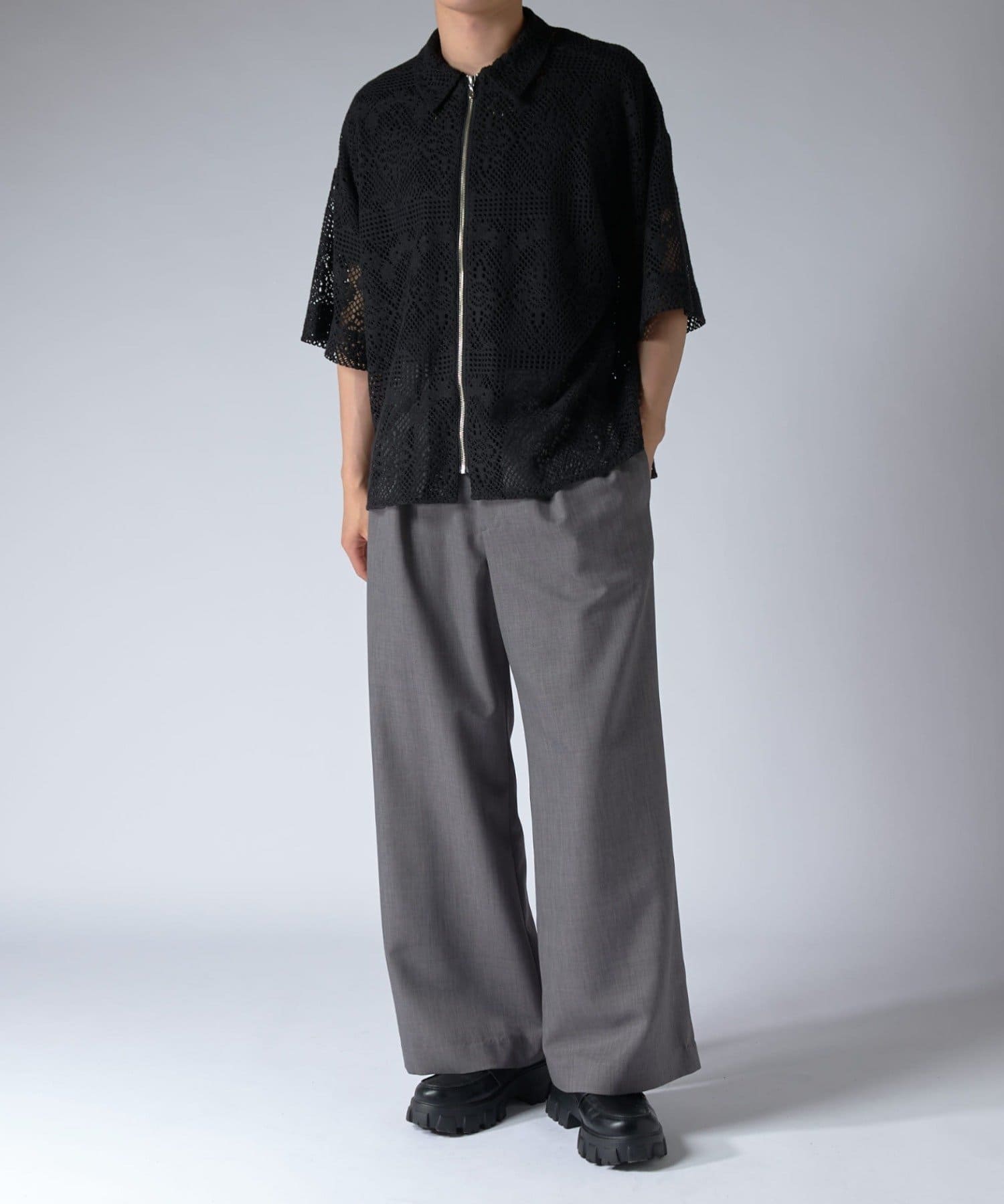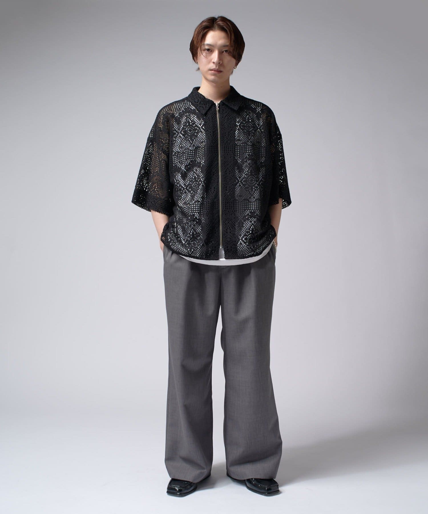 Lui's(ルイス)25SS クロシェ編み半袖ZIPシャツ