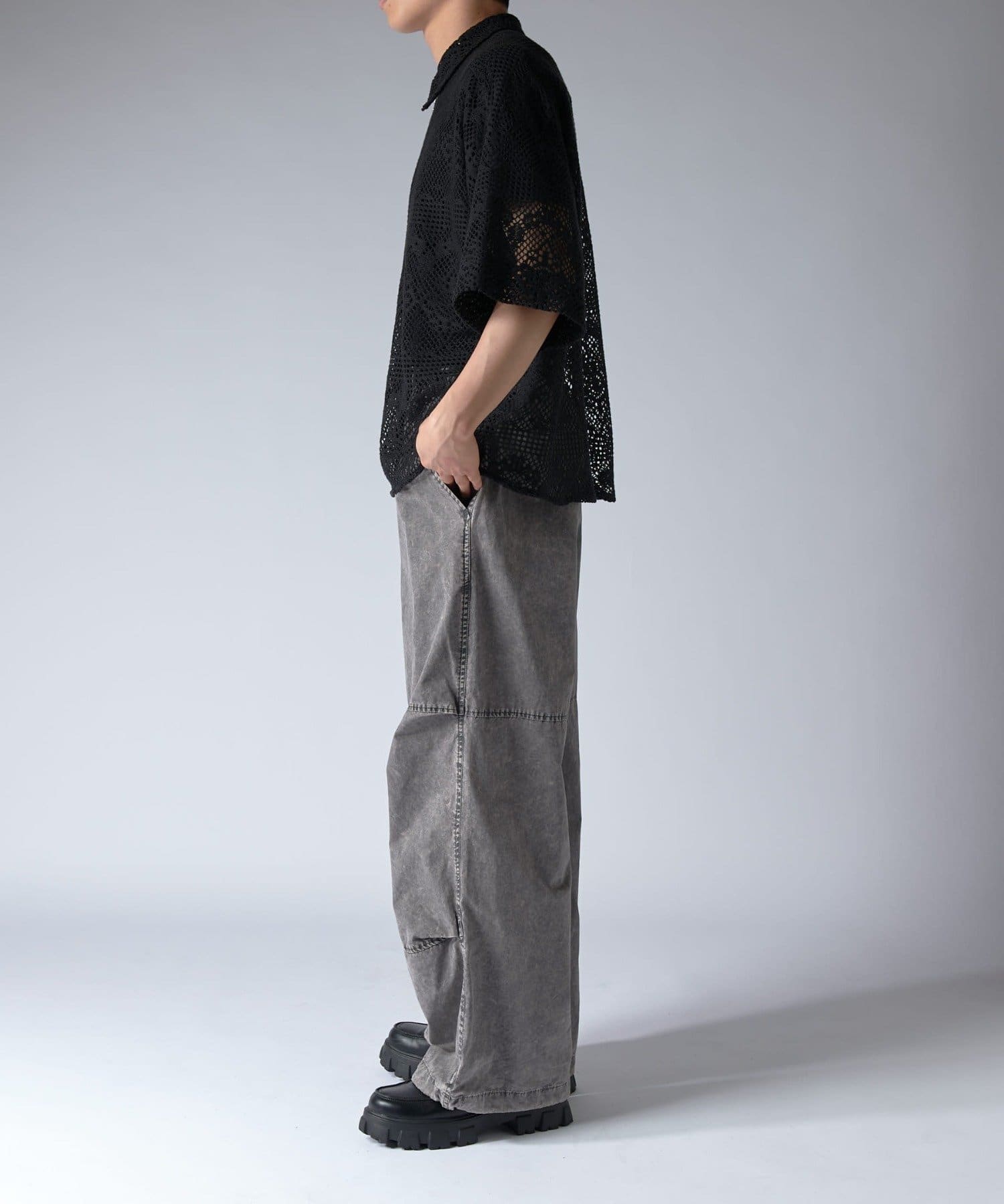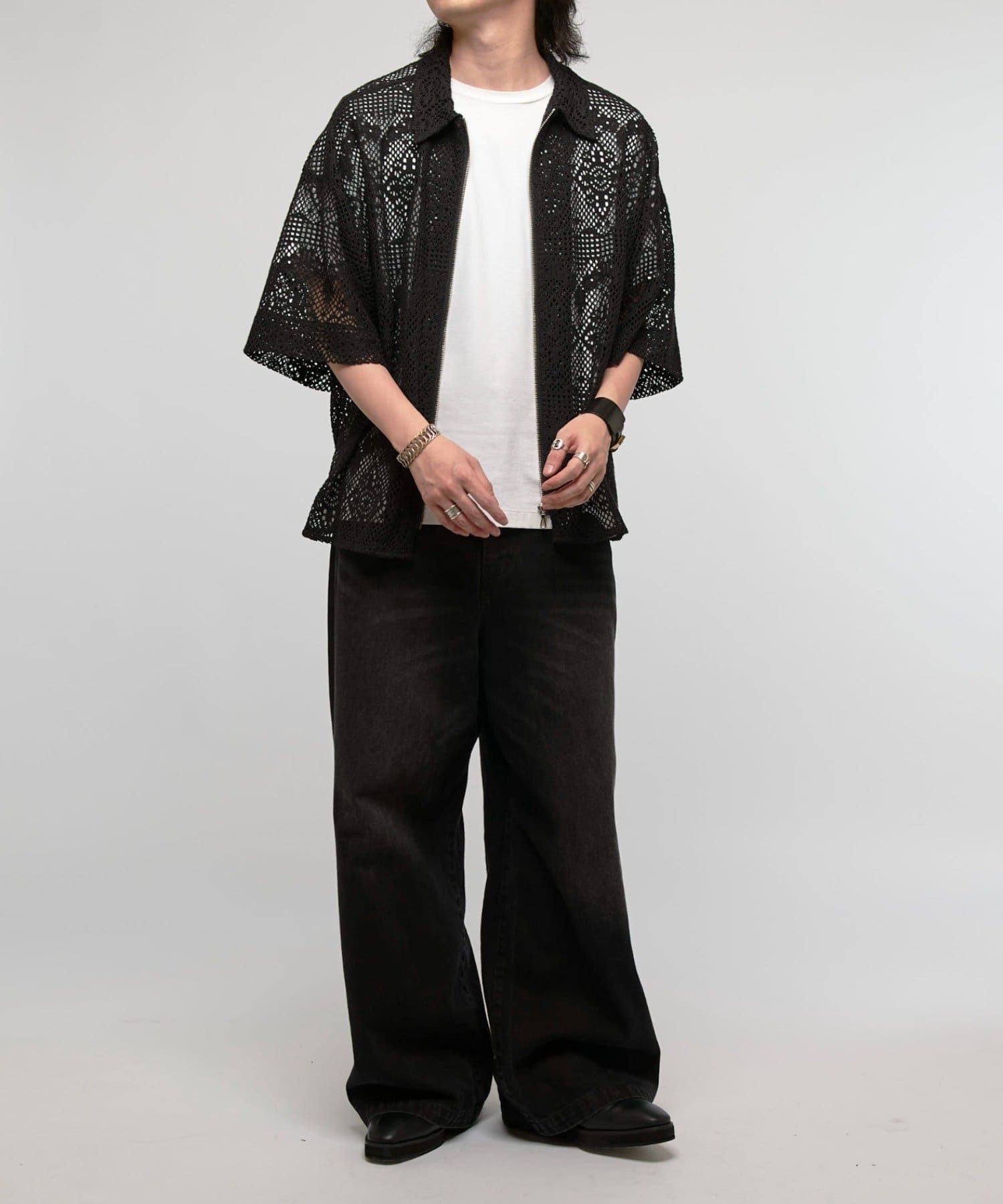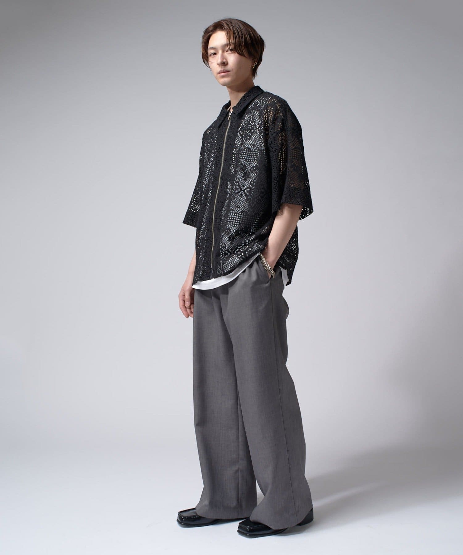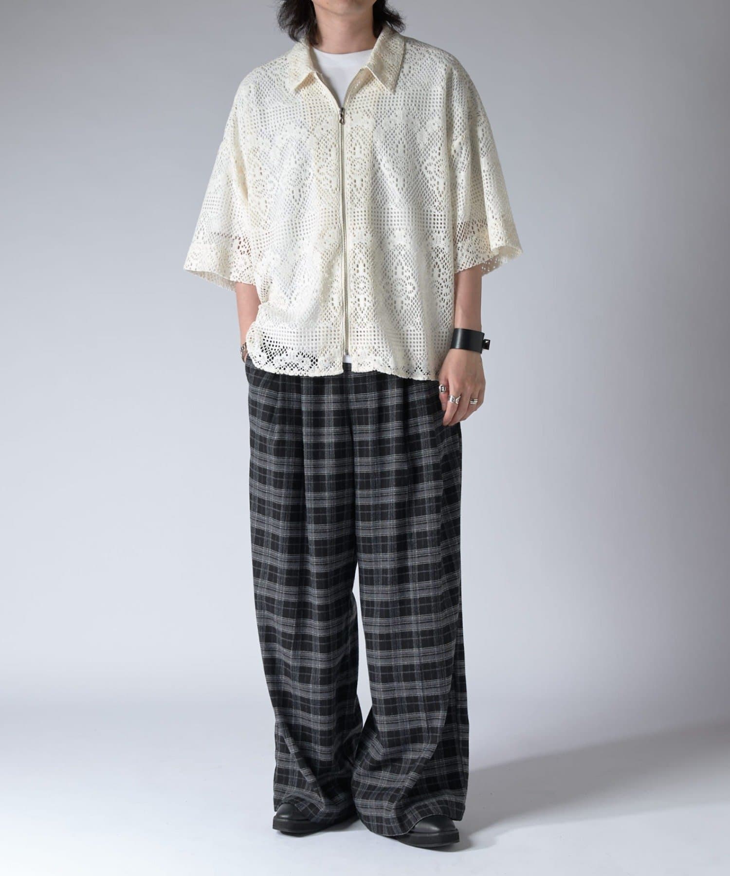 Lui's(ルイス)25SS クロシェ編み半袖ZIPシャツ