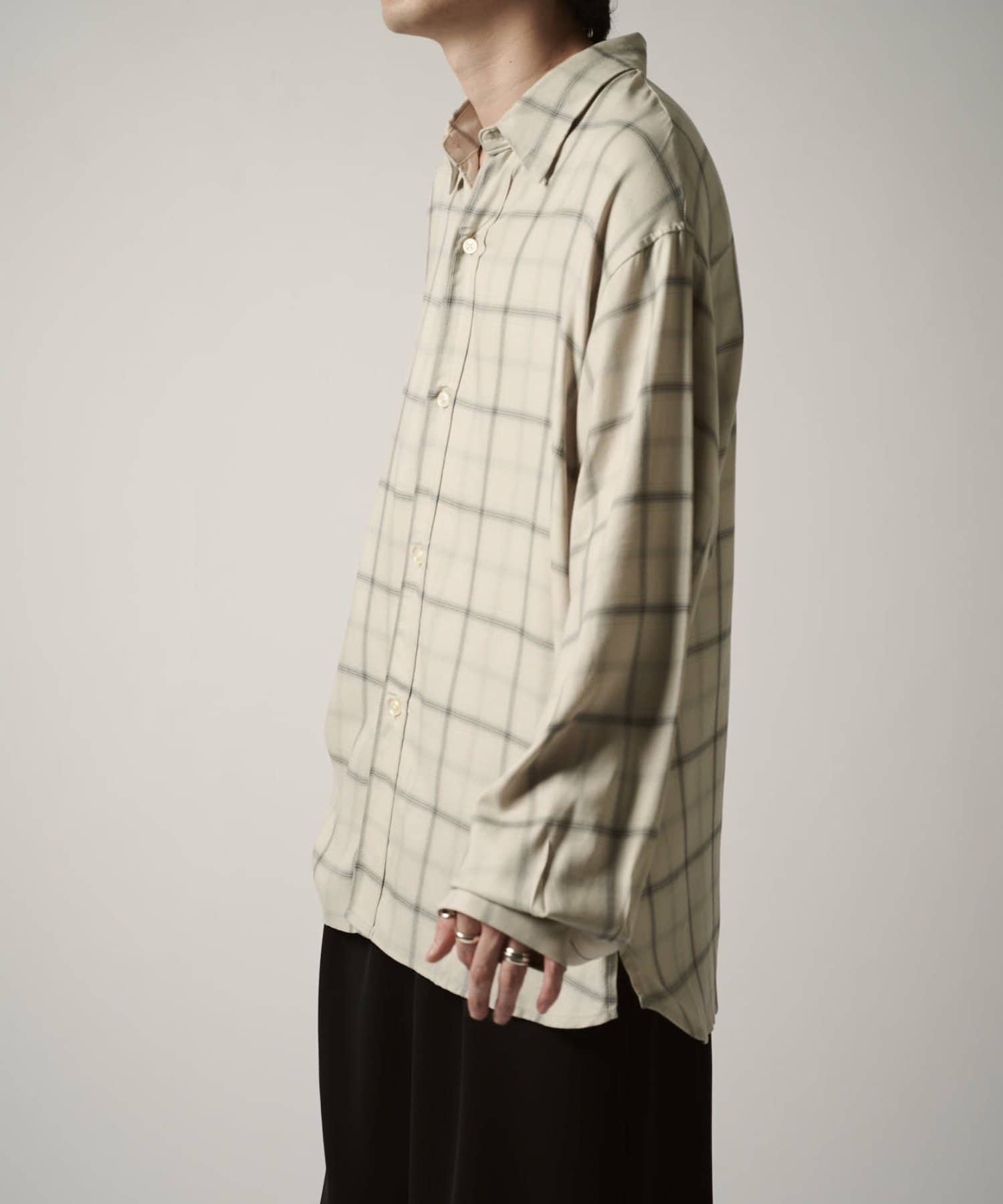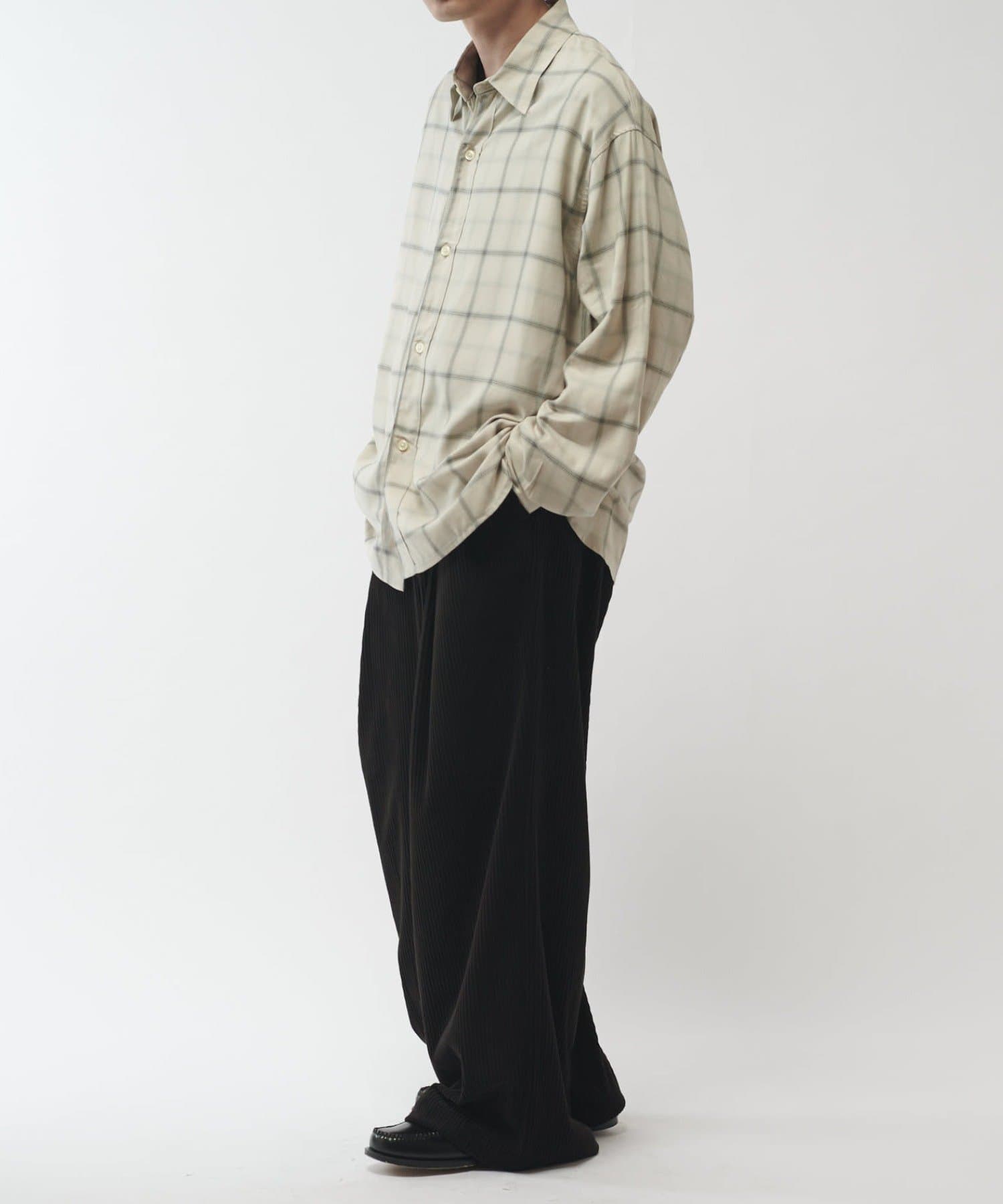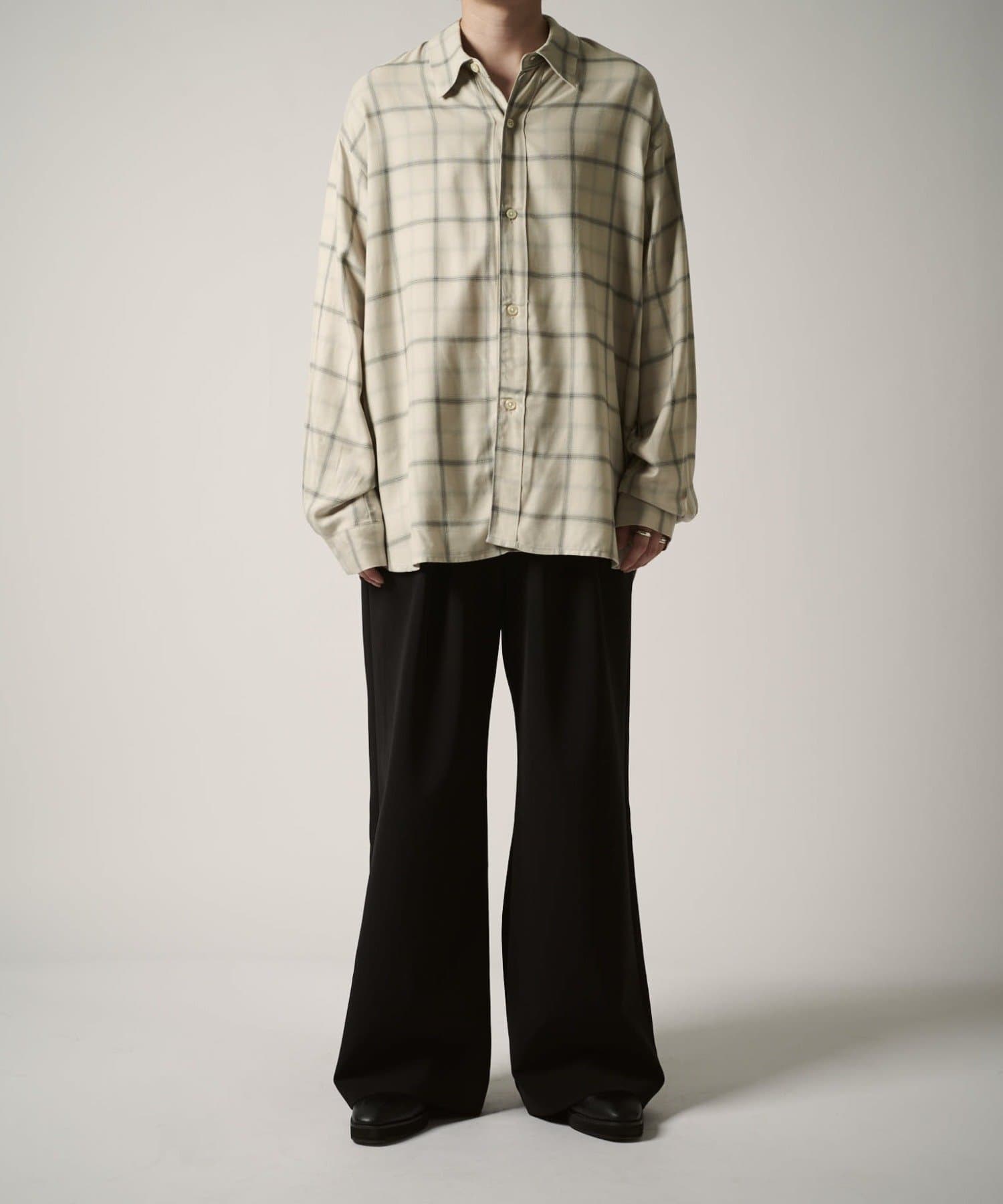 カジュアルなコットン素材のチェックとは違い、滑らかなレーヨンで表現する事で、キレイめな印象に。カジュアルからモードまで幅広くお使い頂けるアイテムです。