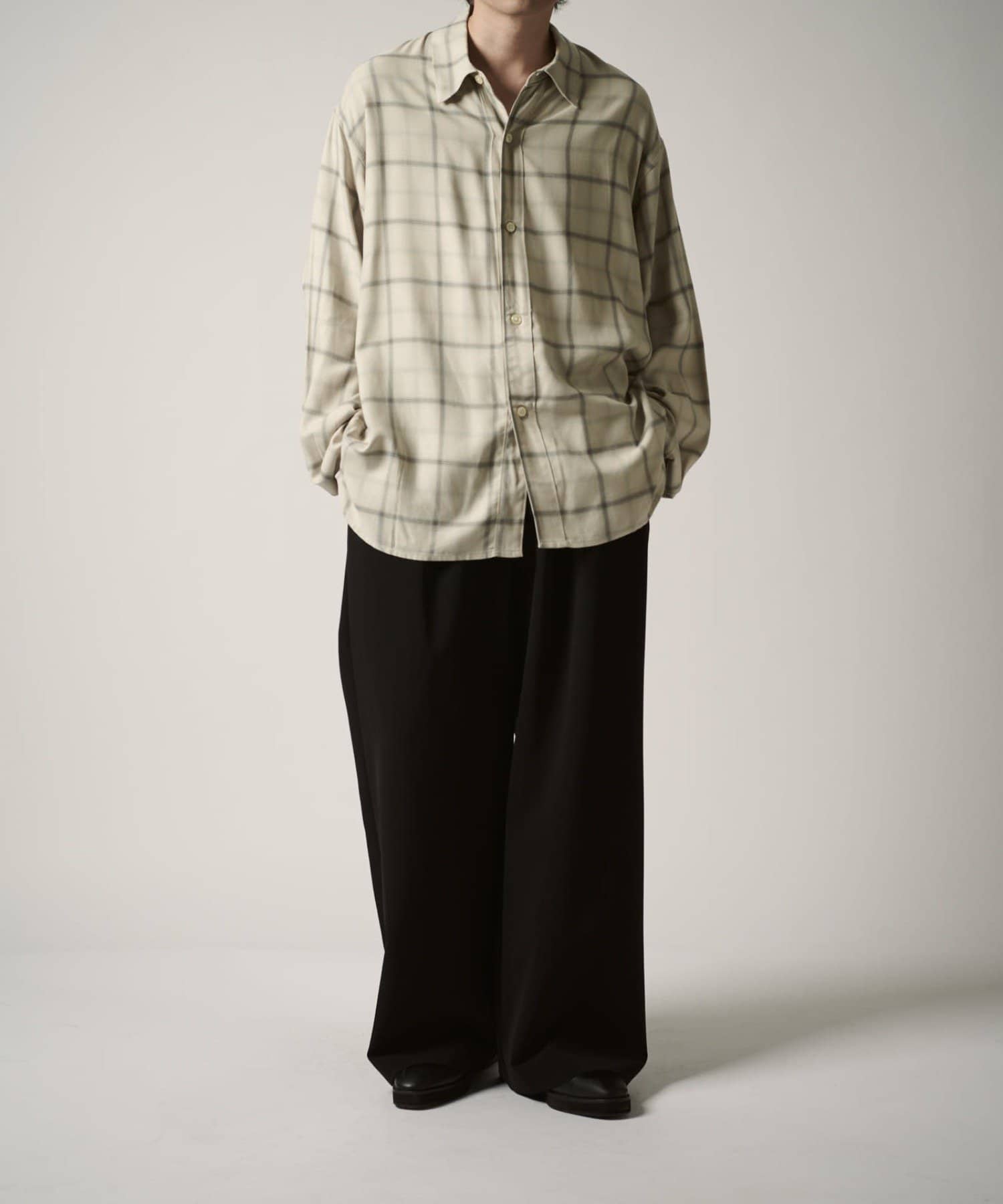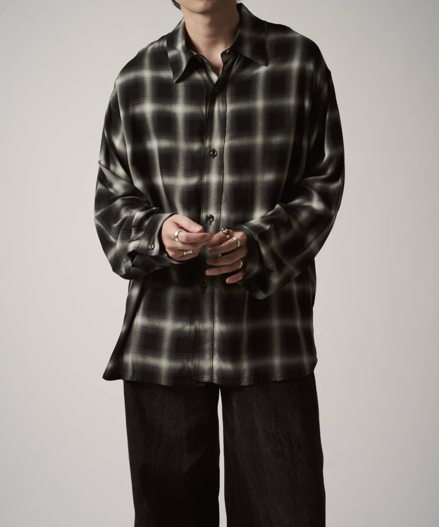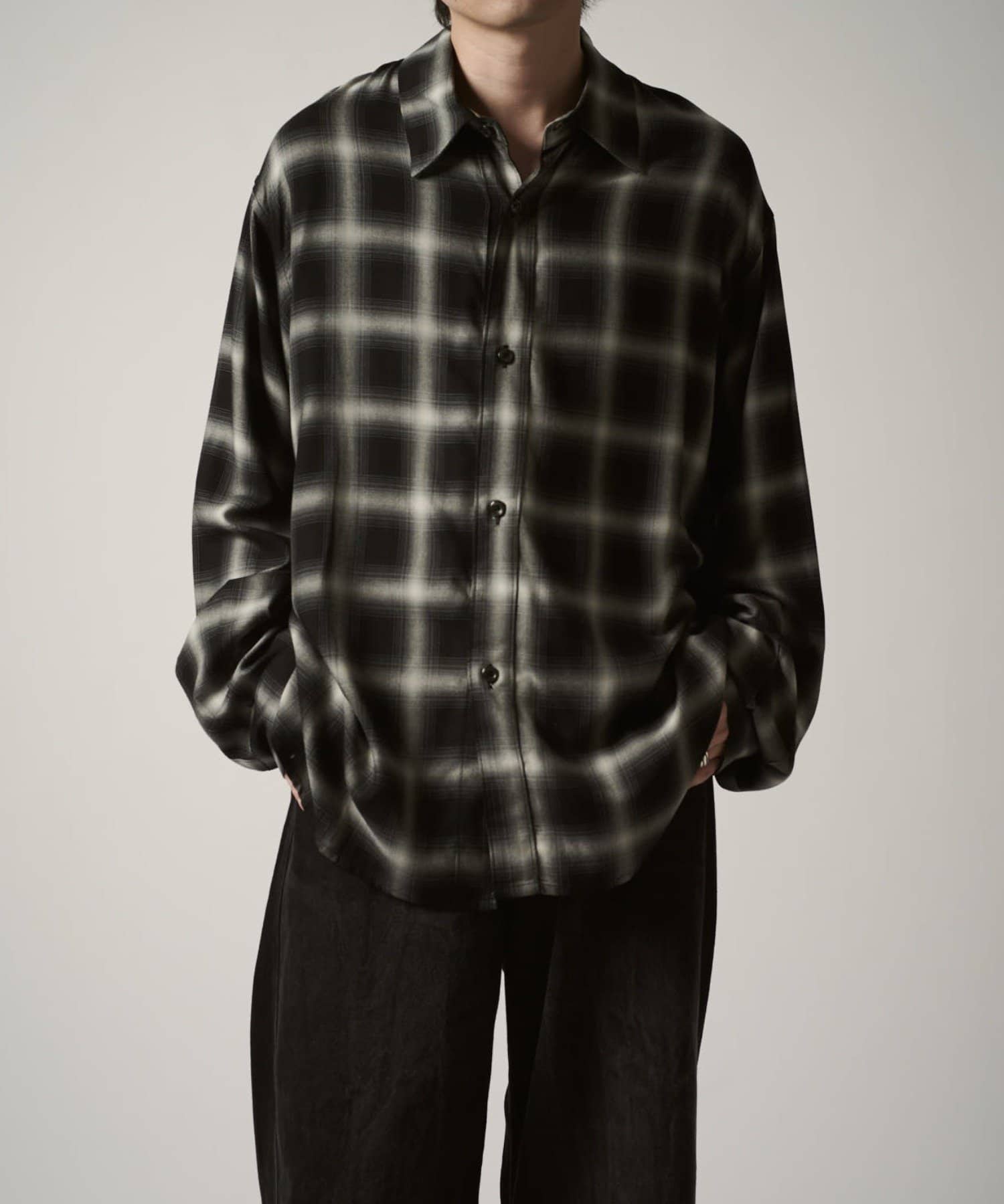 カジュアルなコットン素材のチェックとは違い、滑らかなレーヨンで表現する事で、キレイめな印象に。カジュアルからモードまで幅広くお使い頂けるアイテムです。