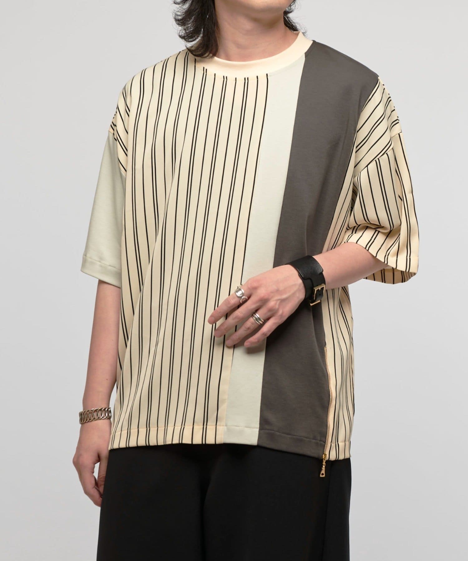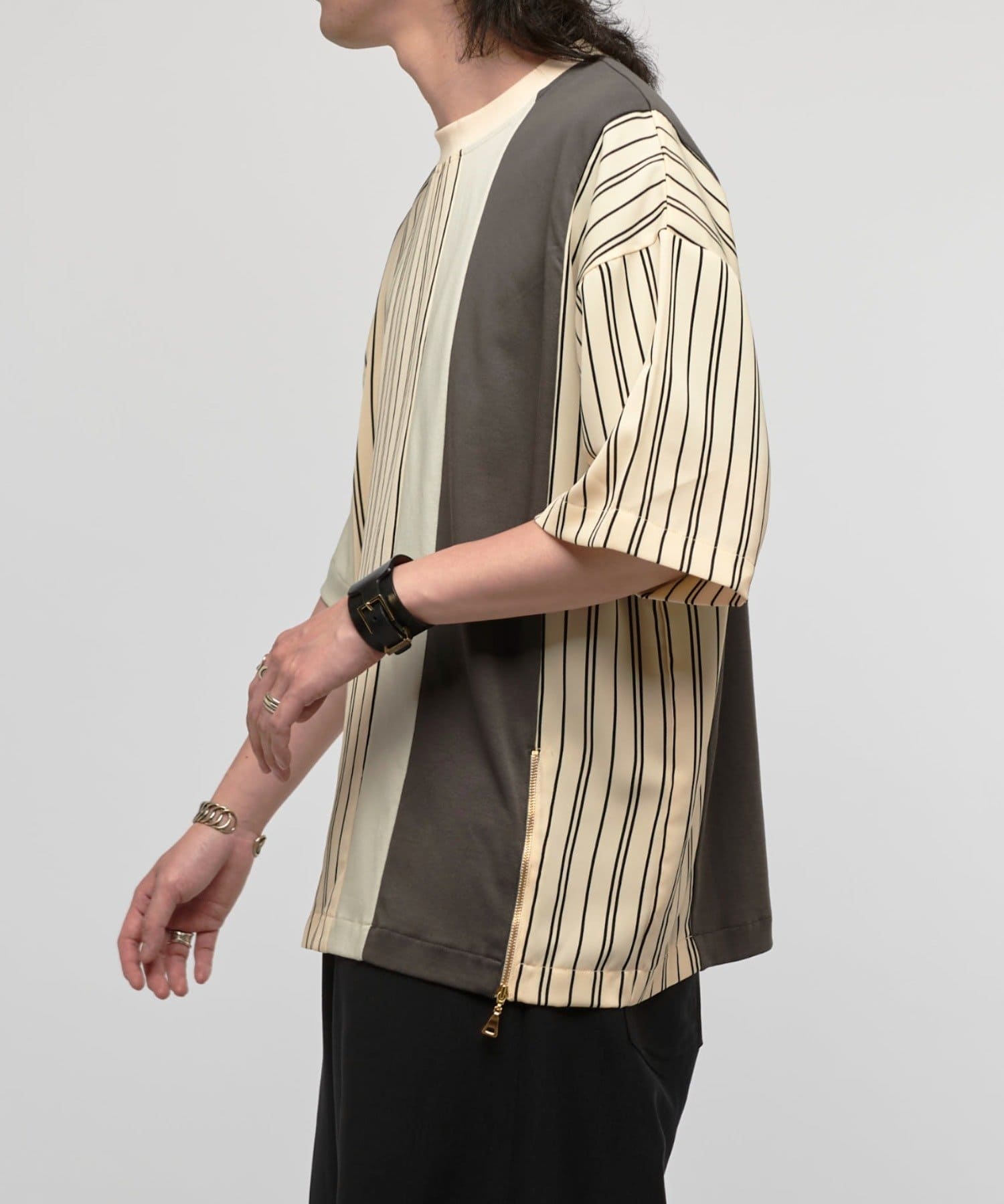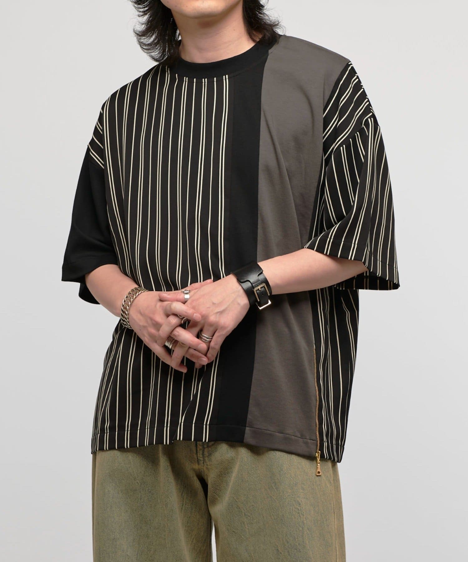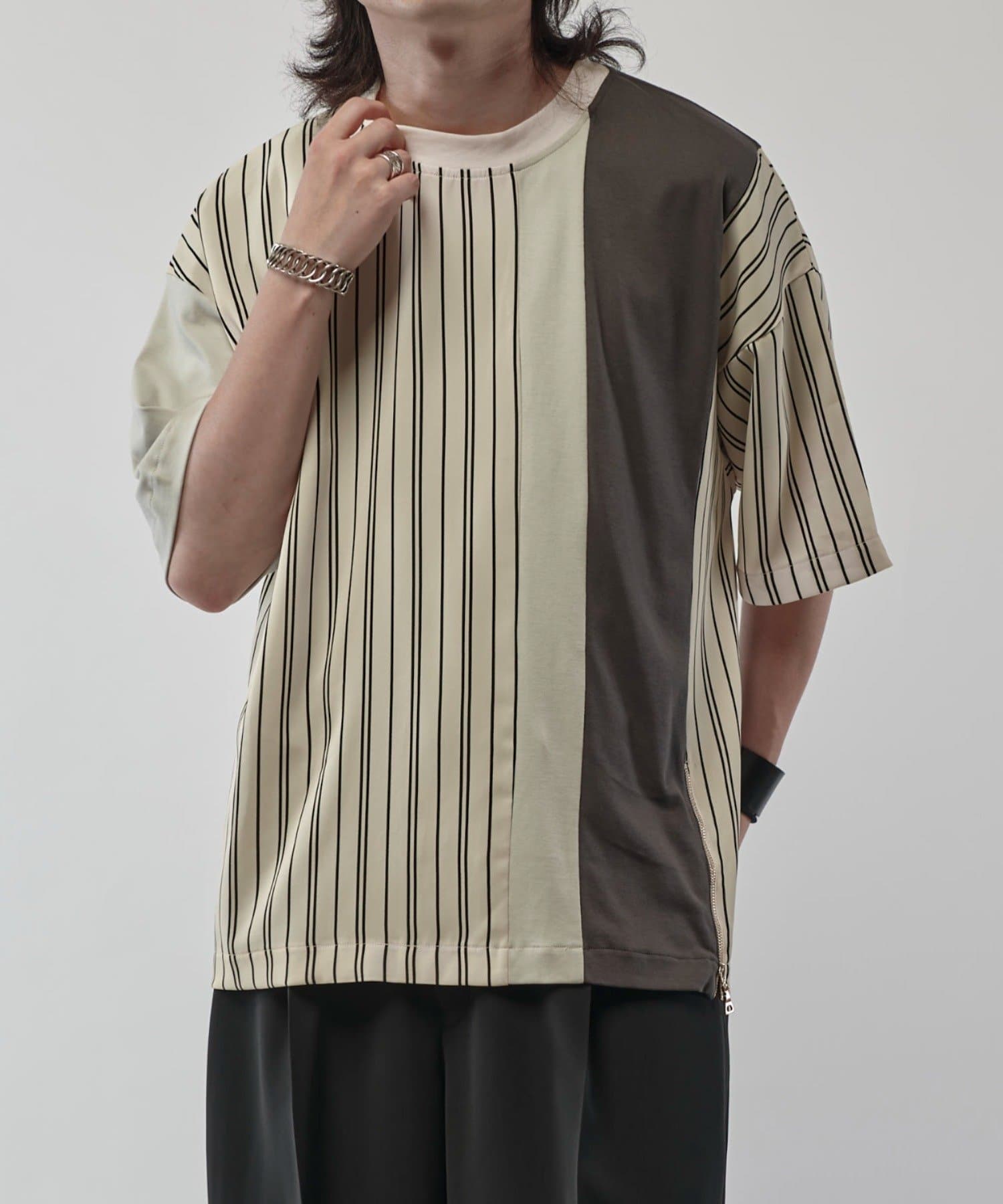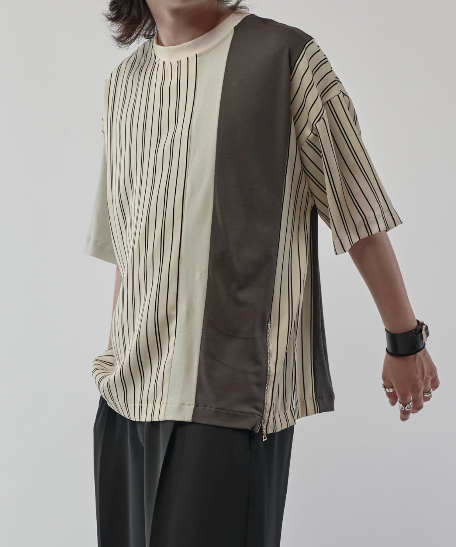 TOP > Lui's > メンズ > トップス > Tシャツ/カットソー > ストライプ切替ZIP Tシャツ