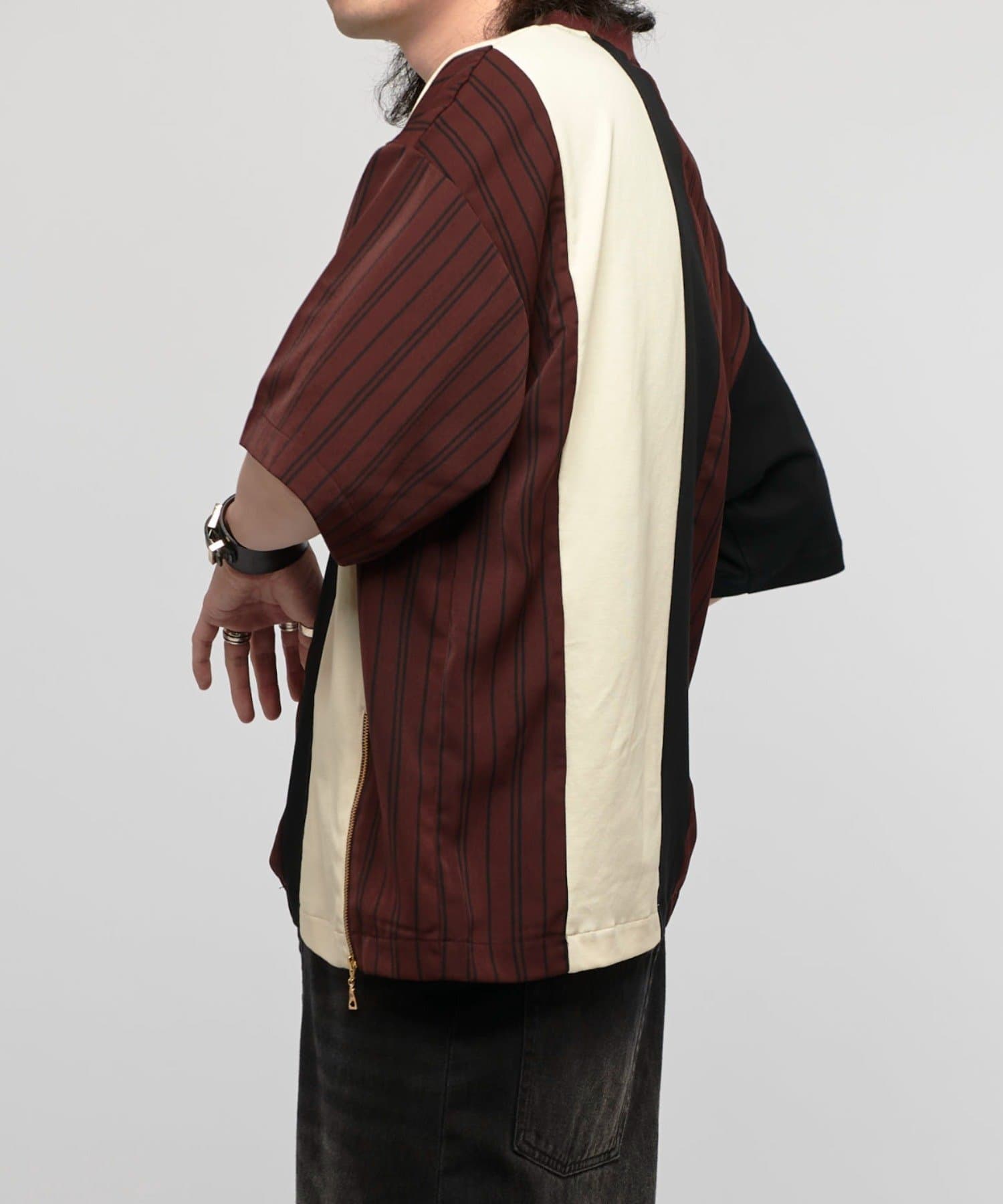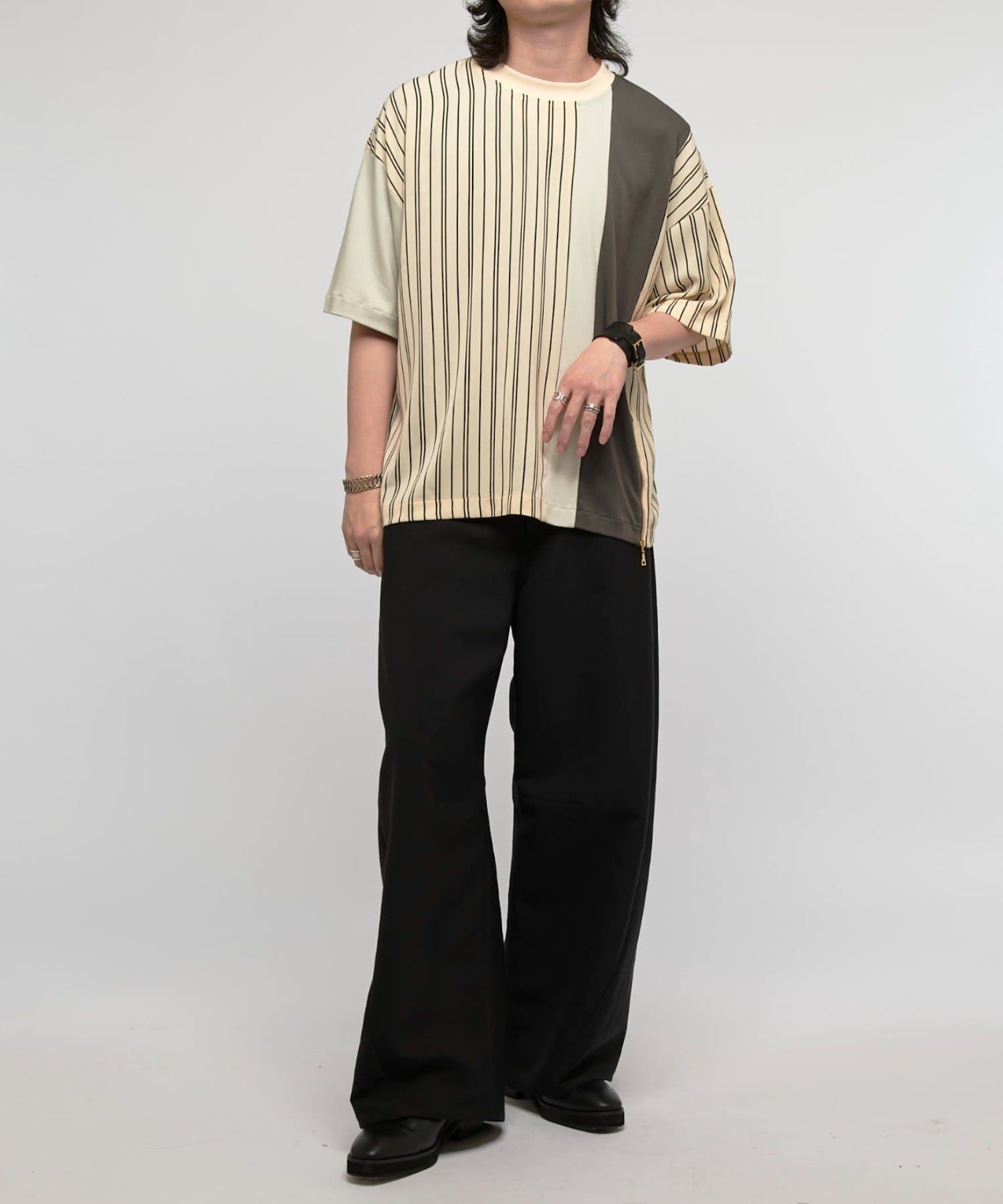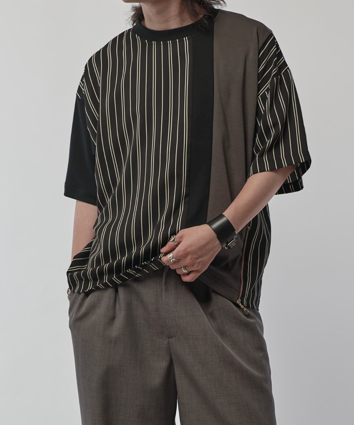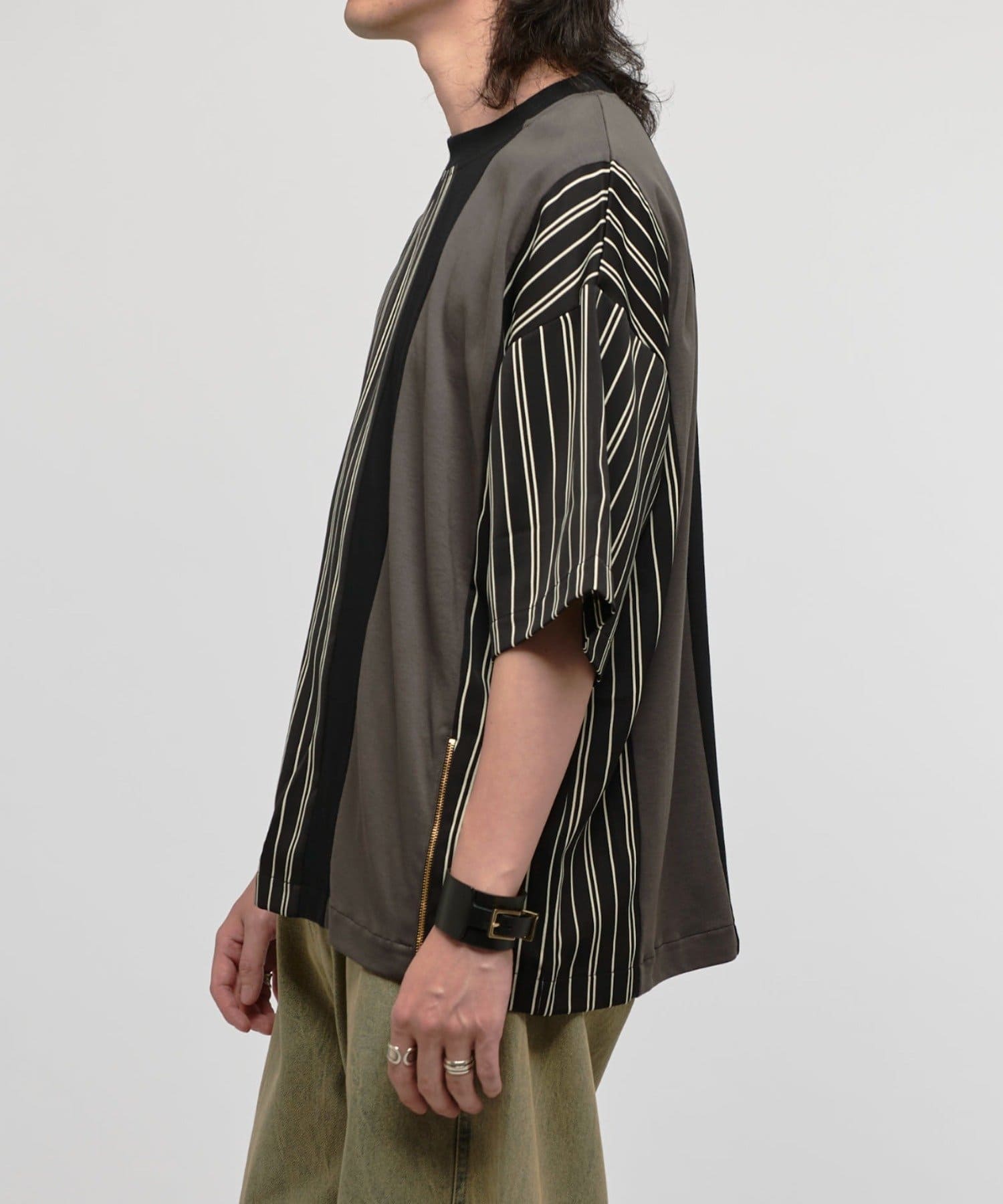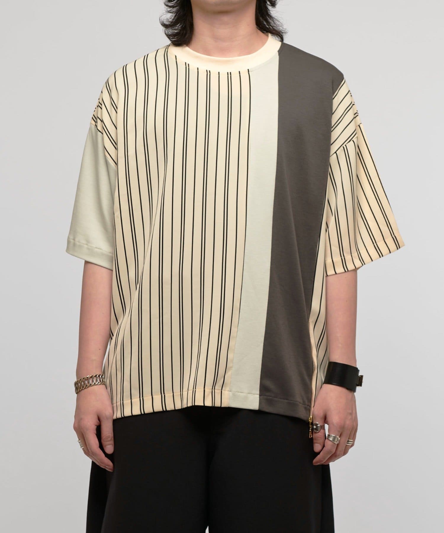 TOP > Lui's > メンズ > トップス > Tシャツ/カットソー > ストライプ切替ZIP Tシャツ