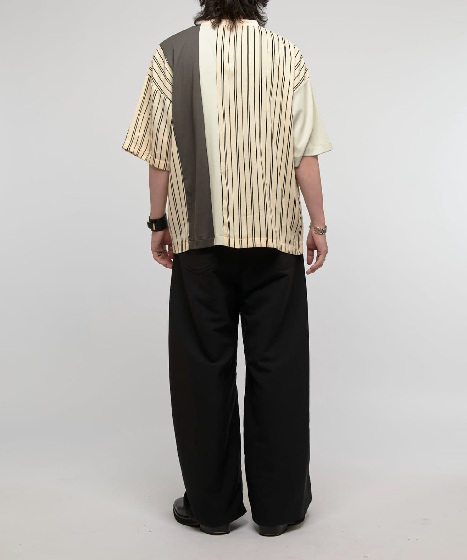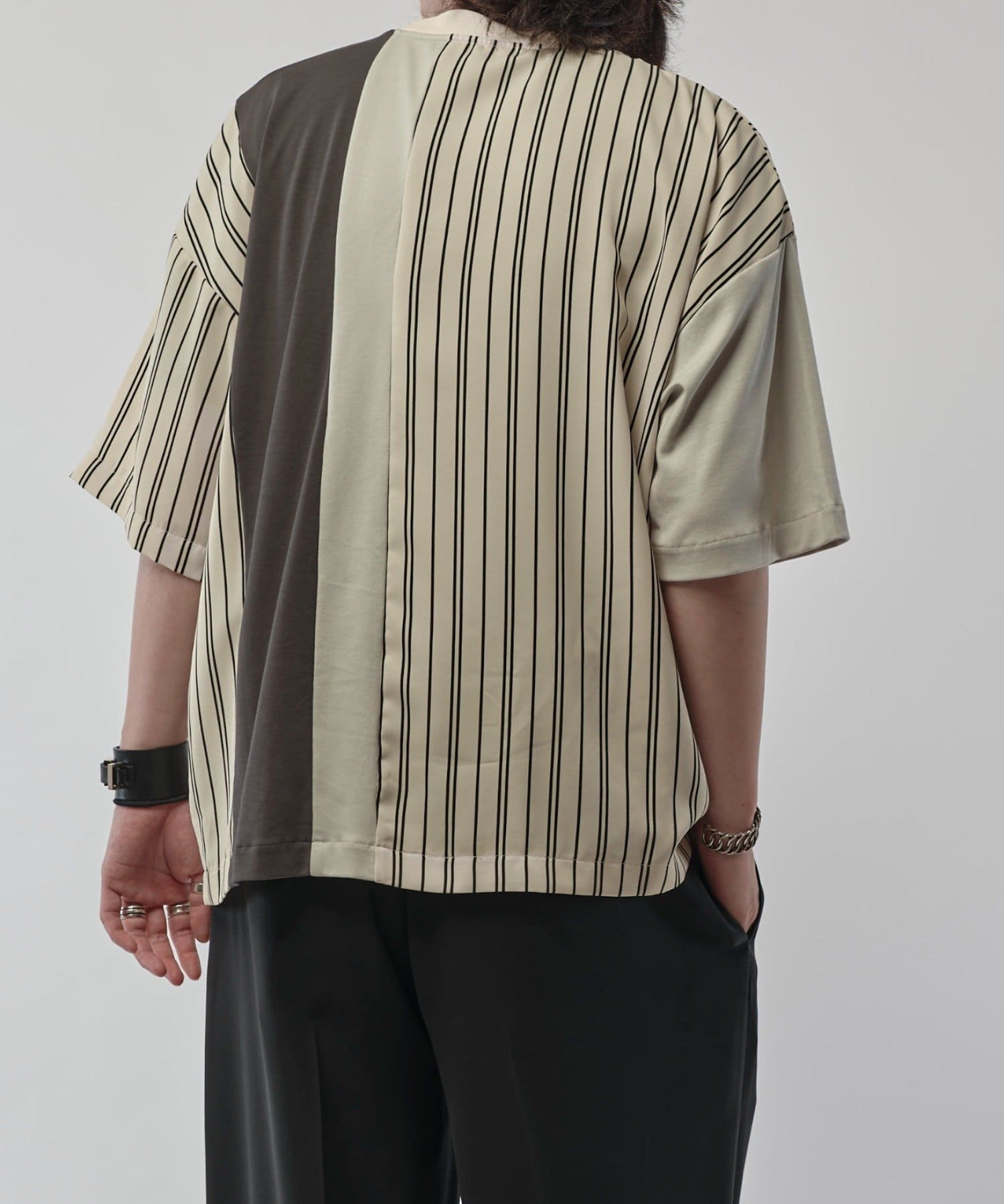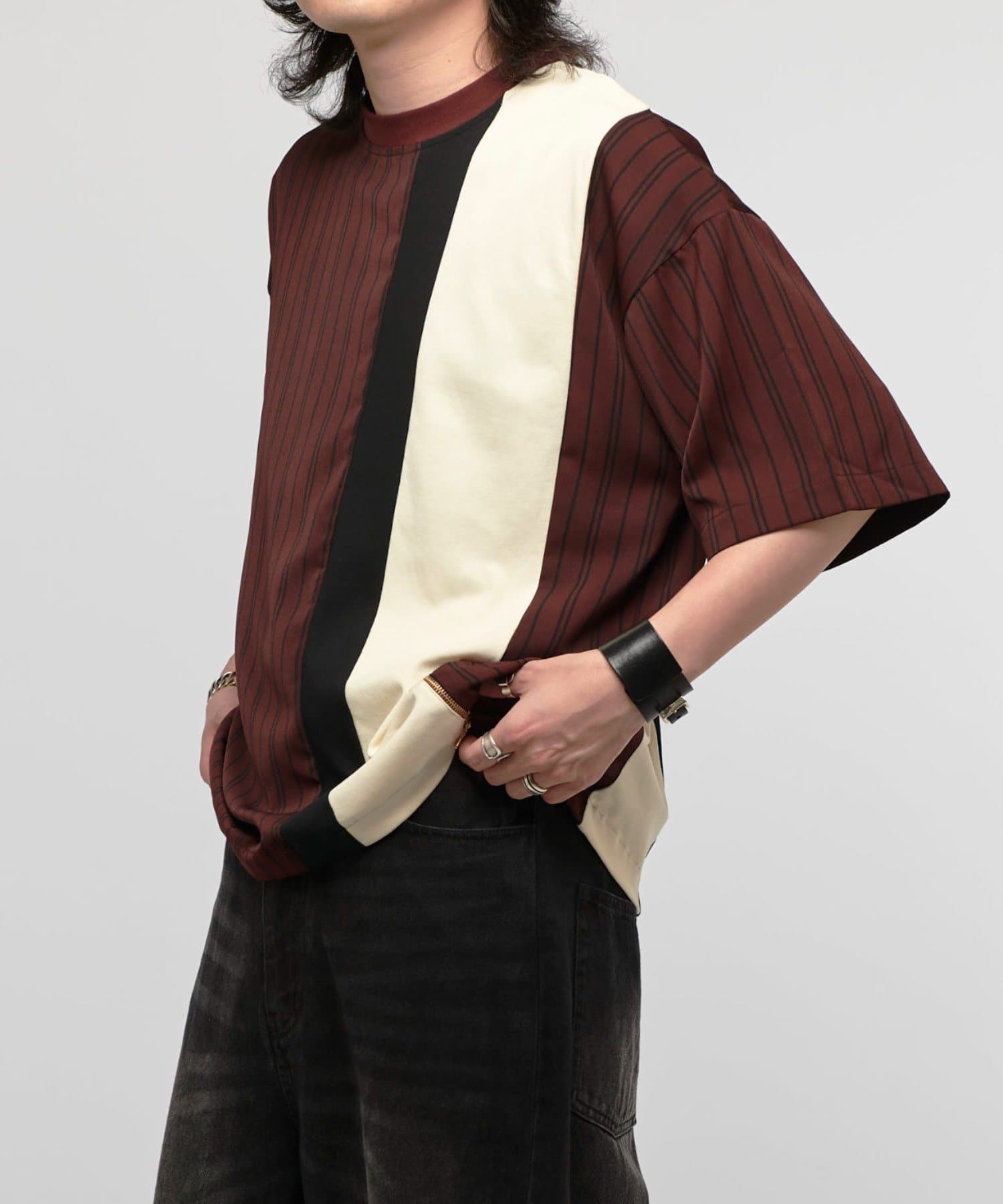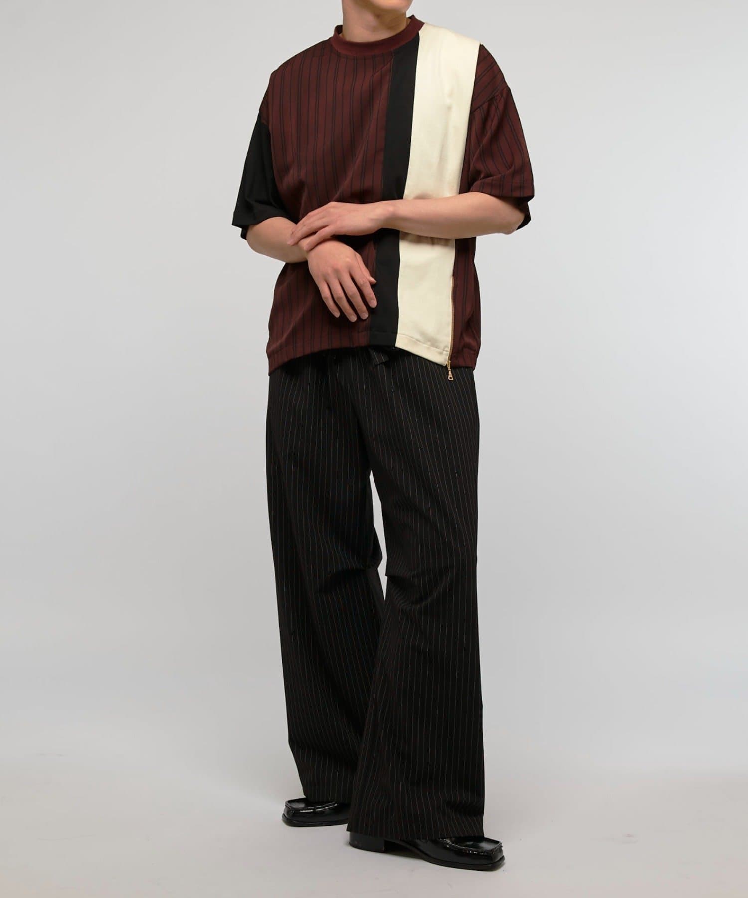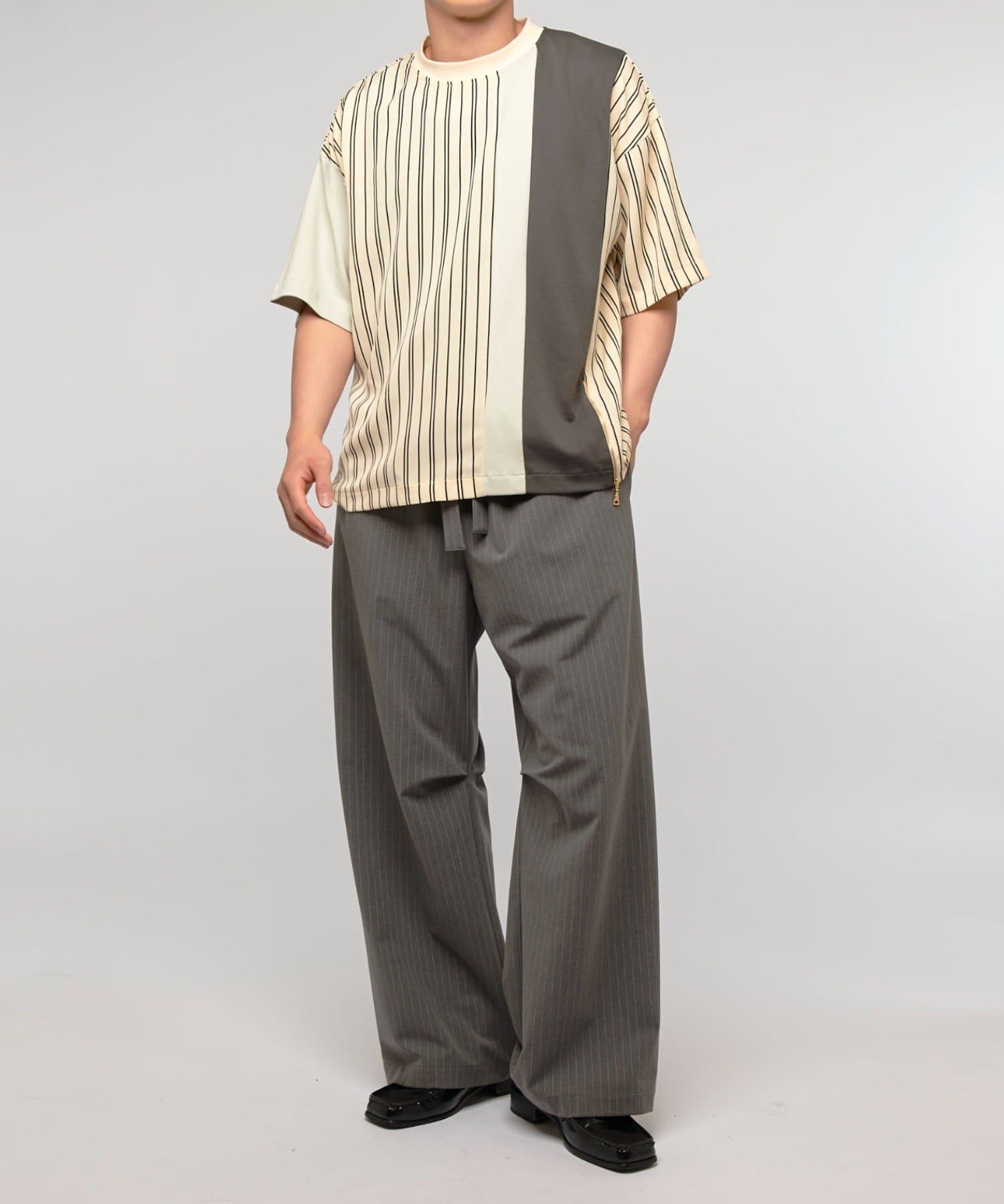 TOP > Lui's > メンズ > トップス > Tシャツ/カットソー > ストライプ切替ZIP Tシャツ