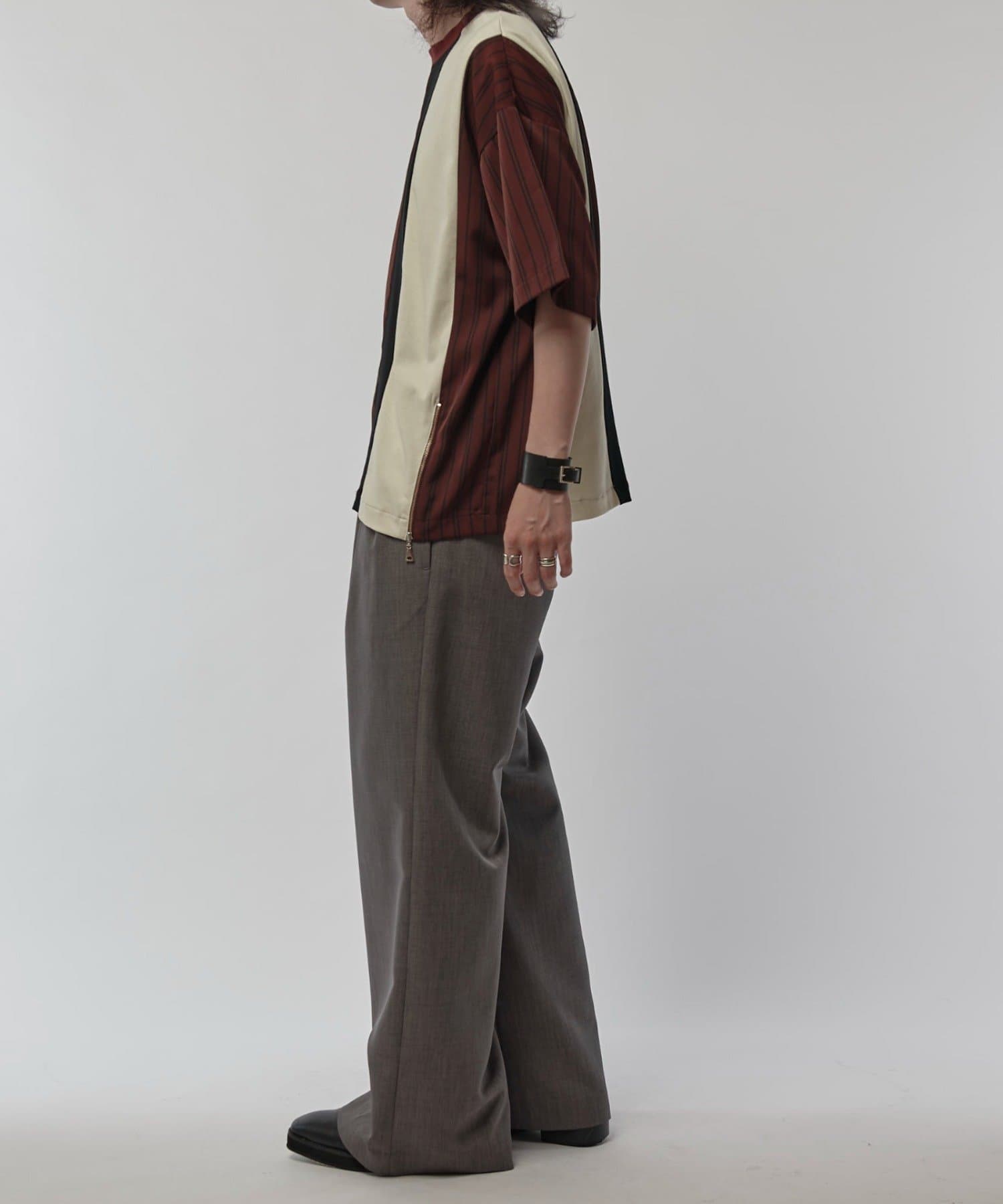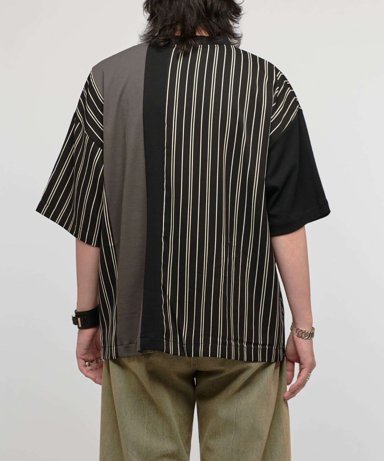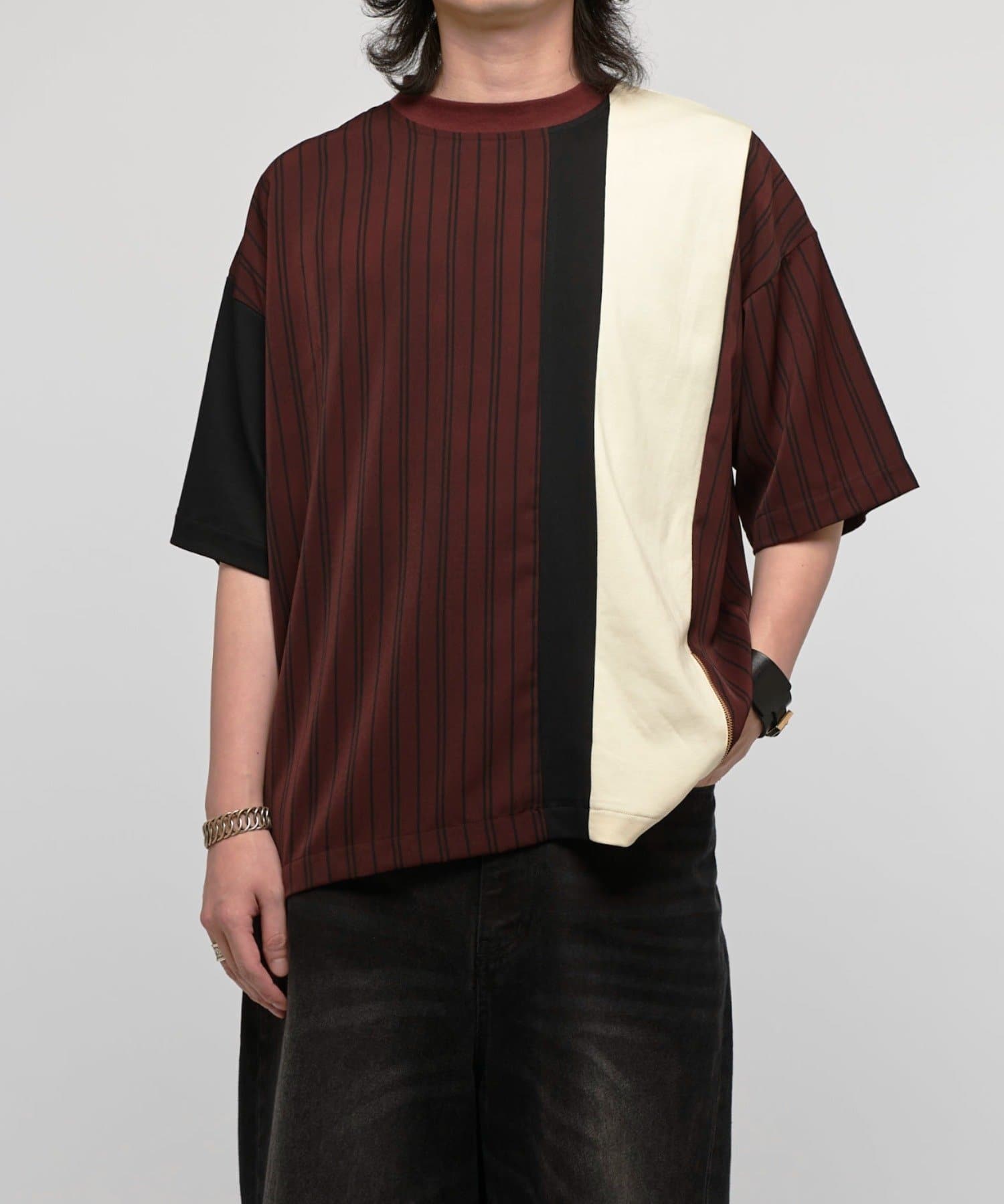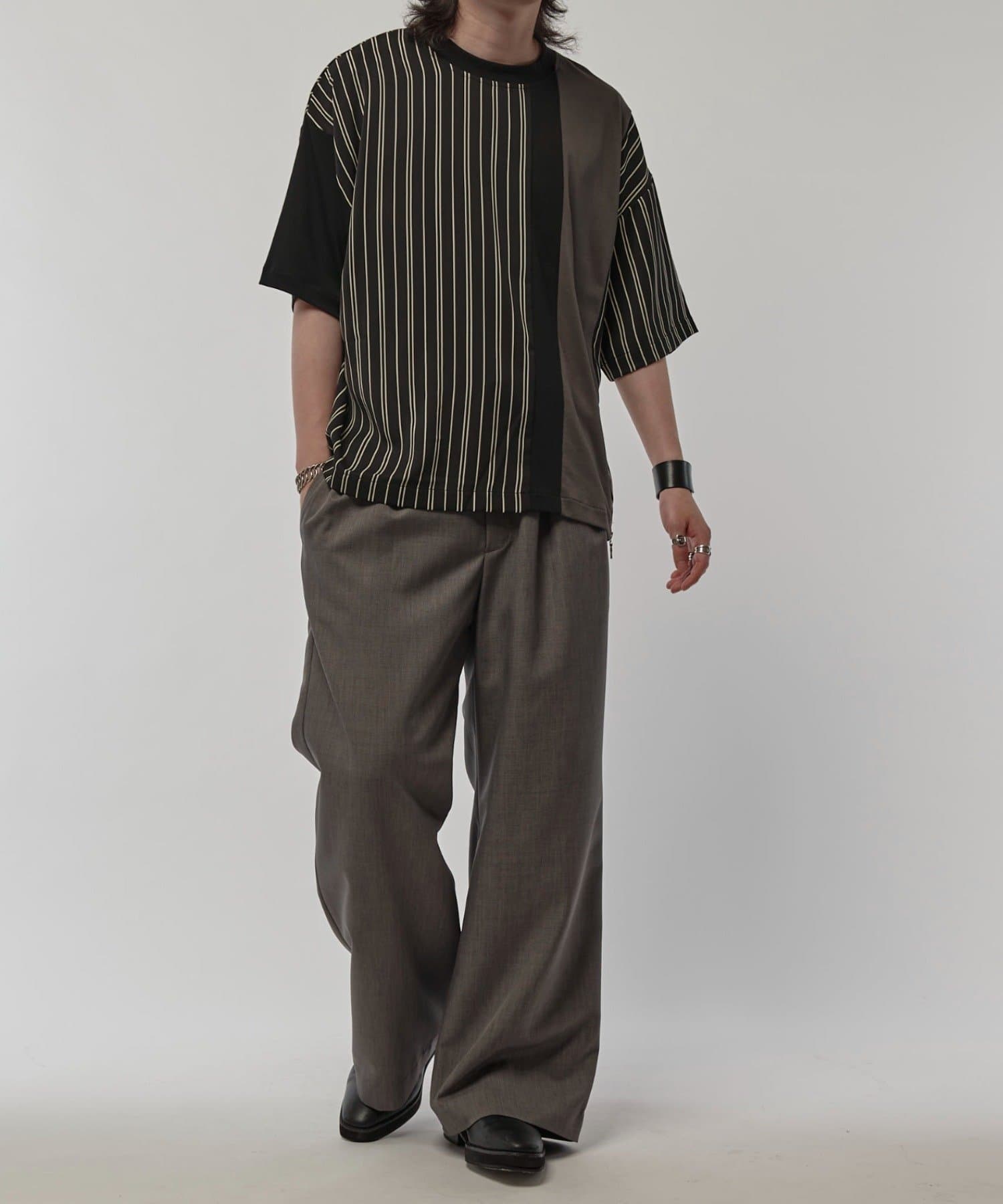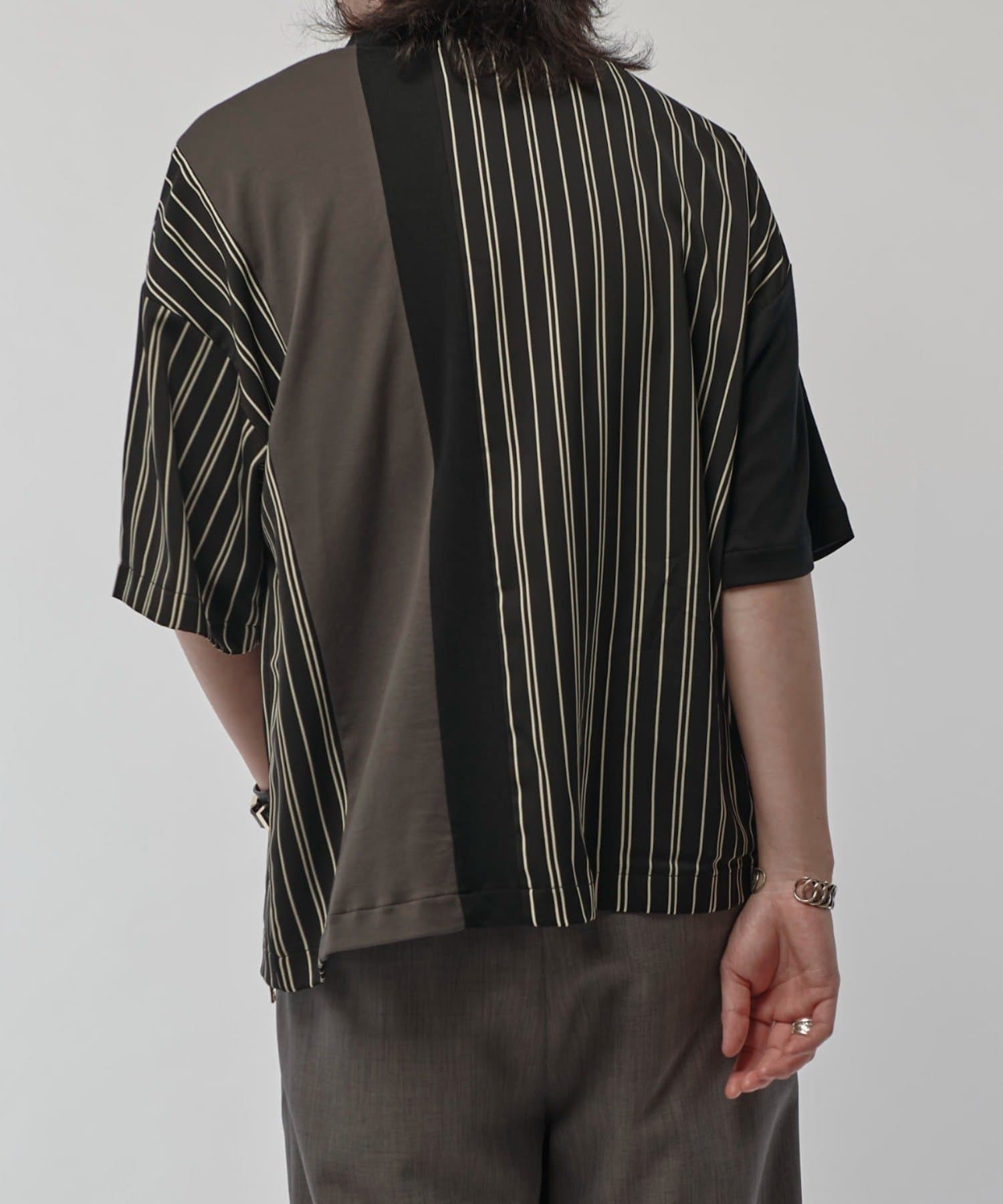TOP > Lui's > メンズ > トップス > Tシャツ/カットソー > ストライプ切替ZIP Tシャツ