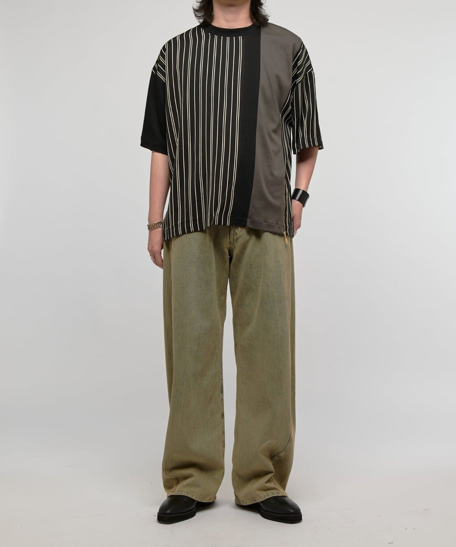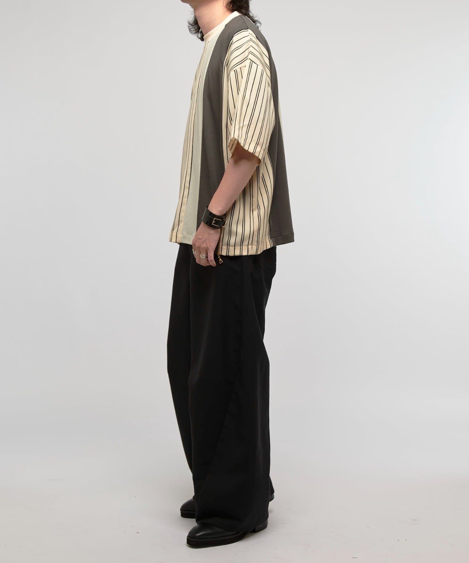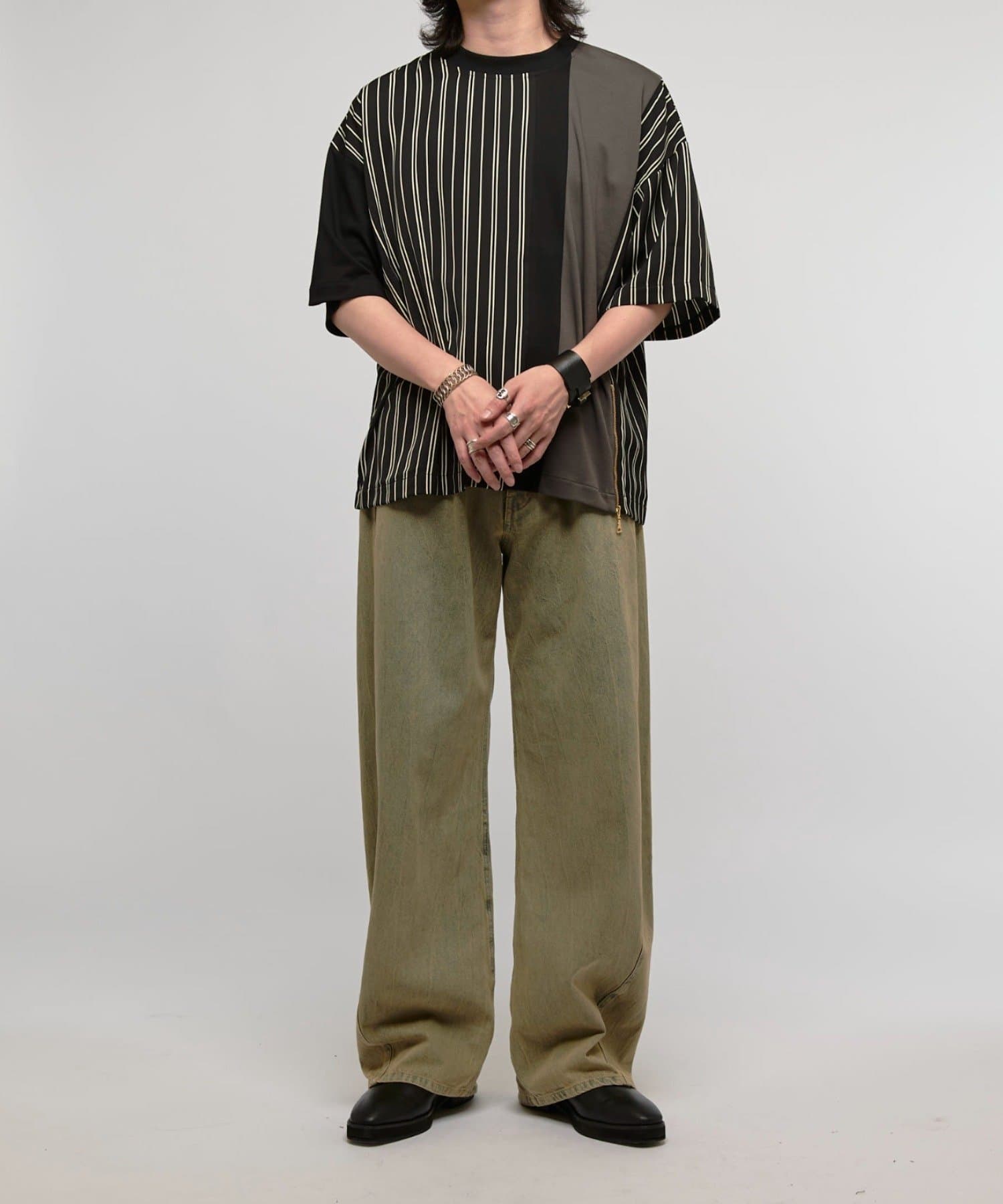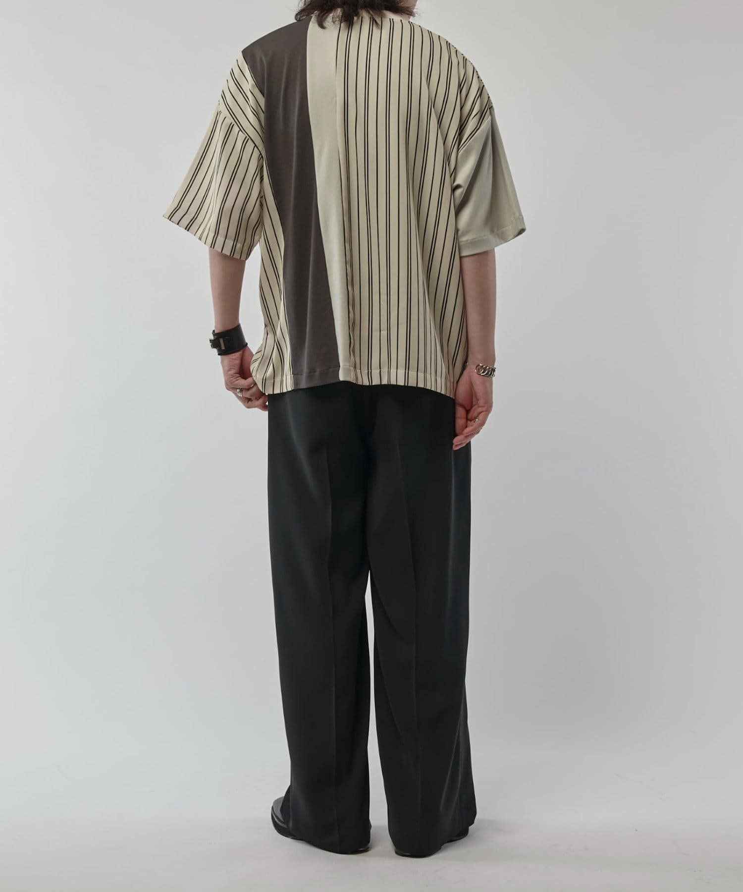 TOP > Lui's > メンズ > トップス > Tシャツ/カットソー > ストライプ切替ZIP Tシャツ