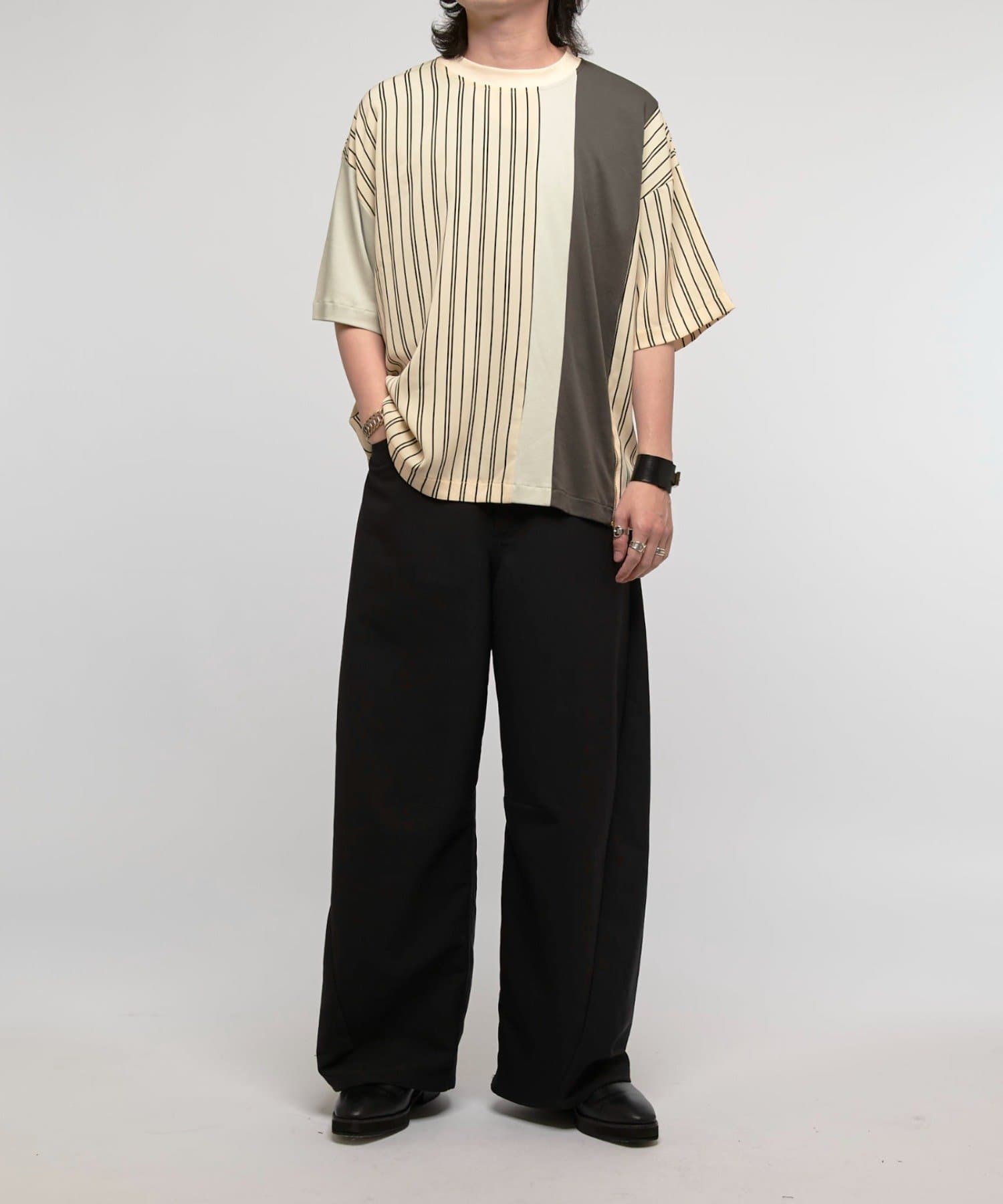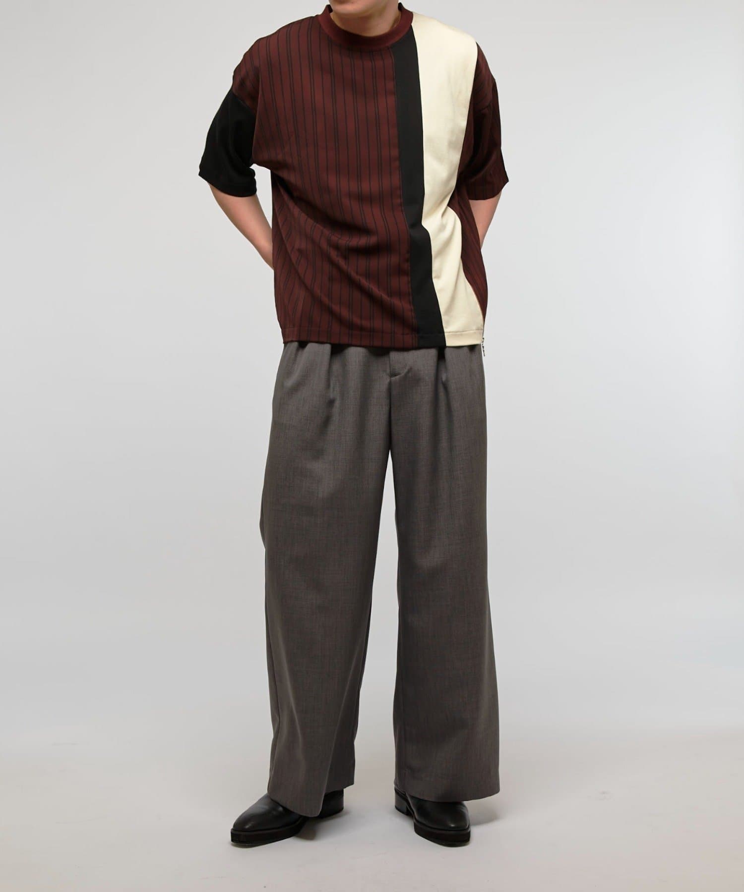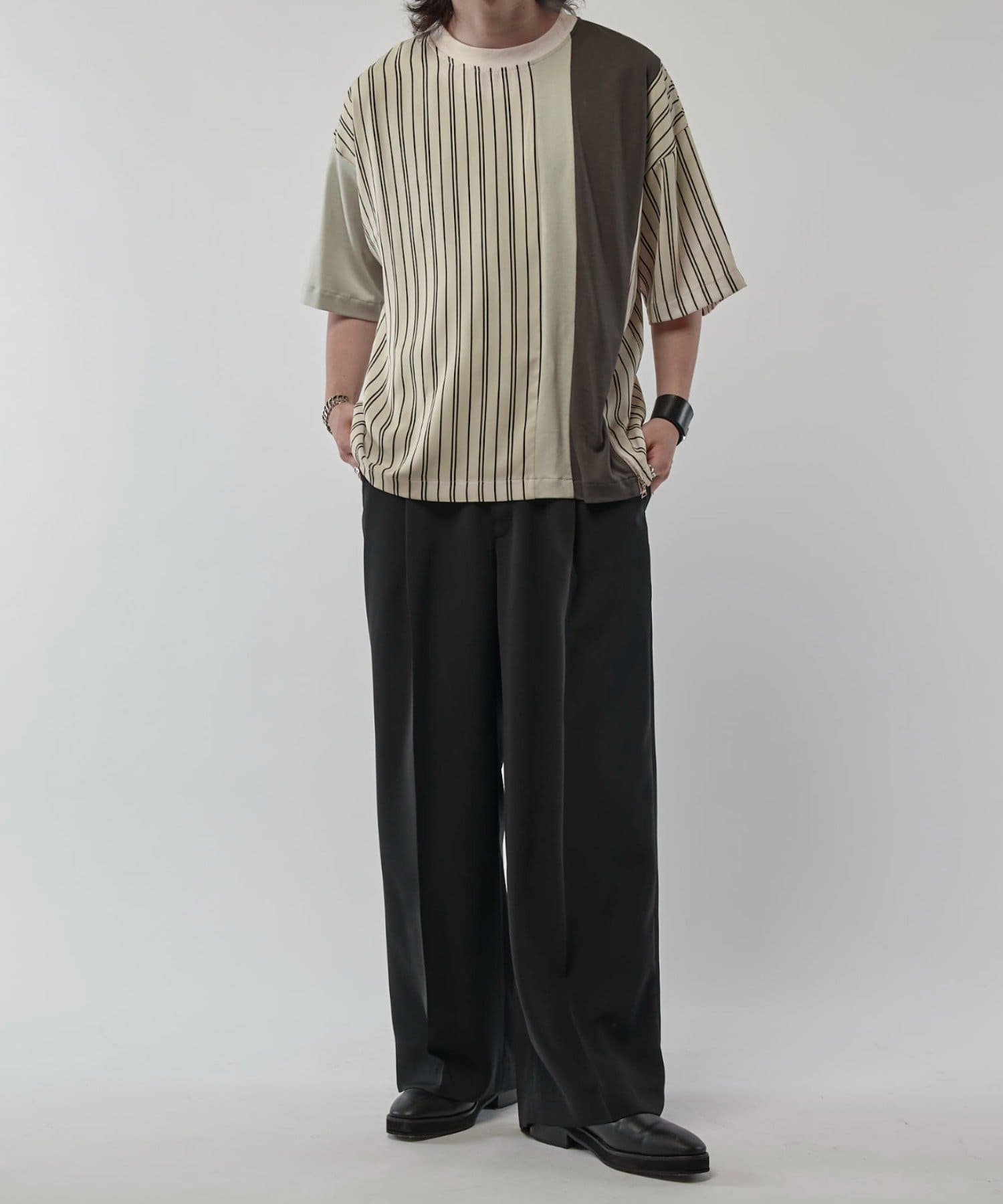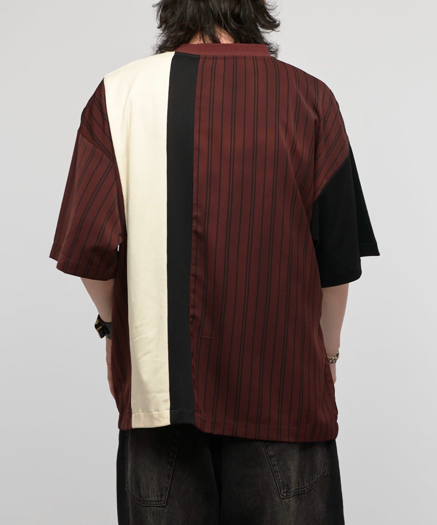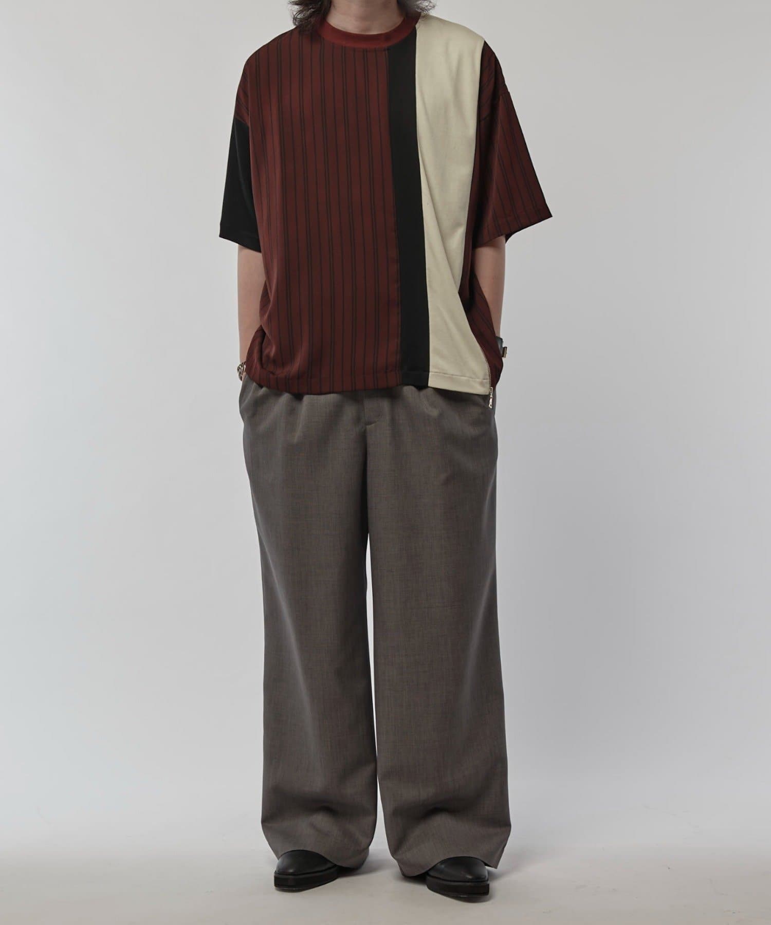 TOP > Lui's > メンズ > トップス > Tシャツ/カットソー > ストライプ切替ZIP Tシャツ