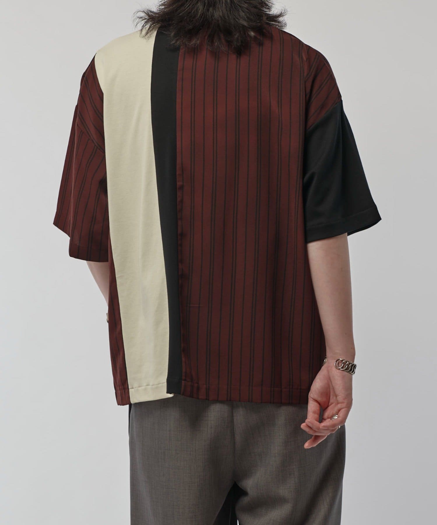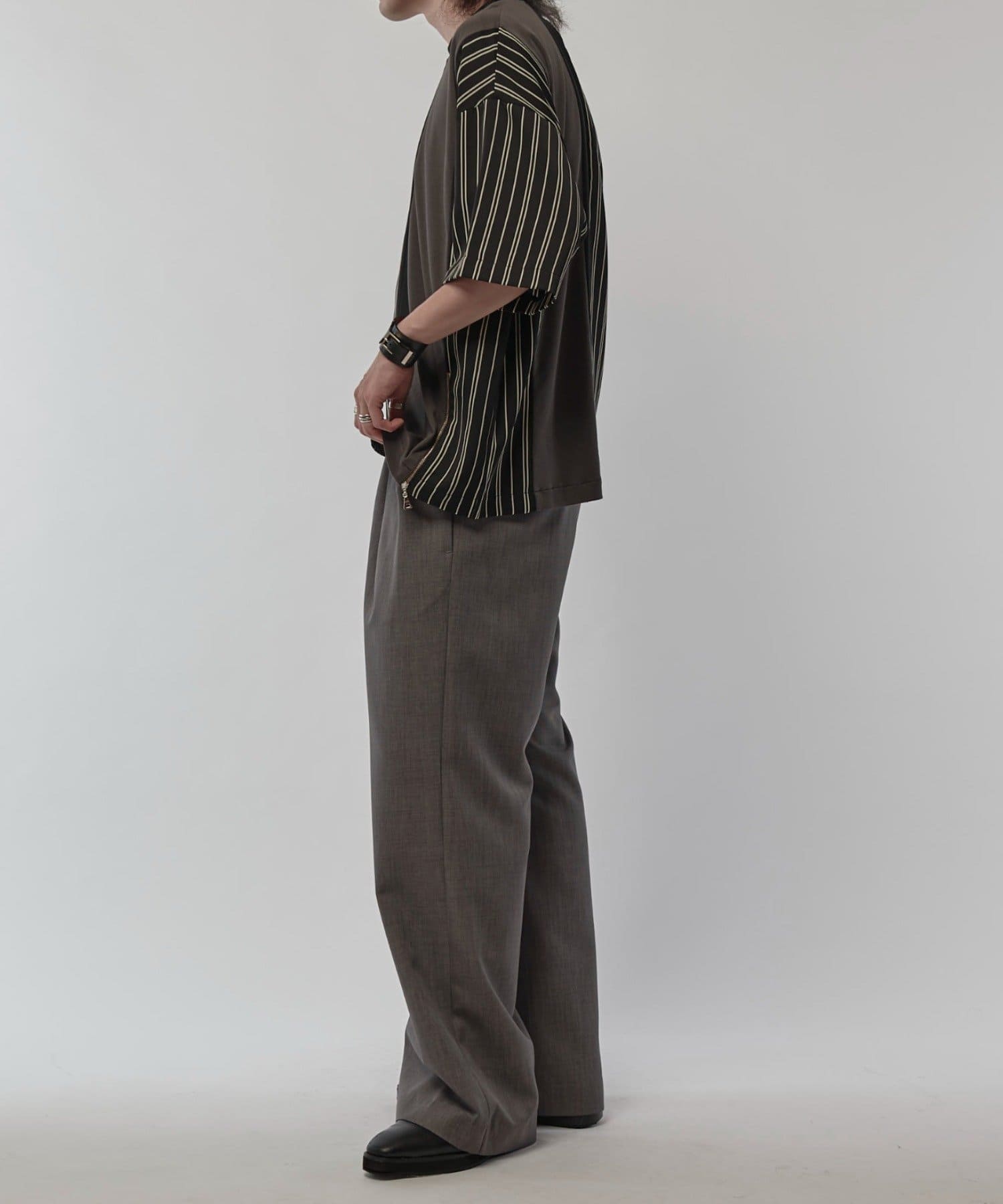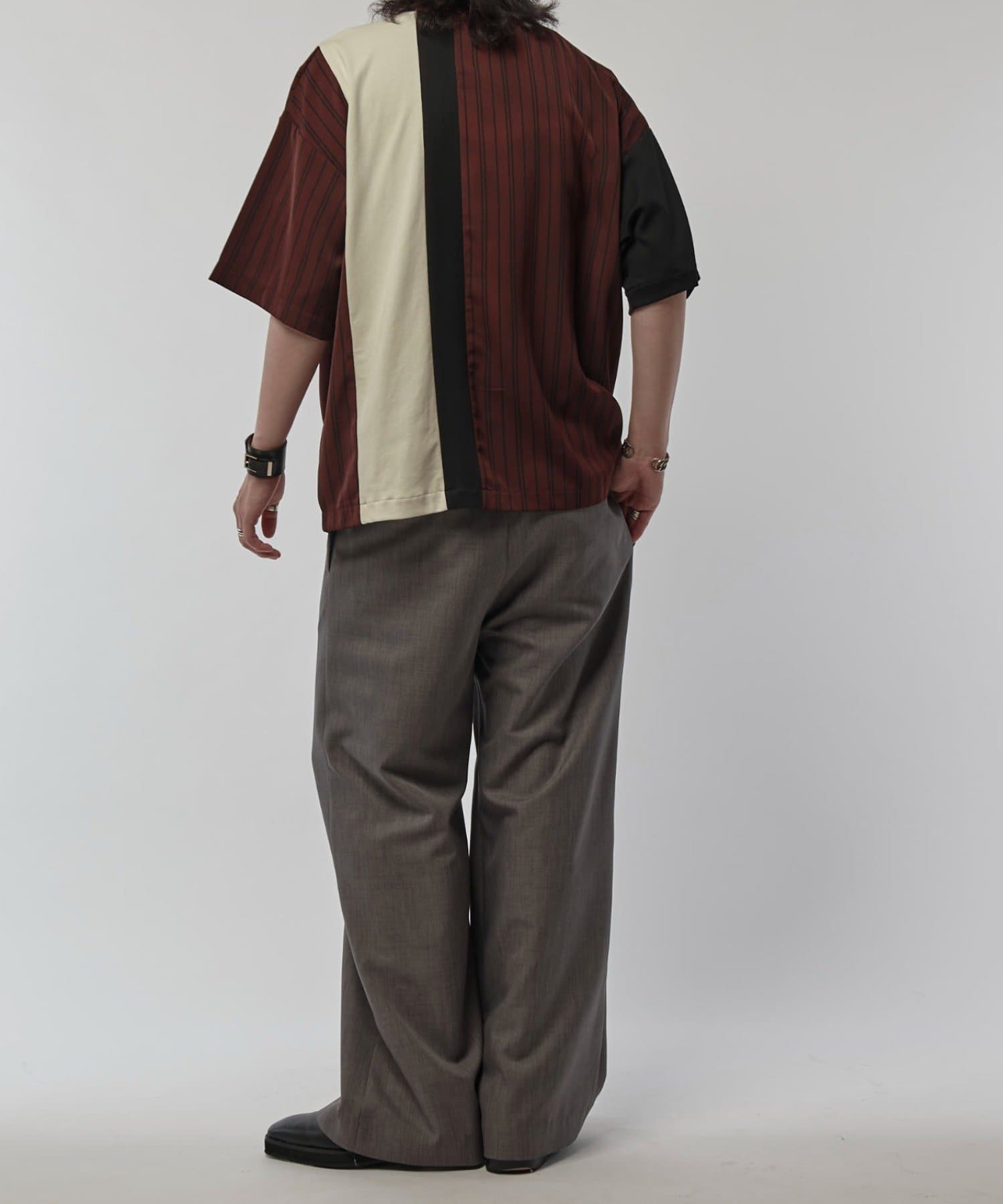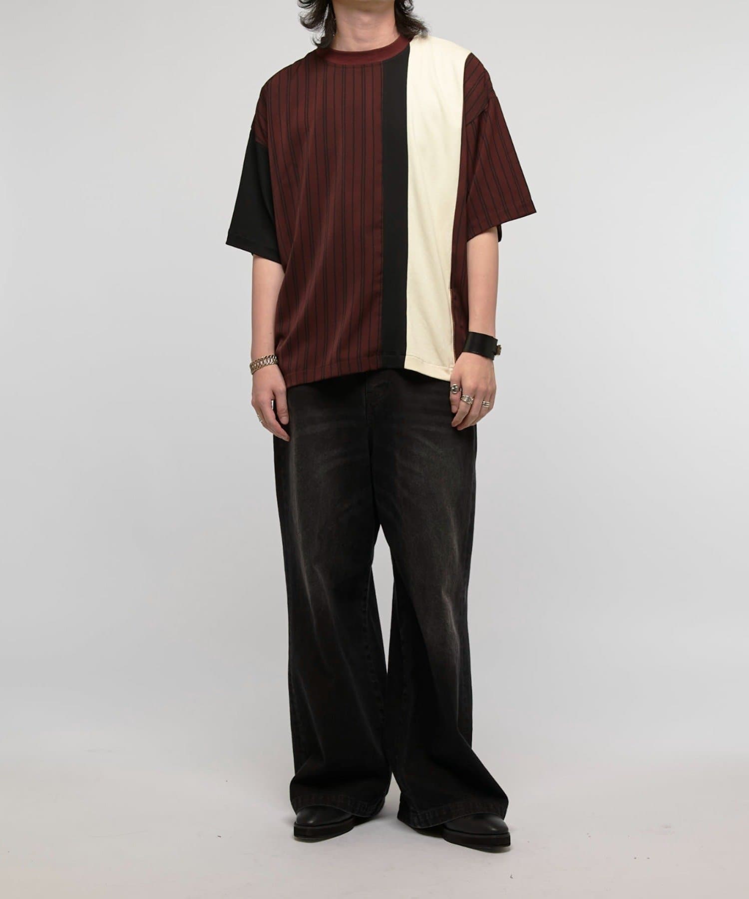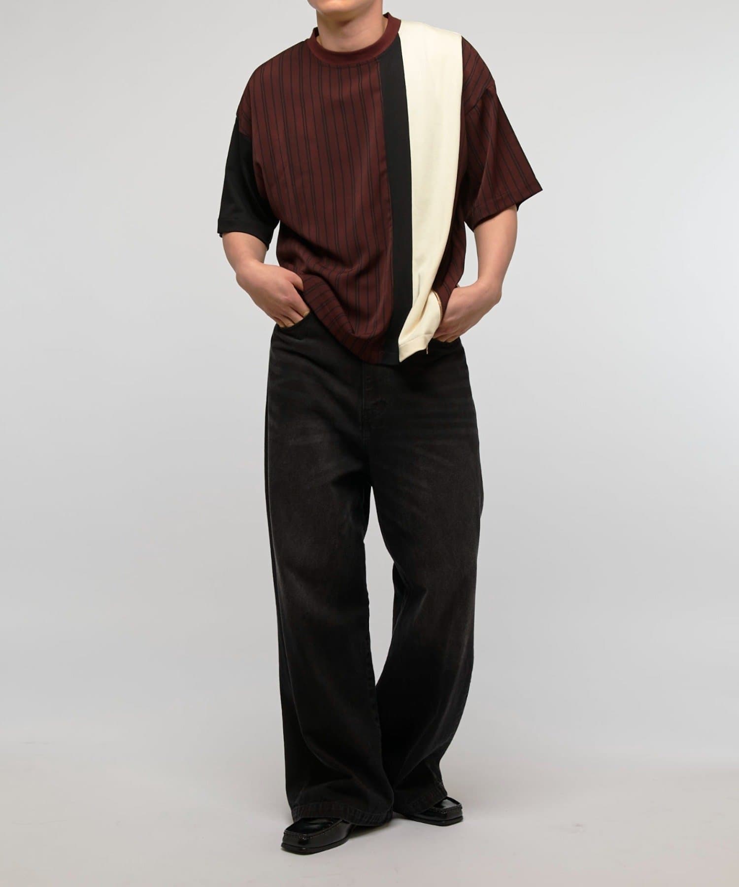 TOP > Lui's > メンズ > トップス > Tシャツ/カットソー > ストライプ切替ZIP Tシャツ