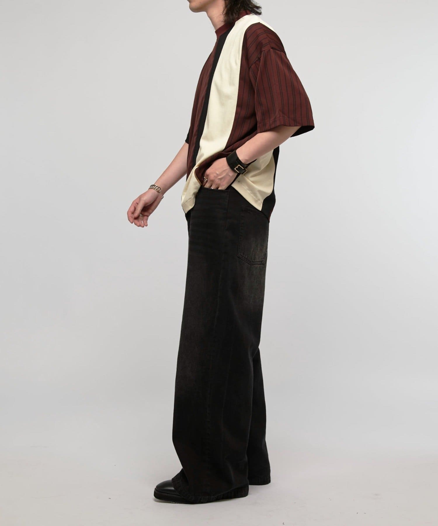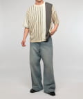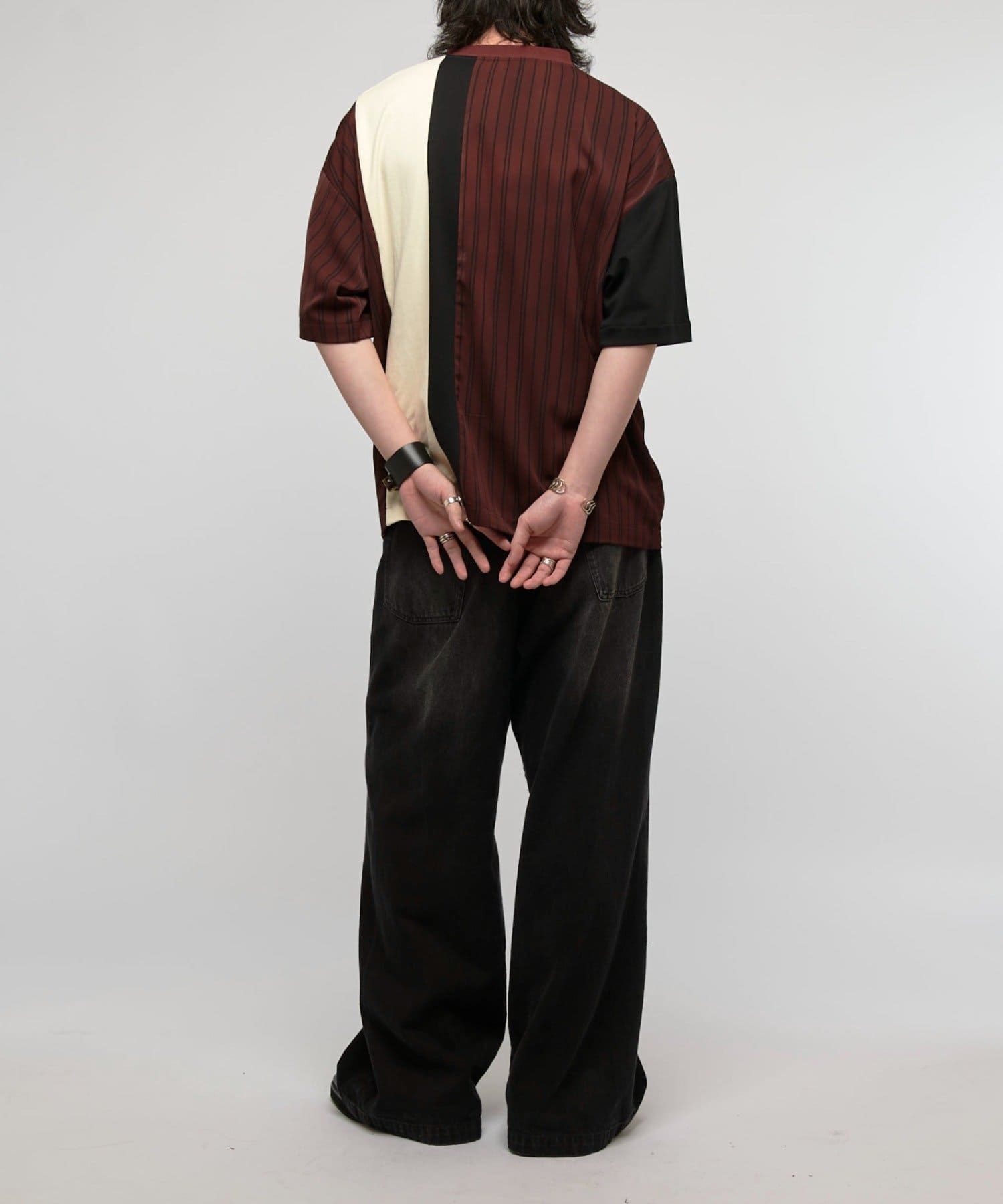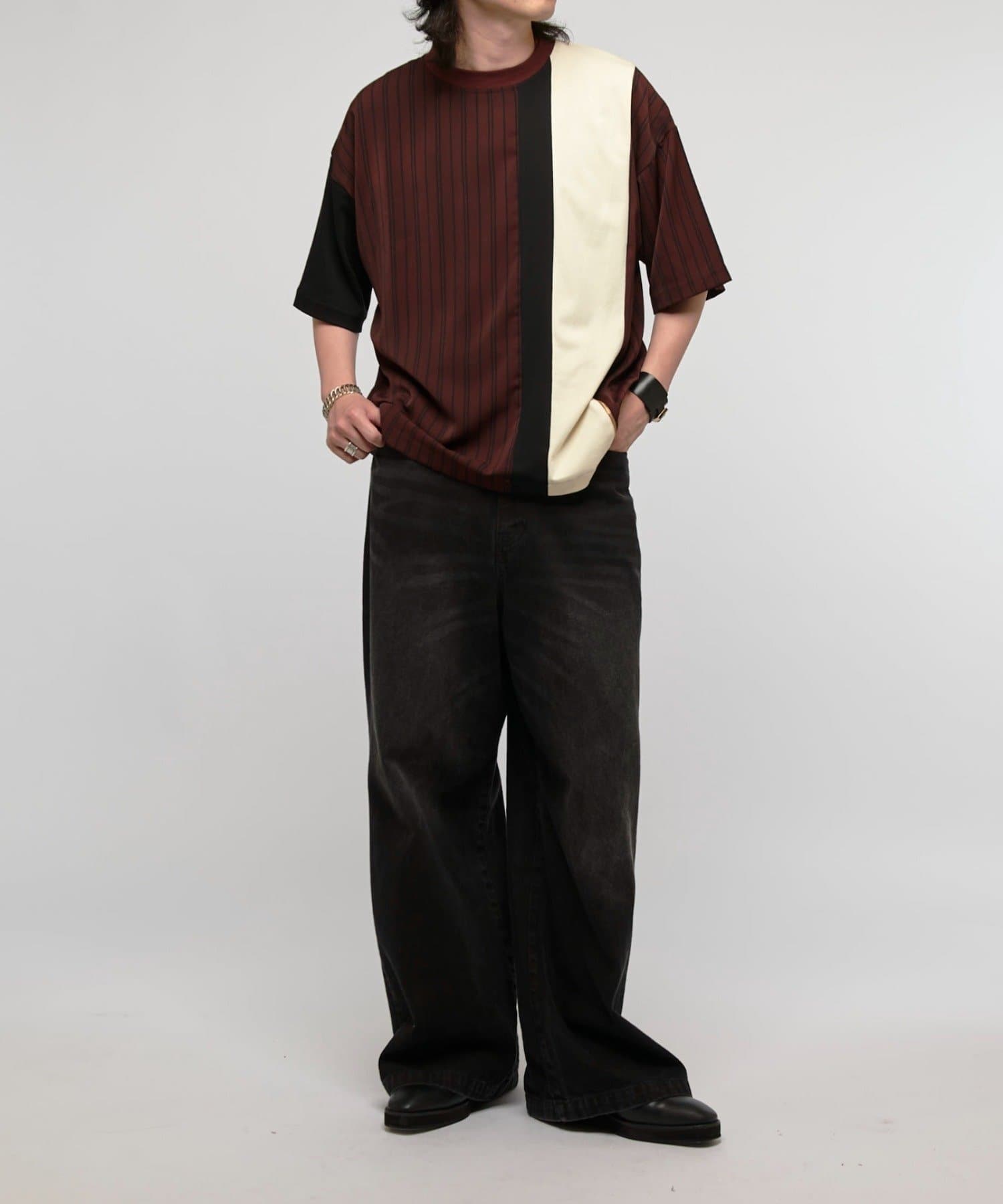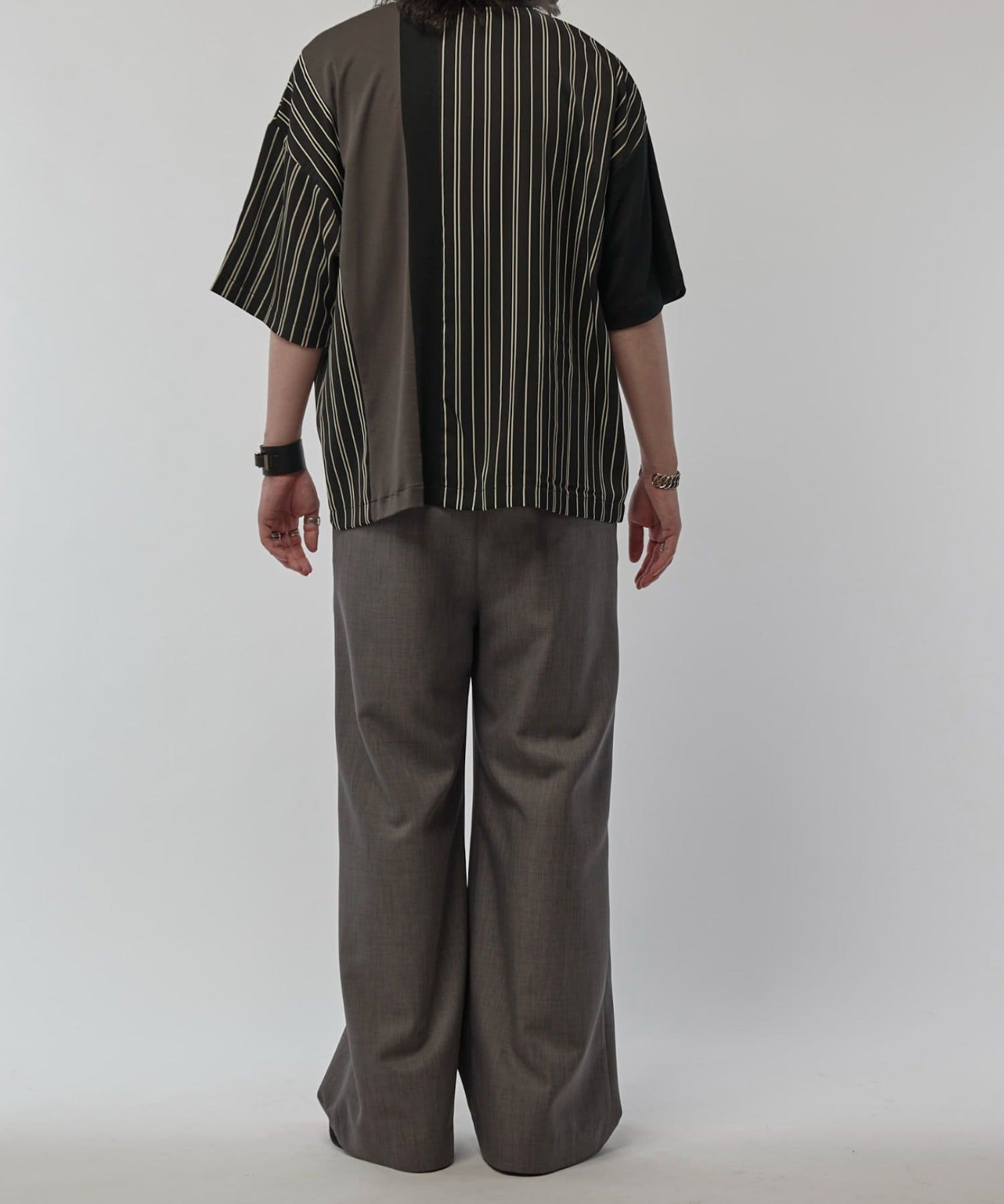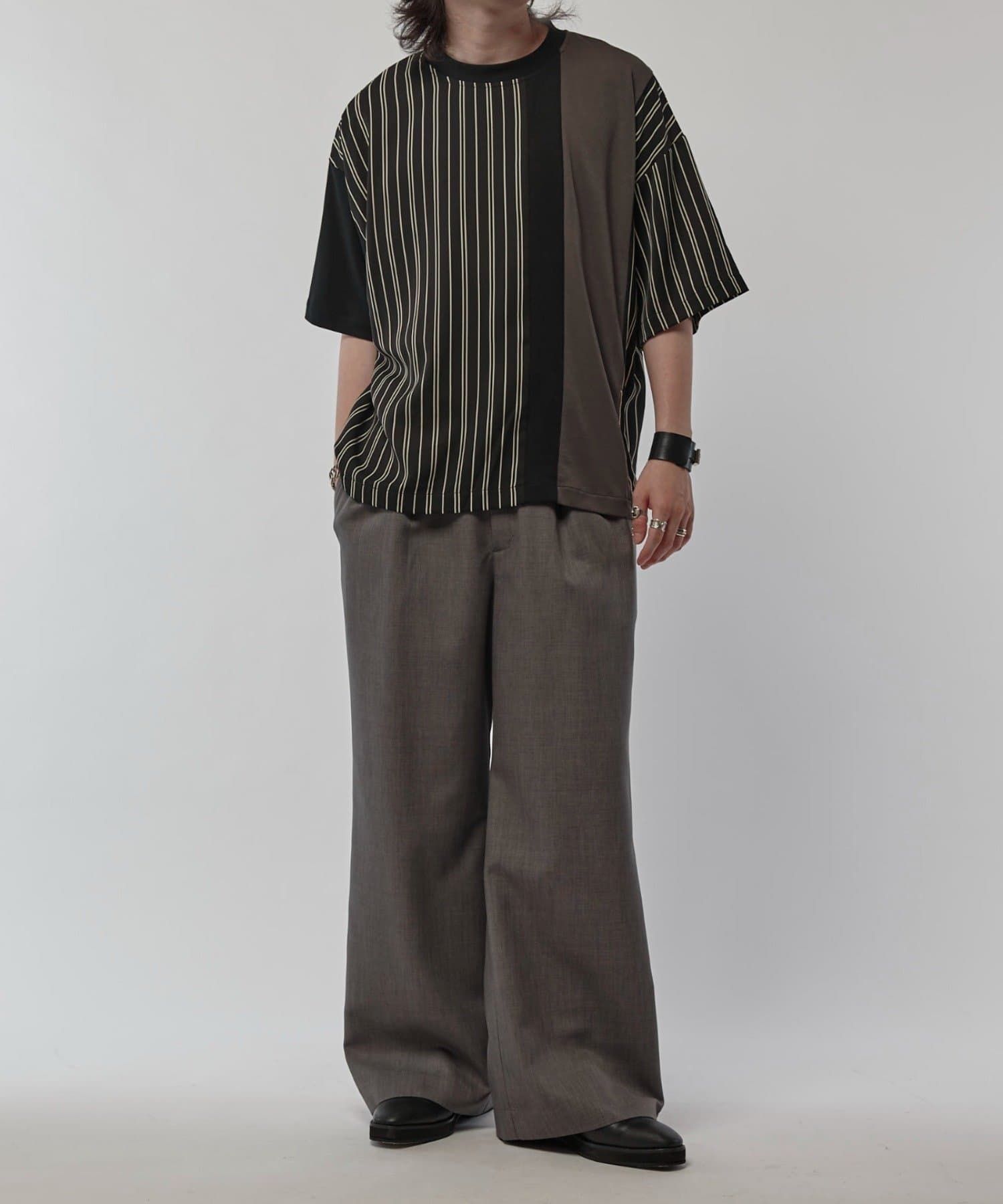 TOP > Lui's > メンズ > トップス > Tシャツ/カットソー > ストライプ切替ZIP Tシャツ