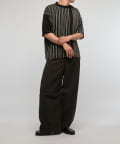 さりげないストライプデザインが特徴的な、やや緩めのシルエットのカットソーです。