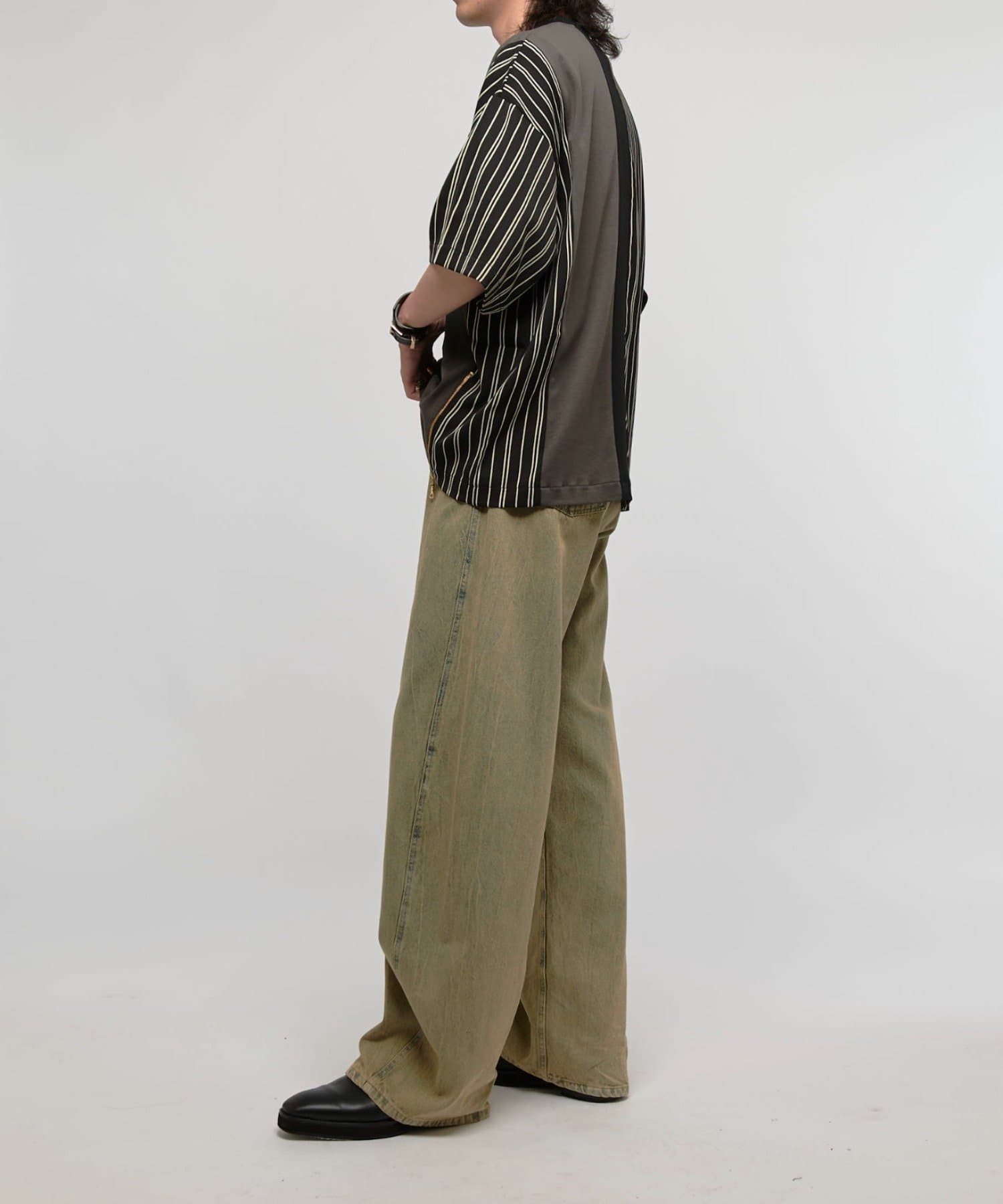 • Lui's(ルイス) ストライプ切替ZIP Tシャツ