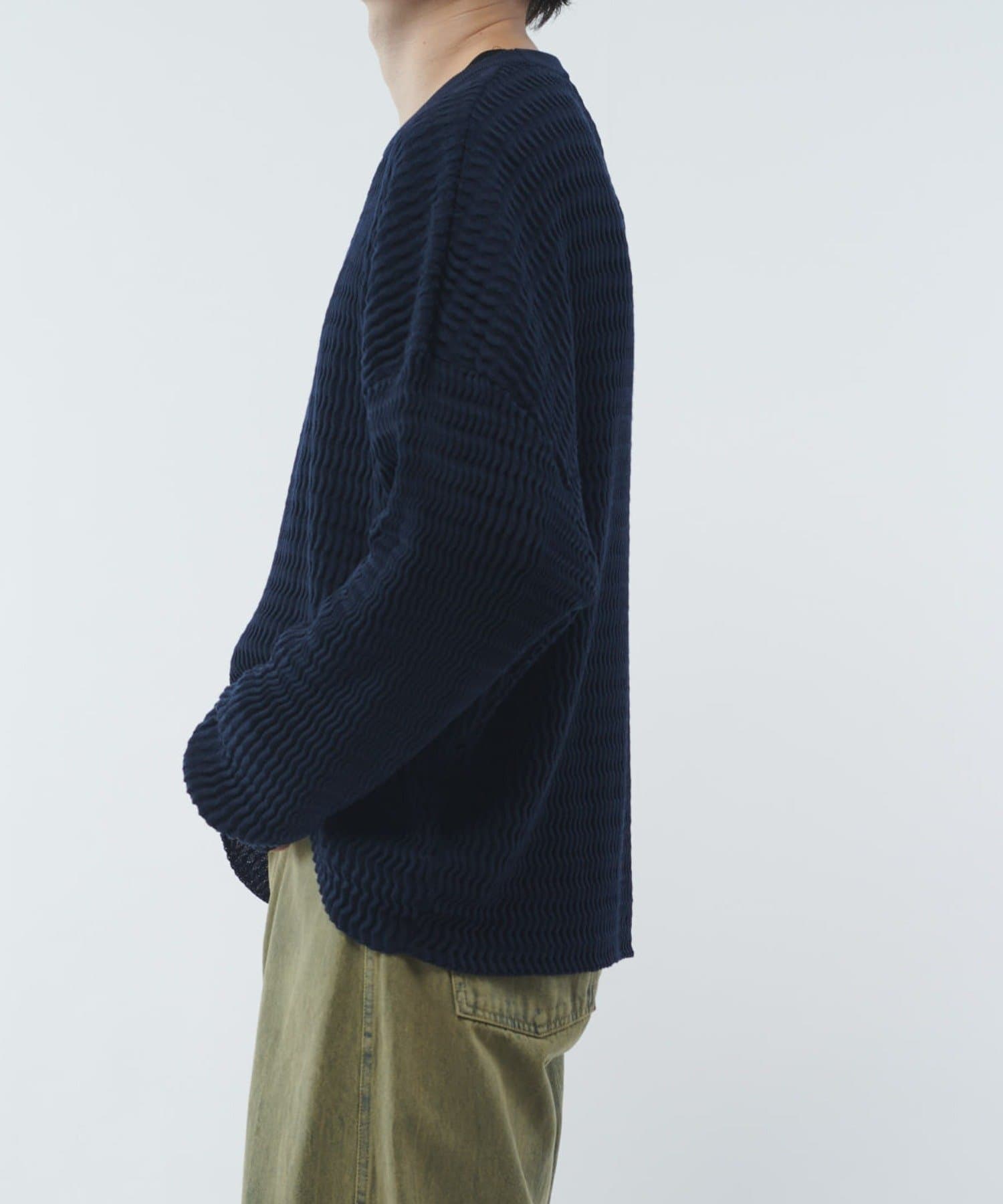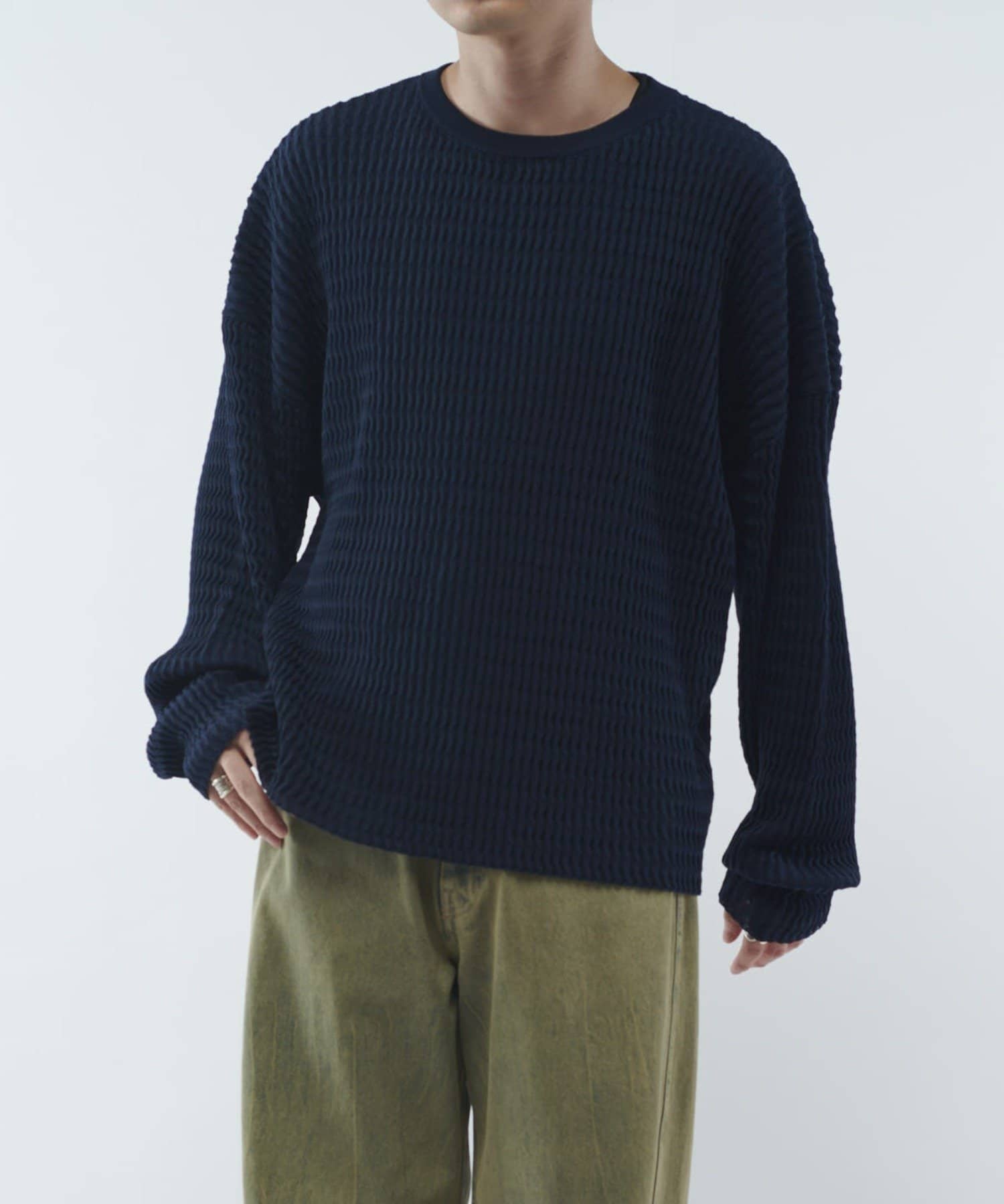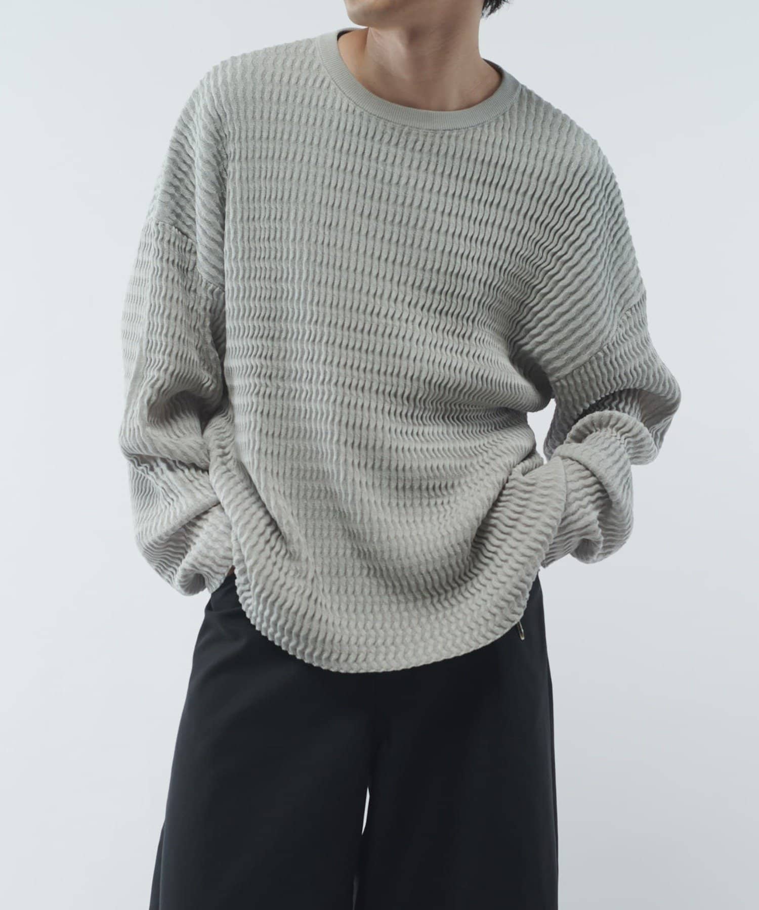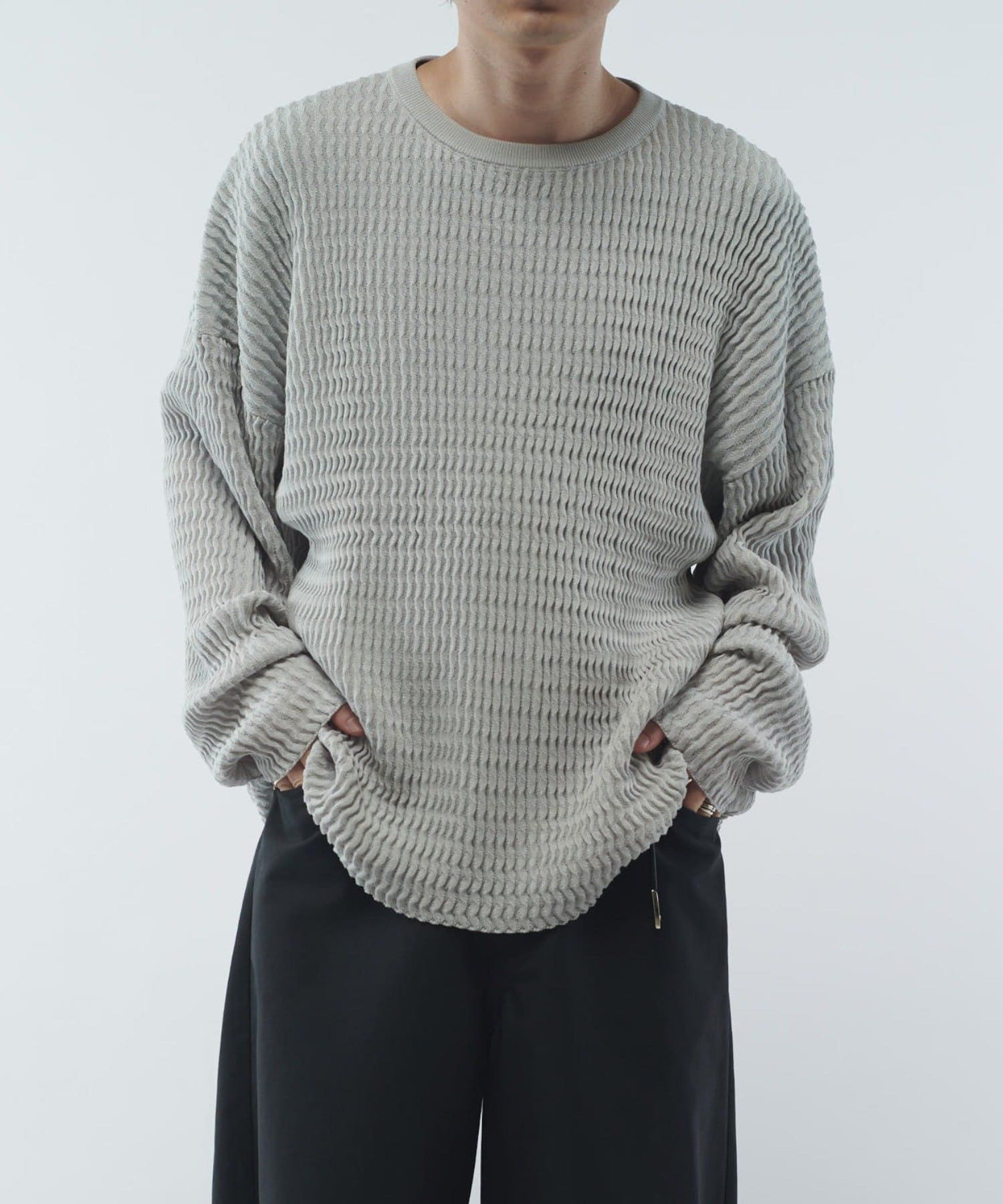 ウェーブがかった模様が特徴的でロンT感覚で着れる薄手のニット。