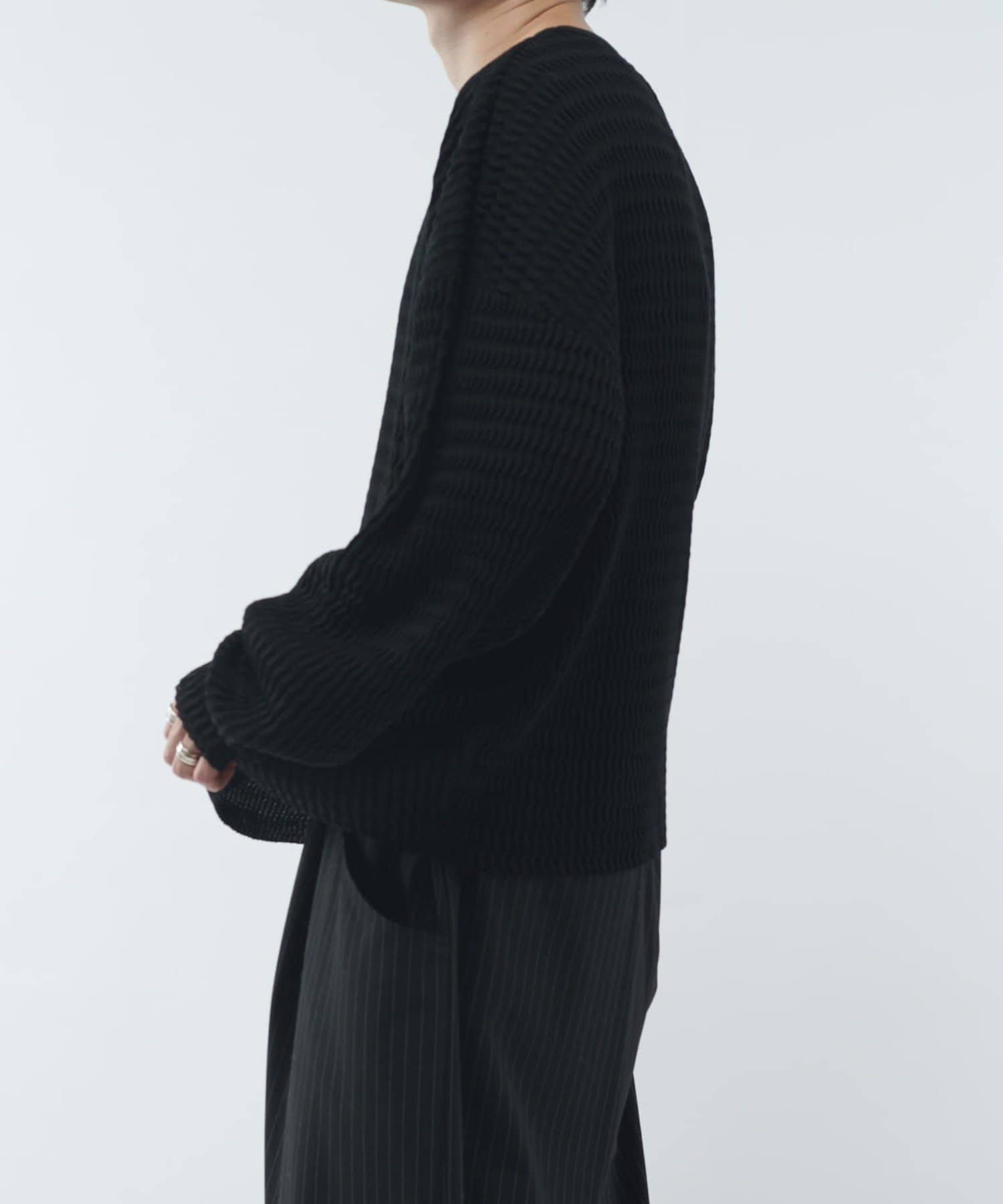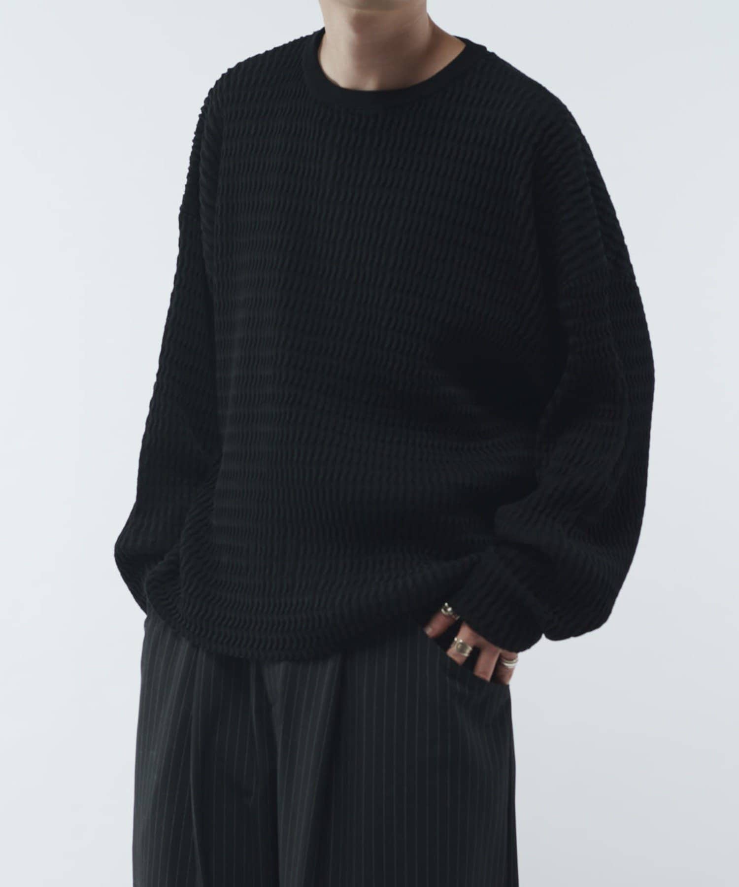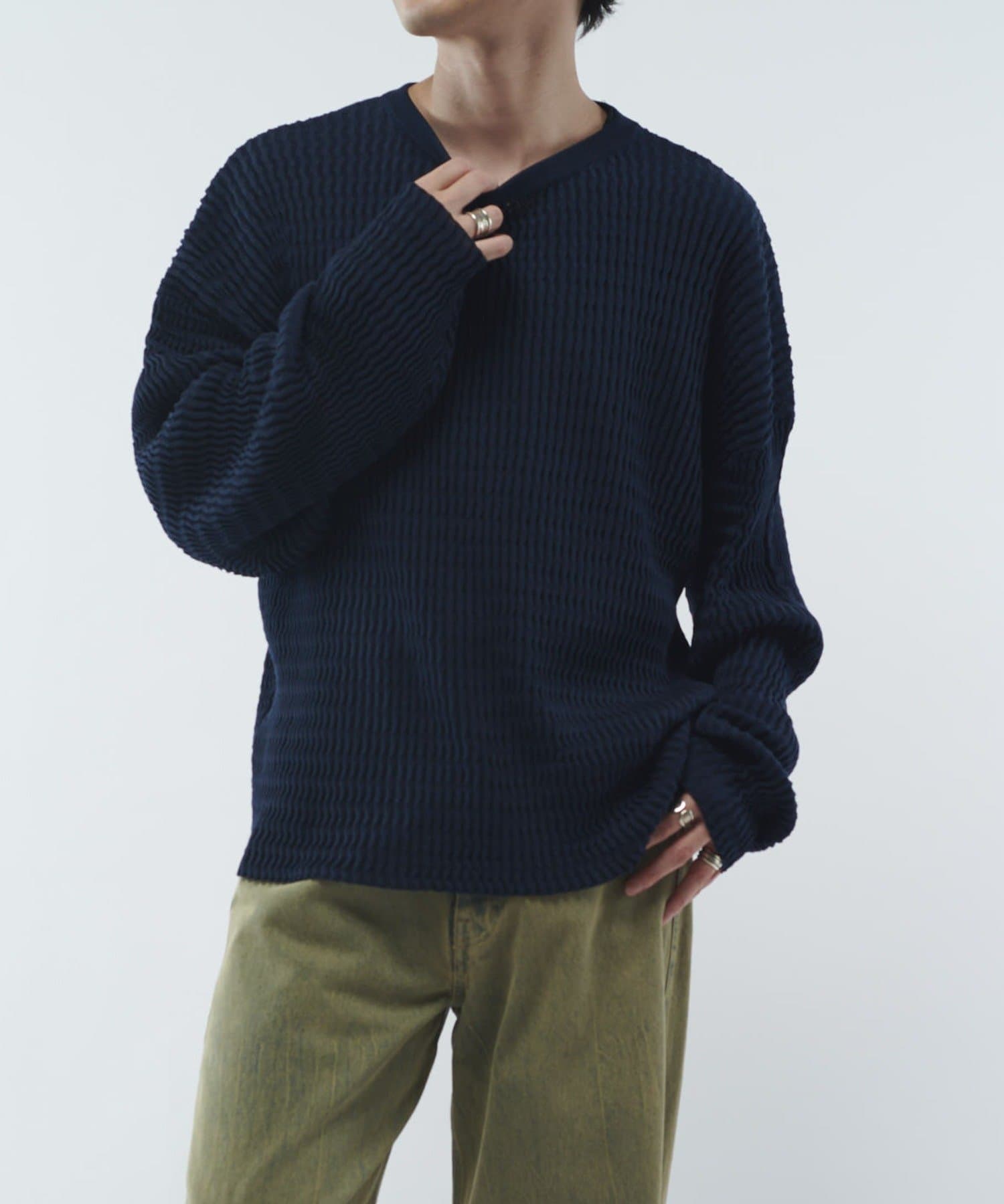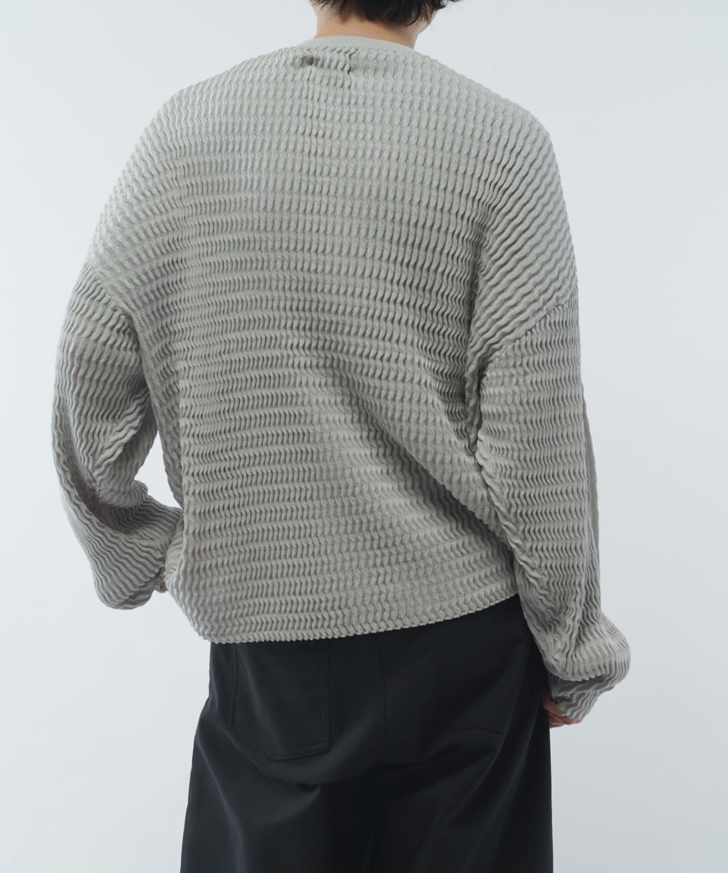 ウェーブがかった模様が特徴的でロンT感覚で着れる薄手のニット。