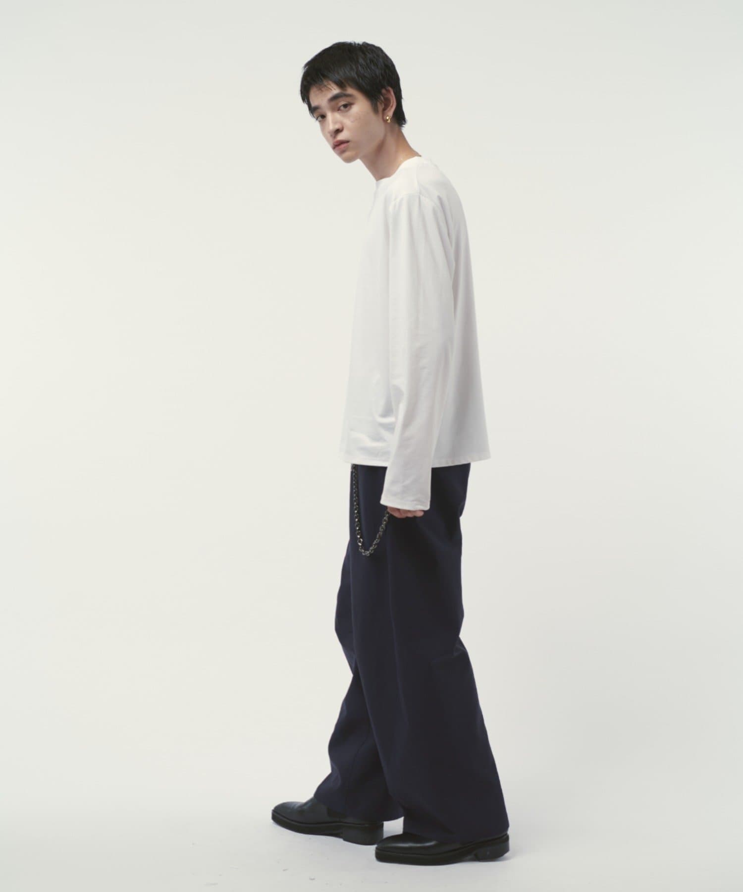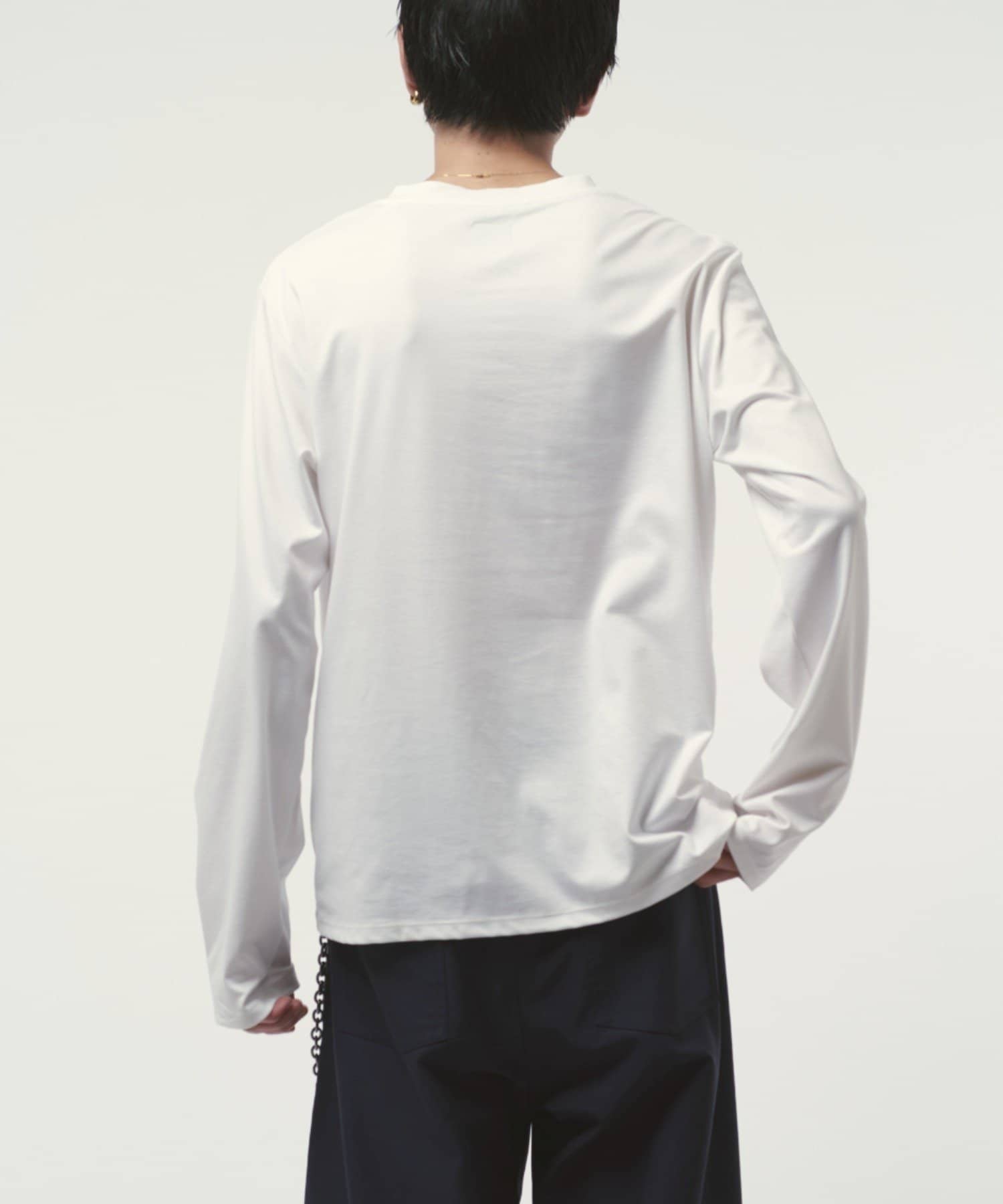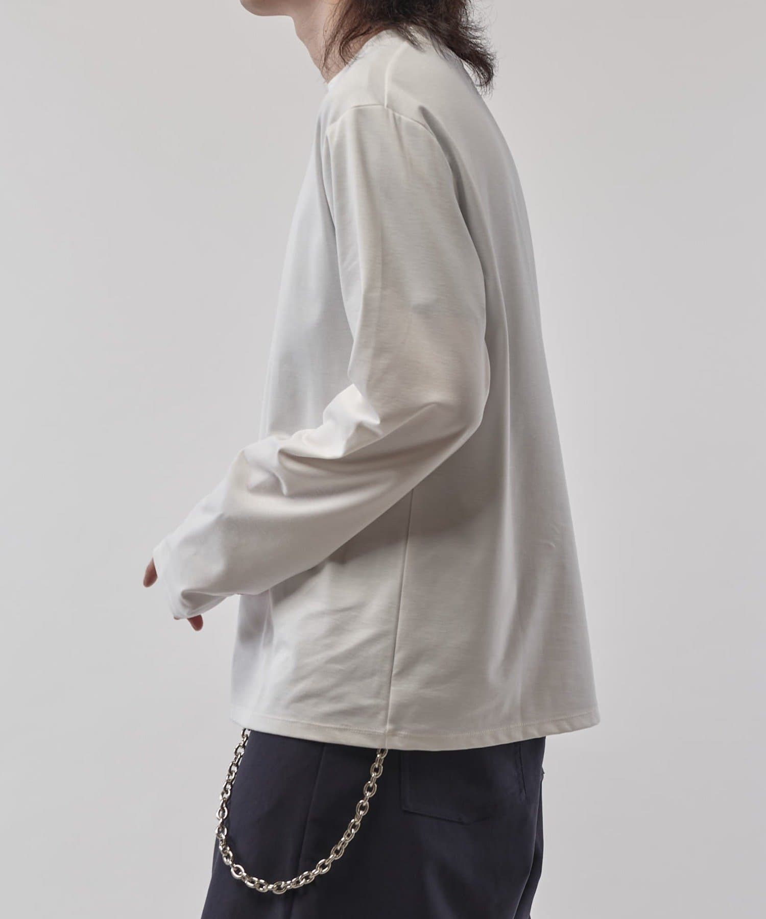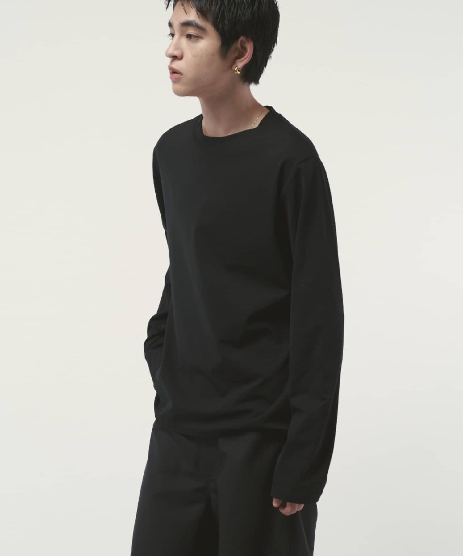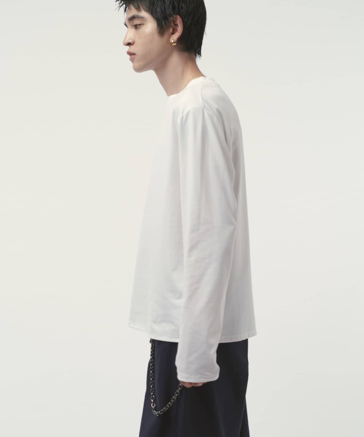 袖をやや長めに設定しており、無地Tでも一味違った見え方、シルエットを感じていただけます。