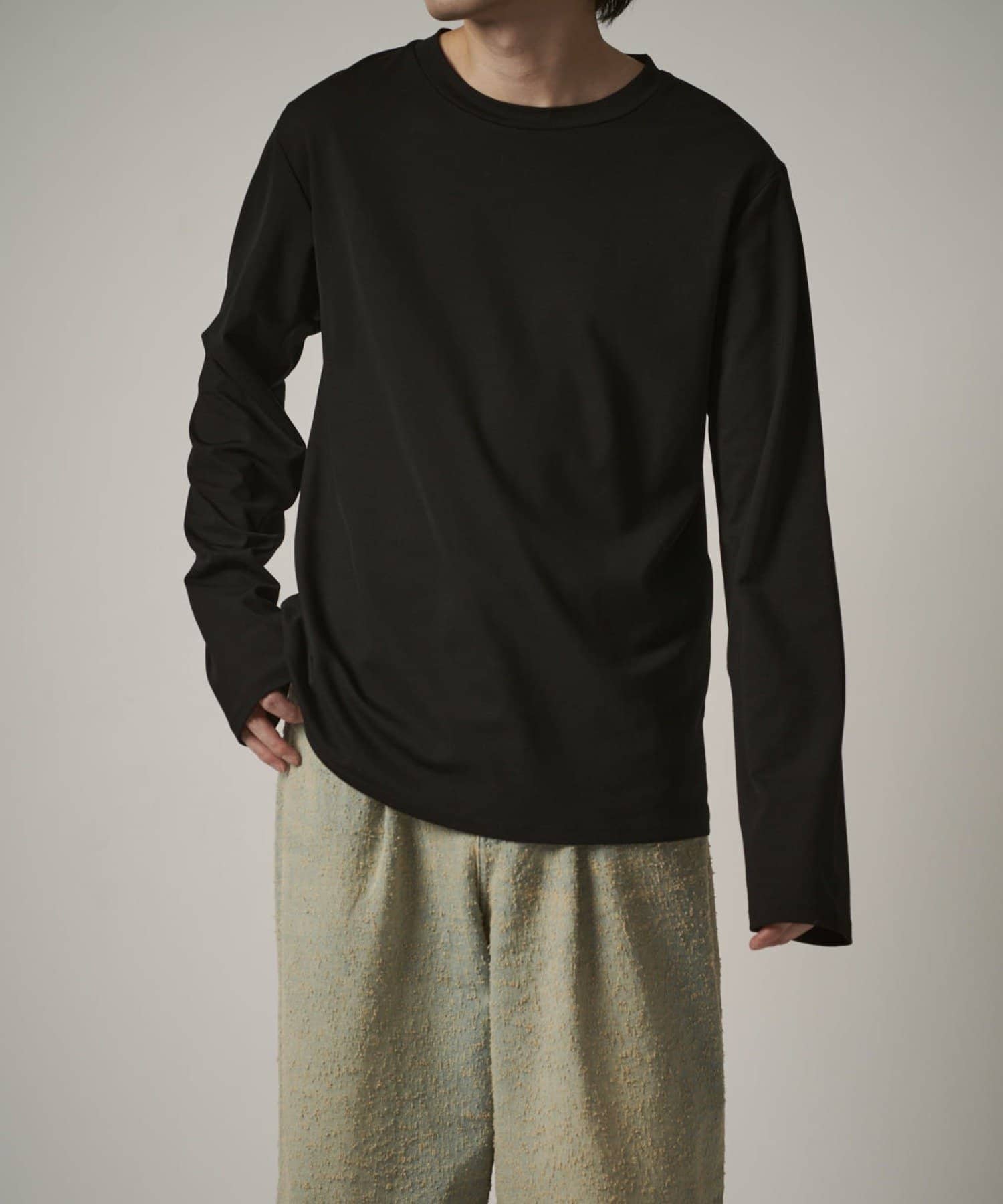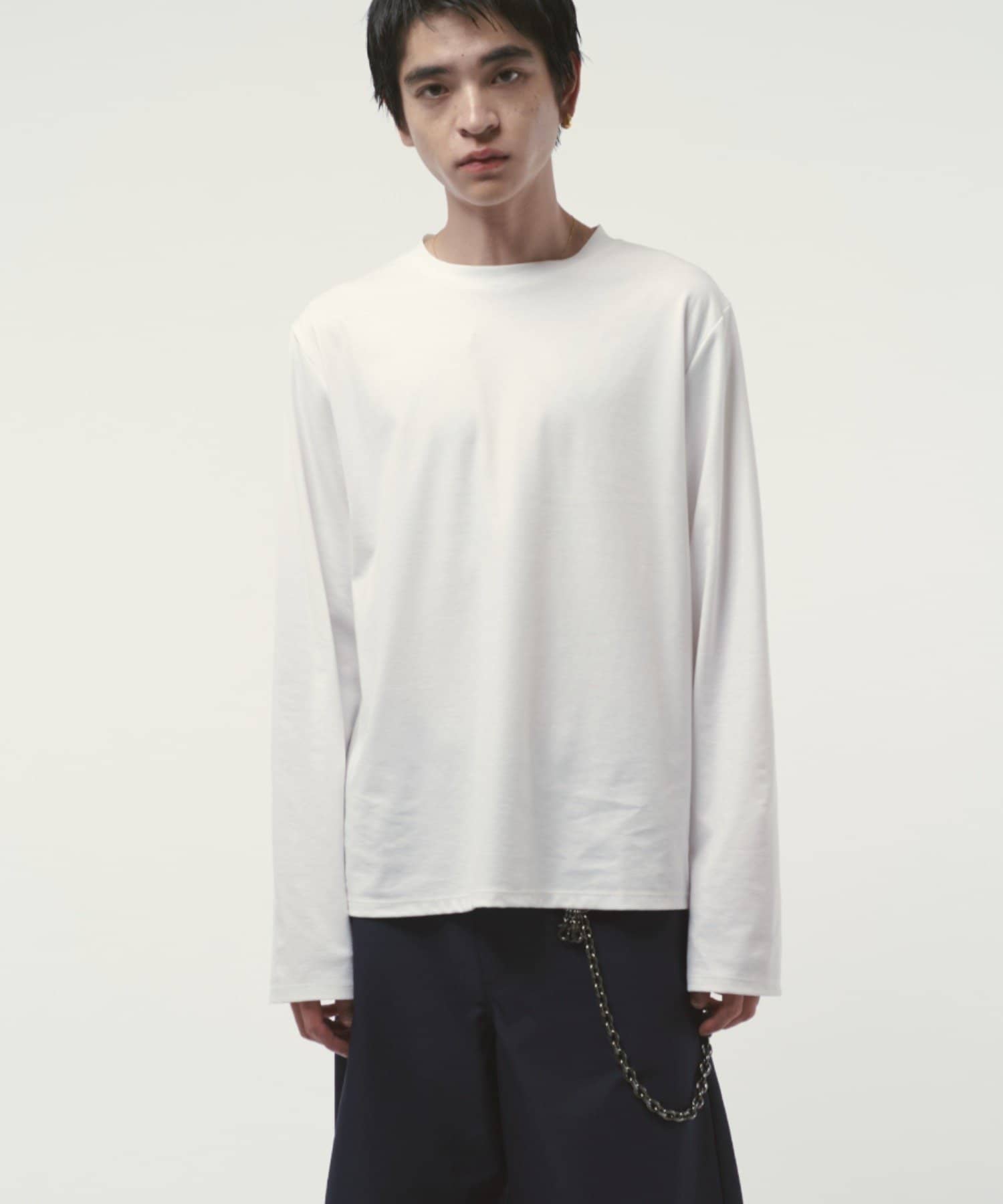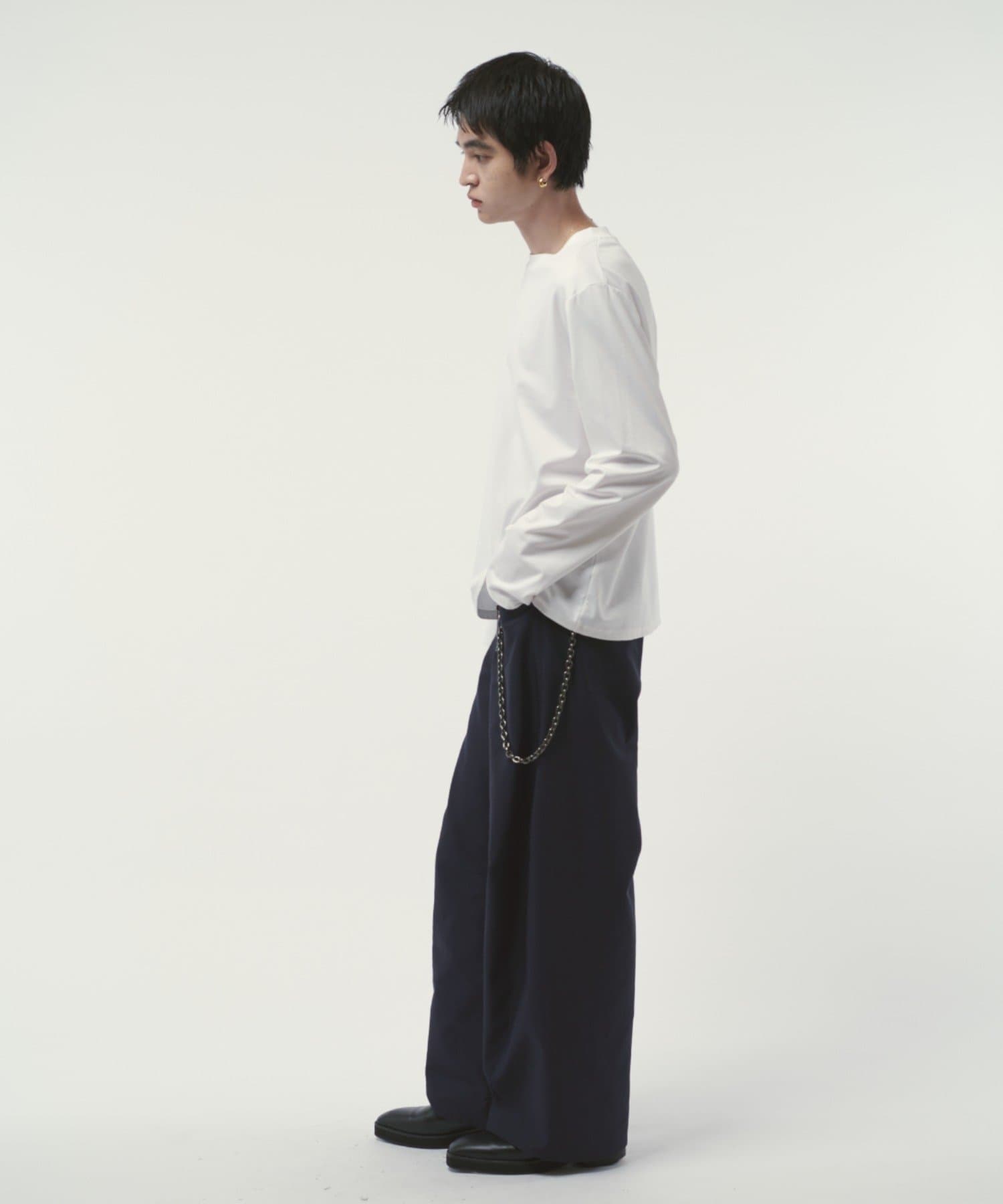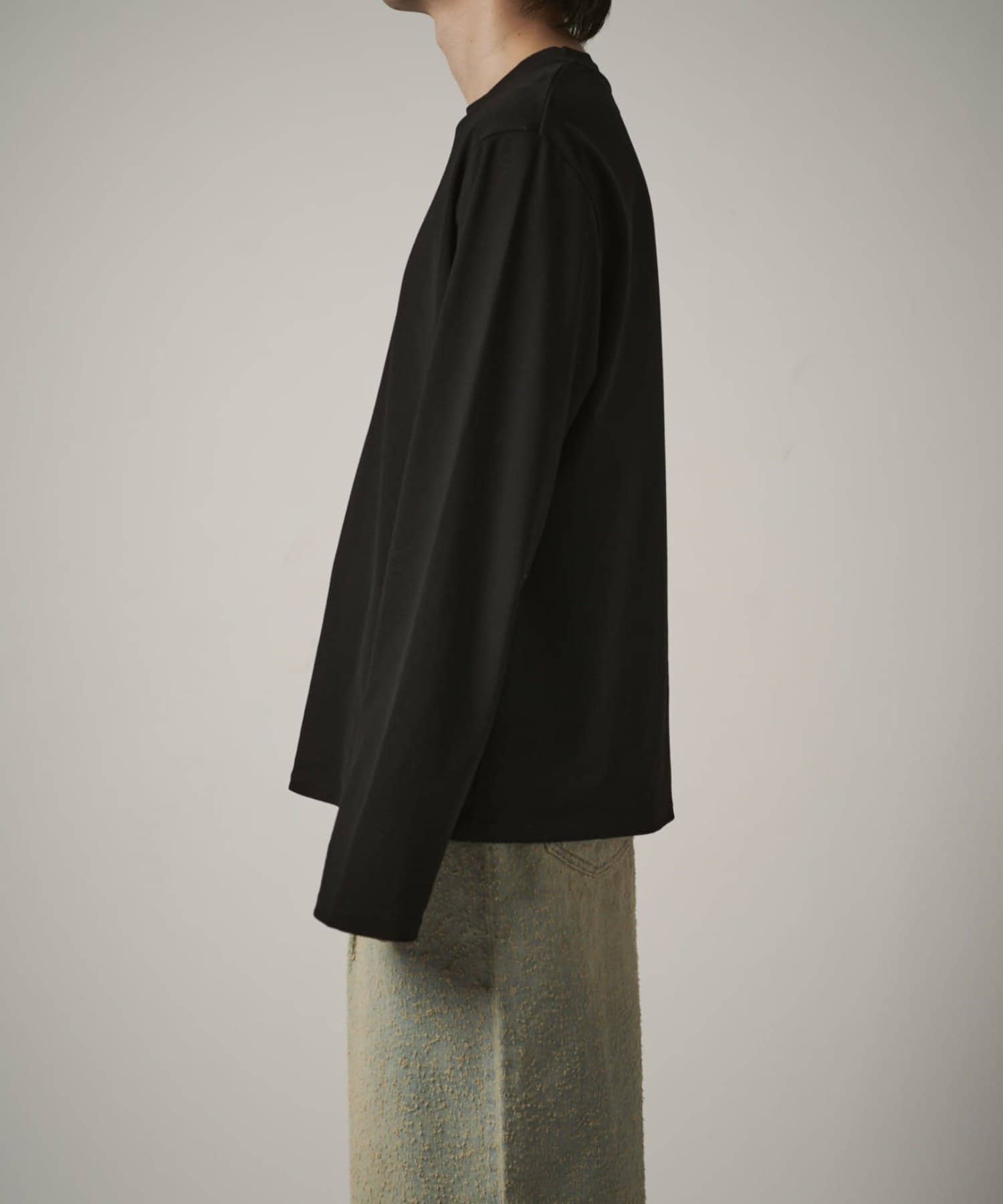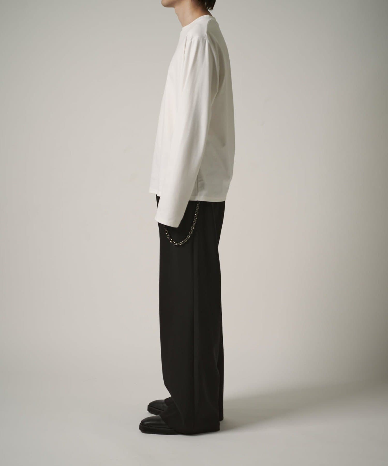 袖をやや長めに設定しており、無地Tでも一味違った見え方、シルエットを感じていただけます。