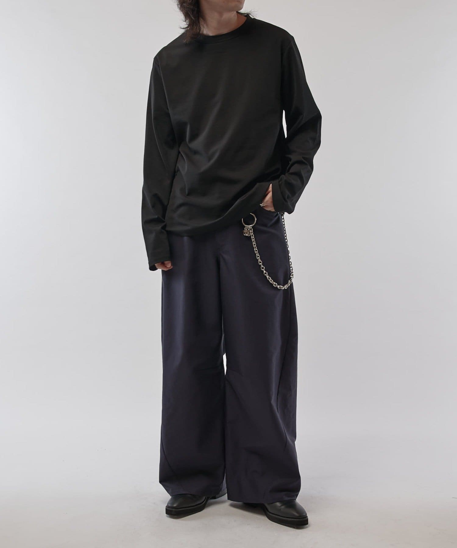 使いやすいシルエットでパンツも様々なシルエットに対応できます。