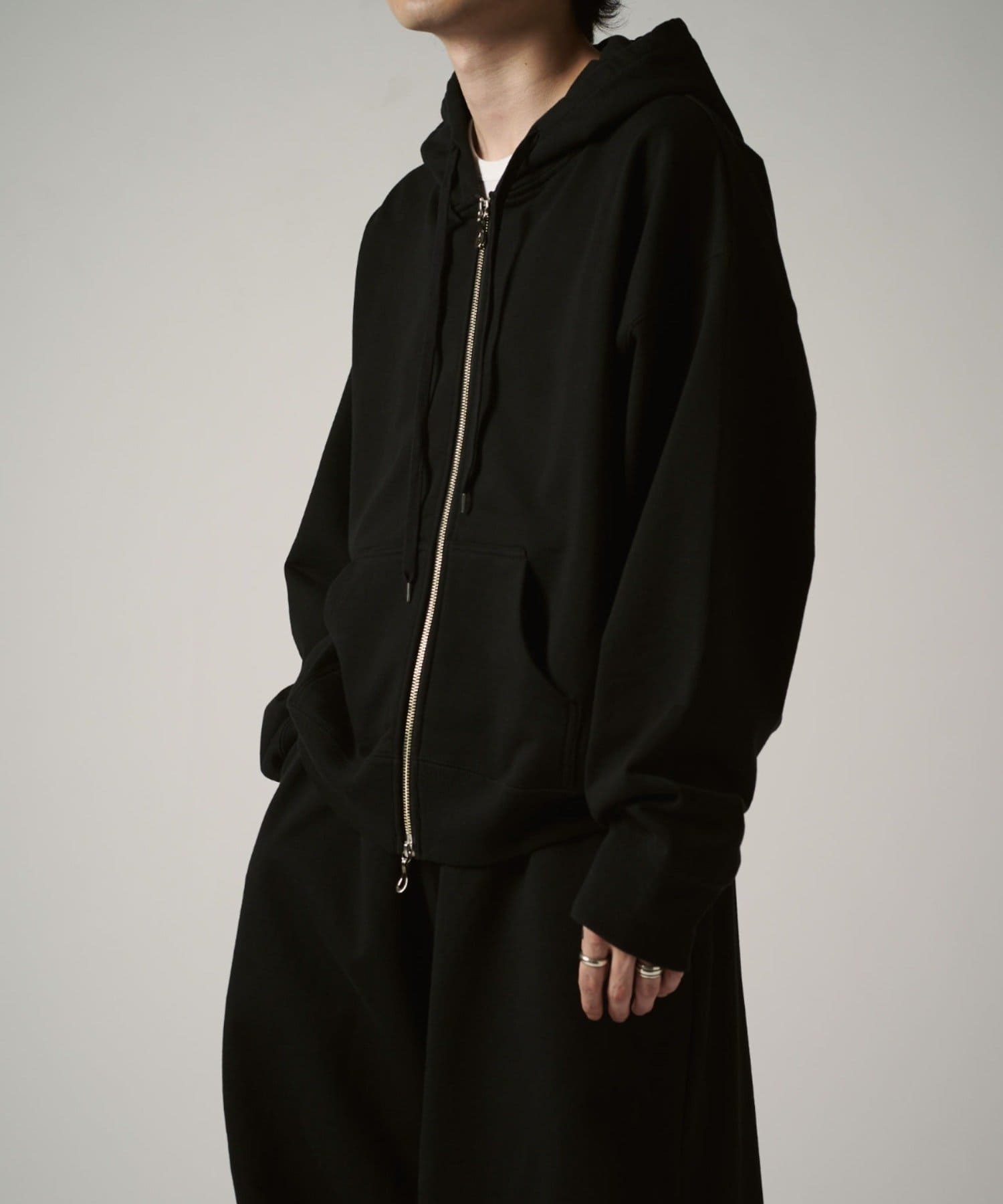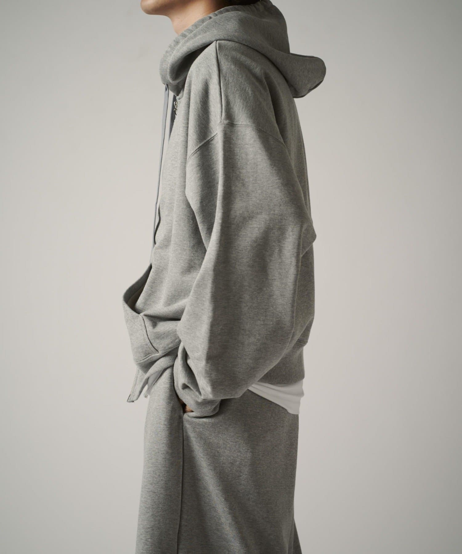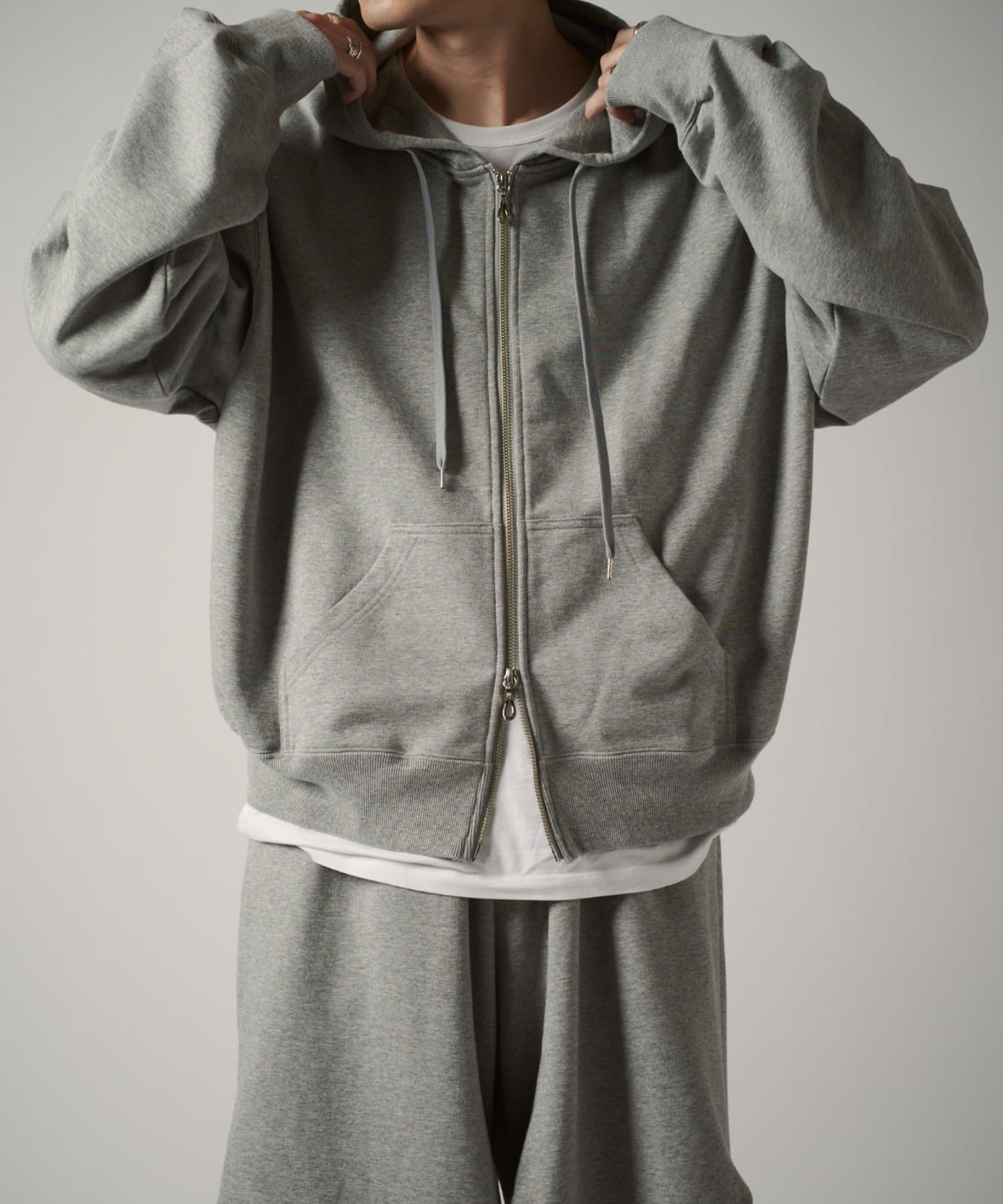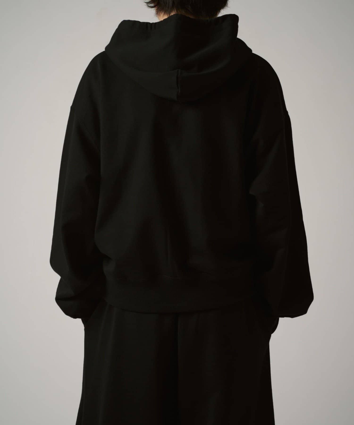 高密度に編まれているため、生地の表面がなめらかで、上品な印象のスウェットパーカー。