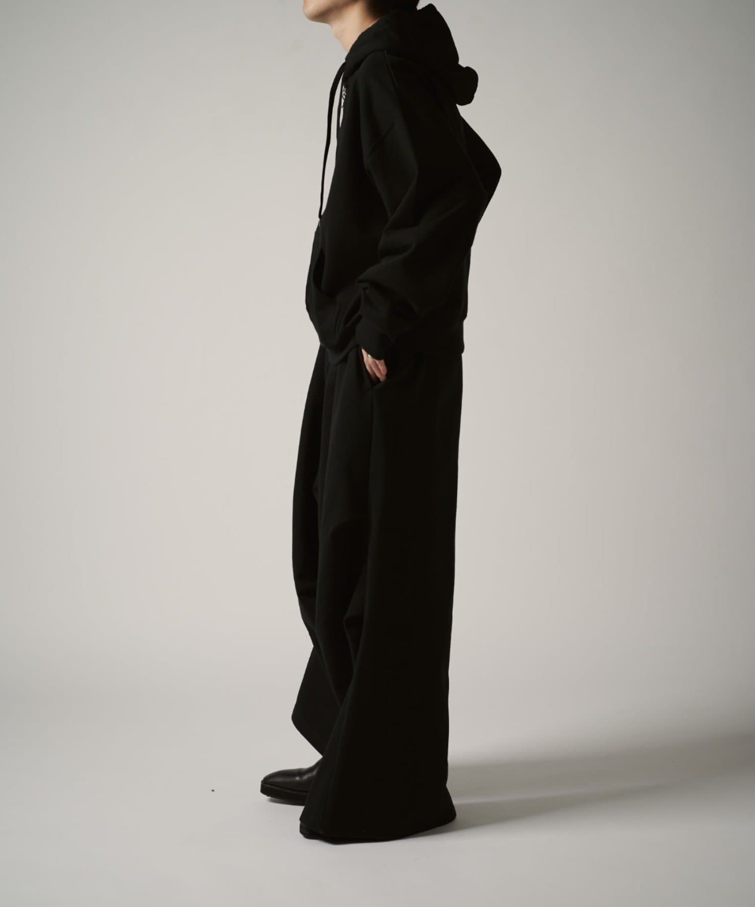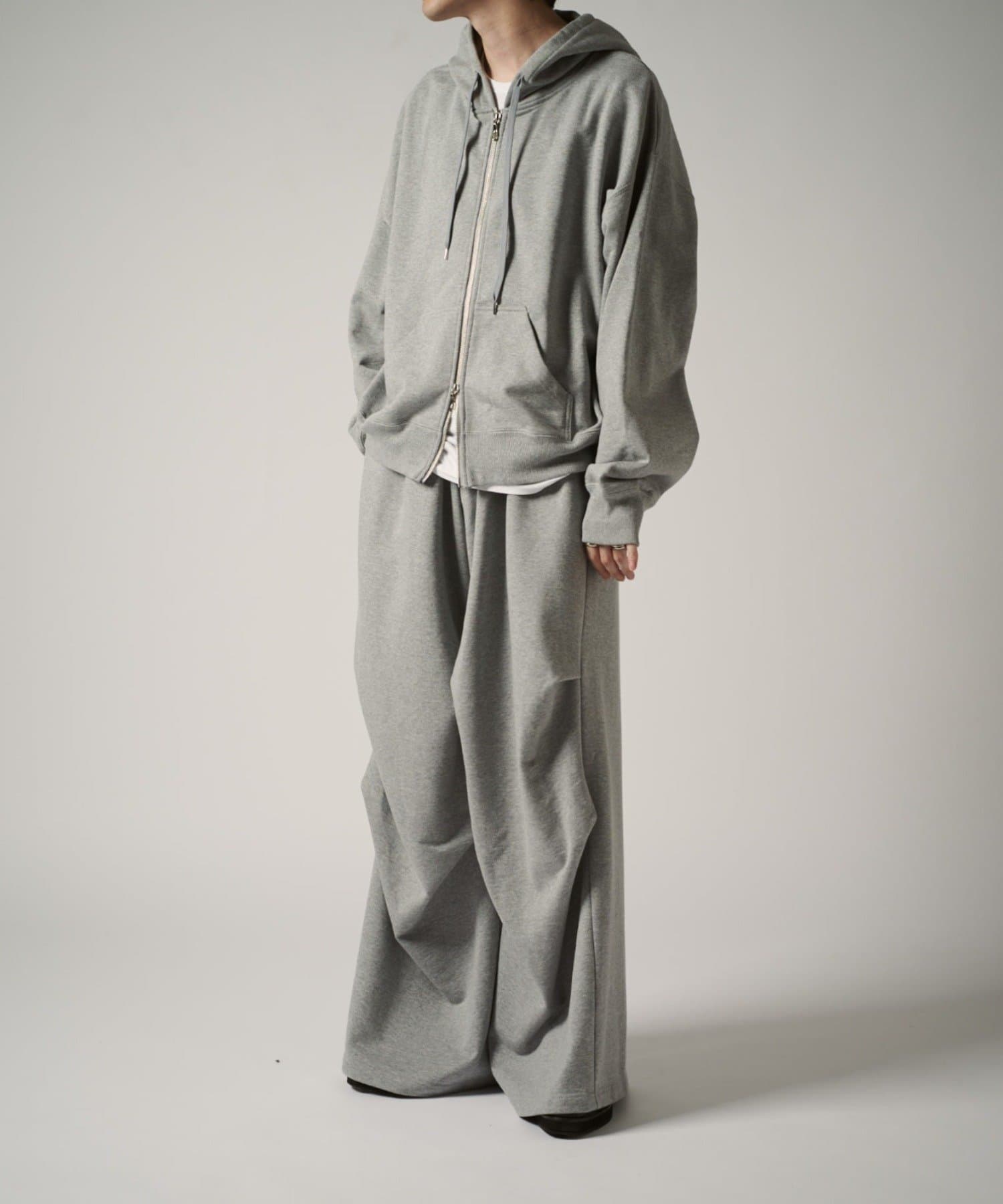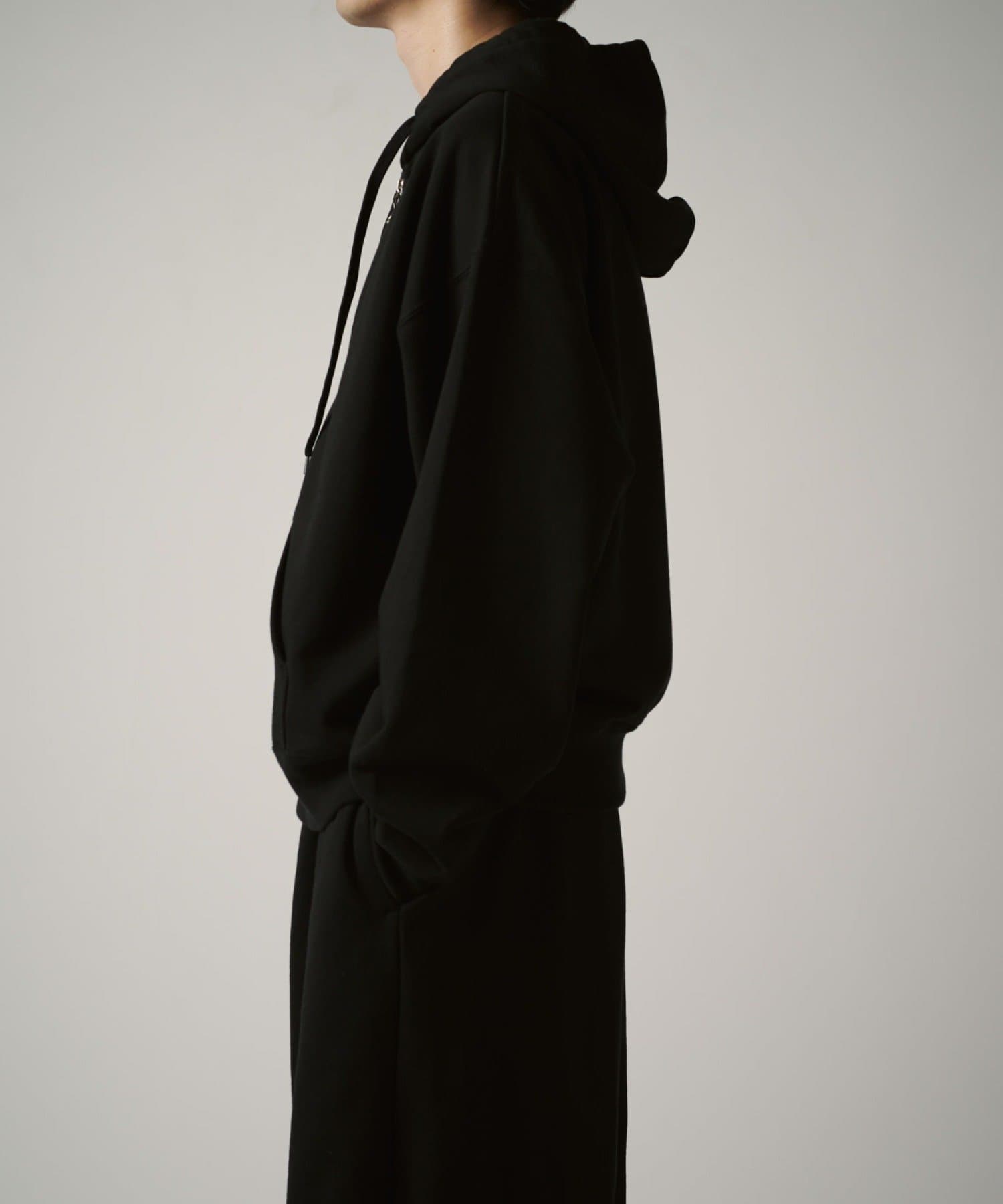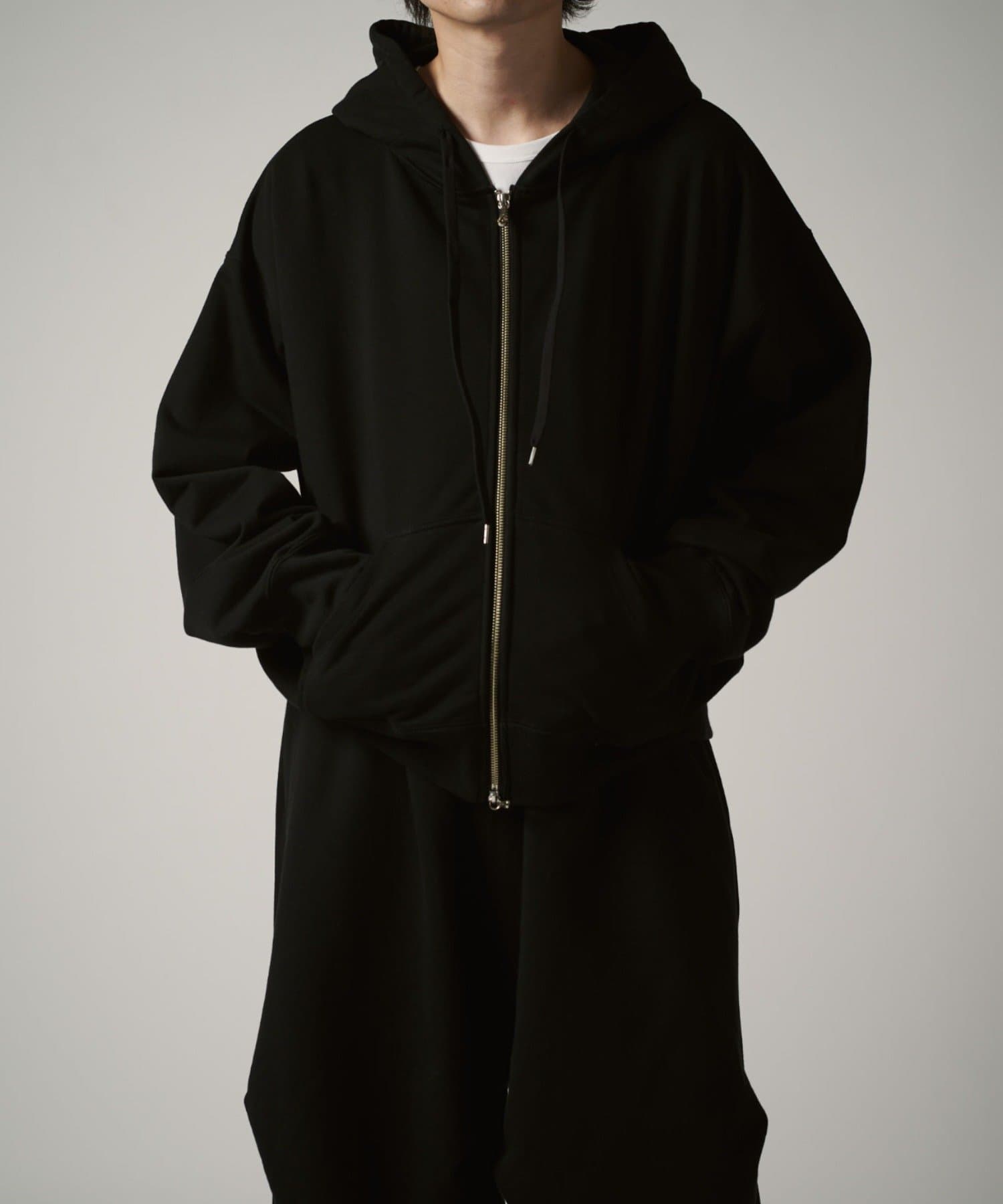 高密度に編まれているため、生地の表面がなめらかで、上品な印象のスウェットパーカー。