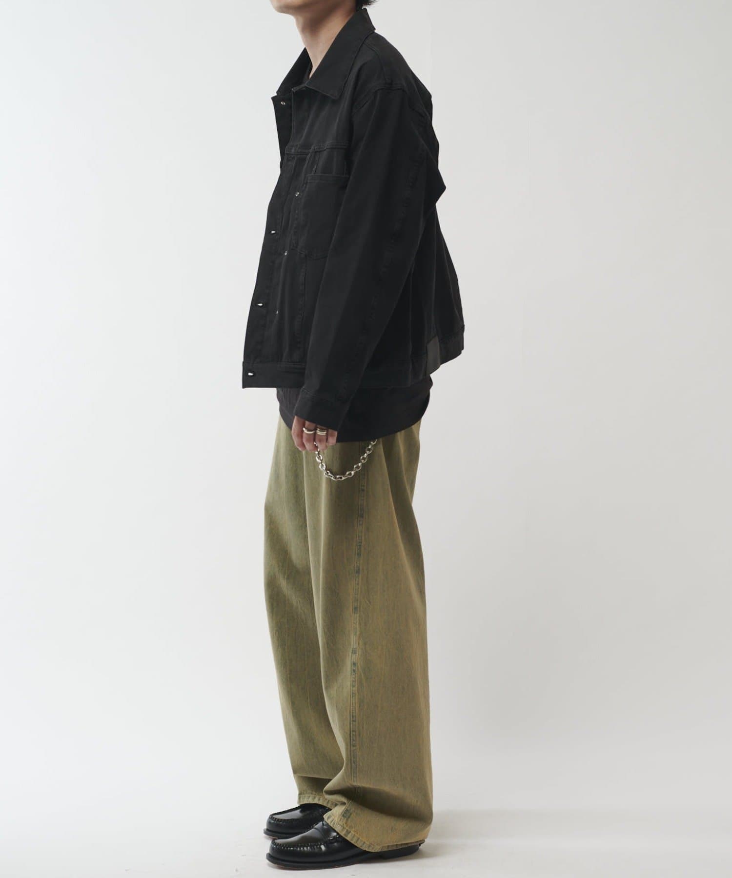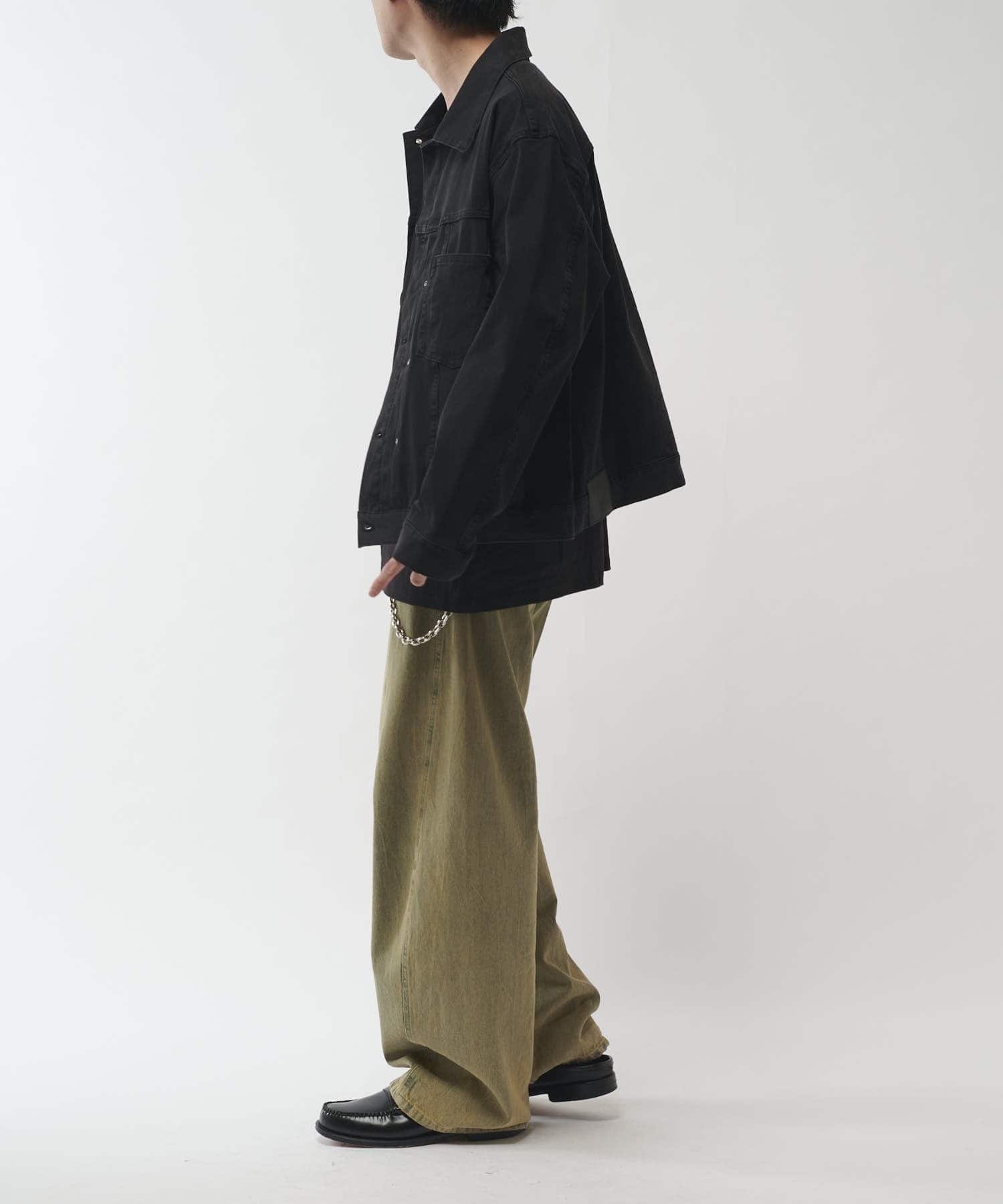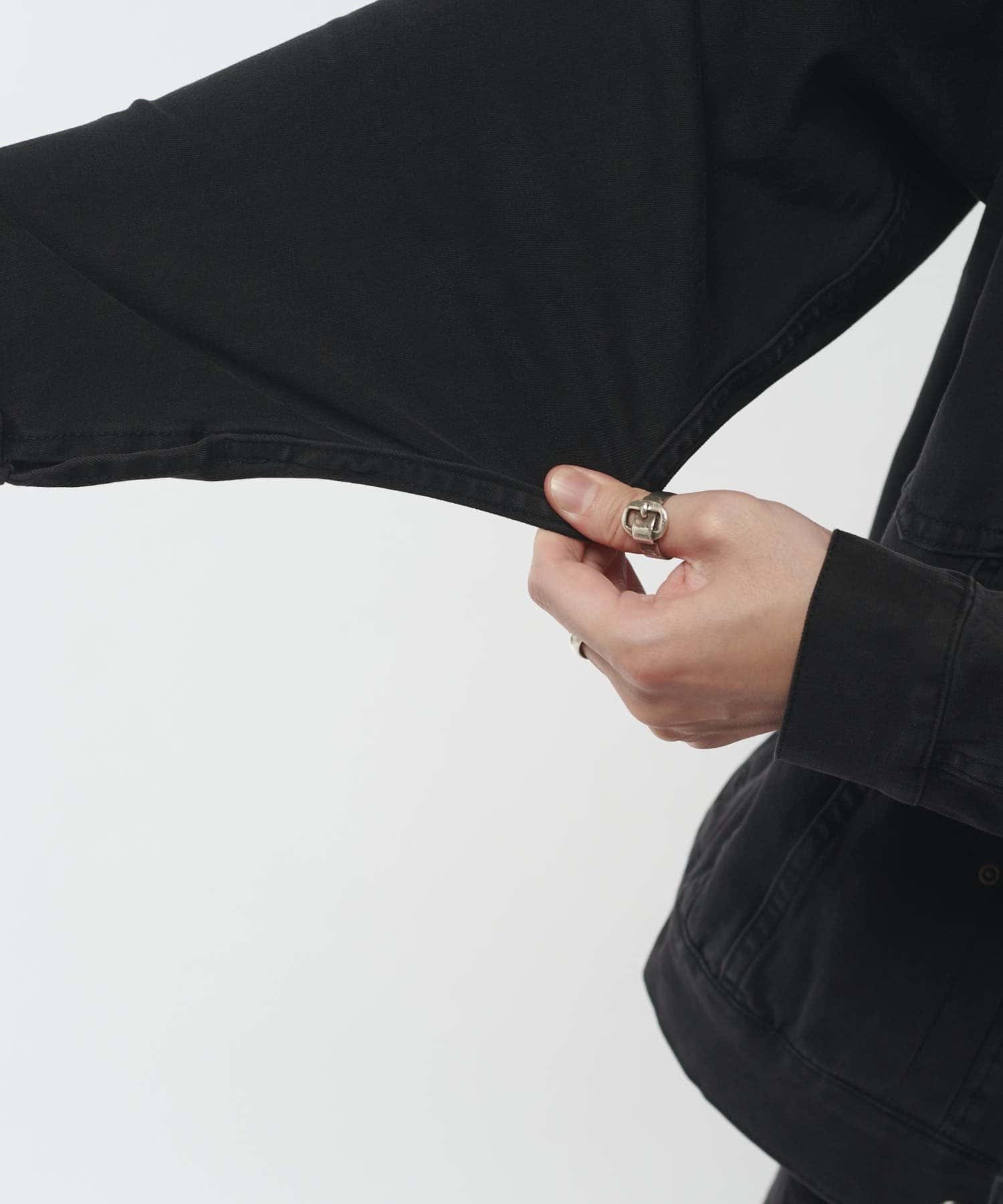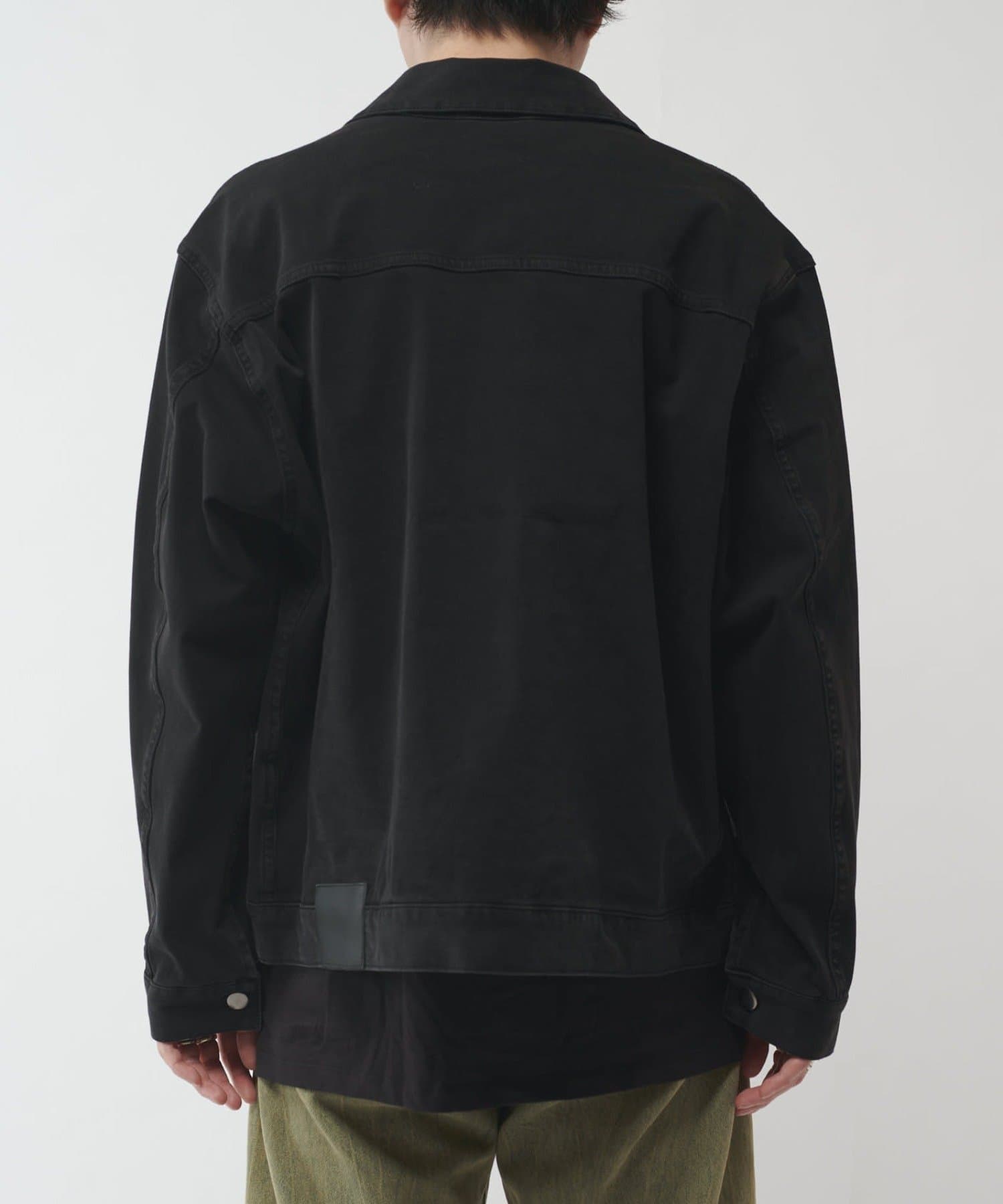 かなり伸縮性が高い生地を使用し、快適な着心地を追求したオーバーサイズのデニムトラッカージャケット。