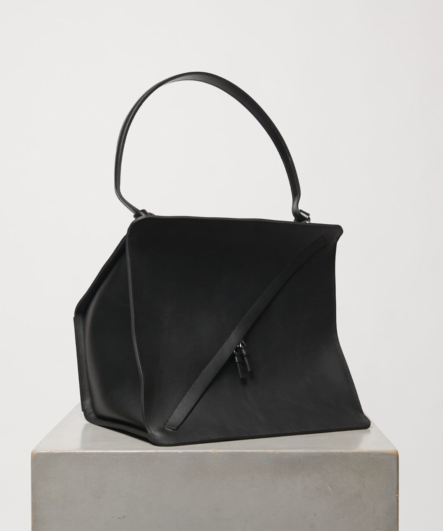 一見ユニークなデザインながら、収納力と使い勝手は非常に高く、斜めがけした際のラフさと品のあるシルエットが、カジュアルからモードまで幅広いスタイルに自然と馴染みます。