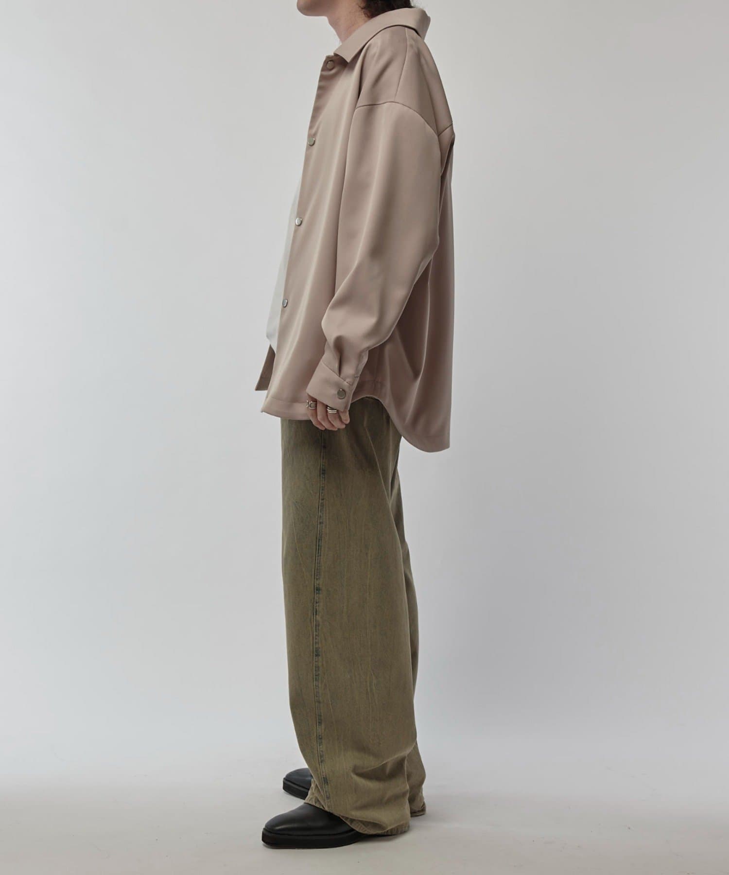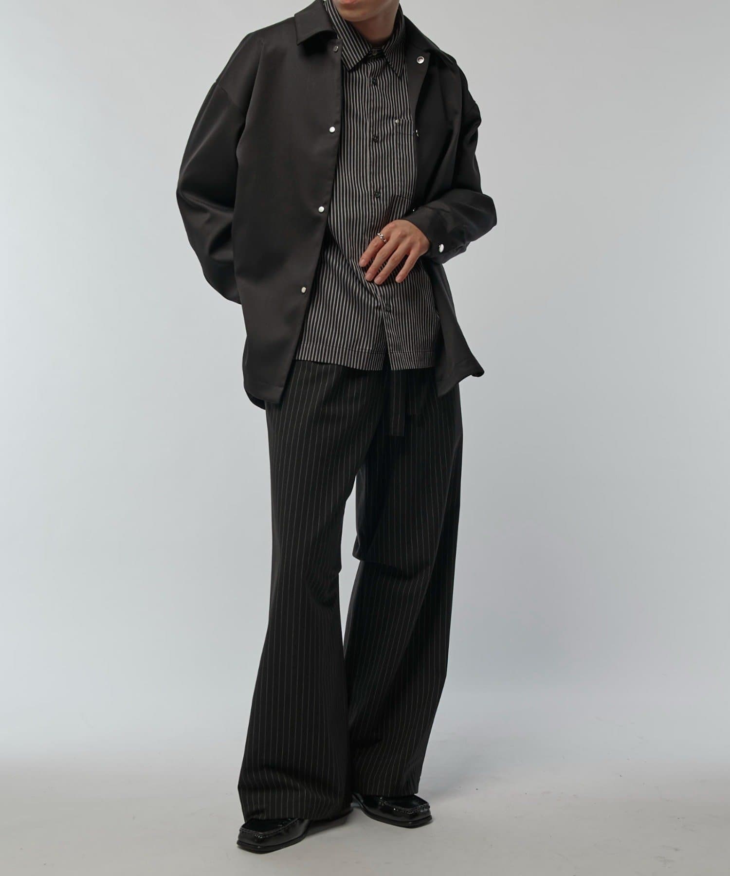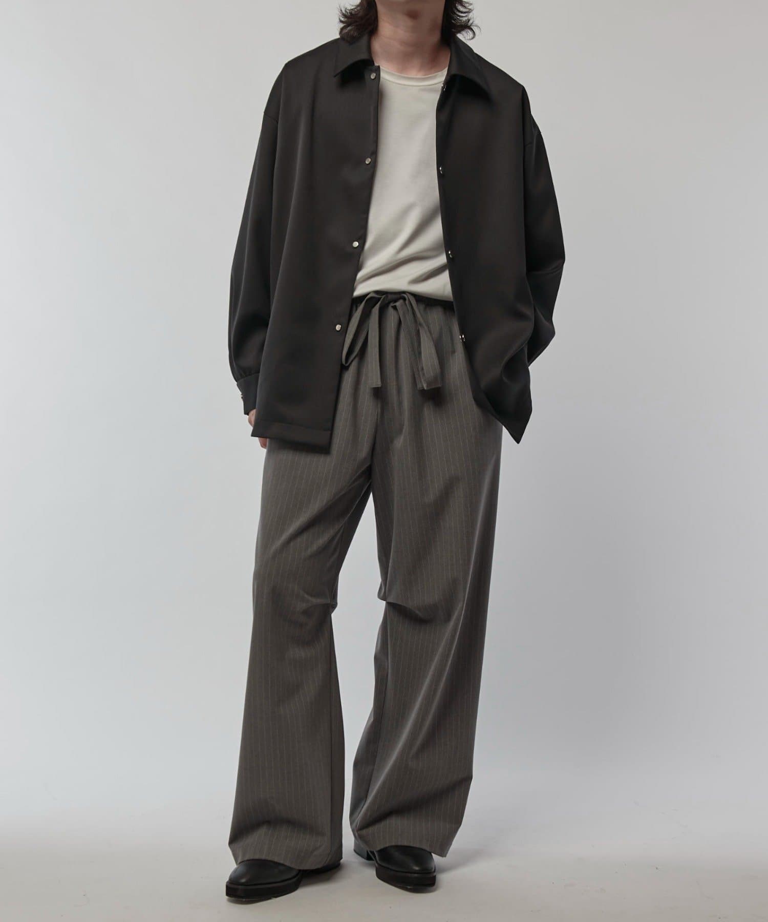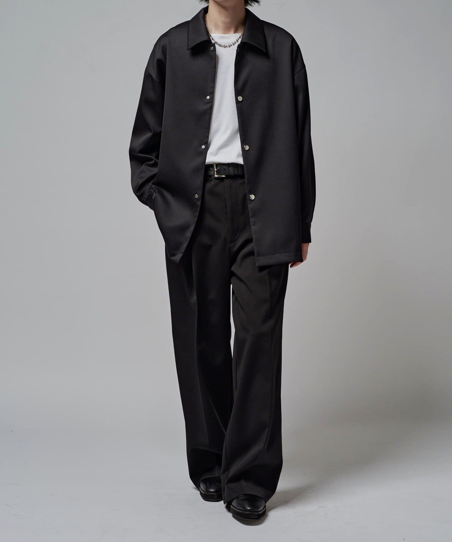 きれいめな素材感ですので、足元は革靴で合わせていただくのがおすすめです。パンツはデニムやスラックスお好みでお選びください。