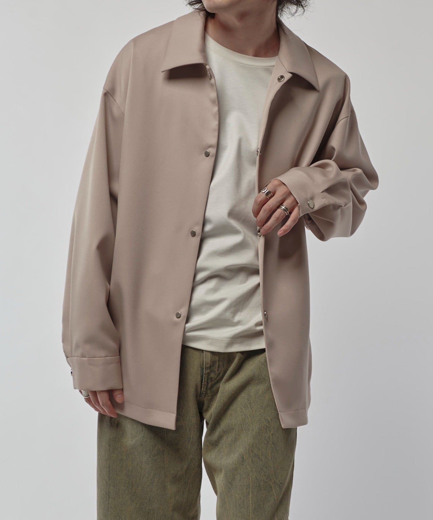 シャツのパターンを採用し、生地やボタンなどはアウターの要素を追加したようなシャツブルゾン。