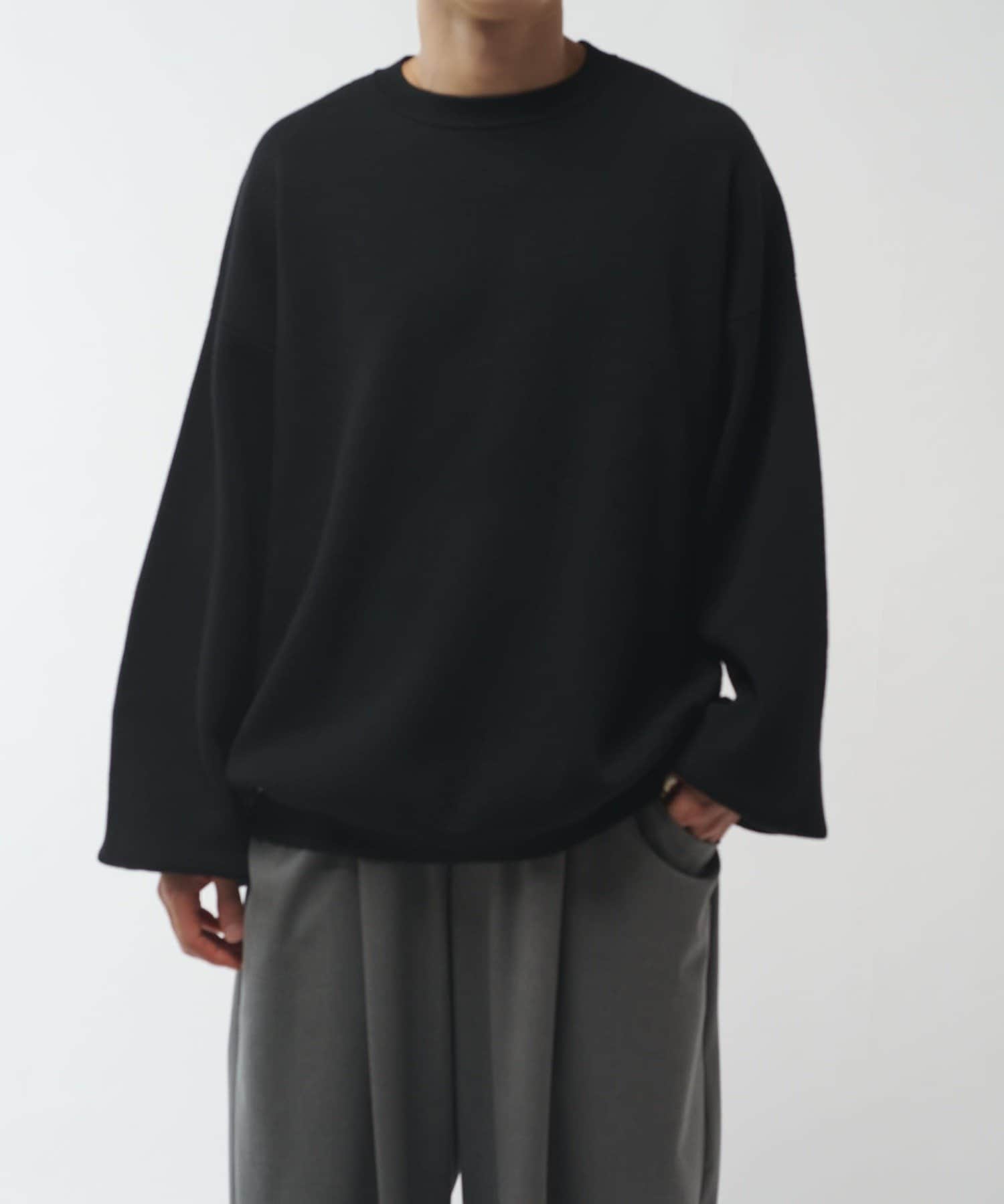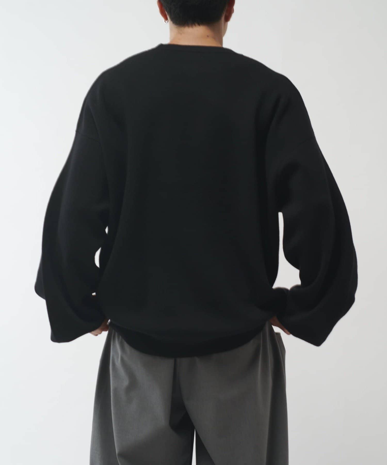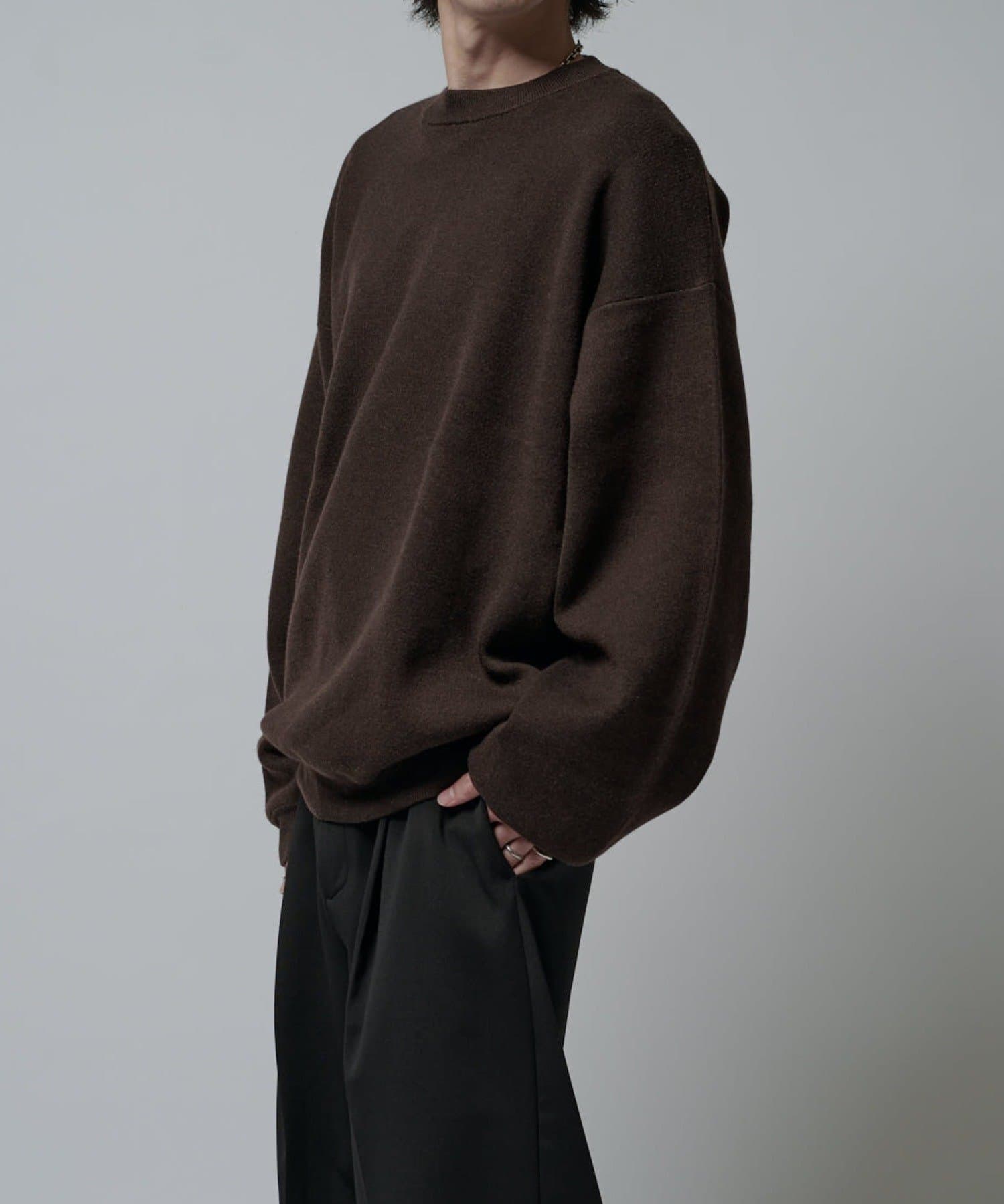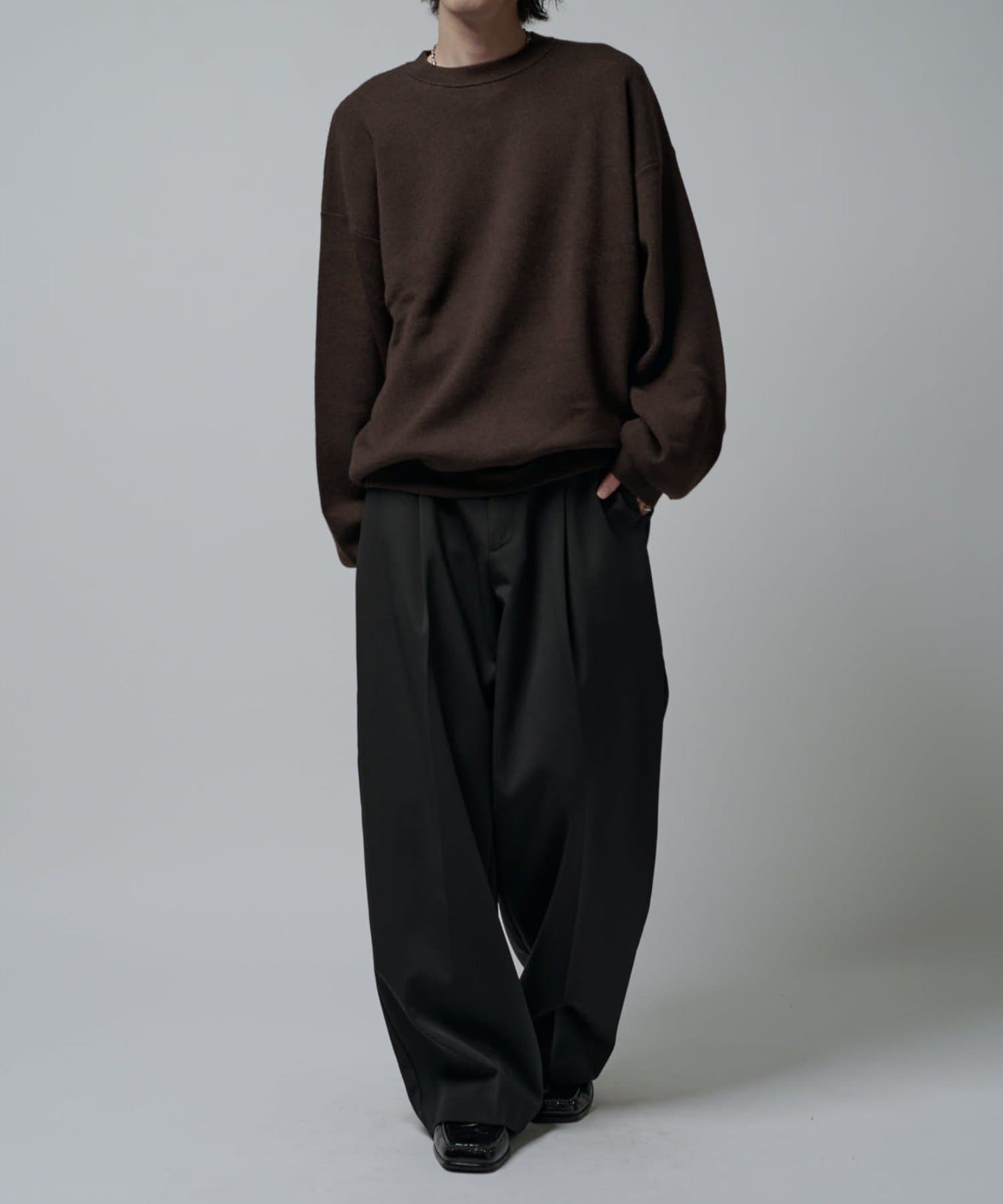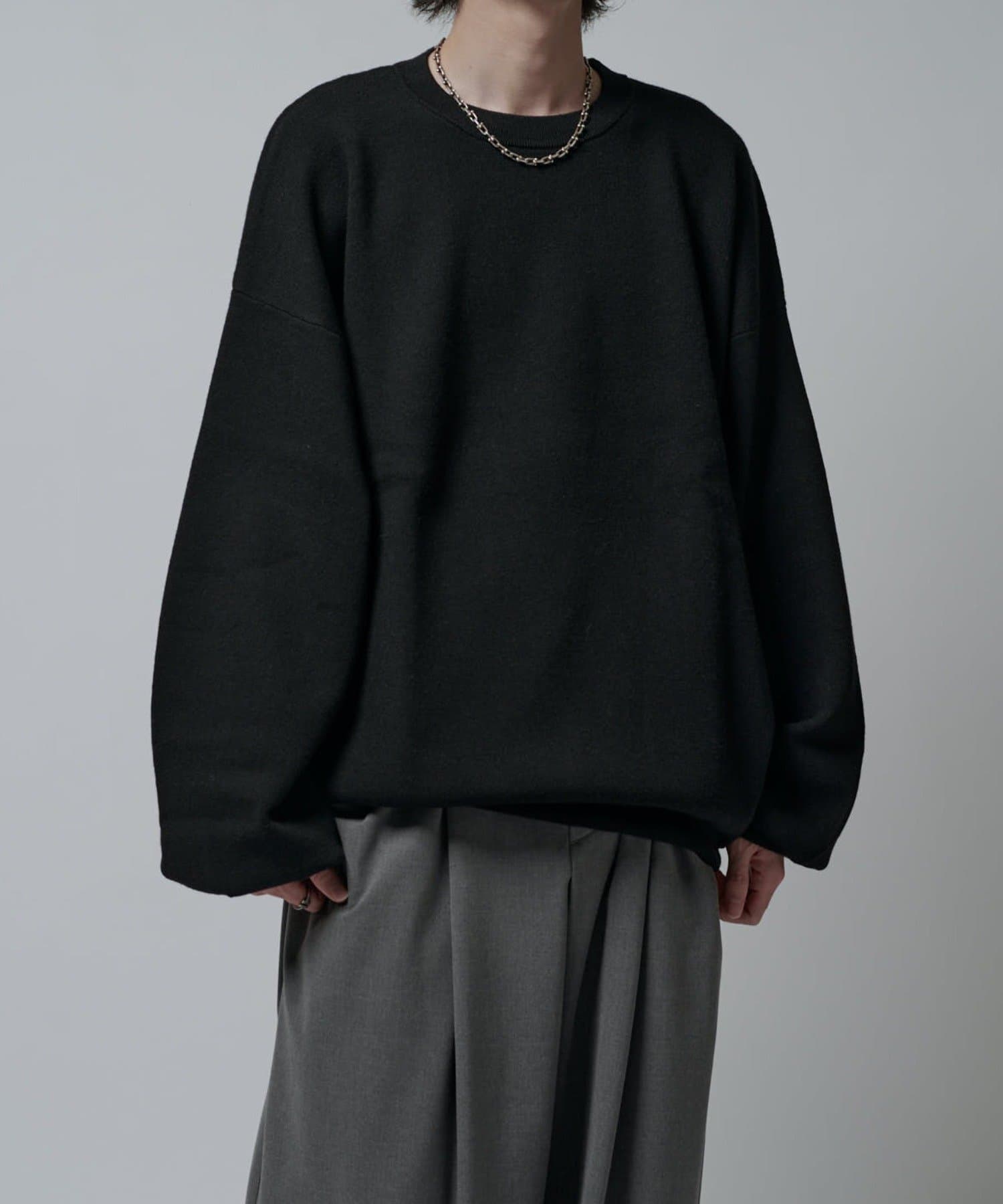 素材には、ポリエステル×ナイロン×アクリル×ウールの混紡素材を使用。もちっとした質感と、スウェットライクに着られる程よい肉感がポイント。クリーンで上品な見た目と、ウォッシャブルでイージーケアなのもポイント。