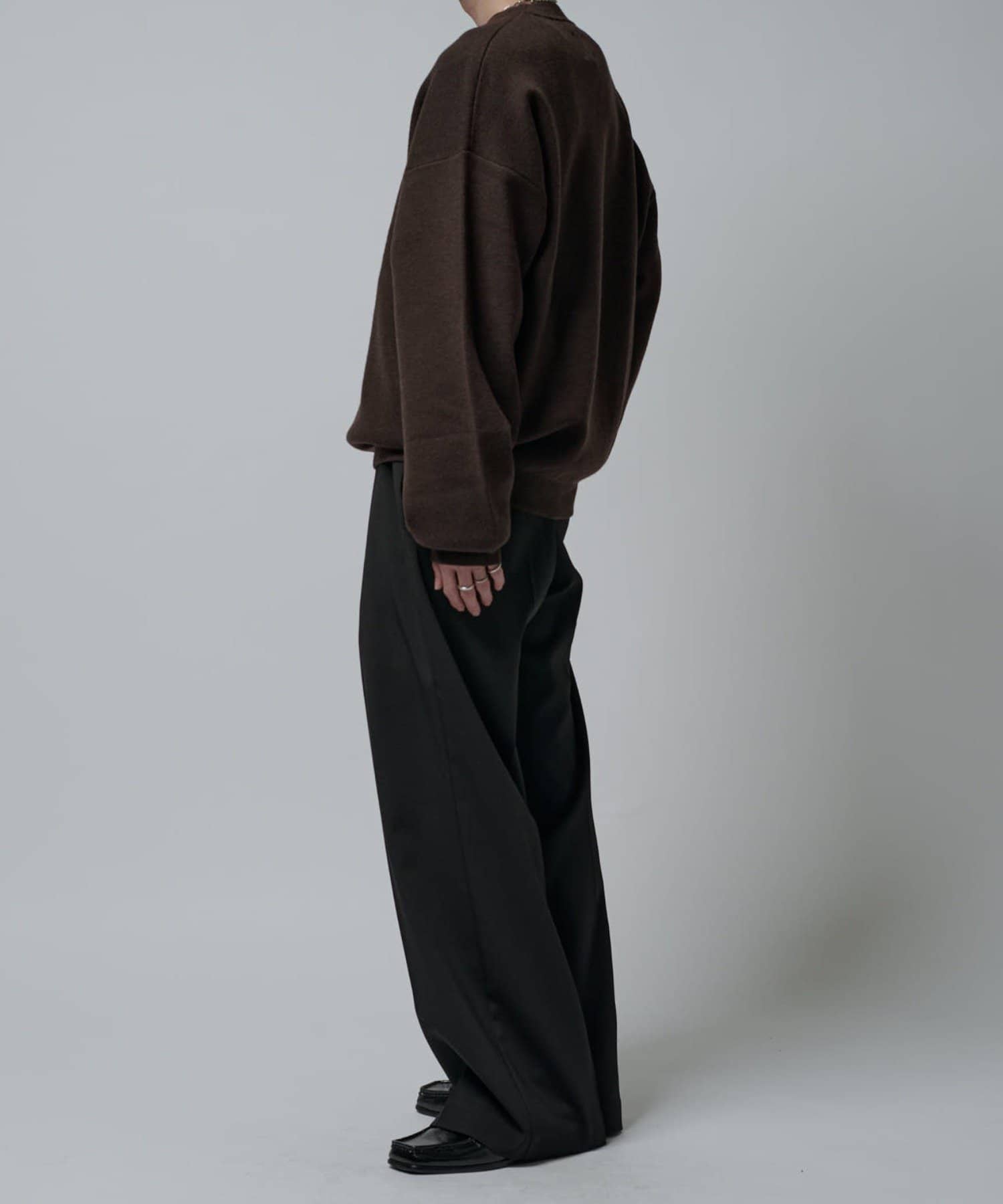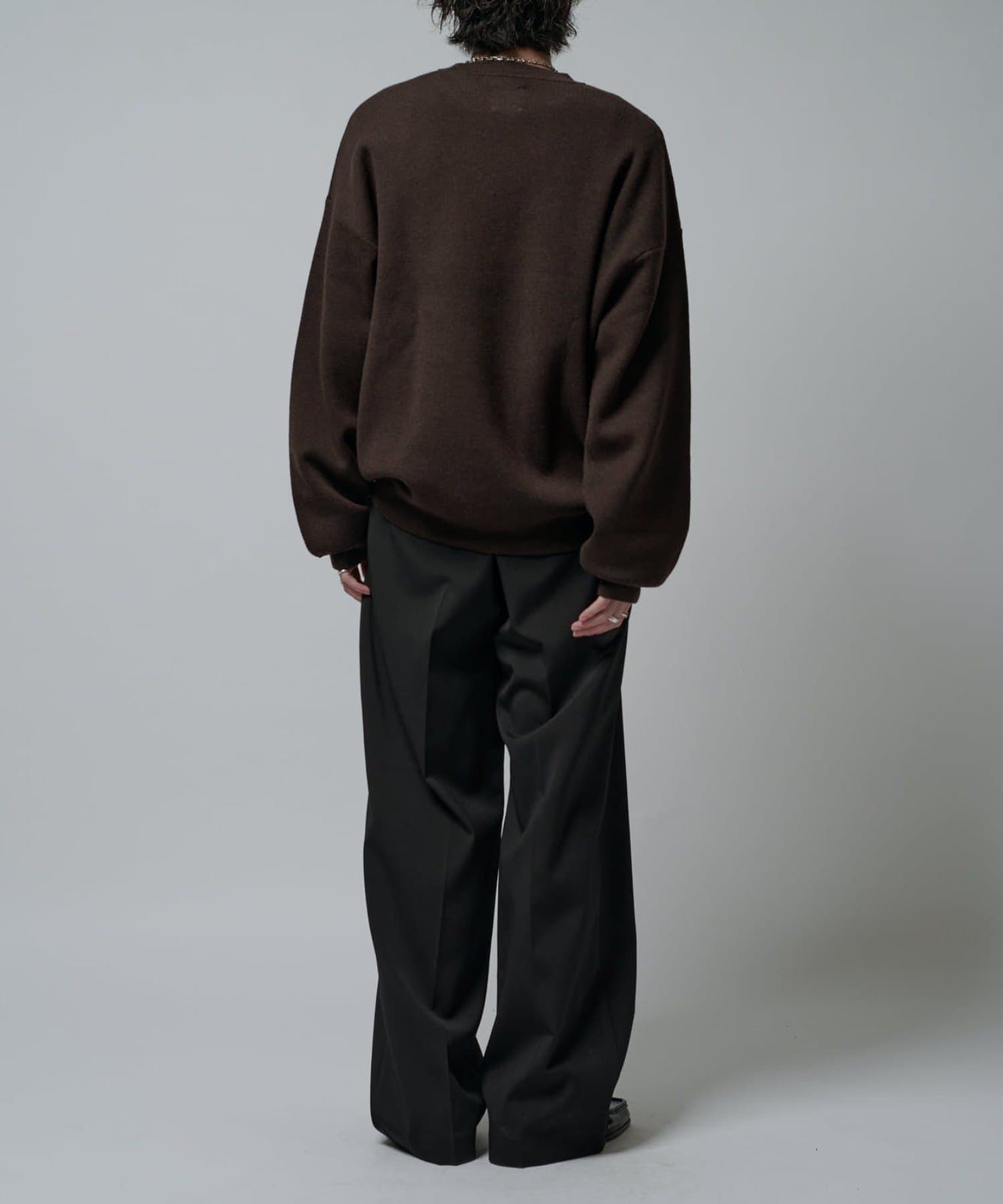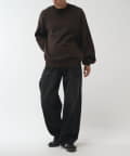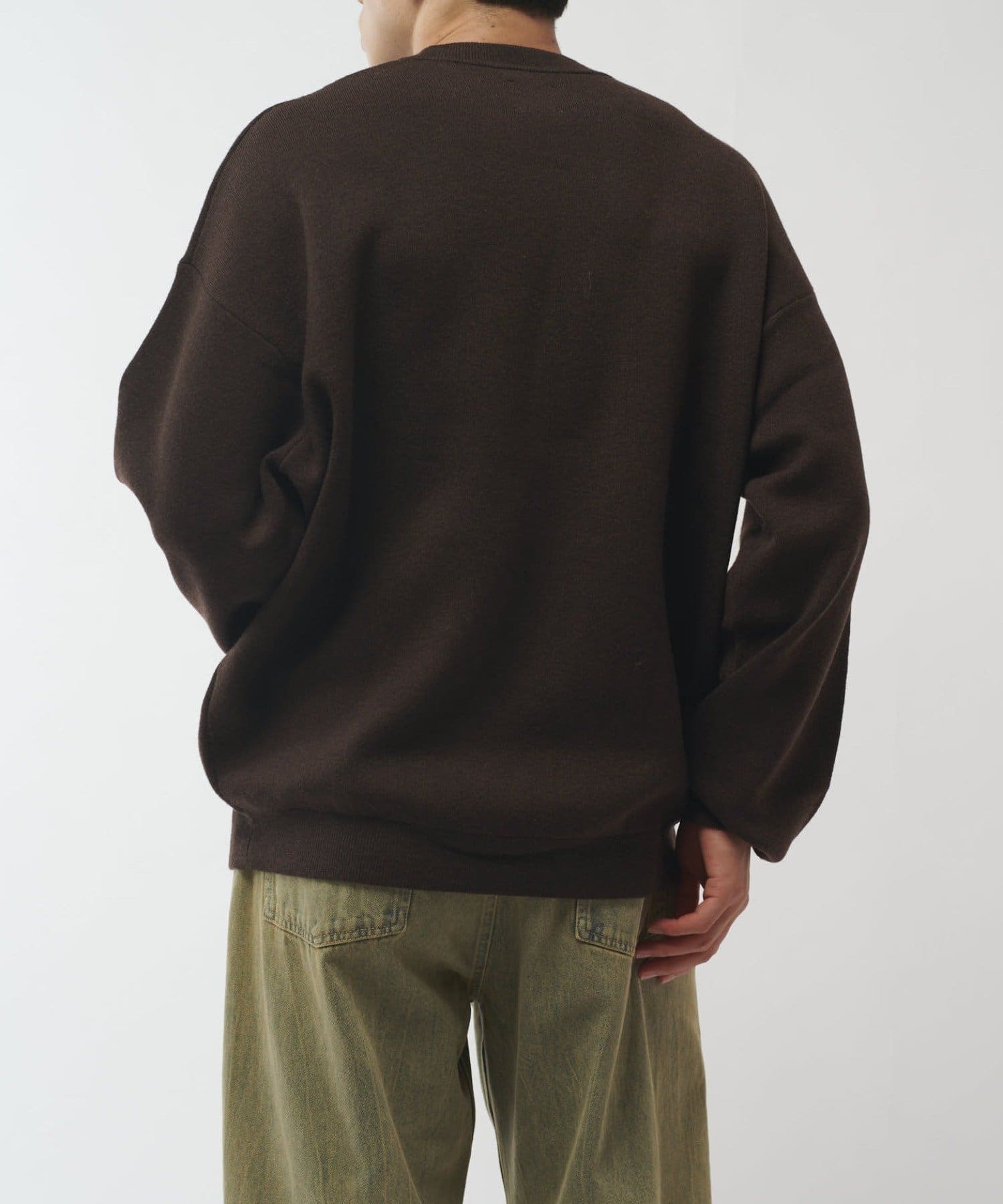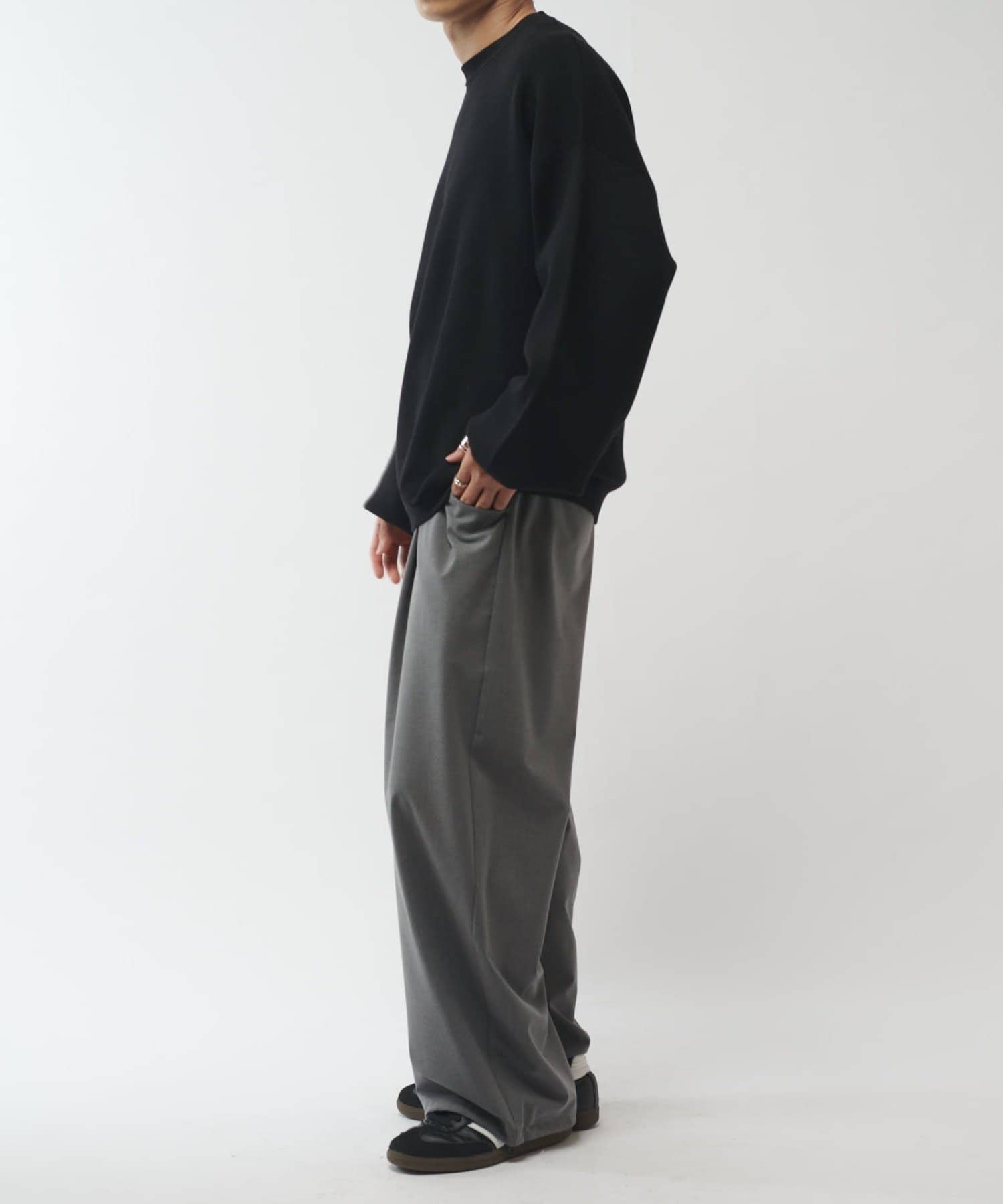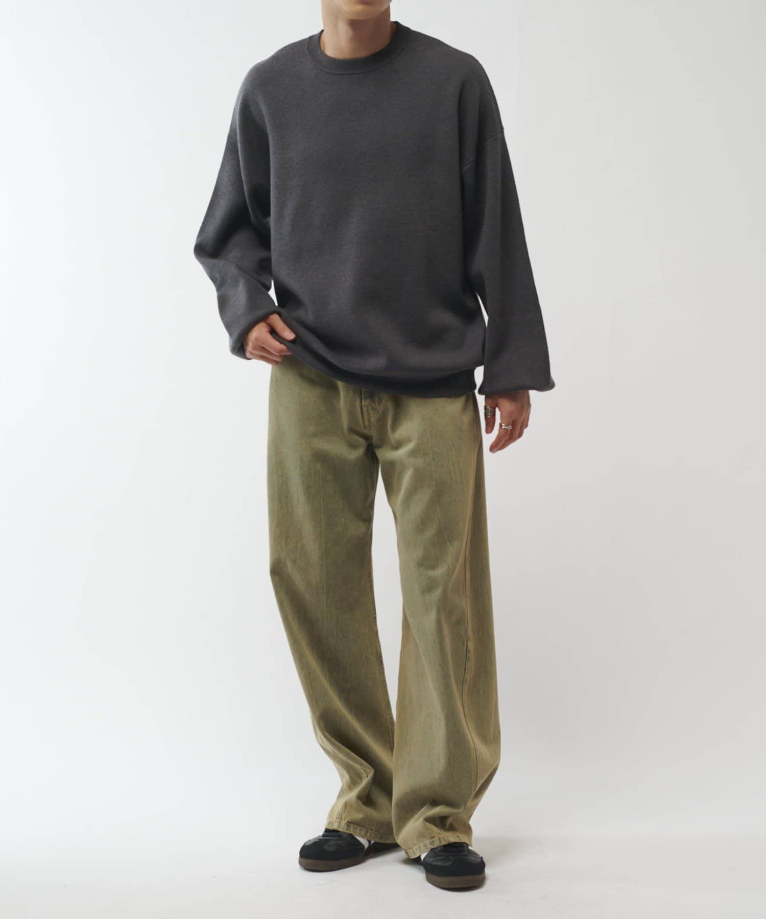 素材には、ポリエステル×ナイロン×アクリル×ウールの混紡素材を使用。もちっとした質感と、スウェットライクに着られる程よい肉感がポイント。クリーンで上品な見た目と、ウォッシャブルでイージーケアなのもポイント。