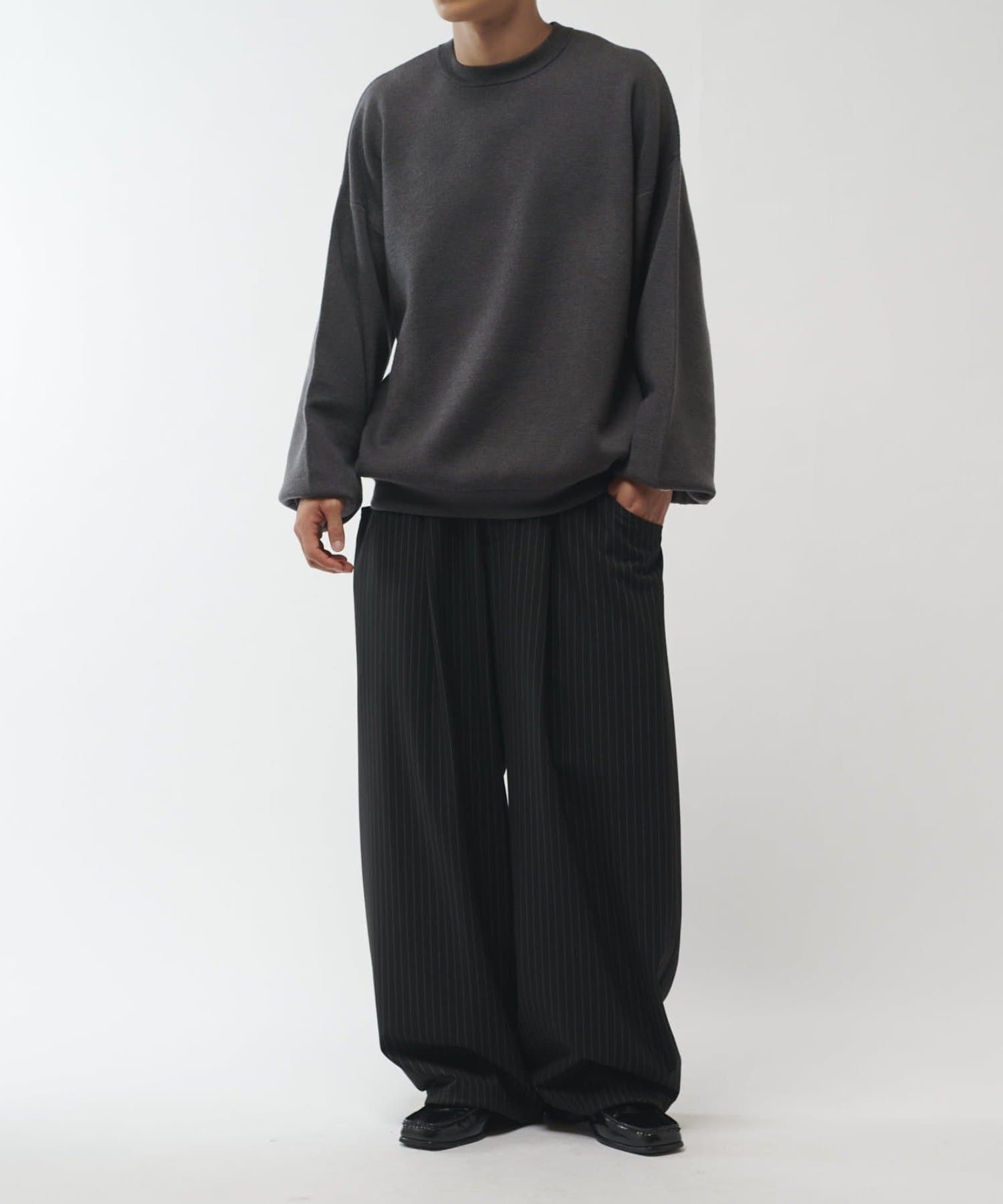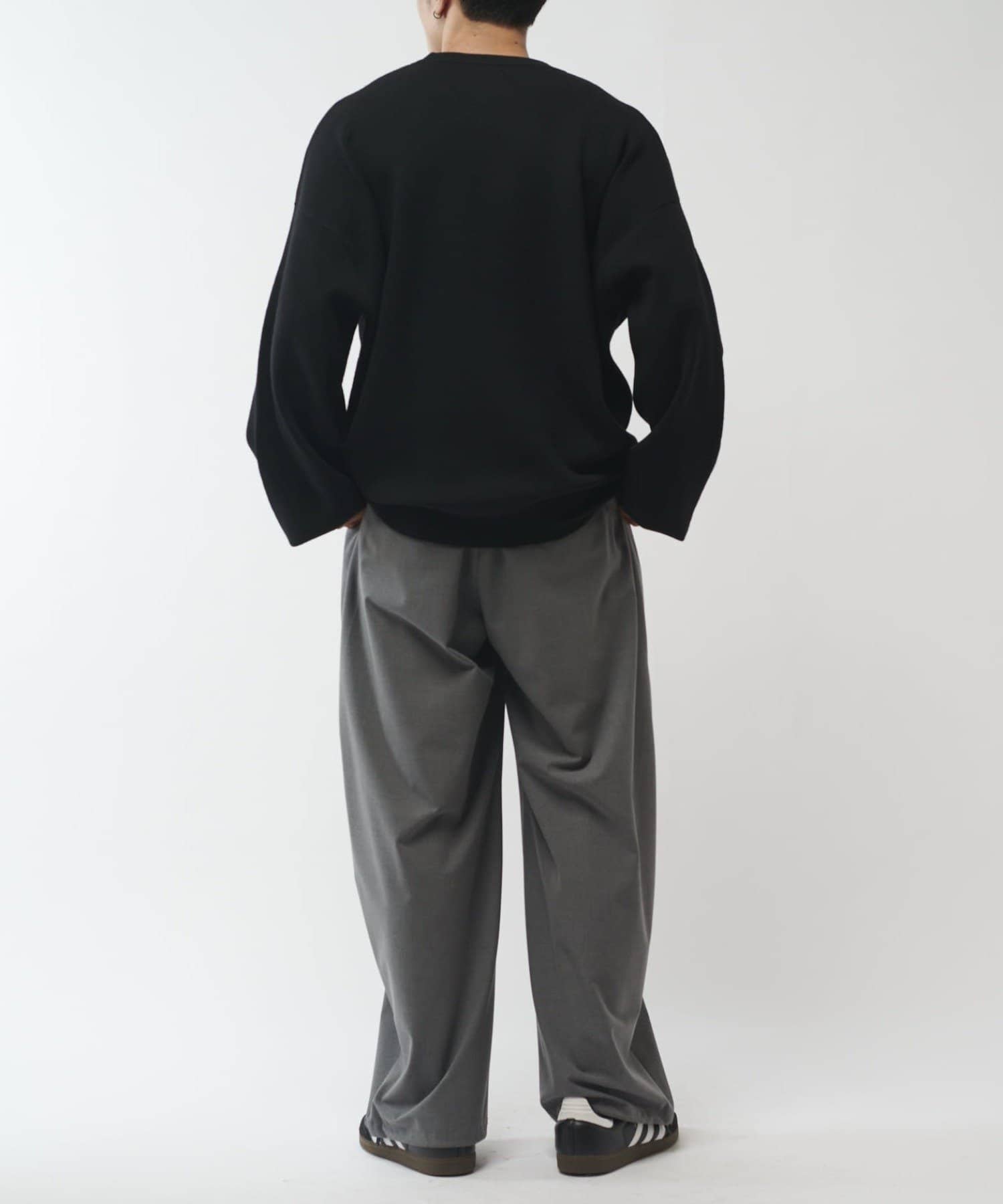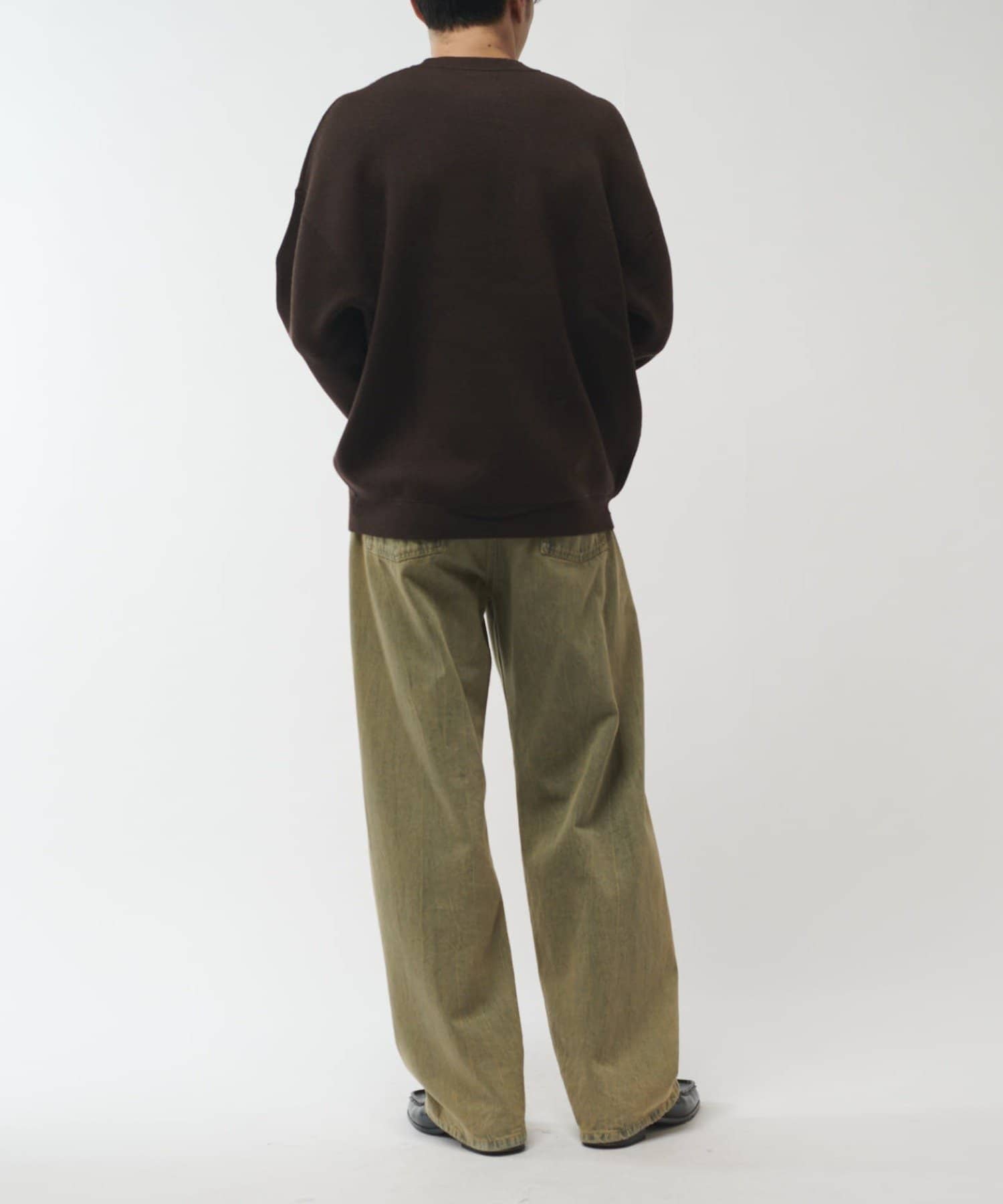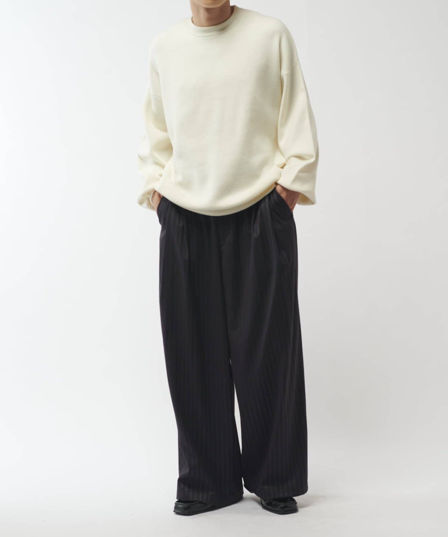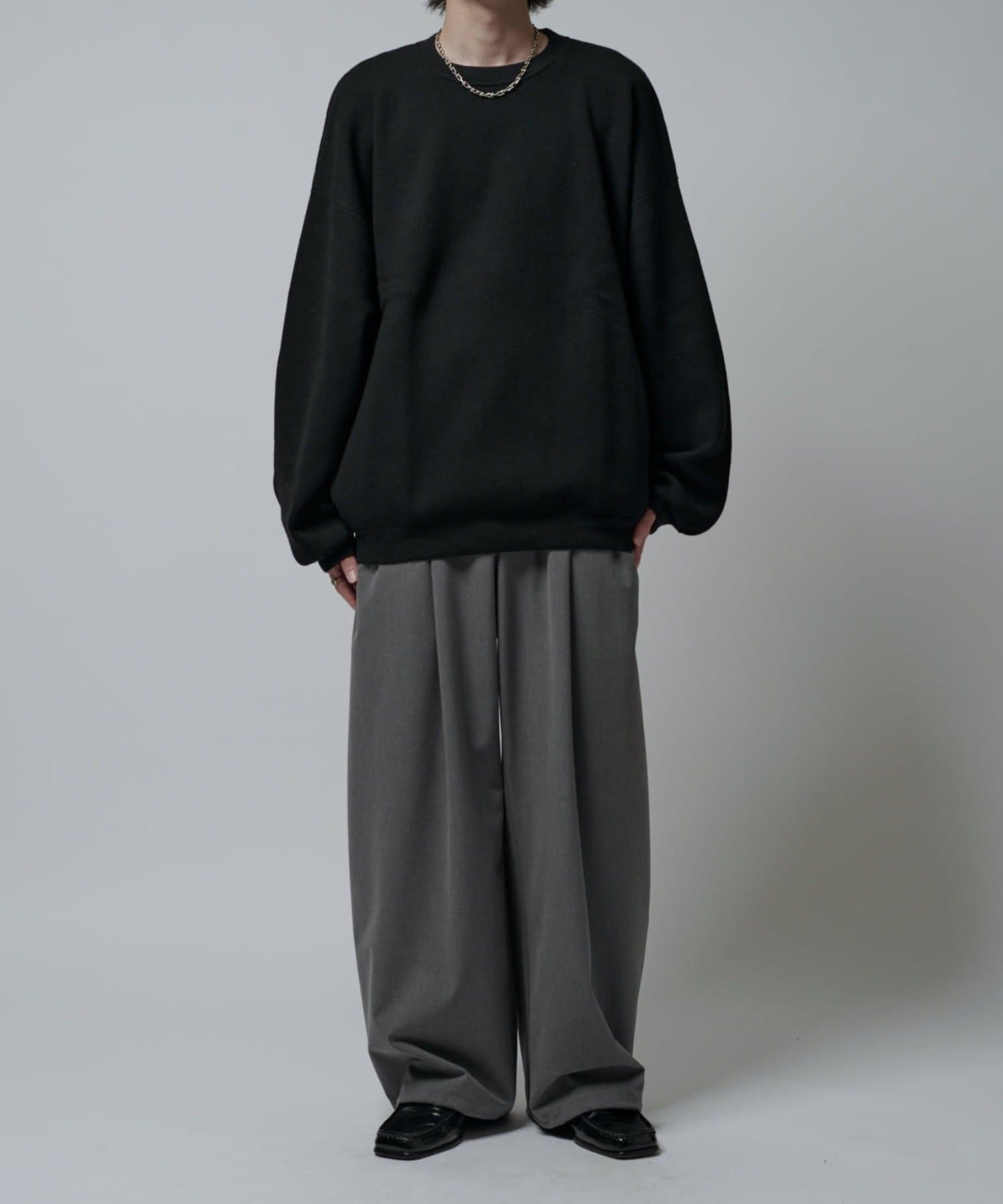 素材には、ポリエステル×ナイロン×アクリル×ウールの混紡素材を使用。もちっとした質感と、スウェットライクに着られる程よい肉感がポイント。クリーンで上品な見た目と、ウォッシャブルでイージーケアなのもポイント。