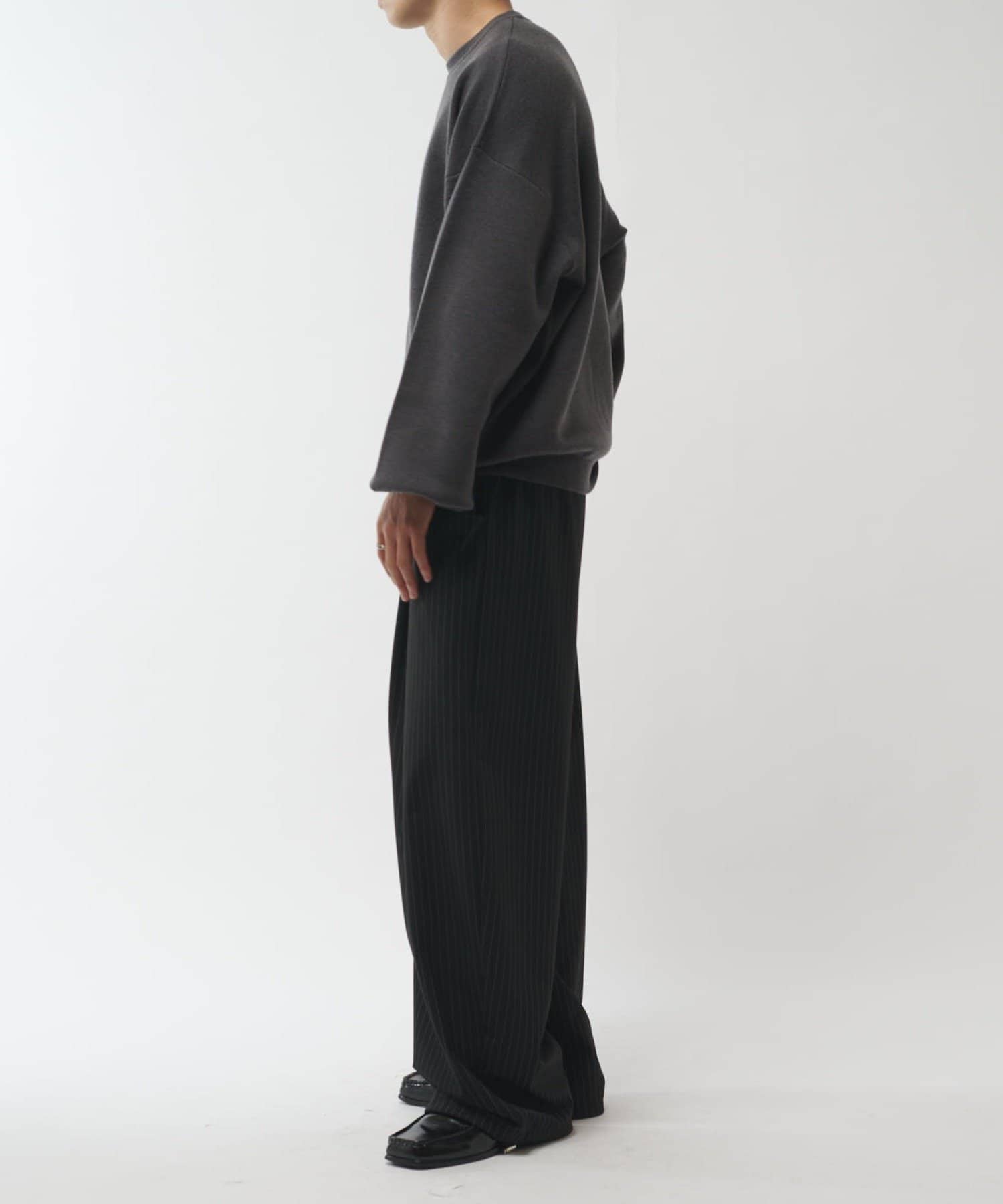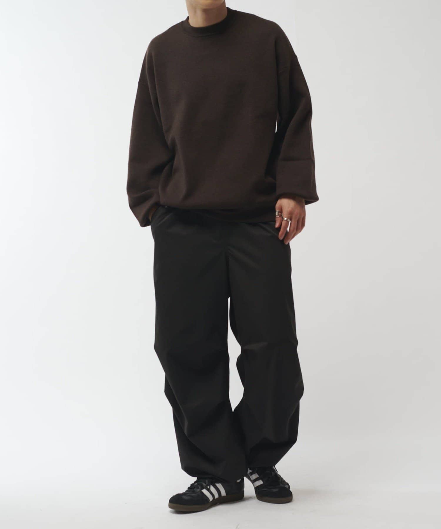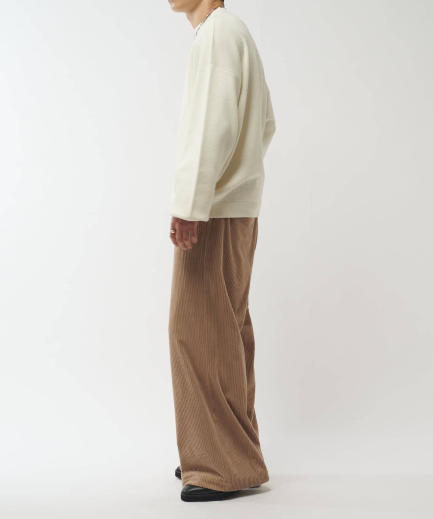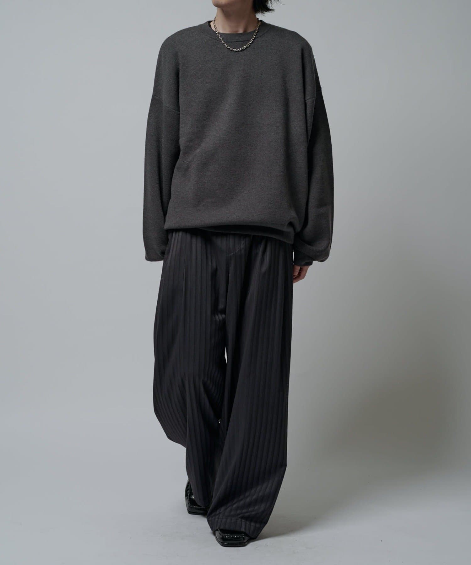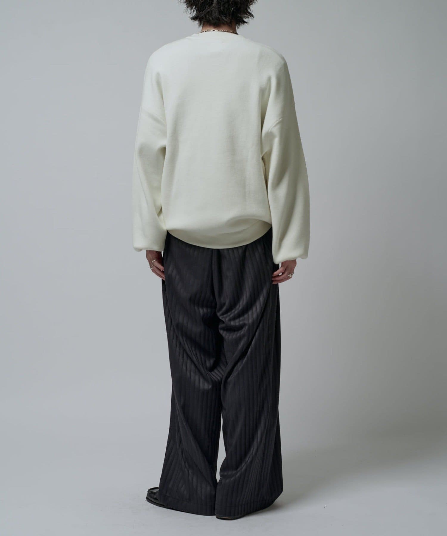 素材には、ポリエステル×ナイロン×アクリル×ウールの混紡素材を使用。もちっとした質感と、スウェットライクに着られる程よい肉感がポイント。クリーンで上品な見た目と、ウォッシャブルでイージーケアなのもポイント。