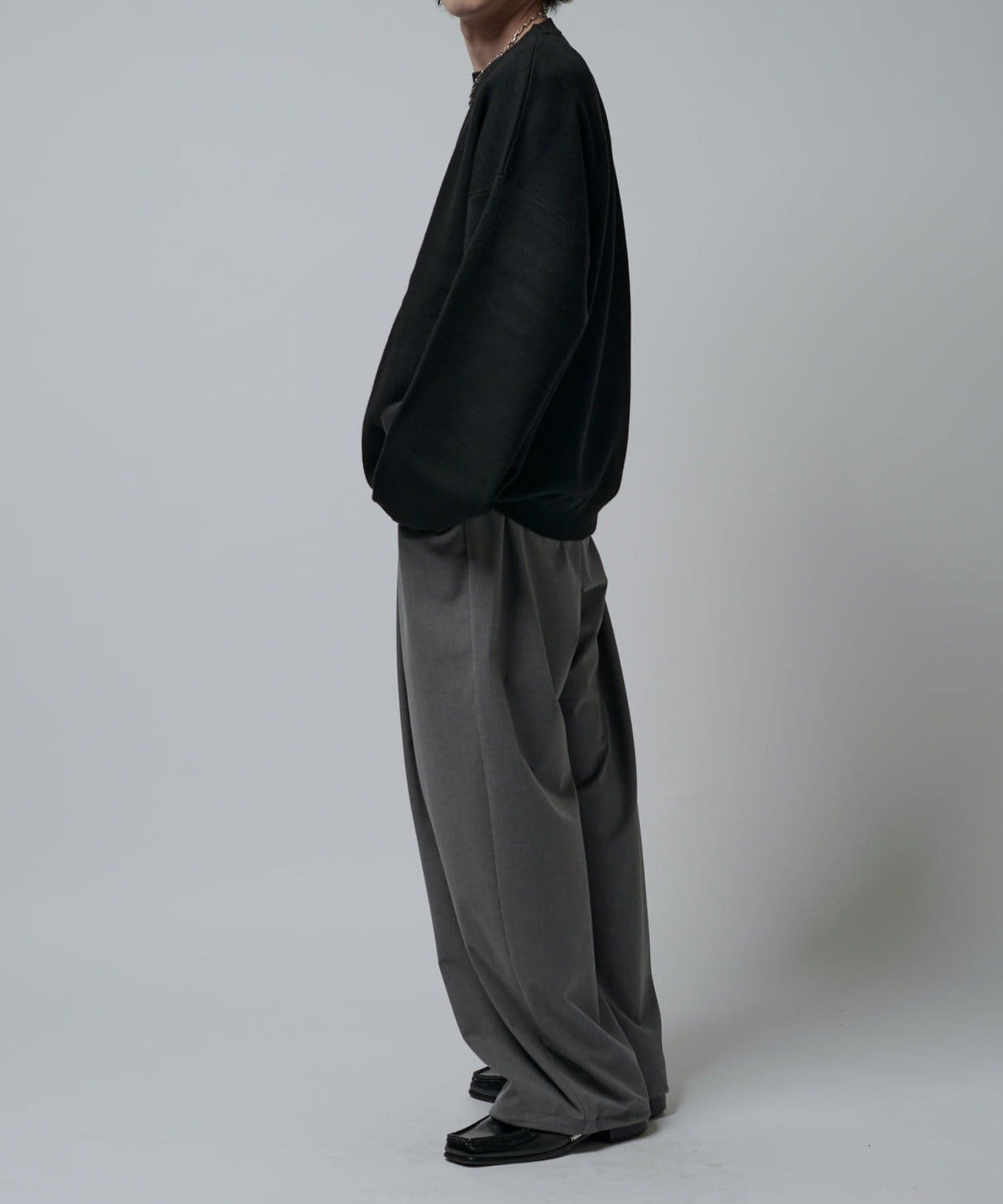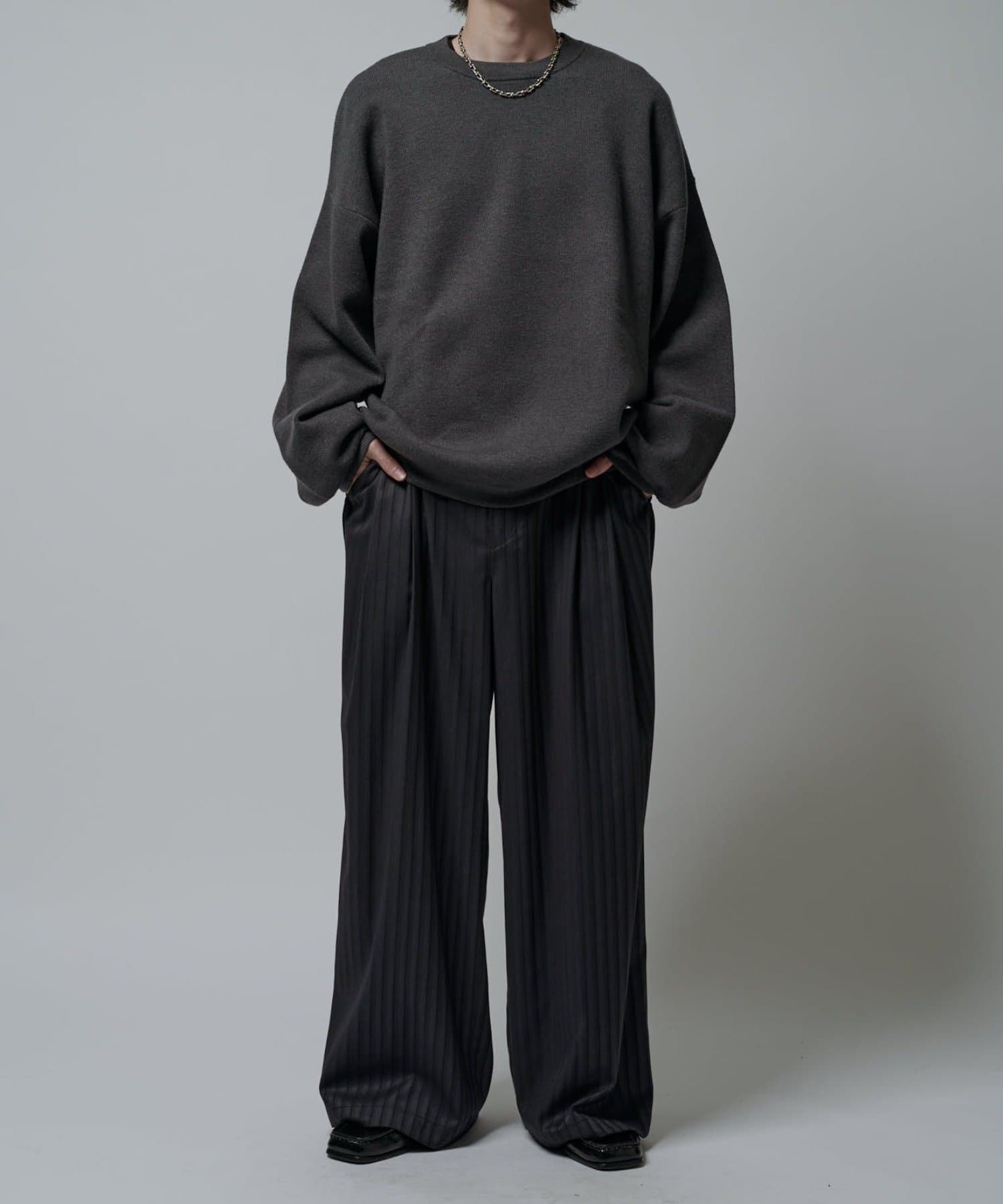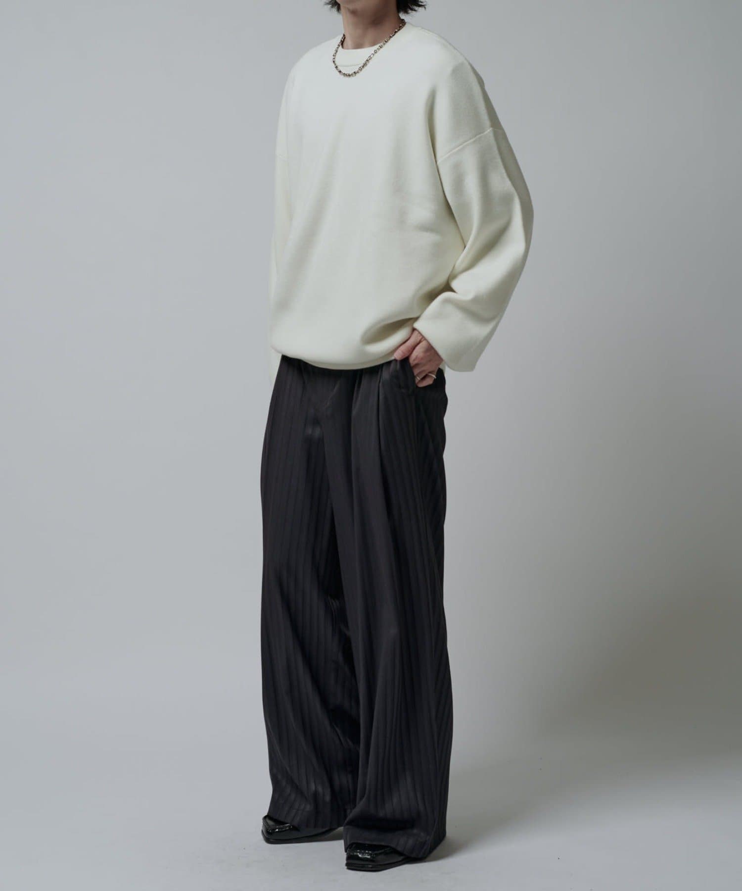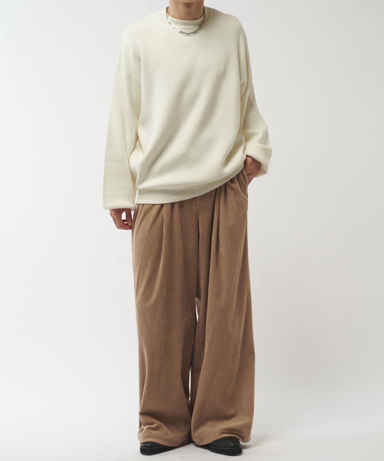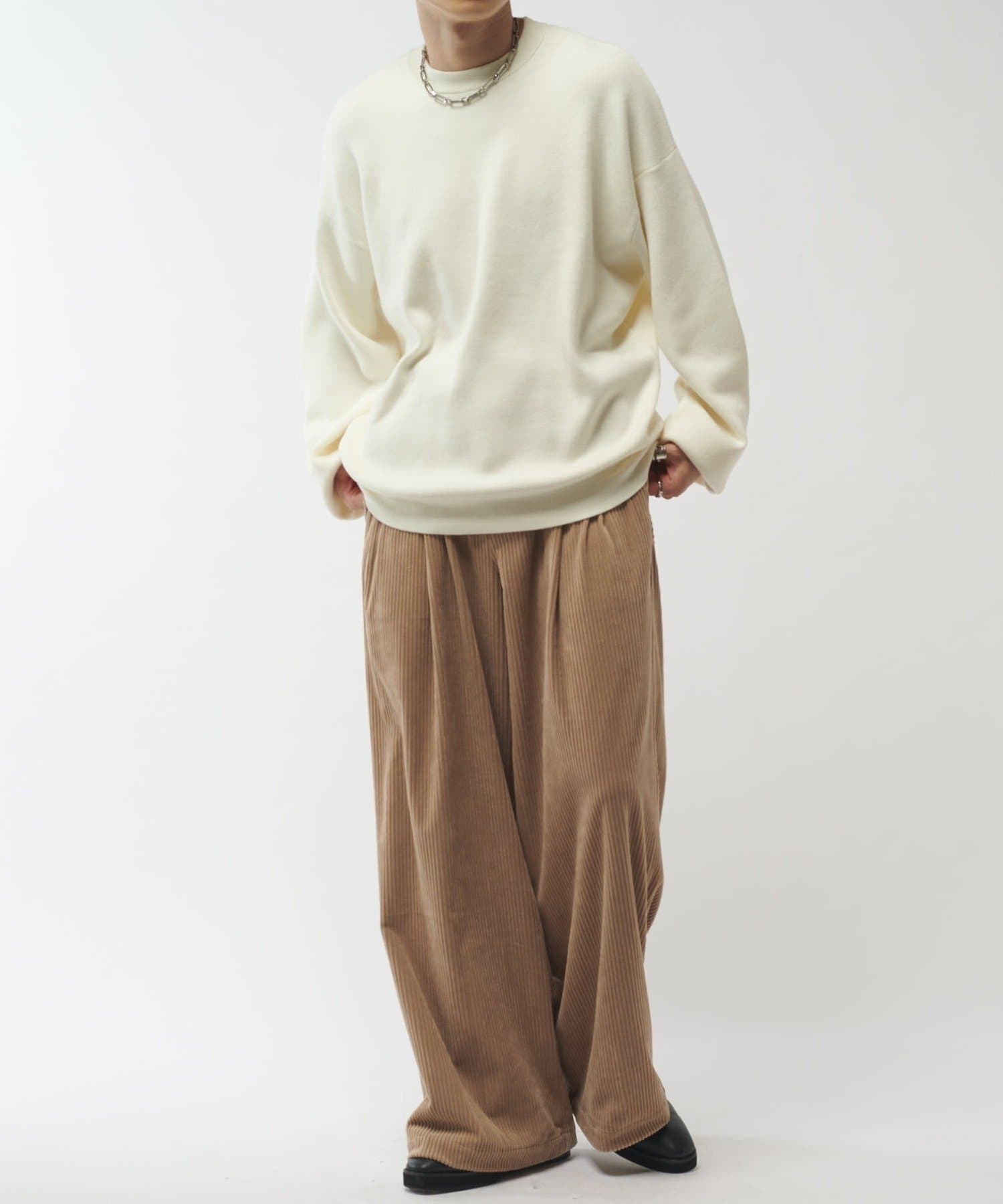 素材には、ポリエステル×ナイロン×アクリル×ウールの混紡素材を使用。もちっとした質感と、スウェットライクに着られる程よい肉感がポイント。クリーンで上品な見た目と、ウォッシャブルでイージーケアなのもポイント。