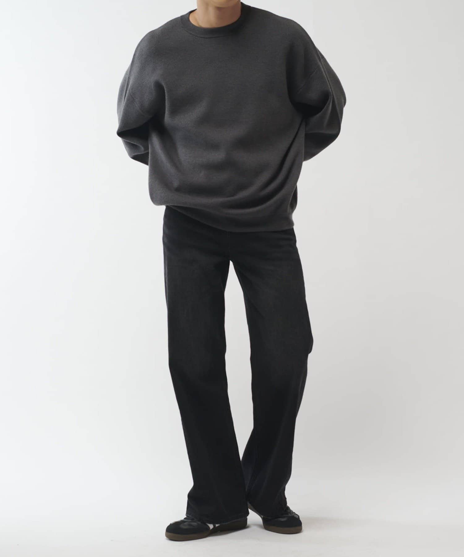 ベーシックかつミニマルなクルーネックニットなので、様々なスタイルでお使いいただけます。